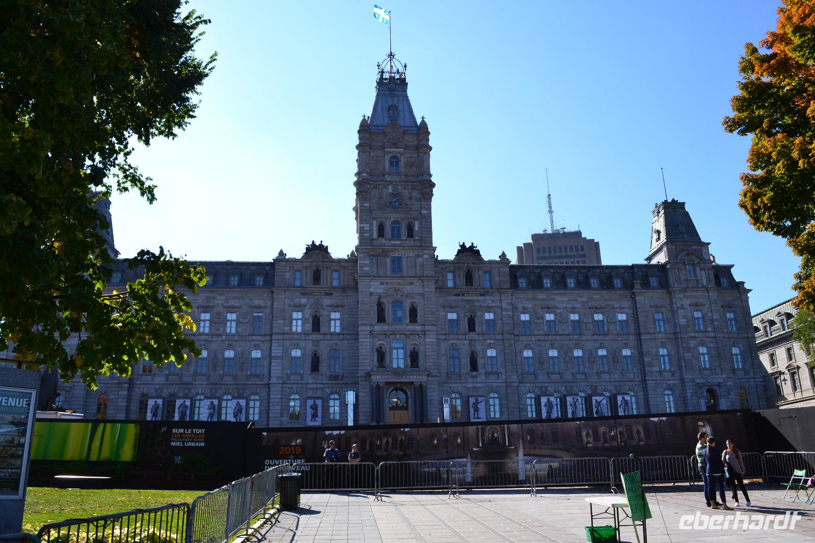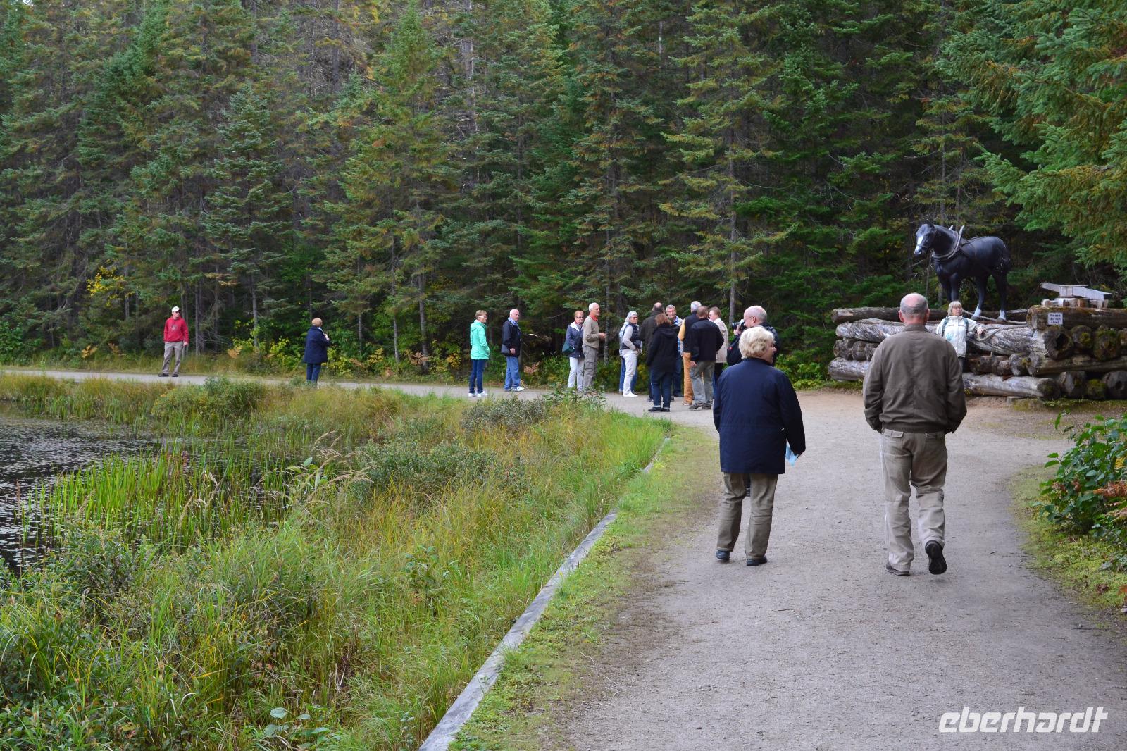 Nachdem wir uns vom Hidden Valley Resort verabschiedet haben, fährt uns Paul am Morgen mit dem Bus zum Besucherzentrum des Algonquin Parks. Wir schauen einen Film, der uns die Geschichte des Parks und seine Natur- und Pflanzenwelt näher bringt, bevor wir von der Aussichtsplattform aus unseren Blick über die Waldlandschaft schweifen lassen. Ein Spaziergang auf dem Algonquin Logging Museum Trail lässt uns noch tiefer in das harte Leben der Holzfäller eintauchen, die diese Gegend mit bloßen Händen, pferdebetriebenen Flößen und später auch mit Dampfkraft wirtschaftlich erschlossen haben. Noch heute spielt die Holz- und Forstwirtschaft in Kanada ein wichtige Rolle. Am Nachmittag erreichen wir die kanadische Hauptstadt Ottawa, wo schon unsere Stadtführerin Stephanie auf uns wartet. Sie zeigt uns zunächst das Canadian Museum of History in Gatineau, auf der anderen Seite des Ottawa River (und damit in der Provinz Quebec), ein sehr außergewöhnliches Gebäude, dass die Geschichte der First Nations und der europäischen Besiedelung Kanadas sehr anschaulich darstellt. Nachdem wir vom Vorplatz aus einen Blick auf die alte Bibliothek des kanadischen Parlaments geworfen haben, gehen wir kurz ins Museum und bewundern die ausgestellten Totempfähle. Dann geht es wieder zurück auf die andere Flussseite und wir fahren an der Kunstgalerie, an den vielen Botschaftsgebäuden, an der Residenz des Generalgouverneurs und des kanadischen Premierministers vorbei. Letzter Stopp unserer Tour ist natürlich das beeindruckende Parlamentsgebäude selbst mit seinem 92 m hohen Friedensturm, errichtet im neogotischen Stil nach einem verheerenden Brand, der das vorherige Gebäude zerstörte und den nur die Bibliothek überstand. Am Rideau-Kanal entlang fahren wir schließlich zum Hotel Cartier Place & Suites. Unser Abendessen nehmen wir heute im „Tucker's Marketplace" ein, einem sehr guten Buffetrestaurant im Stadtviertel „Byward Market". Wie bei einem Buffet so üblich, schlagen wir kräftig zu, denn alle Köstlichkeiten wollen natürlich probiert werden. Und das Essen schmeckt wirklich! Den Abend lassen wir dann in der Bar des Château Laurier bei einem Glas Whiskey oder Wein ausklingen.