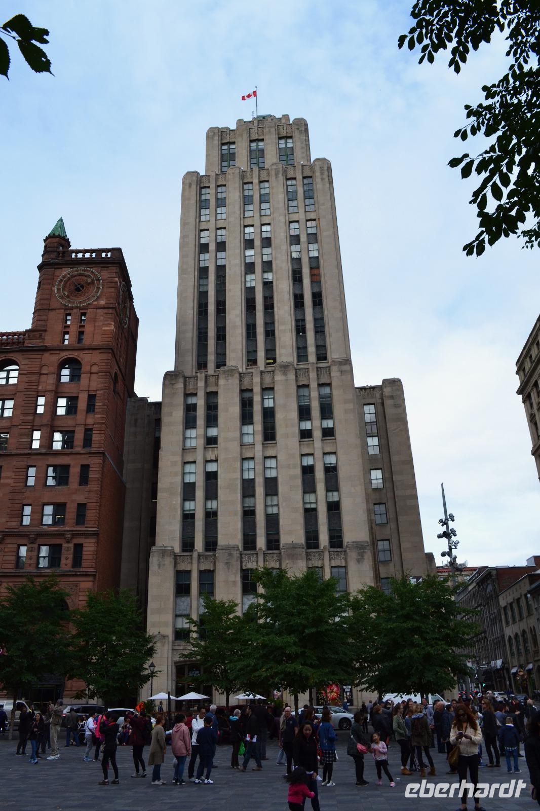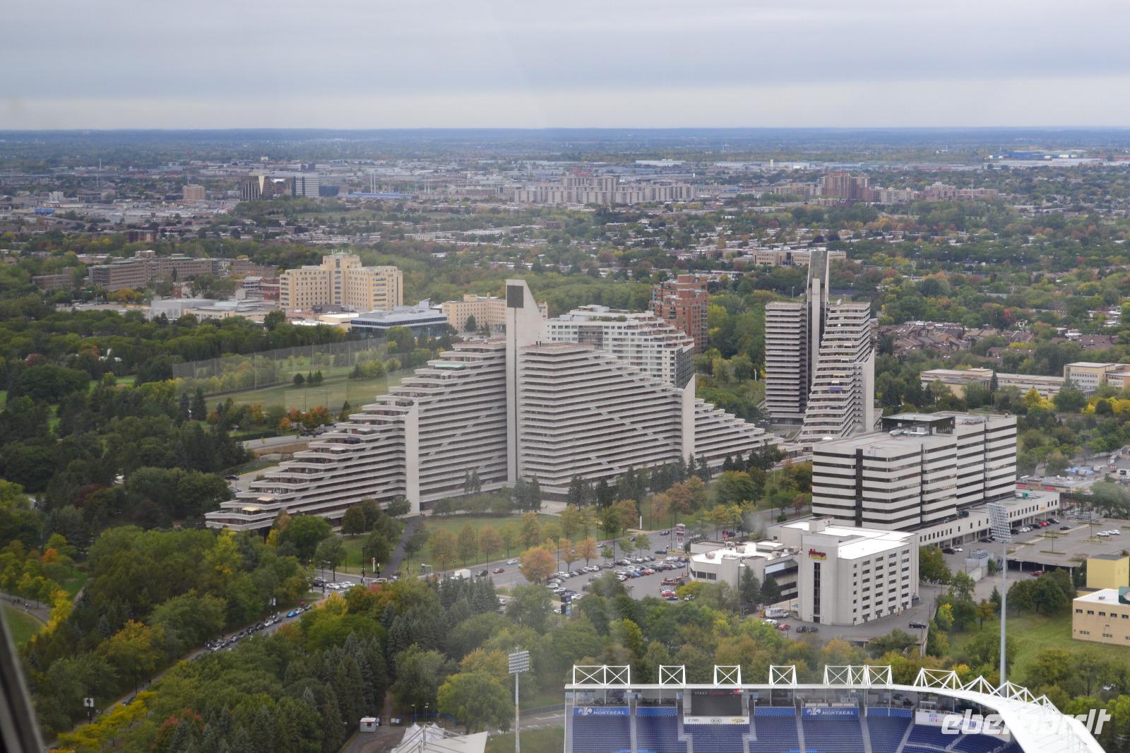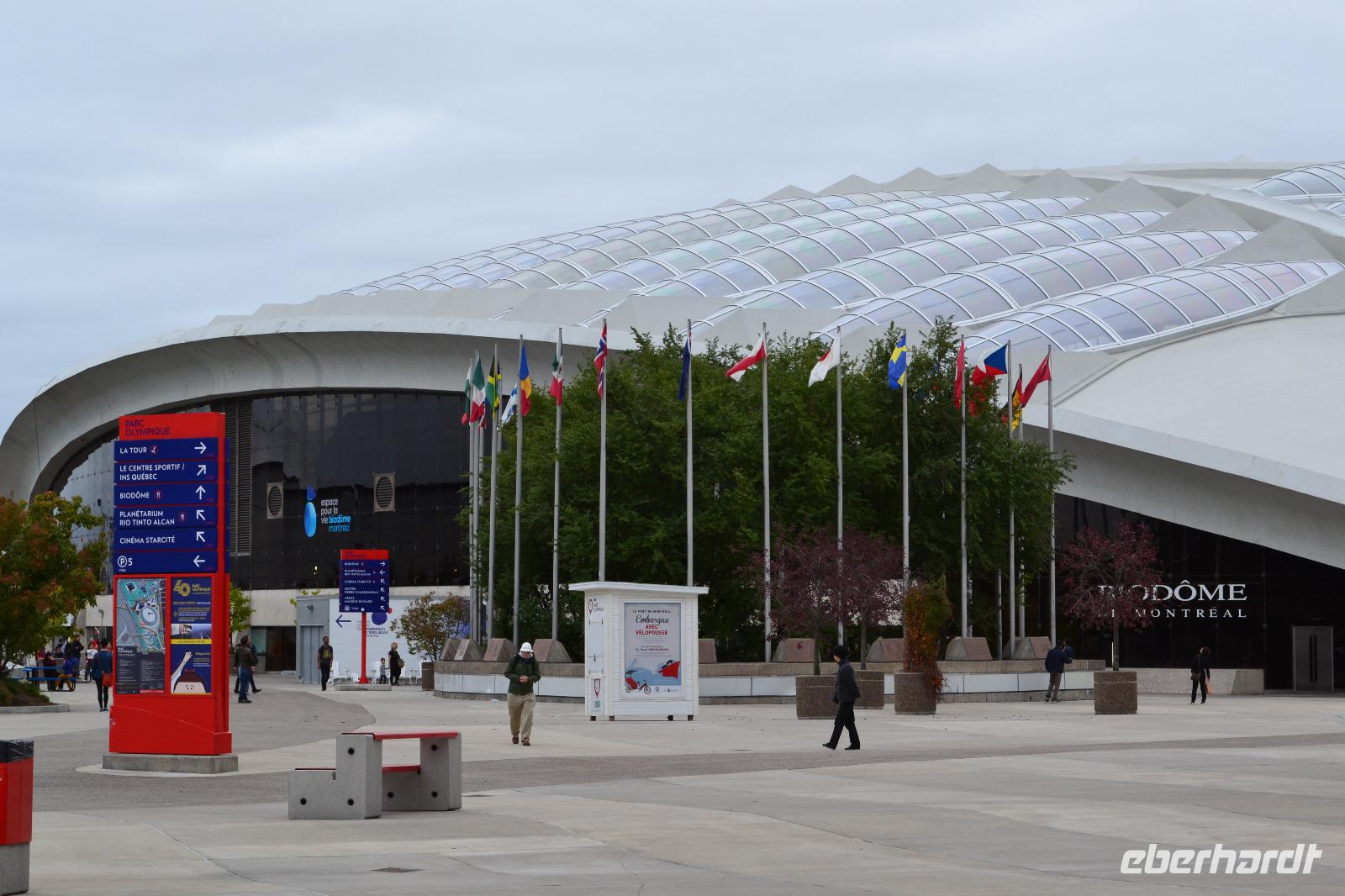 Auf dem Programm stehen heute der Parc Oméga bei Montebello und eine Stadtrundfahrt in Montréal. Da wir sehr gut durchkommen und der Wildpark noch geschlossen hat, fahren wir spontan ins kleine Zentrum des Örtchens Montebello und verfahren uns auf dem Golfplatz auf der Suche nach dem Fairmont-Hotel Château Montebello. Beim Wenden des Busses kann Paul sein Können eindrucksvoll unter Beweis stellen und erhält einen kräftigen Applaus. Das Château finden wir schließlich doch noch und der Umweg hat sich gelohnt! Nicht nur die Außenfassade des 1930 im kanadischen Blockhüttenstil erbauten Hotels ist sehr sehenswert, auch der riesige Empfangsraum mit seinem Kamin beeindruckt uns. Wir fahren wieder zum Wildpark zurück, der nun geöffnet hat, und steigen in einen umgebauten Schulbus um. Aus dem offenen Fahrzeug heraus können wir die Tiere mit Karotten füttern und ungehindert Fotos knipsen. Wir sehen Hirsche, Elche, Bisons, Wildschweine, Kojoten, Rentiere, Moschusochsen, Polarfüchse und Polarwölfe. Das Highlight kommt natürlich ganz zum Schluss: die Schwarzbären! Ja, der Besuch hat sich auf jeden Fall gelohnt! Nach einer kleinen Mittagspause müssen wir auch schon weiter, denn unsere Stadtführerin Ann-Marie erwartet uns in Montréal. Und sie hat natürlich viel mit uns vor, denn Montréal hat eine Menge zu bieten. Vom Mont Royal blicken wir nach Osten auf das Olympiastadion und das ehemalige olympische Dorf, bevor wir den Bus zurück in der Innenstadt am Place d'Armes für einen ausgedehnten Spaziergang durch die Altstadt verlassen. Leider müssen wir den Besuch der Basilika Notre-Dame auf den nächsten Tag verschieben, aber da wir am Sonntag viel Zeit haben, ist das nicht weiter schlimm. Dafür steigen wir noch hinab in die sogenannte „Unterstadt" von Montréal. Da es im Winter in Québec sehr kalt werden und entsprechend viel Schnee auf den Straßen liegen kann, sind die meisten Gebäude in der Innenstadt über ein Tunnelnetzwerk miteinander verbunden, so dass man hier unten von der Metrostation aus direkt zur Arbeit oder shoppen gehen kann. 33 km umfasst das System und man kann sich auf den verschiedenen Ebenen durchaus verlaufen. Also gehen wir lieber wieder hinauf an die Oberfläche und lassen uns von Paul zum Hotel „Le Nouvel" fahren, wo wir nach dem Check-In unser Abendessen einnehmen.