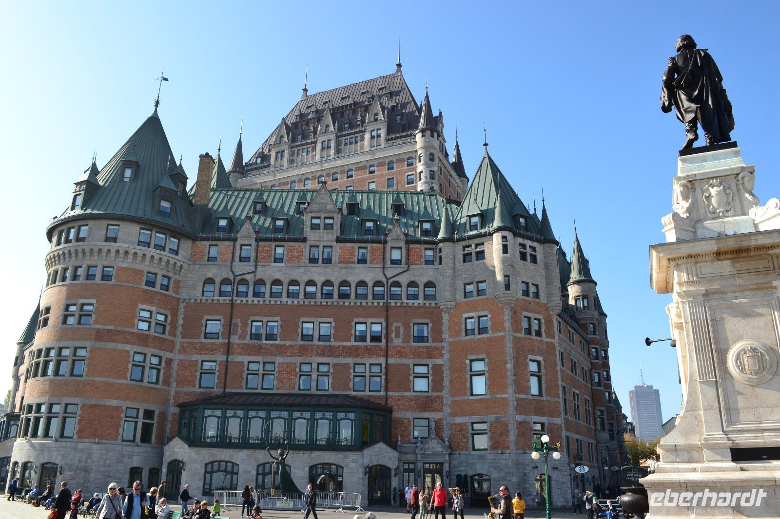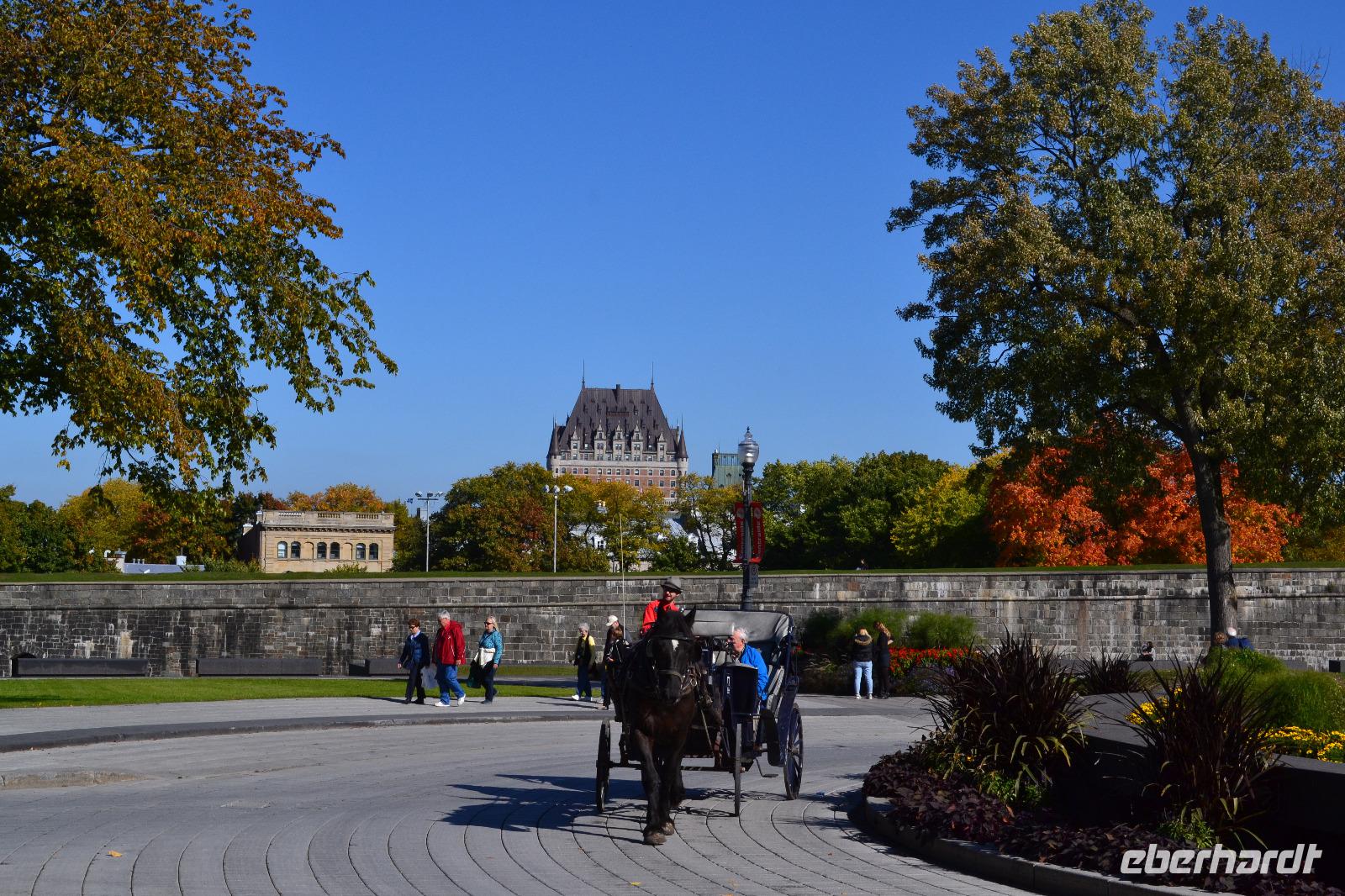 Der letzte Vormittag in Kanada steht den Gästen zur freien Verfügung. Sie können in Ruhe Andenken kaufen oder auch einfach nur gemütlich durch die Altstadt bummeln. Peter und ich bieten ab 10 Uhr auch wieder einen gemeinsamen Spaziergang an. Wir laufen ganz entspannt durch die obere Altstadt zum ikonischen Château Frontenac, dass majestätisch über der Altstadt thront und die Silhouette der Stadt dominiert, spazieren noch einmal hinunter in die untere Altstadt, wo wir auf dem Place Royale bei einem Tee oder Kaffee das bunte Treiben beobachten, fahren dann mit der Funicolare wieder hinauf und schlendern die Governor's Promenade zurück zum Hotel. Um 14 Uhr heißt es dann endgültig Abschied nehmen von Québec City, denn Paul fährt uns zum Flughafen. Wir sagen Lebewohl und versprechen Peter und Paul, bald wiederzukommen um auch gemeinsam den kanadischen Westen zu erkunden. Etwas Überredungskunst ist dann noch nötig, damit uns Air Canada auch das Gepäck bis an die finalen Zielflughäfen durchstellt. Und dann sitzen wir plötzlich wieder im Flugzeug. Während des kurzen Fluges nach Ottawa können wir noch einmal die weite Landschaft mit ihren vielen tausend Seen und die herrlich rot gefärbten Wälder bewundern. Von Ottawa fliegen wir über Nacht nach Frankfurt, wo ich mich von allen Gästen, die nicht weiter mit mir nach Dresden reisen, schweren Herzens verabschiede.