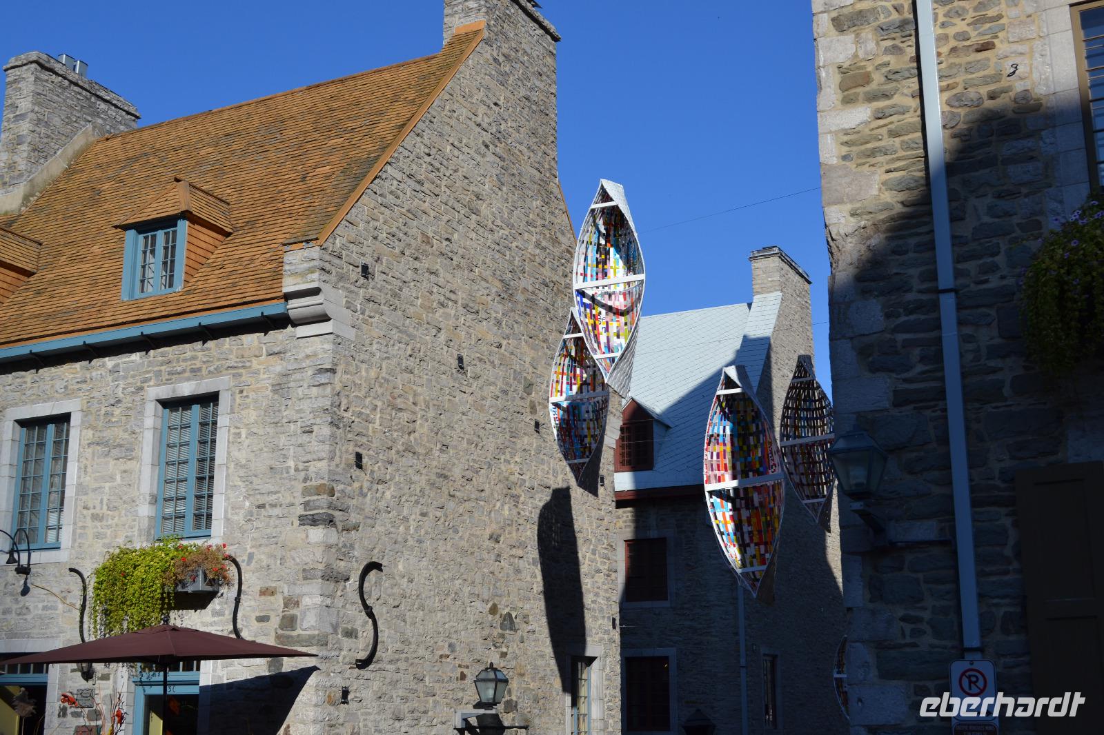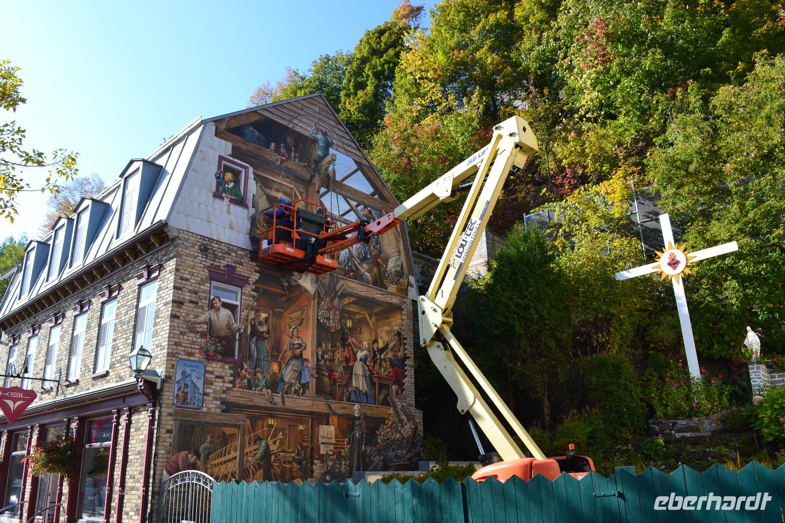 Das Ende der Reise rückt leider langsam aber unaufhaltsam näher. Paul fährt uns unserer letzten Destination entgegen. Wir haben uns die schönste Stadt Kanadas bis zum Schluss aufgehoben: Québec City! Doch auf dem Weg halten wir noch an drei weiteren Orten. Als erstes stoppen wir an einem kleinen Besucherzentrum, in dem wir darüber aufklärt werden, dass wir uns die letzten beiden Tage in einem riesigen Einschlagskrater aufgehalten haben. Vor etwa 350 Millionen Jahren hinterließ ein Asteroid mit einem Durchmesser von mindestens 2 km einen Krater mit einem Durchmesser von 54 km, den Charlesvoix-Krater. Staunend begeben wir uns wieder in den Bus zurück und versuchen diese Zahlen zu verarbeiten. Zweites Ziel ist der Canyon Sainte-Anne. Wir spazieren gemütlich über drei Brücken entlang hinunter in die Schlucht und wieder hinauf und bewundern dabei den herrlichen Wasserfall inmitten dieser unbeschreiblich schönen Natur. Letzter Zwischenstopp ist das Sanctuaire de Sainte-Anne-de-Beaupré, die wichtigste Wallfahrtskirche Nordamerikas. Die 91 m hohe und 105 m lange katholische Basilika im neugotischen Stil wurde 1926 fertiggestellt. Von den zahlreichen Wunderheilungen, die sich hier ereignet haben sollen, zeugen die vielen Geh- und Krückstöcke im Eingangsbereich des Hauptschiffs. Es gibt auch einen Tank mit heiligem Wasser, doch ich traue mich als Heide nicht, meine Wasserflasche daraus zu füllen. Nach einem letzten Mittagsstopp bei Tim Horton's fahren wir endlich in die Stadt. Unsere Stadtführerin Christiane unterhält uns köstlich mit vielen interessanten Geschichten und Anekdoten. Gemeinsam erkunden wir zunächst die obere Altstadt und dann zu Fuß die untere Altstadt. In den pittoresken Gassen fühlen wir uns in das mittelalterliche Europa zurückversetzt. Am Abend fahren wir in das Restaurant „Erabliere Du Lac-Beauport", wo wir bei Live-Musik mit köstlichen traditionellen Québecer Speisen verwöhnt werden. Doch so viel, wie auf dem Tisch steht (und es wird immer nachgefüllt) können wir gar nicht essen! Gemeinsam mit einer französischen Reisegruppe werden wir zum Mitsingen und -tanzen aufgefordert und tragen so trotz Sprachbarriere unseren Teil zur Völkerverständigung bei. Nach dem Essen wird uns die Herstellung des berühmten Ahornsirups erklärt, die die europäischen Siedler von den First Nations erlernt haben. Ein mühevoller Prozess! Heute geht natürlich dank der Industrialisierung alles viel einfacher. Bevor wir in unser Hotel „Château Laurier" zurückkehren, können wir noch ein paar Souvenirs erwerben und Ahorn-Toffee probieren.