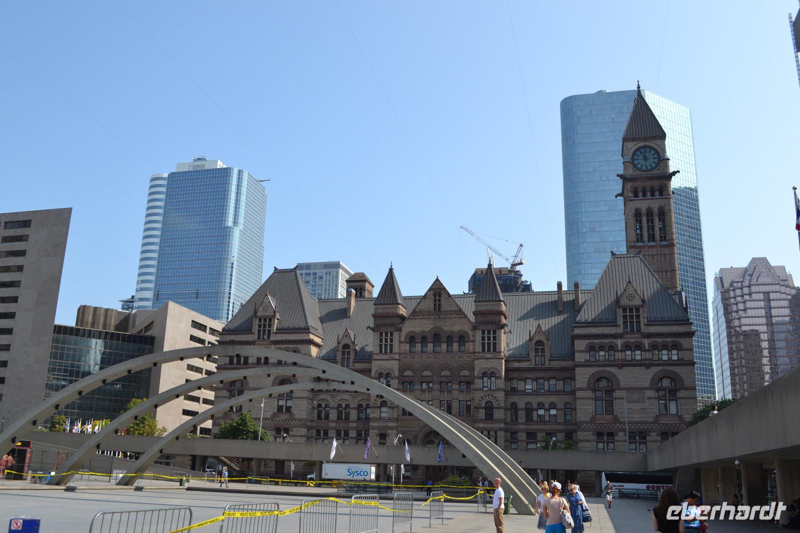 Unsere Reise in das zweitgrößte Land der Erde beginnt für mich auf dem Flughafen Dresden, wo ich die ersten Gäste in Empfang nehme. Nach dem Check-In wartet eine kleine Stärkung auf uns, bevor wir nach Frankfurt fliegen. Hier stoßen alle anderen Gäste aus Deutschland zu uns, und gemeinsam fliegen wir mit Air Canada nach Toronto. Die Rückkehr in die größte Metropole Kanadas, in der ich eine Zeit lang gelebt und gearbeitet habe, ist für mich immer ein sehr emotionaler Moment. Am internationalen Flughafen von Toronto werden wir von unserem örtlichen Guide Bruno herzlich begrüßt und auch unseren Fahrer José lernen wir gleich kennen. Die beiden führen bzw. fahren uns und unser Gepäck ins Hotel mitten in der Innenstadt, und stellen sicher, dass wir alle gut angekommen sind. Auf der Fahrt führt uns Bruno auch schon ein bisschen in die Geschichte Torontos und Kanadas ein. Auch die Gäste aus der Schweiz sind gut gelandet und konnten die Stadt sogar schon etwas zu Fuß erkunden. Für alle war es aber Dank der Zeitverschiebung von 6 h ein langer Tag, und so fallen wir erschöpft und voller Vorfreude in unsere Betten.