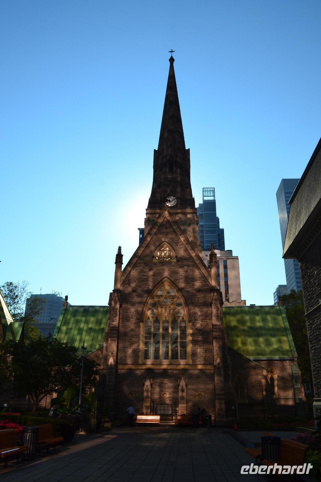 Gleich am Morgen nach dem Frühstück werden wir von unserem Stadtführer abgeholt und beginnen unsere Stadtführung mit einer Besichtigung der unterirdischen Stadt. Ganz so viel Schnee wie in Quebec soll in Montréal zwar im Winter nicht liegen, aber richtig kalt wird es trotzdem. Daher sind die meisten Gebäude in der Innenstadt über ein 33 km langes Tunnelsystem untereinander und mit der Metro verbunden. Natürlich hat man bei der Gelegenheit gleich riesige unterirdische Einkaufszentren mit gebaut, so dass man sich auch im Winter voll und ganz seiner Shopping-Lust hingeben kann. Bevor wir hier unten noch jemanden verlieren, gehen wir lieber wieder an die Oberfläche, wo es immer noch schön warm ist, und setzen unsere Entdeckungstour fort. Wir besichtigen das World Trade Centre und ein paar der alten Bankgebäude und erreichen dann schließlich den Place d'Armes, den Hauptplatz von Montréal, wo wir die wunderschöne neugotische Basilika Notre-Dame besichtigen. Die katholische Kirche wurde von 1824 bis 1829 von einem protestantischen Architekten aus New York errichtet - für das französische Kanada ein Kuriosum. Der fast vollständig aus Holz bestehende Innenraum mit seinem Sternenhimmel versetzt uns in Staunen. Wir schlendern noch ein wenig durch die historische Altstadt und beenden unseren Spaziergang dann am alten Zollhaus. Zum Mittagessen müssen wir dann schließlich noch die Spezialität von Montréal probieren: das berühmte „Montreal-style Smoked Meat" (geräuchertes Fleisch von der Rinderbrust). Zur Musik von Leonard Cohen fahren wir am Nachmittag über idyllische Landstraßen in Richtung Norden zu unserer Herberge am Lac Taureau, mitten im Nirgendwo.