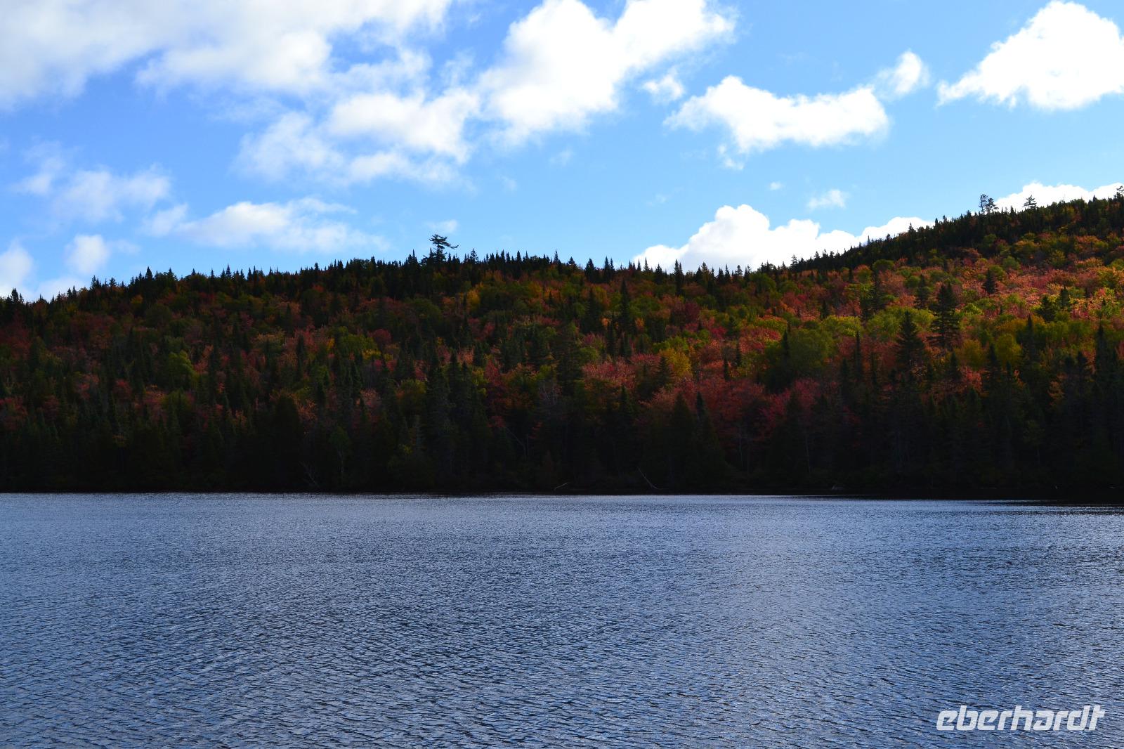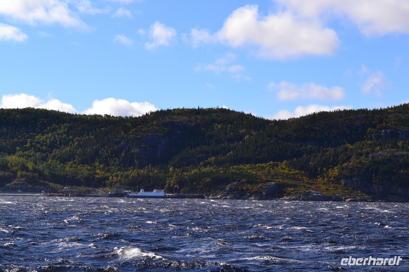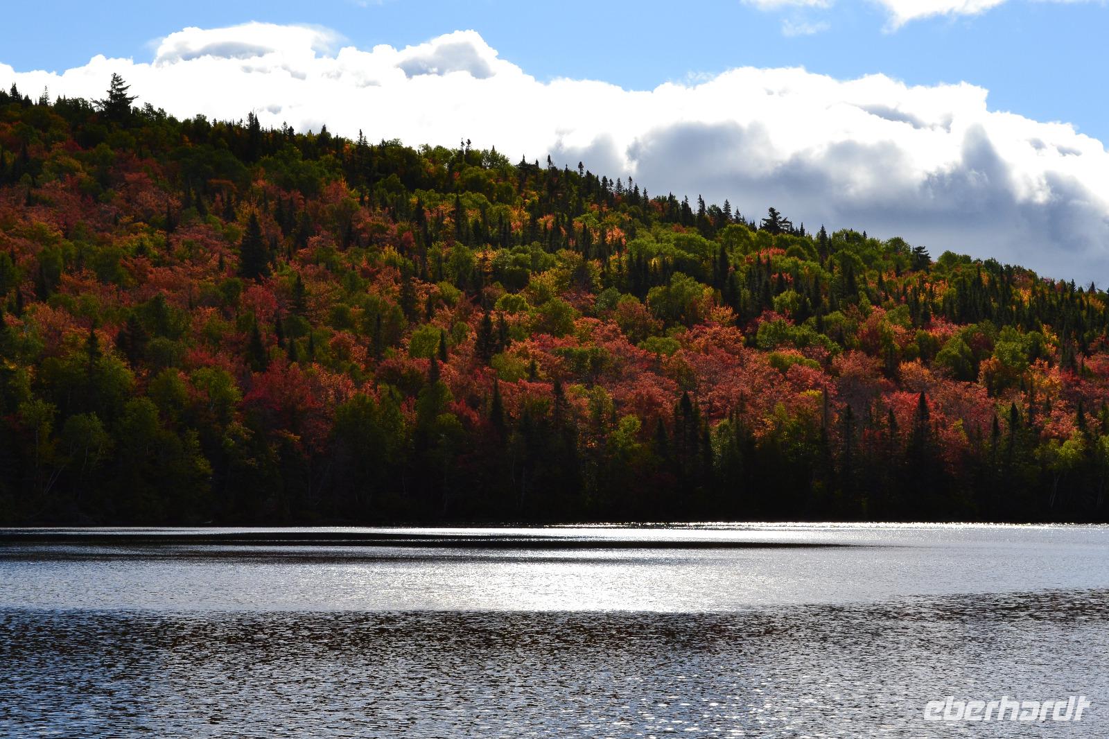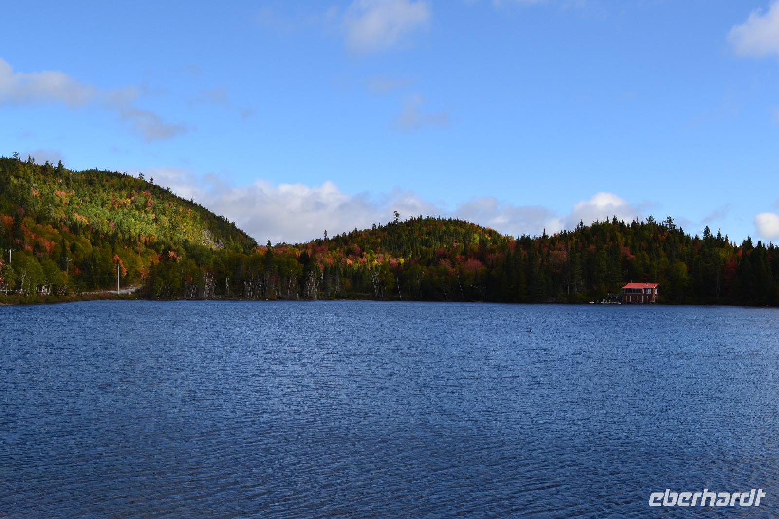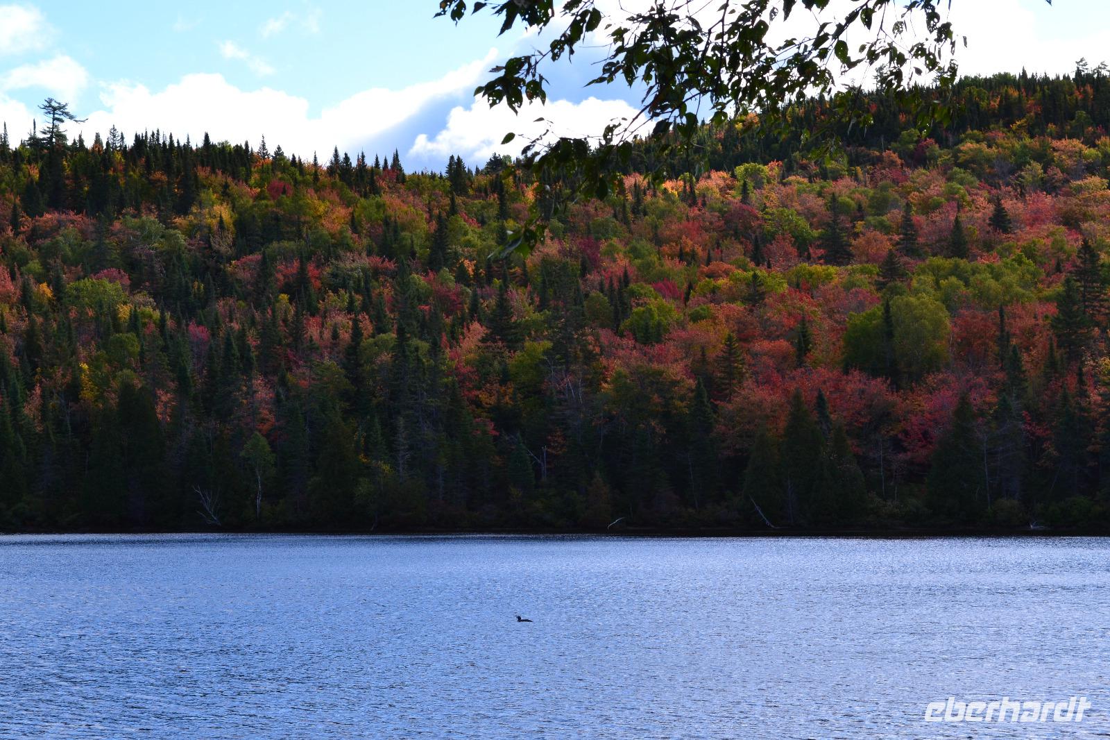 Auf der Fahrt zum Whale Watching und zurück sehen wir die wohl schönste Laubfärbung auf dieser Reise. Da wir es heute nicht eilig haben, können wir einen Photostopp an einem See machen, der von einem wunderschönen Wald umsäumt ist. Den kleinen entenartigen Vogel auf dem See nehmen die meisten gar nicht sofort wahr, aber es ist ein Loon, ein Seetaucher, der Vogel, der die Rückseite der 1-Dollar-Münze ziert. Es freut mich besonders, dass wir diesen Vogel somit auch einmal in freier Wildbahn gesehen haben. Und es kommt noch viel besser: Wir sehen sogar schon vom Bus aus die Zwergwale im St.-Lorenz-Strom! Mit der kostenlosen Autofähre müssen wir dann den Saguenay-Fjord überqueren, um nach Tadoussac zu gelangen. Es herrscht ein kräftiger Wind, der uns fast von Bord wedelt. Im Marine Mammal Interpretation Centre werden wir in Tadoussac mit einer Videopräsentation und einer Ausstellung auf unsere 3-stündige Whale-Watching-Tour eingestimmt. An Bord ist es dann auch gar nicht so kalt und windig, wie ich befürchtet habe. Wir sehen Zwergwale und Belugas. Letztere leben das ganze Jahr über im St.-Lorenz-Strom und jagen in großen Gruppen zusammen. Eine dieser Schulen schwimmt sogar eine Weile parallel zum Boot und wir sehen immer wieder die Köpfe auf- und abtauchen. In Baie Sainte-Catherine gehen wir dann nach fast 3,5 Stunden zurück an Land und José nimmt uns freudig in Empfang. Am Abend genießen wir ein sehr leckeres 3-Gänge-Menü im Restaurant „Allegro".