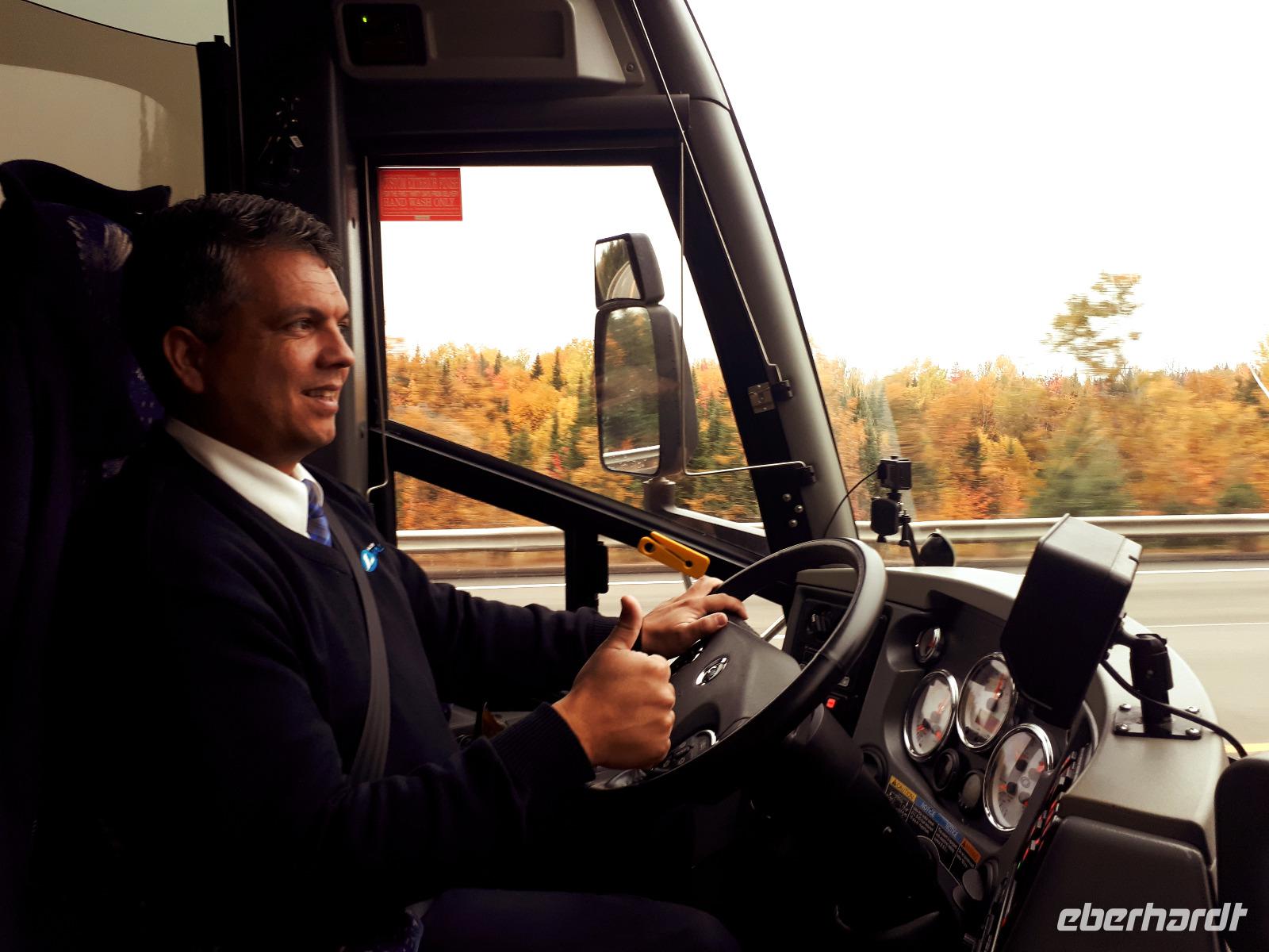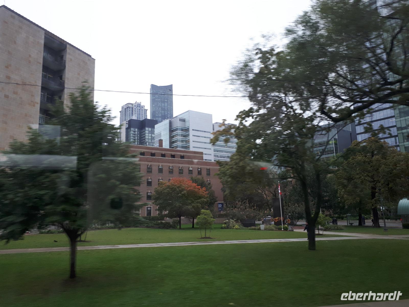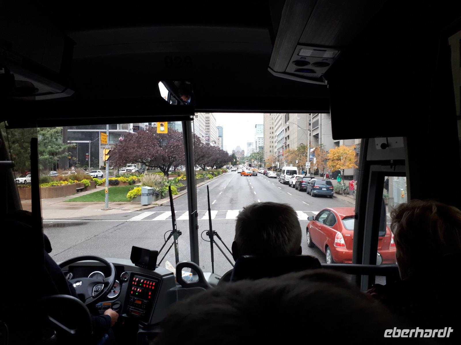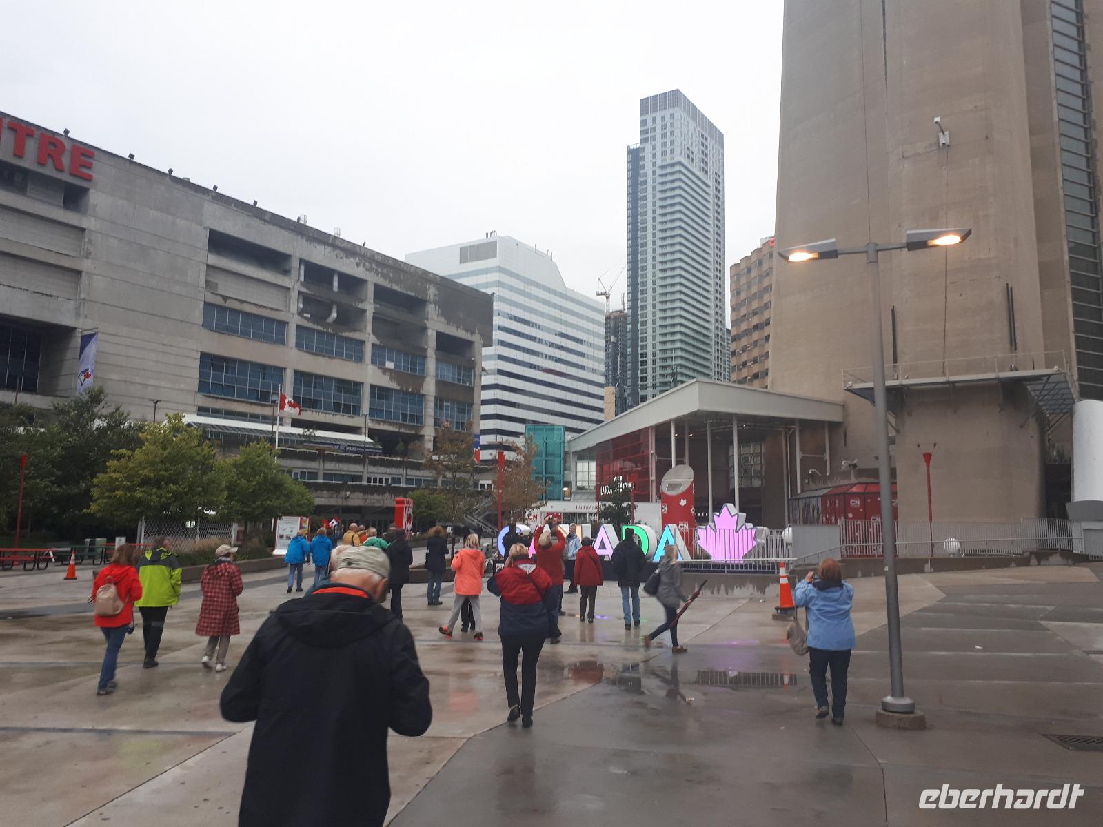 Wir trafen uns als Teil der Reisegruppe am Flughafen Dresden, flogen nach Frankfurt/Main und nun hieß es warten. Auf weitere Reisgäste, die aus allen Teilen Deutschlands zum größten Flughafen des Landes kamen und auf unsere Boing 777/300. Auf der Außenterrasse des Terminals sahen wir das längste Flugzeug gemächlich in der Sonne anrollen. Unser 8stündiger Flug verlief ruhig bei bestem Flugwetter. Wir landeten zum Abend in Toronto und kämpften uns durch die Einreisekontrollen. Endlich auf kanadischem Boden angekommen, begrüßte uns unsere Reiseleiterin Christine und auch unser Busfahrer José in seinem fahrenden Eishotel. Das Wetter war leider sehr regnerisch, sodass unser erster Eindruck von Toronto etwas ins Wasser fiel. Da wir müde waren, waren wir letztendlich auch froh, unsere Zimmer zu beziehen und uns auf die kommenden Tage beim Einschlafen zu freuen.