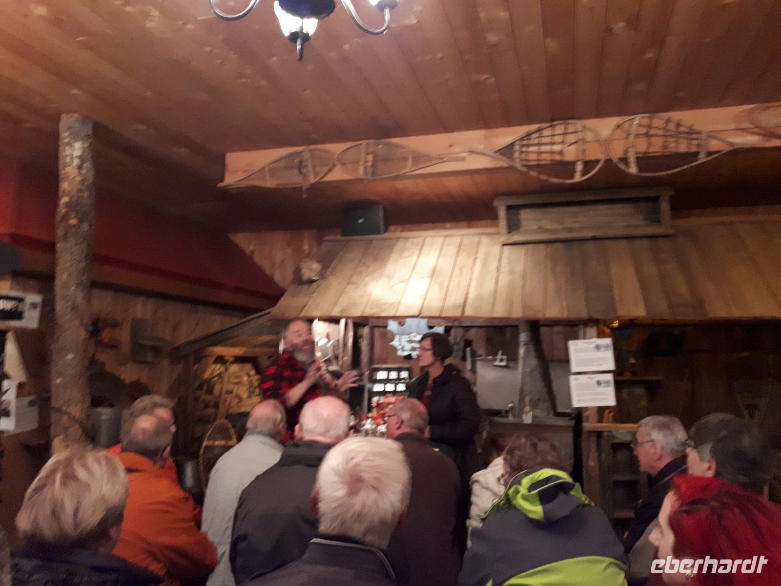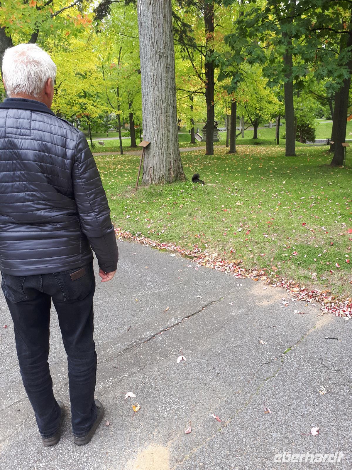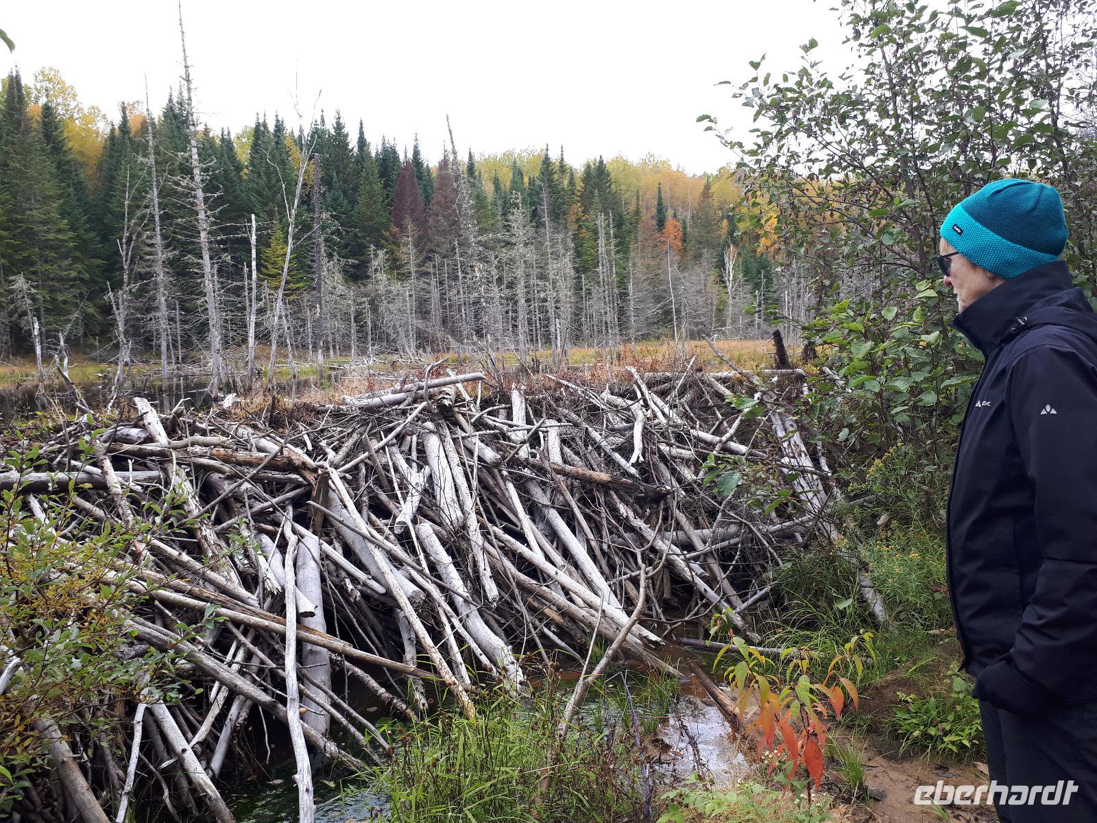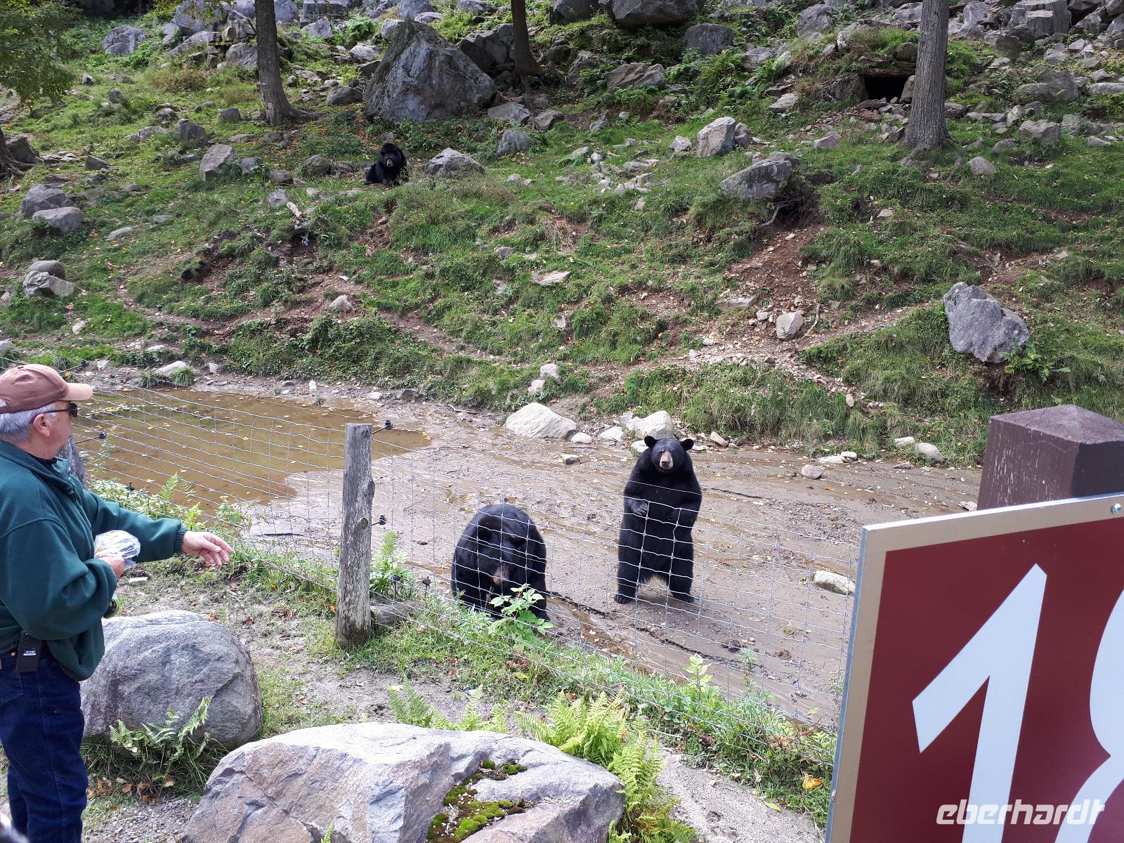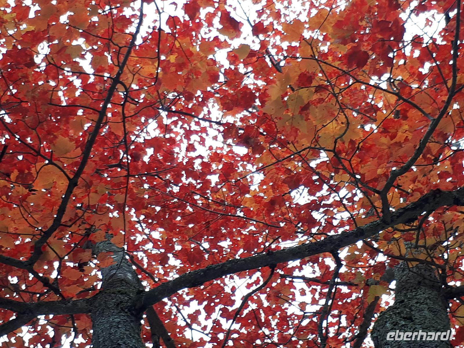 Der Tag überraschte uns mit blauem Himmel und ein paar leichten Wölkchen. Zum ersten Mal sahen wir auf Grund des sonnigen Wetters die unglaublichen Farben des Indian Summer in seiner voller Pracht. Wir fotografierten wie die Wilden, schließlich sollten die Lieben zu Hause auch dieses Wunderwerk der Natur sehen können. Bevor wir den Naturpark verließen, hielten wir noch am Besucherzentrum des Algonquin Parks. Hier konnten wir die heimische Tierwelt nicht nur sehen sondern auch hören und bei einem kurzen Film einen Eindruck über die wunderschönen Landschaften zu den unterschiedlichen Jahreszeiten bekommen.