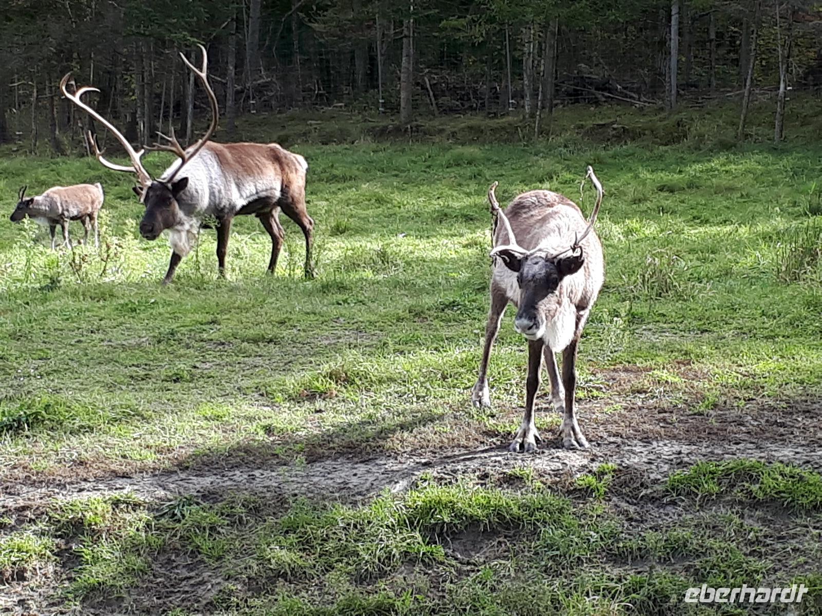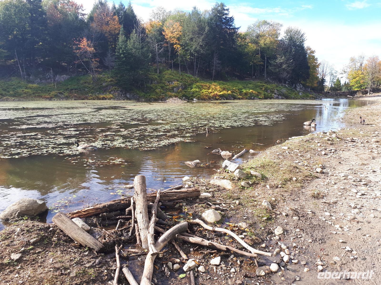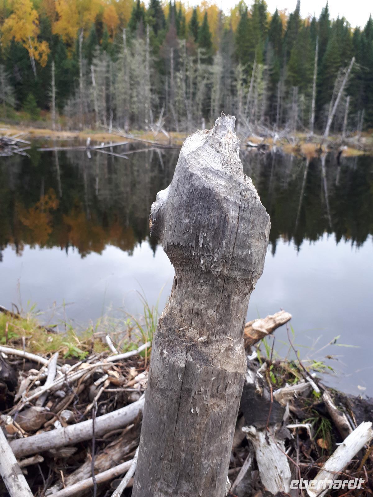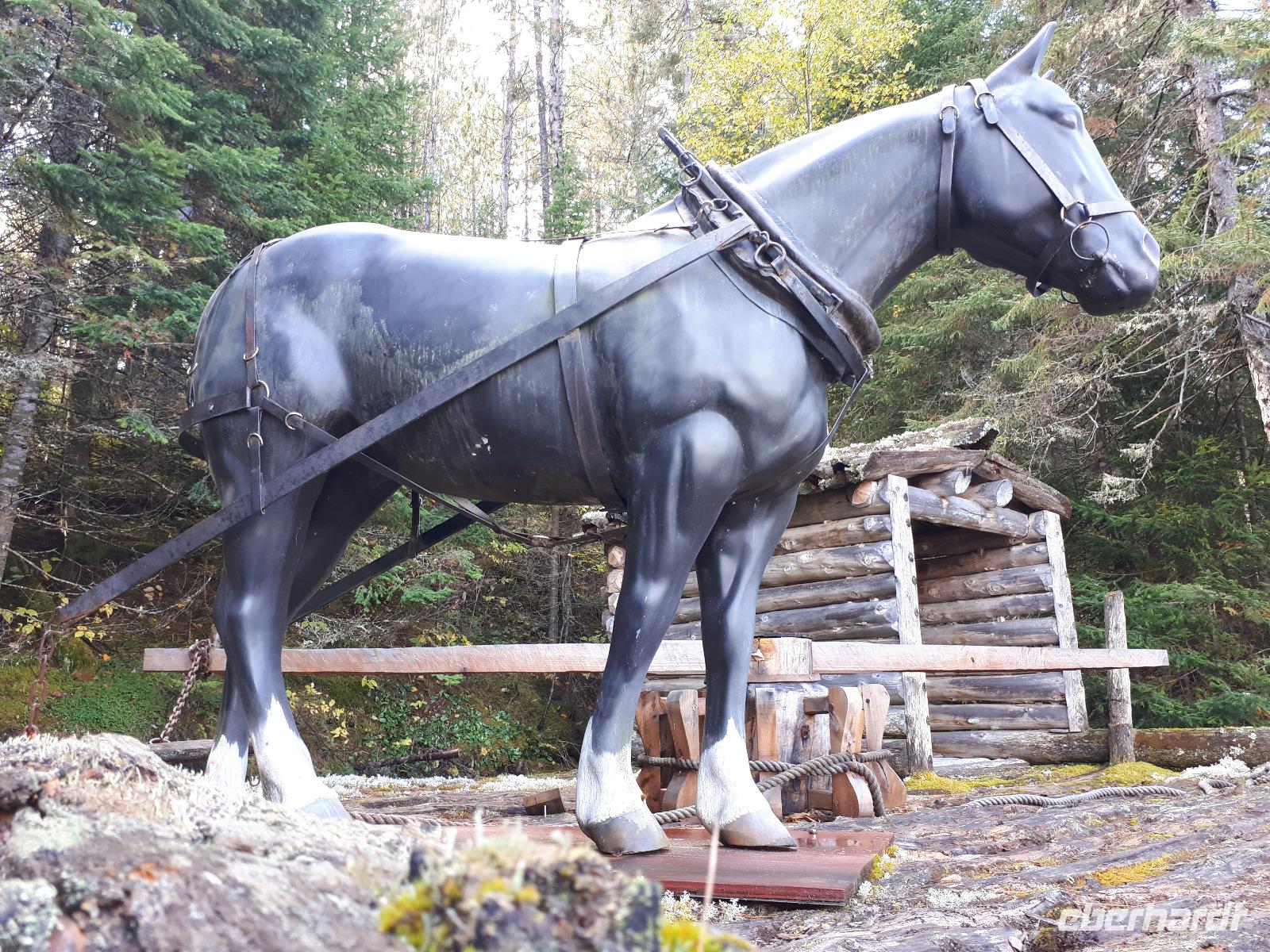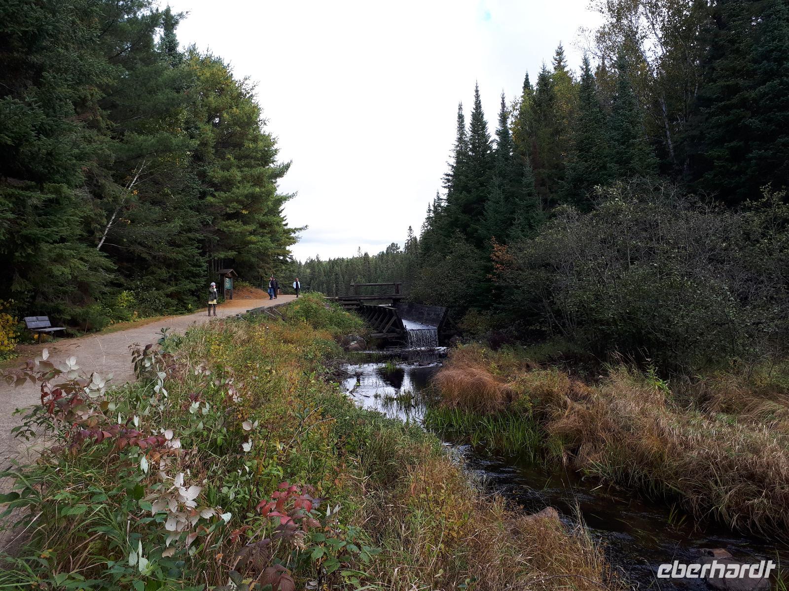 Der Tag überraschte uns mit blauem Himmel und ein paar leichten Wölkchen. Zum ersten Mal sahen wir auf Grund des sonnigen Wetters die unglaublichen Farben des Indian Summer in seiner voller Pracht. Wir fotografierten wie die Wilden, schließlich sollten die Lieben zu Hause auch dieses Wunderwerk der Natur sehen können. Bevor wir den Naturpark verließen, hielten wir noch am Besucherzentrum des Algonquin Parks. Hier konnten wir die heimische Tierwelt nicht nur sehen sondern auch hören und bei einem kurzen Film einen Eindruck über die wunderschönen Landschaften zu den unterschiedlichen Jahreszeiten bekommen.