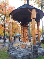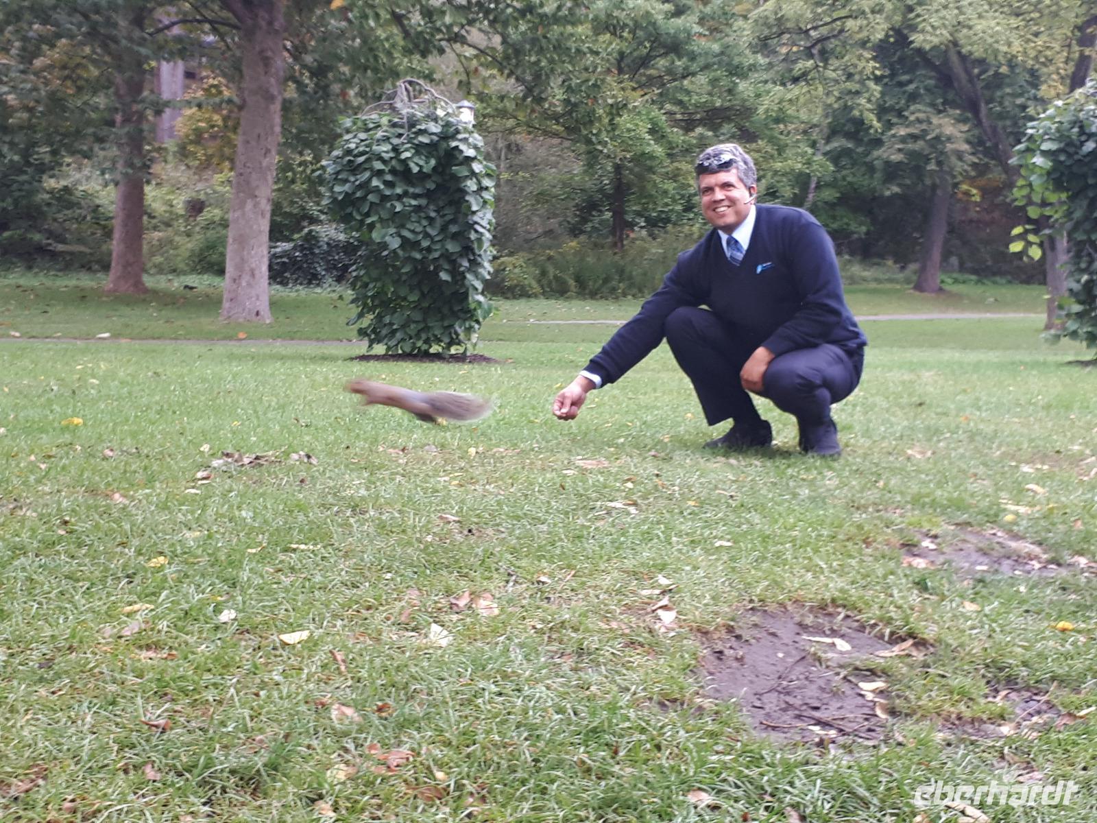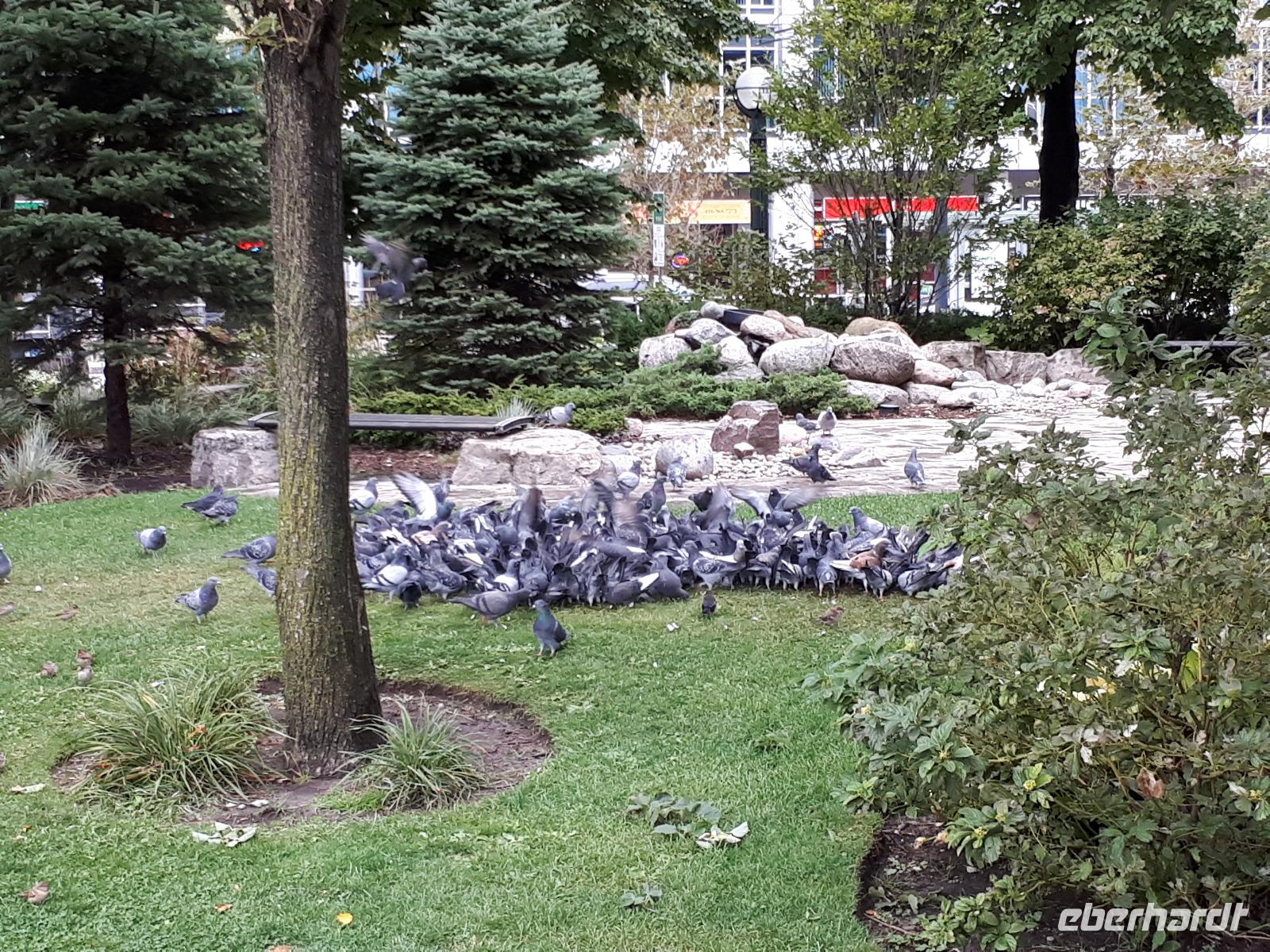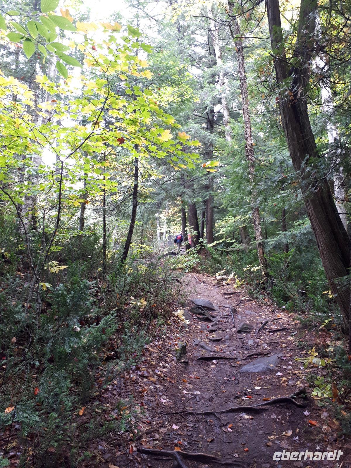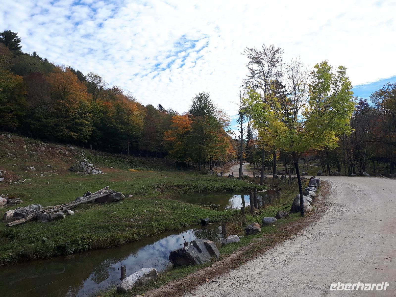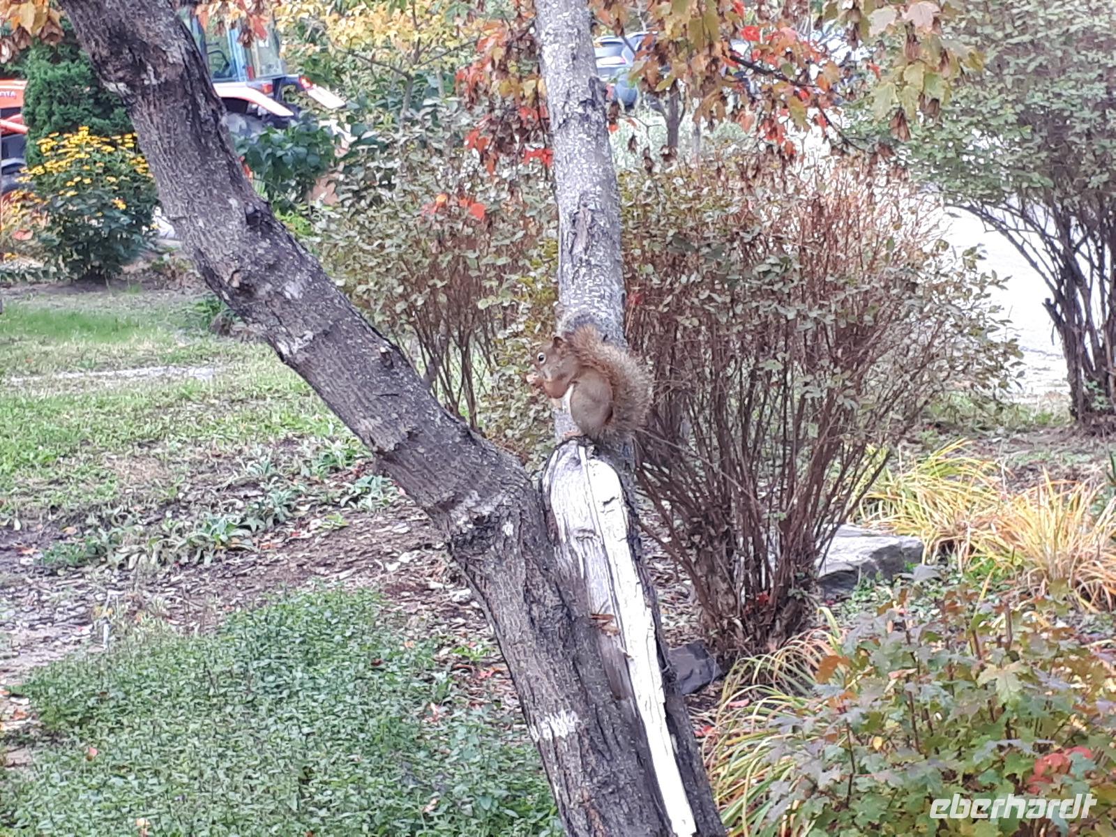 Der Tag überraschte uns mit blauem Himmel und ein paar leichten Wölkchen. Zum ersten Mal sahen wir auf Grund des sonnigen Wetters die unglaublichen Farben des Indian Summer in seiner voller Pracht. Wir fotografierten wie die Wilden, schließlich sollten die Lieben zu Hause auch dieses Wunderwerk der Natur sehen können. Bevor wir den Naturpark verließen, hielten wir noch am Besucherzentrum des Algonquin Parks. Hier konnten wir die heimische Tierwelt nicht nur sehen sondern auch hören und bei einem kurzen Film einen Eindruck über die wunderschönen Landschaften zu den unterschiedlichen Jahreszeiten bekommen.