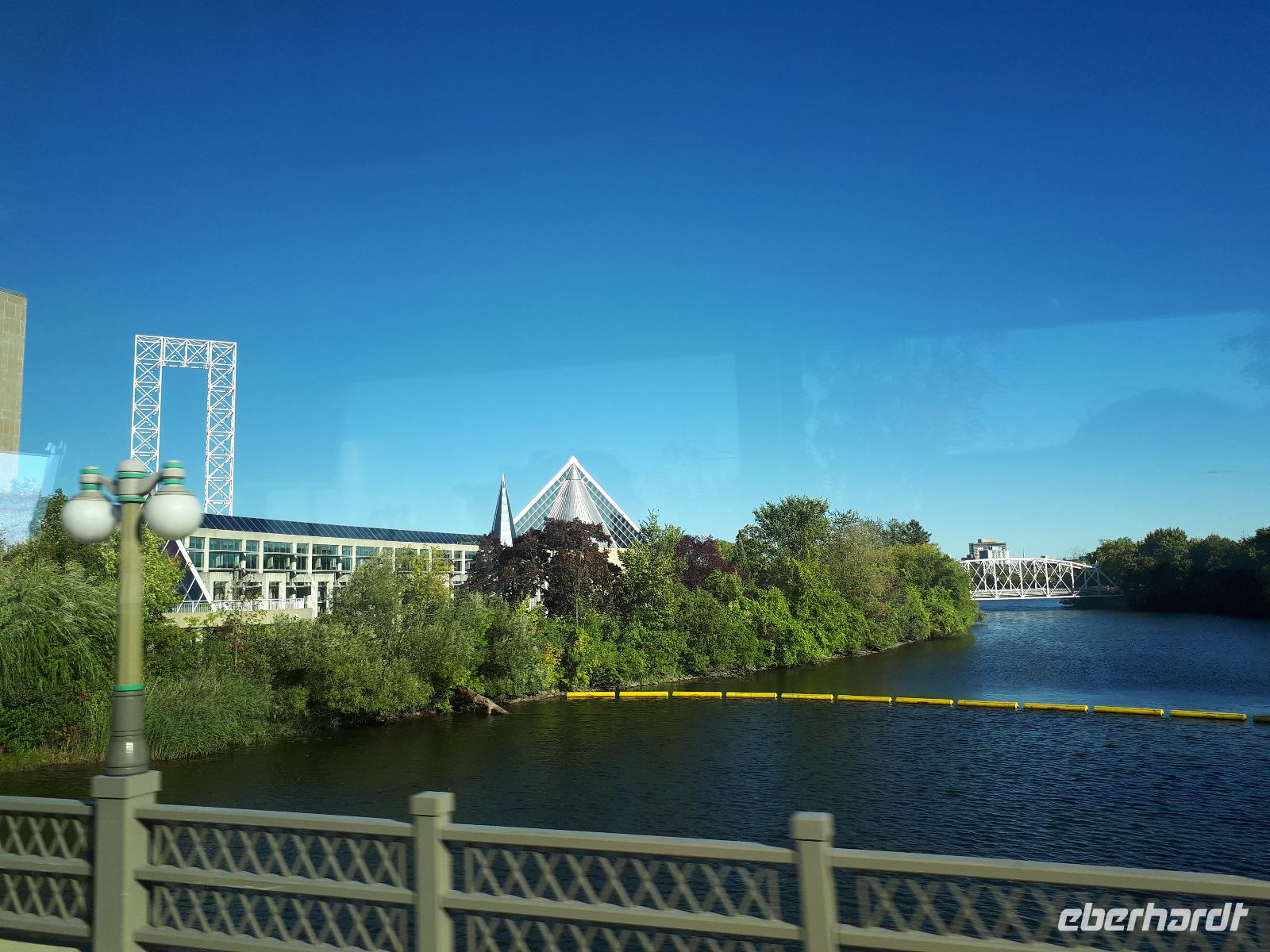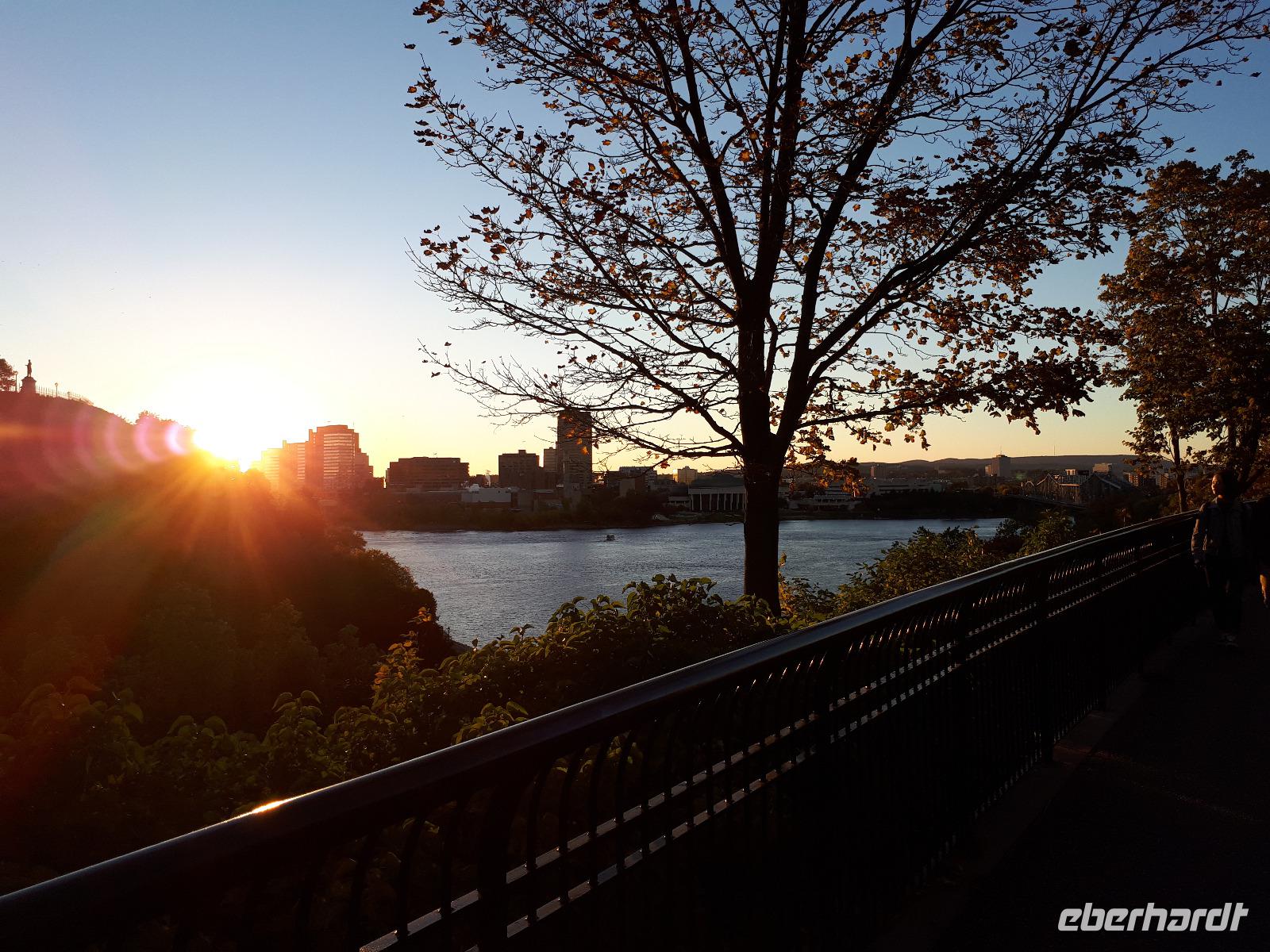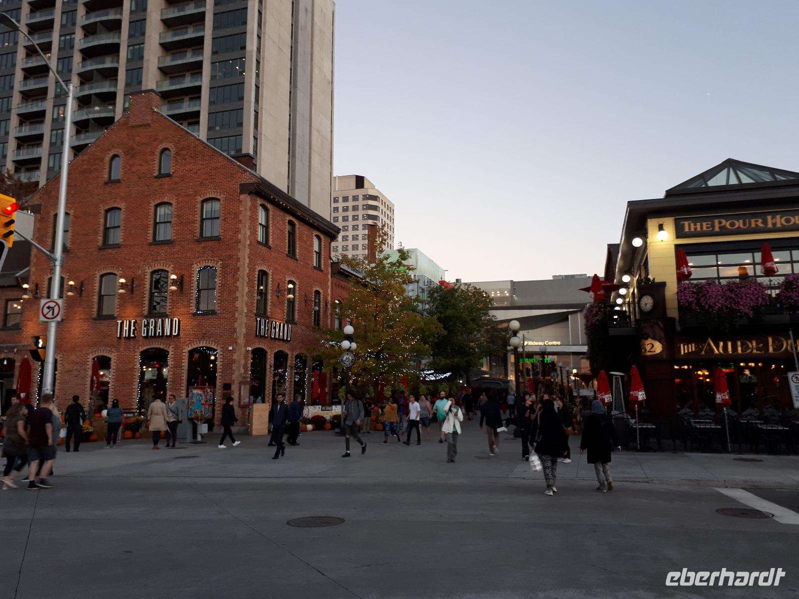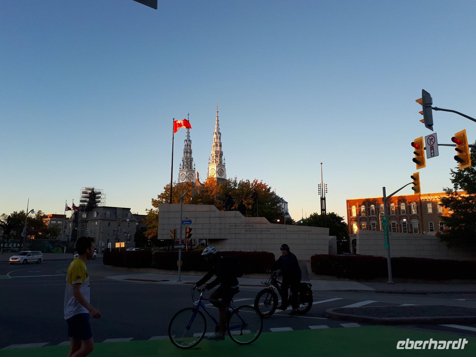 Im Anschluss fuhren wir zu dem unweit entfernten Logging Trail. Während wir auf dem Weg der Holzfäller schlenderten, erzählte uns Christine, wie in früherer Zeit gelebt und vor allem das Holz bearbeitet wurde. Die Bäume wurden damals während des kalten Winters gefällt und im Frühjahr mit der Schneeschmelze auf dem Wasserweg nach Ottawa bzw. Montréal gebracht. Ottawa war auch unser nächstes Ziel, welches wir nach einer langen Fahrt erreichten. Wir erreichten die kanadische Hauptstadt in der Rush Hour, sodass wir unsere Stadtrundfahrt im Viertel der Botschaften beendeten und zum Hotel fuhren. Nach einer kleinen Auszeit unternahmen wir einen Spaziergang in der Innenstadt um das Parlamentsgebäude und durch den Major´s Hill Park, sahen prächtige Gebäude im viktorianischen Stil wie das Hotel Château Laurier und überquerten eine der acht Schleusen des Rideau-Kanals. Der Kanal verbindet den Fluss mit dem Lake Ontario und im Winter ist er die größte natürlichste gefrorene Eislaufbahn der Welt. Unser Bummel führte uns weiter vorbei an der Nationalgalerie und der Kathedralbasilika Notre Dame in das lebhafte Viertel ByWard Market, welches zu den ältesten Vierteln Ottawas gehört und nach Oberstleutnant John By genannt wurde. Hier aßen wir im Fish Market zu Abend und wer wollte, konnte anschließend noch das Viertel auf eigene Faust erkunden.