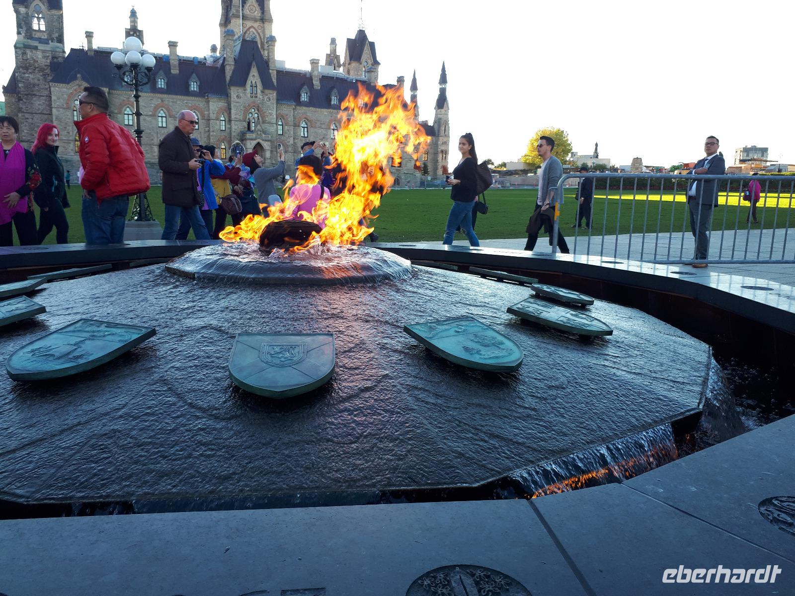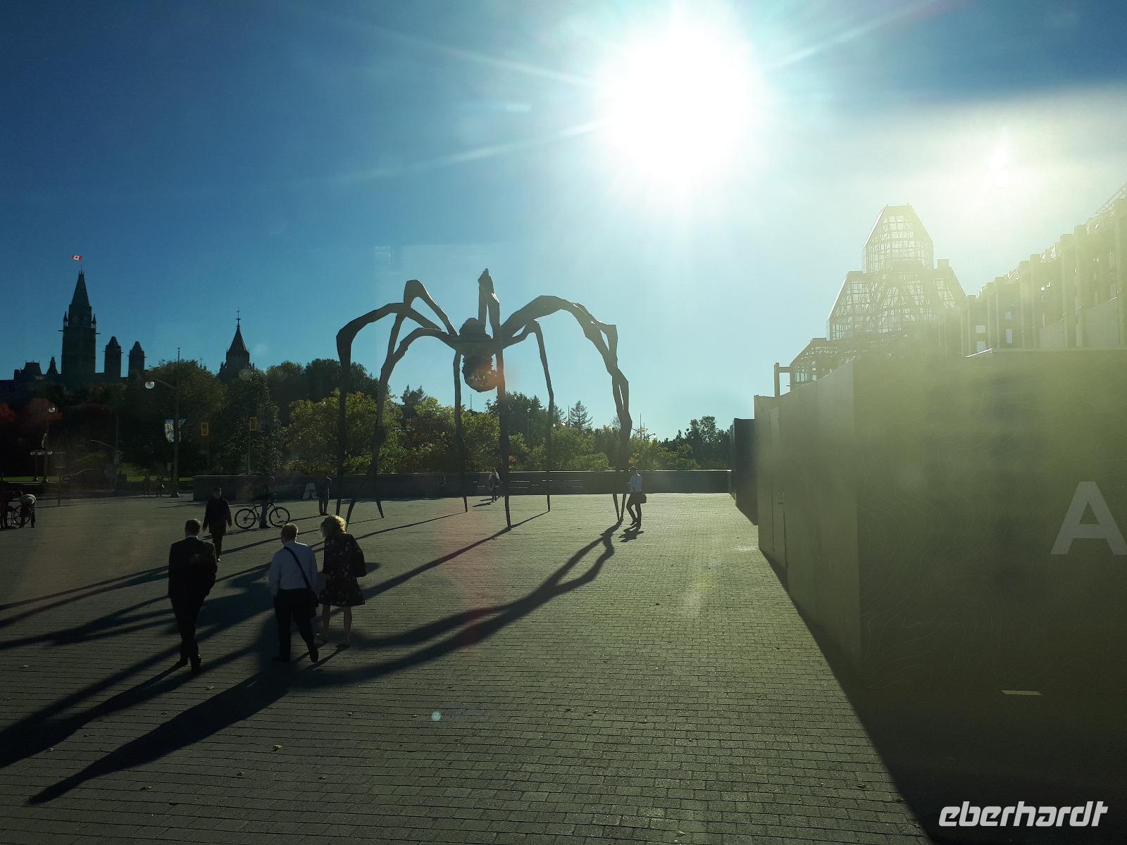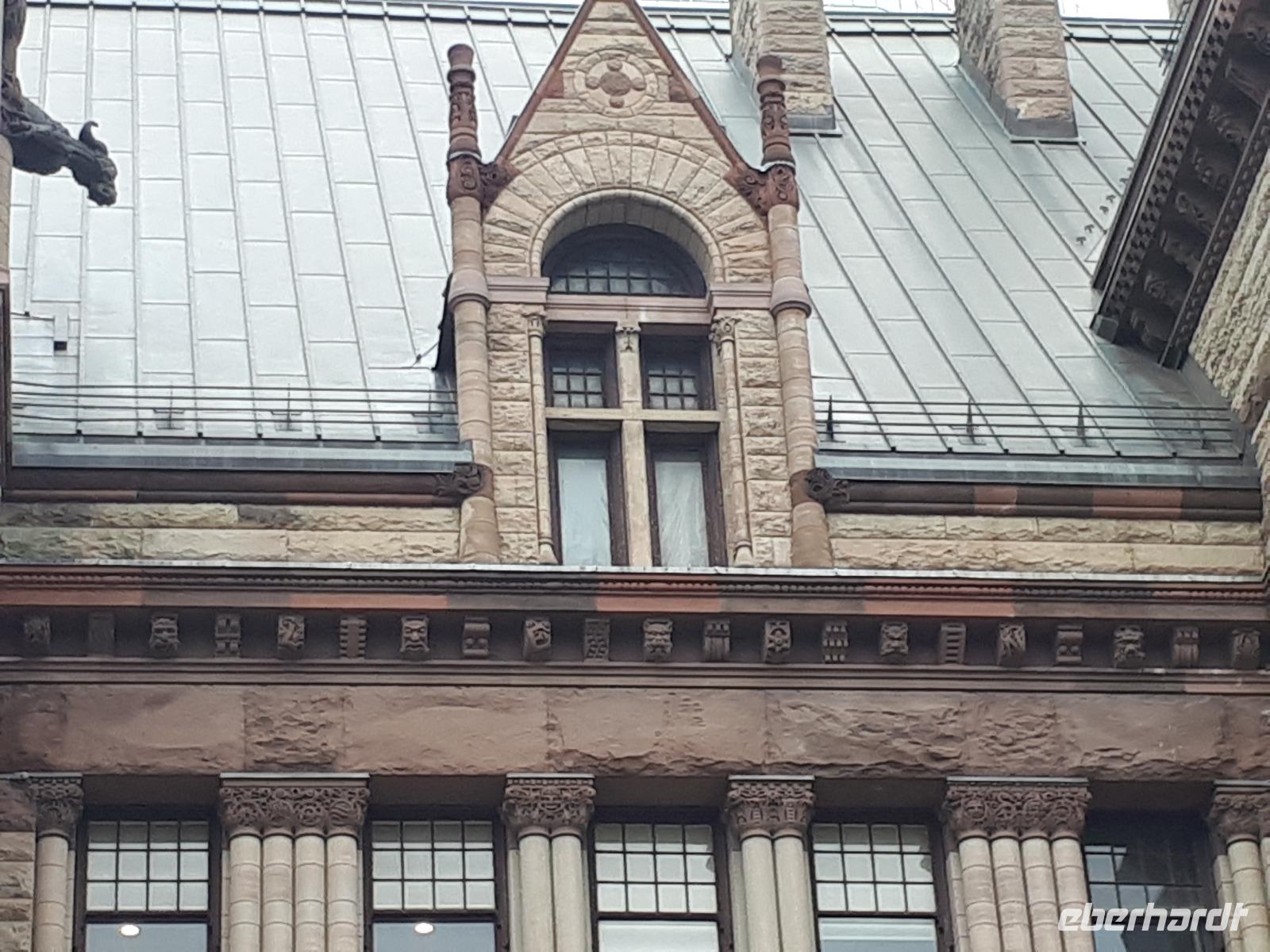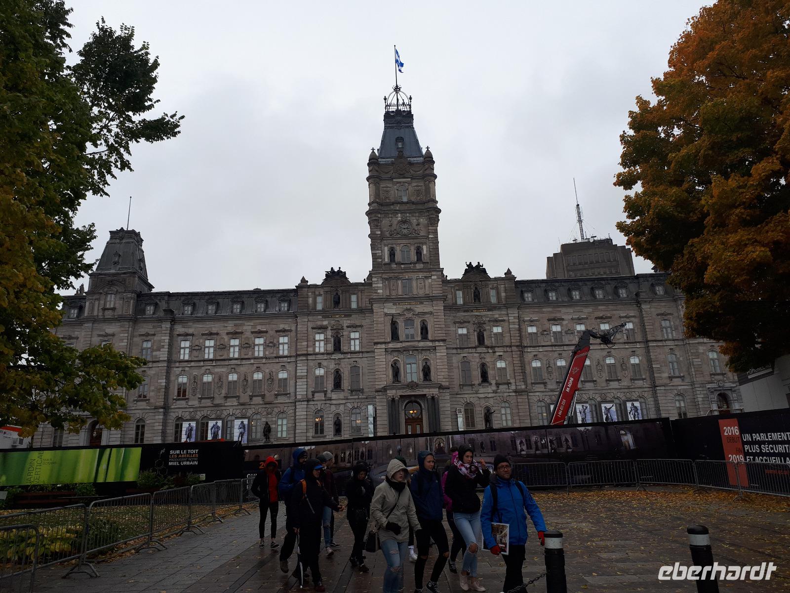Im Anschluss fuhren wir zu dem unweit entfernten Logging Trail. Während wir auf dem Weg der Holzfäller schlenderten, erzählte uns Christine, wie in früherer Zeit gelebt und vor allem das Holz bearbeitet wurde. Die Bäume wurden damals während des kalten Winters gefällt und im Frühjahr mit der Schneeschmelze auf dem Wasserweg nach Ottawa bzw. Montréal gebracht. Ottawa war auch unser nächstes Ziel, welches wir nach einer langen Fahrt erreichten. Wir erreichten die kanadische Hauptstadt in der Rush Hour, sodass wir unsere Stadtrundfahrt im Viertel der Botschaften beendeten und zum Hotel fuhren. Nach einer kleinen Auszeit unternahmen wir einen Spaziergang in der Innenstadt um das Parlamentsgebäude und durch den Major´s Hill Park, sahen prächtige Gebäude im viktorianischen Stil wie das Hotel Château Laurier und überquerten eine der acht Schleusen des Rideau-Kanals. Der Kanal verbindet den Fluss mit dem Lake Ontario und im Winter ist er die größte natürlichste gefrorene Eislaufbahn der Welt. Unser Bummel führte uns weiter vorbei an der Nationalgalerie und der Kathedralbasilika Notre Dame in das lebhafte Viertel ByWard Market, welches zu den ältesten Vierteln Ottawas gehört und nach Oberstleutnant John By genannt wurde. Hier aßen wir im Fish Market zu Abend und wer wollte, konnte anschließend noch das Viertel auf eigene Faust erkunden.