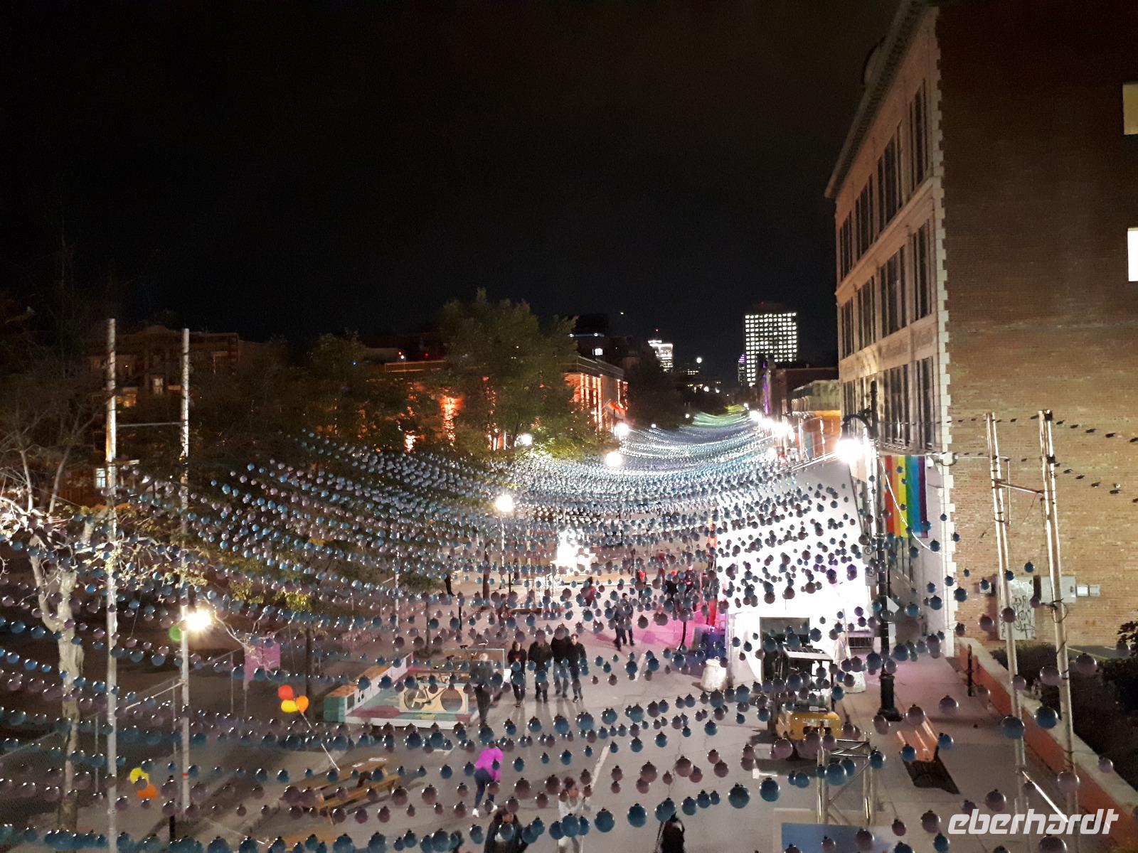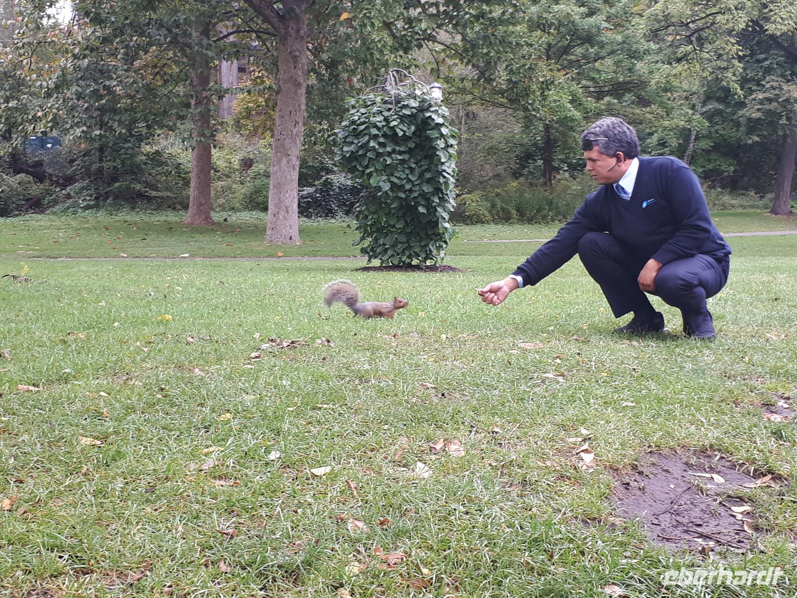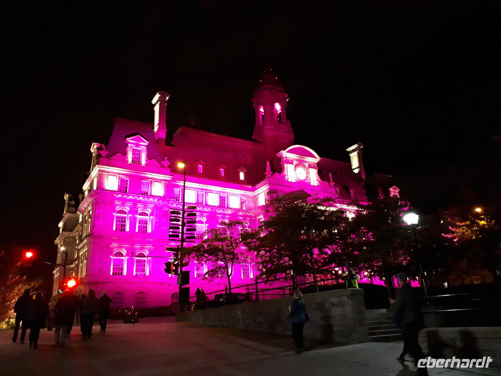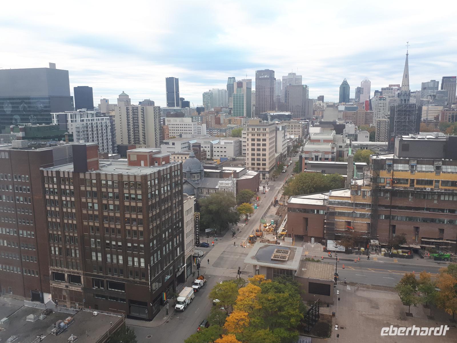 Beim Frühstück hatten wir dafür etwas zu erzählen. Kommt so etwas doch nicht alle Tage vor. Gut gelaunt stiegen wir in unseren Bus und setzten mit Christine und José die vom Vortag abgebrochene Stadtrundfahrt fort. Auf der anderen Seite des Ottawa River in Gatineau (und damit in der Provinz Quebec) hielten wir am außergewöhnlichen Canadian Museum of History, welches die Geschichte der First Nations und der europäischen Besiedelung Kanadas sehr anschaulich darstellt. Im Inneren bewunderten wir die Totempfähle von weitem, welche uns aber trotzdem mit ihrer Größe beeindruckten. Entlang des Rideau-Kanals verließen wir Ottawa und setzten unsere Reise in den Norden fort. Nach ca. einer Stunde erreichten wir den Omega-Tierpark bei Montebello. In diesem privaten Wildpark leben fast alle wichtigen Säugetierarten, die in Kanada heimisch sind. Wir kauften einige Beutel mit Karotten und wechselten unser Gefährt. Der Parkbus hatte offenen Fenster, was uns bessere Bilder und einen tiefen Augenkontakt mit den Tieren erlaubte. Auf unserer Tour sahen wir zahlreiche majestätische Hirsche, Rehe, Wildschweine, einen Elch, Wölfe, Eisfüchse, hungrige Koyoten, Moschusochsen und mächtige Bisons. Am Ende warteten sogar Schwarzbären auf uns (bzw. die vom Fahrer verteilten Leckerbissen). Nachdem wir nun die Tiere gefüttert hatten, wollten wir uns auch um unser eigenen knurrenden Magen kümmern. Ein tolles Mittagsbuffet wartete im mondänen Hotel Fairmont Le Chateau Montebello auf uns. Das im kanadischen Blockhüttenstil errichtete Gebäude mit seinem turmhohen Kamin beeindruckte uns schon ein wenig. Nach dem guten Essen kam uns die folgende zweistündige Fahrt nach Montreal nur entgegen. Sicher fuhr uns José in die Metropole zum Hotel in der Innenstadt. Wir alle hatten Zimmer mit einem tollen Ausblick auf die größte Stadt der Region Quebec. Zum individuellen Abendessen schlenderten wir gemeinsam mit Christine in die Altstadt und erkundeten anschließend die beleuchteten Straßen.