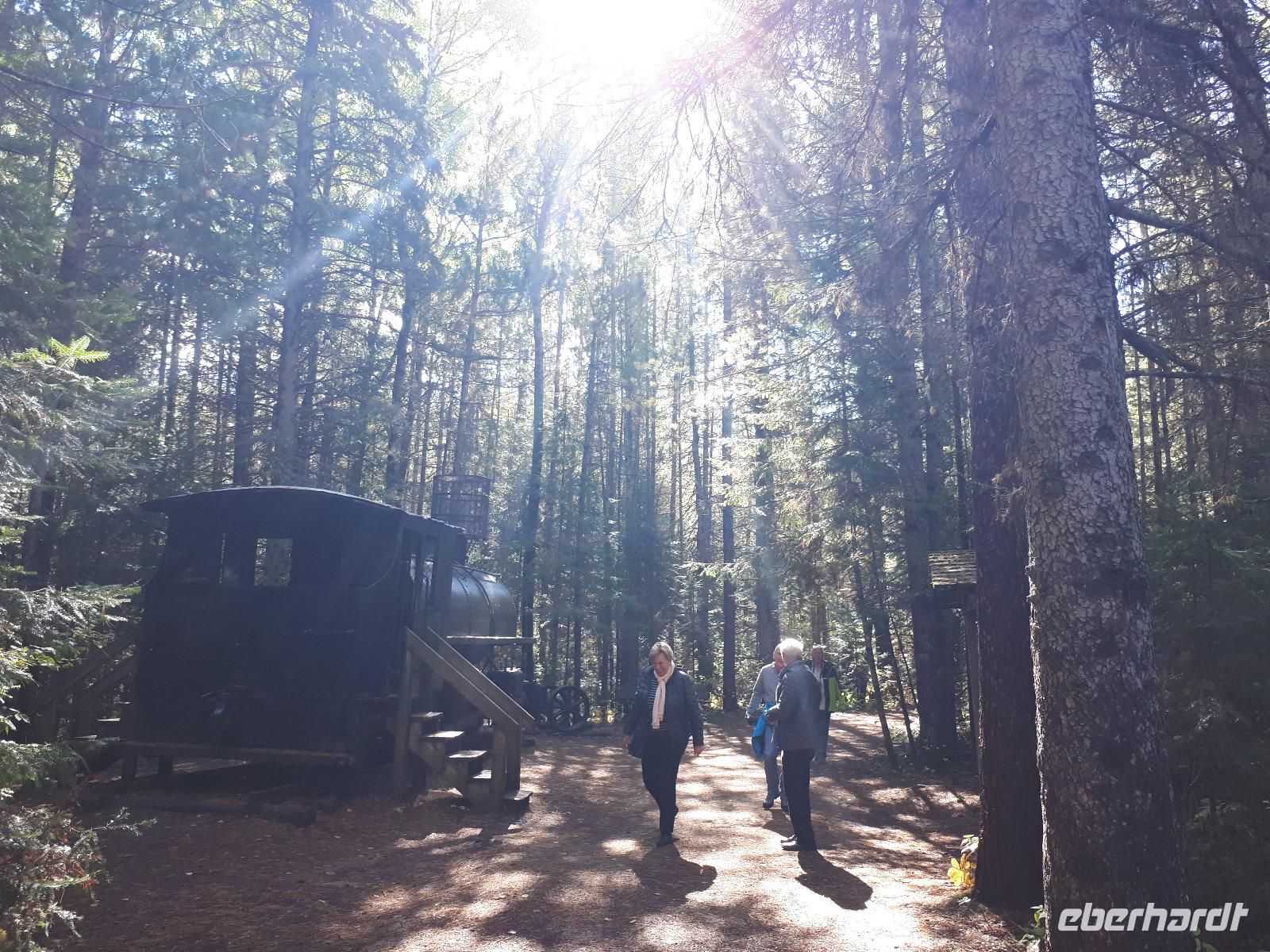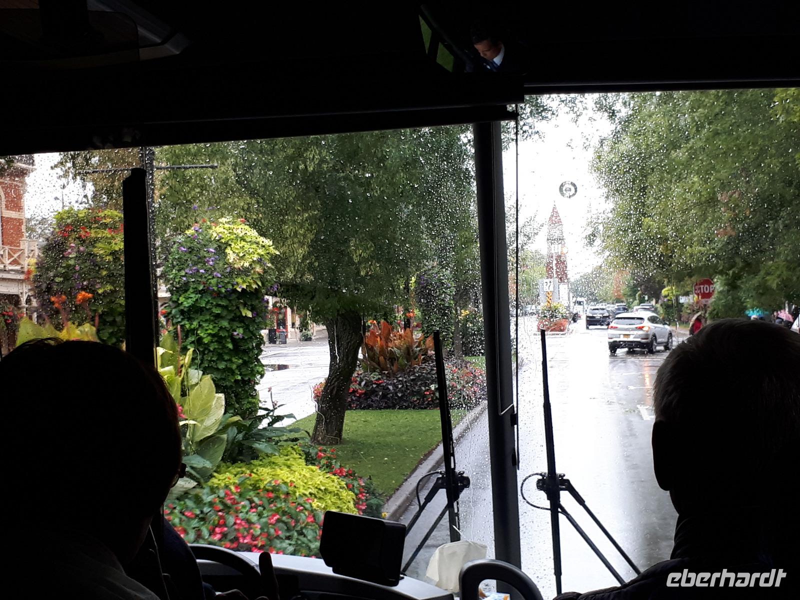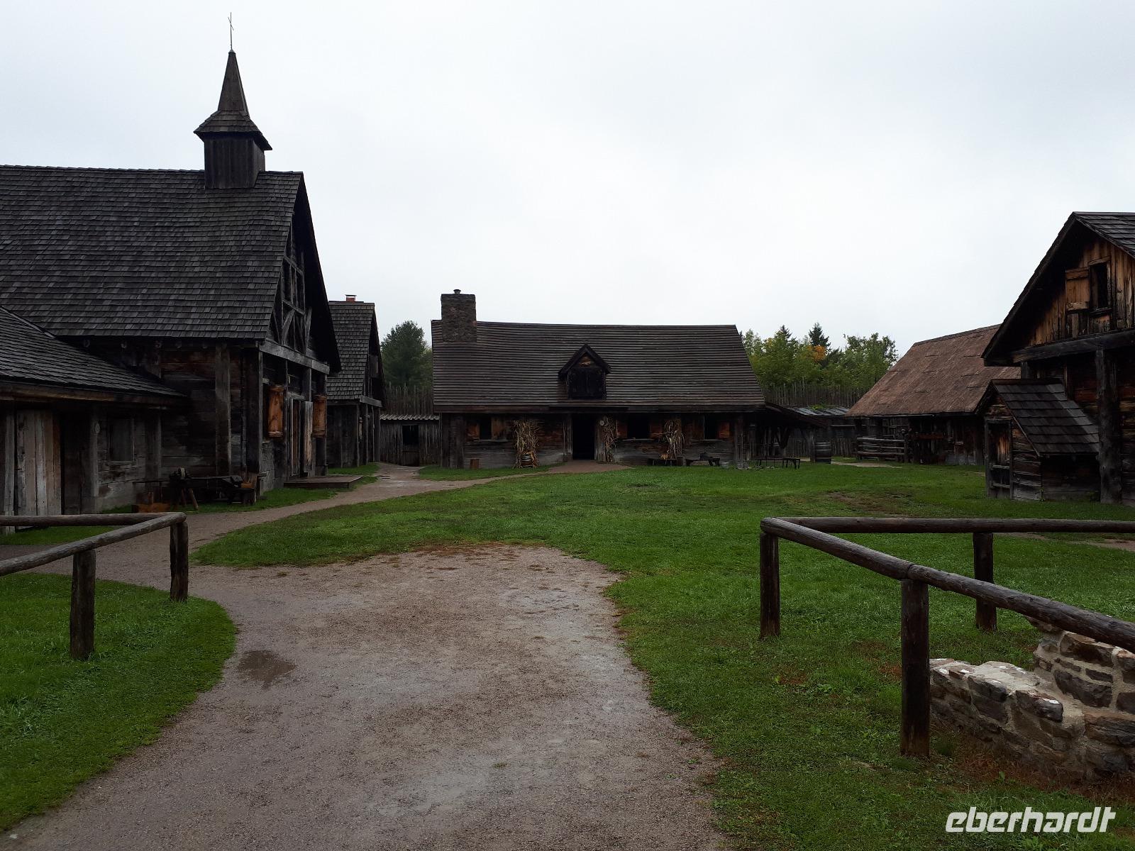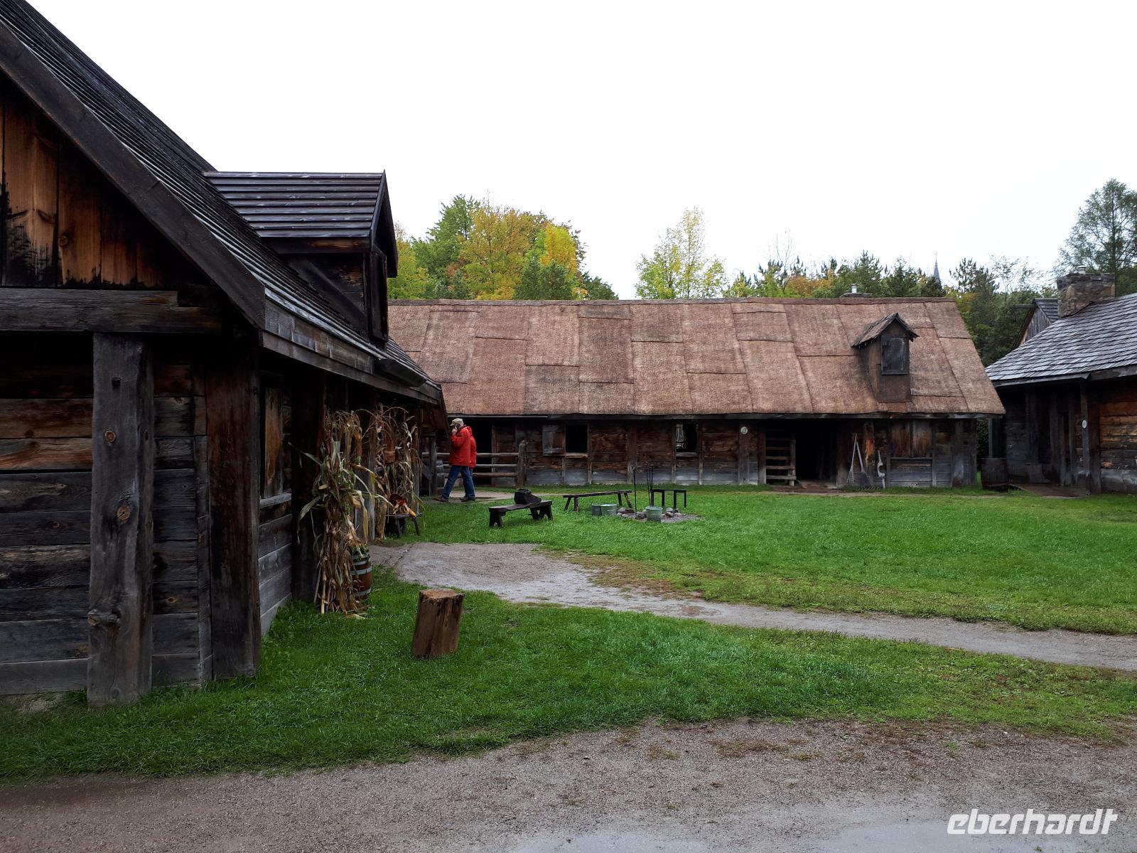 Leider erwartete uns am heutigen Tag verregnetes Wetter. Gut, dass wir schon am Vortag die Bootstour zu den Fällen unternommen hatten. Wir starteten vorbei an den Stromschnellen, dem berühmten Wasserkraftwerk und der größten weltweiten Blumenuhr Richtung Niagara on the Lakes. Unterwegs stoppten wir an der wohl kleinsten Kapelle der Welt, der Living Water Wayside Kapelle und durchfuhren schließlich das kleine süße Städtchen. Diese Region ist ebenfalls für seinen Eiswein bekannt. Neben den Provinzen Quebec, Nova Scotia und British Columbia verfügt nur Ontario über die nötigen Wetterbedingungen, unter denen die Trauben direkt am Weinstock einfrieren können. Dieses exklusive Getränk wollten wir nun auch probieren und so hielten wir spontan an einer Kelterei und ließen uns die angebotenen Köstlichkeiten schmecken. Nach einem weiteren Stopp in einem Shop für alle nur denkbaren Erdnuss-Variationen setzten wir unsere Fahrt in den Norden nach Sainte-Marie among the Hurons fort. Diese historische Festung war im 17. Jahrhundert das Hauptquartier der französischen Jesuiten-Mission und war die erste europäische Gemeinschaft Ontarios. Wir spazierten durch das ehemalige Missions-Dorf und konnten uns anschaulich vorstellen, wie die Franzosen mit den Wendat-Indianern zusammenlebten. Am Abend erreichten wir unser Hotel in Huntsville direkt am Lake Peninsula.