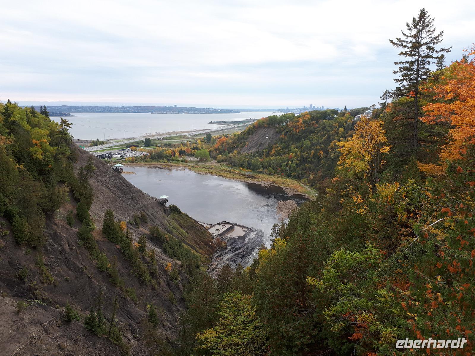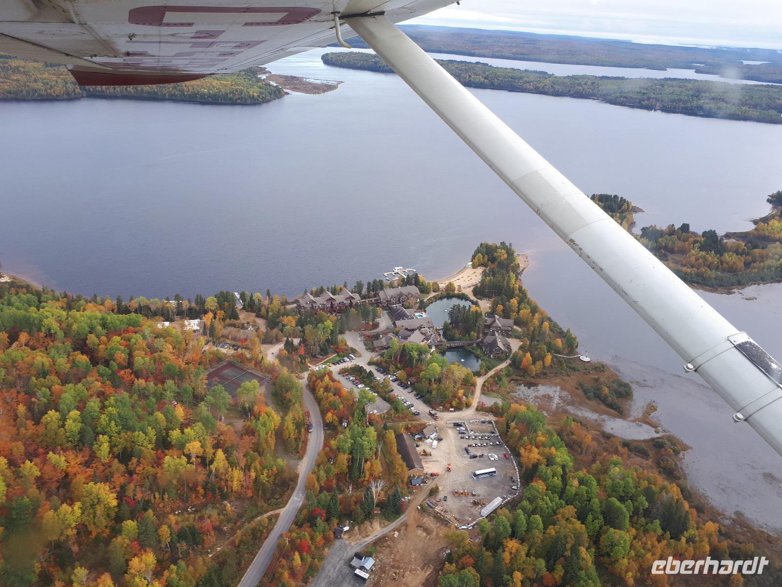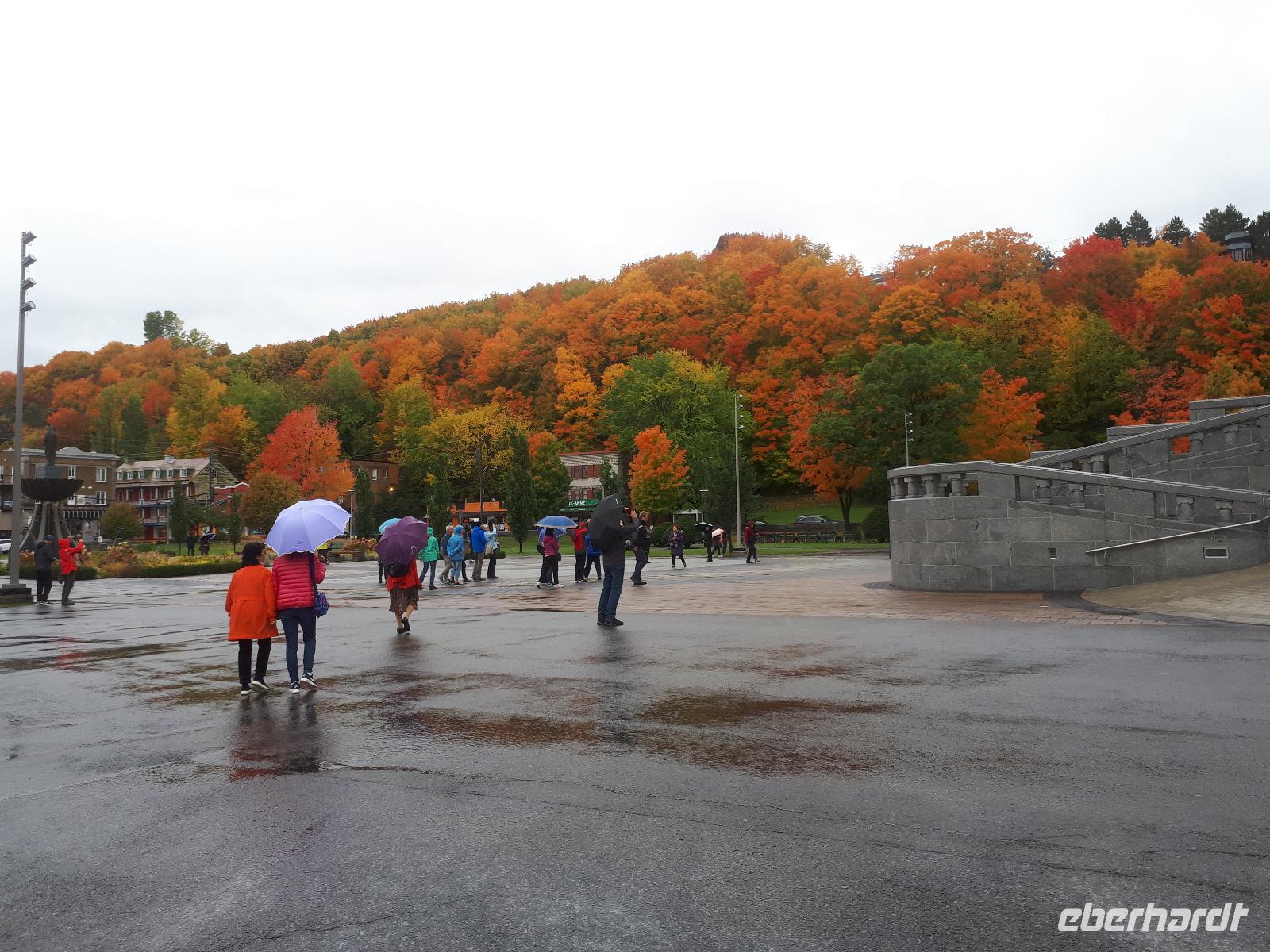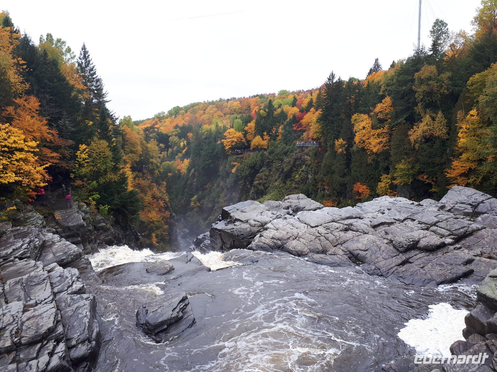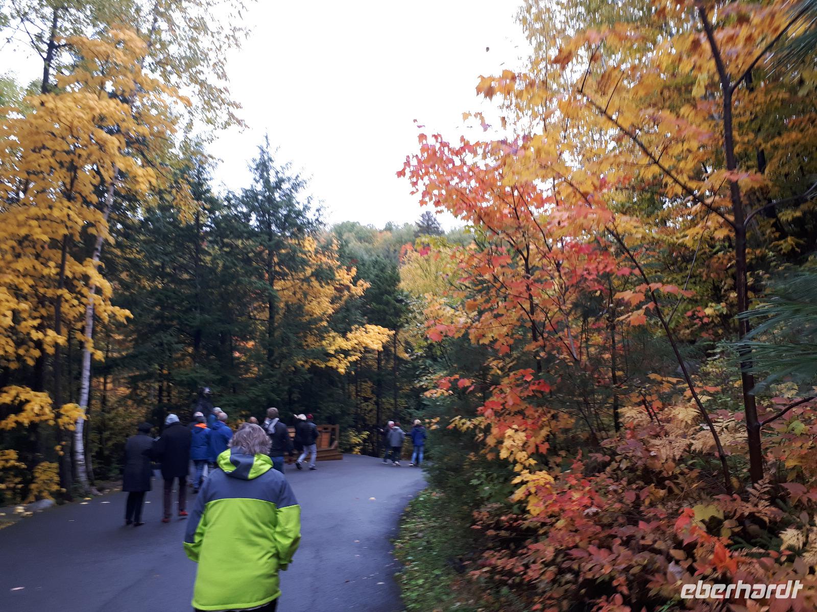 Der heutige Morgen begann für einige Gäste sehr spannend. Ein lange geplanter Flug mit einem Wasserflugzeug stand als erster Tagespunkt auf dem Programm. In drei Durchgängen flog uns der Pilot über die prächtige farbenfrohe Landschaft. Sprachlos von der Schönheit des Indian Summers stiegen alle mit einem breiten Lächeln auf dem Gesicht aus der kleinen Cessna. Nun noch schnell gefrühstückt und unsere Rundreise in den Norden Kanadas konnte fortgesetzt werden. Unser Tagesziel war La Malbaie am Nordufer des Sankt-Lorenz-Stroms. Um die lange Strecke etwas aufzulockern hielten wir unterwegs an der Basilika Notre-Dame-du-Cap am Cap-de-la-Madeleine, eine beeindruckende römisch-katholische Kirche und Nationalheiligtum, welches der Jungfrau Maria geweiht ist. Für uns war aber die alte Steinkirche interessant, welche neben der neu erbauten Basilika steht und der Königin des Allerheiligsten Rosenkranzes geweiht ist. Die Tränen der innen stehenden Marienfigur sollen besondere Kräfte haben, daher entwickelte sich die Kirche ab 1883 zur Wallfahrtskirche. Leider sahen wir keine der berühmten Tränen und so setzten wir unsere Fahrt entlang des Sankt-Lorenz-Stroms fort, passierten Quebec und hielten an den Montmorency-Wasserfällen, die sogar 30 Meter höher als die Niagara-Fälle sind. Wir spazierten zu den Wasserfällen und überquerten diese über eine Hängebrücke, auf der wir die gewaltigen Wassermassen in den tiefen Abgrund stürzen sahen. Um auf der anderen Seite das Flusstal zur erreichen, mussten wir 465 Stufen abwärts bewältigen. Aber das kam uns nur entgegen. Saßen wir doch bereits den ganzen Tag im Bus. Entlang des Chemin de Roy, des Königswegs, setzten wir unsere Fahrt auf einer landschaftlich beeindruckenden Küstenstraße fort und erreichten unser Hotel in La Malbaie. Den Abend ließen wir gemeinsam an der Hotelbar ausklingen.