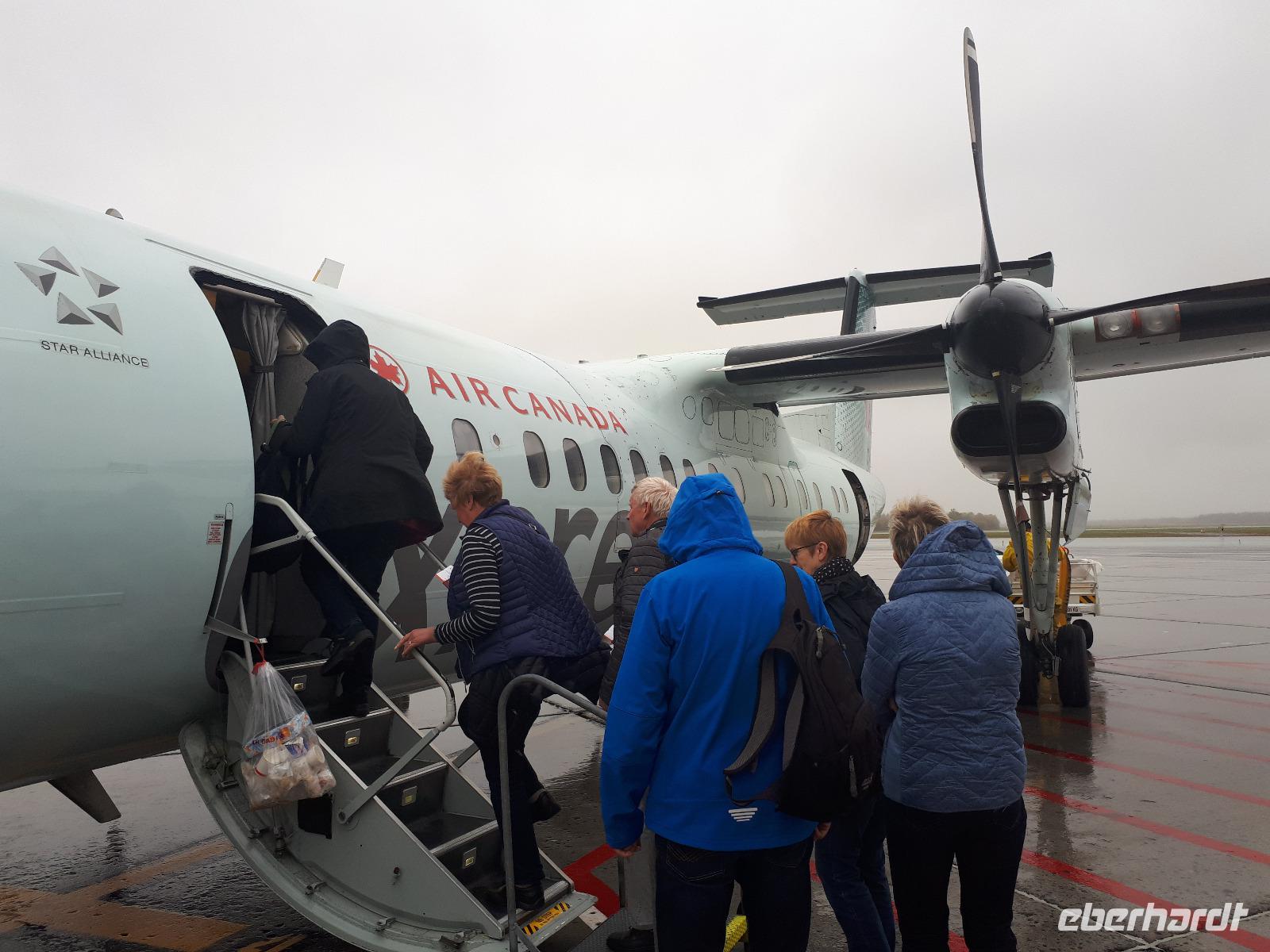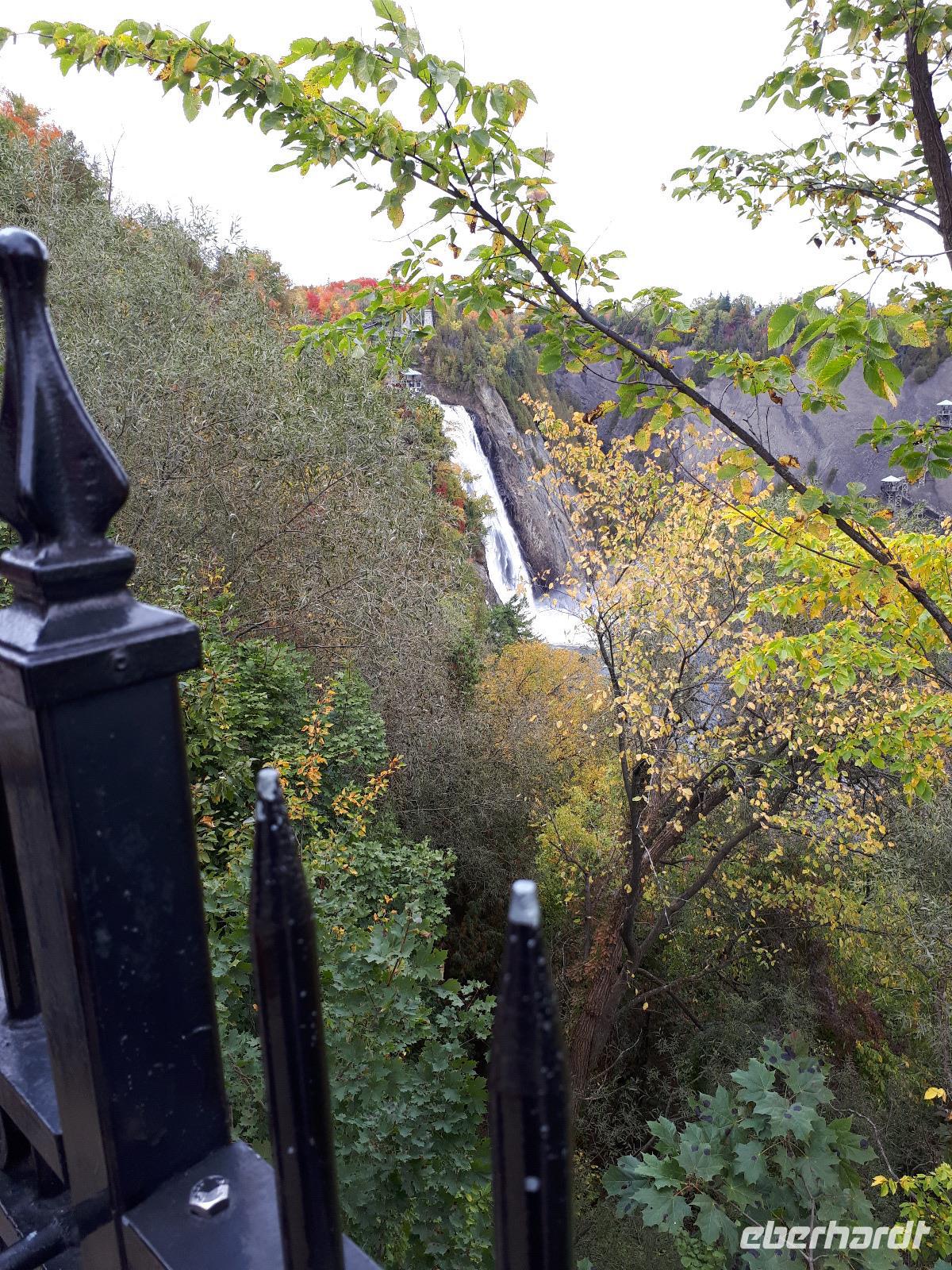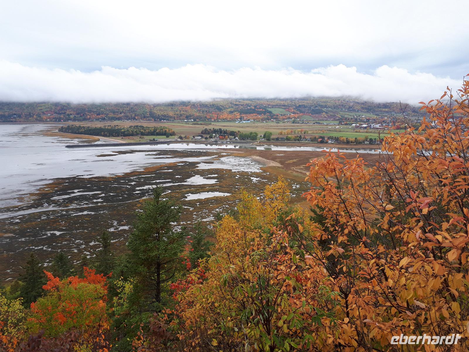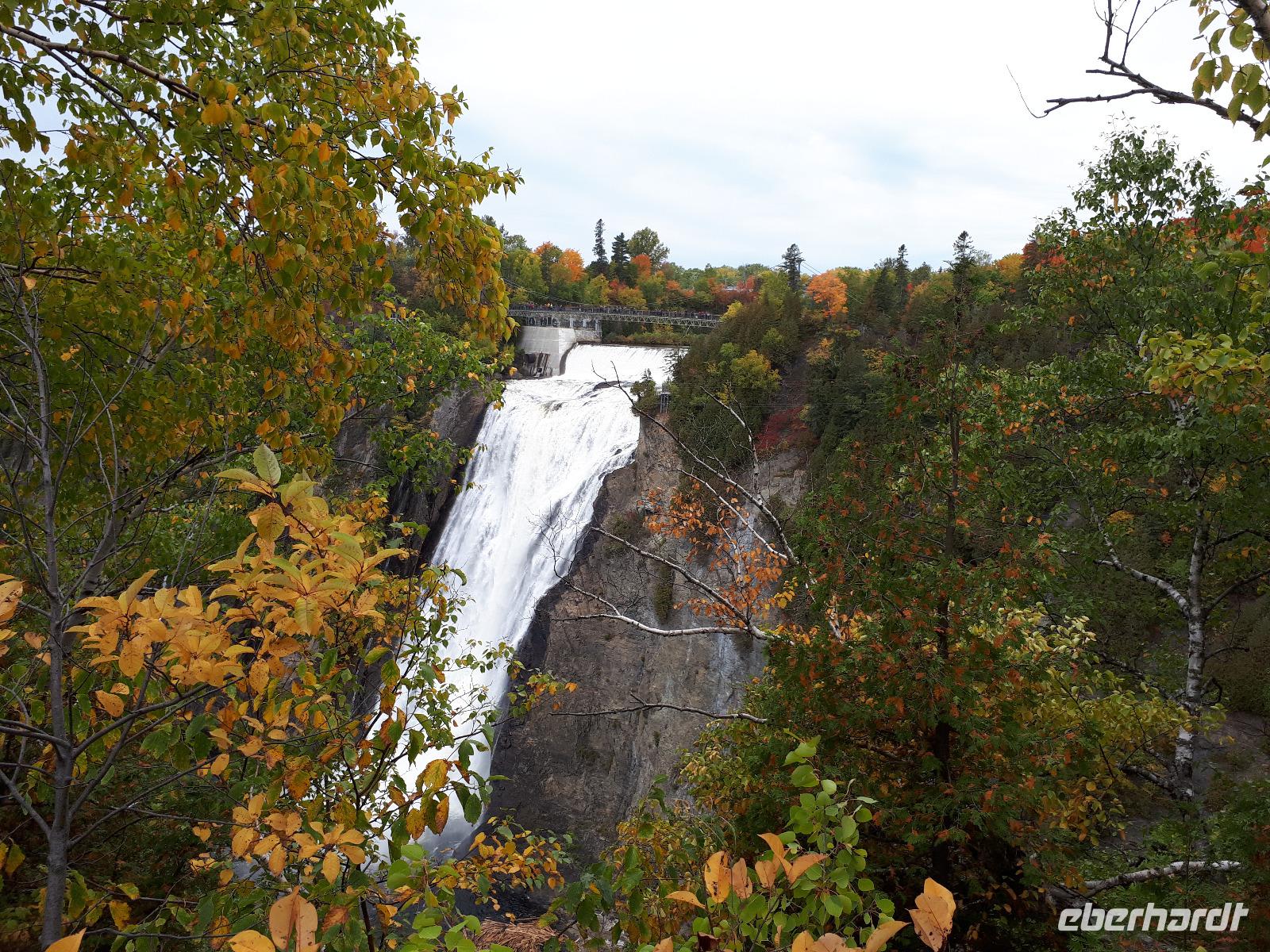 Der heutige Morgen begann für einige Gäste sehr spannend. Ein lange geplanter Flug mit einem Wasserflugzeug stand als erster Tagespunkt auf dem Programm. In drei Durchgängen flog uns der Pilot über die prächtige farbenfrohe Landschaft. Sprachlos von der Schönheit des Indian Summers stiegen alle mit einem breiten Lächeln auf dem Gesicht aus der kleinen Cessna. Nun noch schnell gefrühstückt und unsere Rundreise in den Norden Kanadas konnte fortgesetzt werden. Unser Tagesziel war La Malbaie am Nordufer des Sankt-Lorenz-Stroms. Um die lange Strecke etwas aufzulockern hielten wir unterwegs an der Basilika Notre-Dame-du-Cap am Cap-de-la-Madeleine, eine beeindruckende römisch-katholische Kirche und Nationalheiligtum, welches der Jungfrau Maria geweiht ist. Für uns war aber die alte Steinkirche interessant, welche neben der neu erbauten Basilika steht und der Königin des Allerheiligsten Rosenkranzes geweiht ist. Die Tränen der innen stehenden Marienfigur sollen besondere Kräfte haben, daher entwickelte sich die Kirche ab 1883 zur Wallfahrtskirche. Leider sahen wir keine der berühmten Tränen und so setzten wir unsere Fahrt entlang des Sankt-Lorenz-Stroms fort, passierten Quebec und hielten an den Montmorency-Wasserfällen, die sogar 30 Meter höher als die Niagara-Fälle sind. Wir spazierten zu den Wasserfällen und überquerten diese über eine Hängebrücke, auf der wir die gewaltigen Wassermassen in den tiefen Abgrund stürzen sahen. Um auf der anderen Seite das Flusstal zur erreichen, mussten wir 465 Stufen abwärts bewältigen. Aber das kam uns nur entgegen. Saßen wir doch bereits den ganzen Tag im Bus. Entlang des Chemin de Roy, des Königswegs, setzten wir unsere Fahrt auf einer landschaftlich beeindruckenden Küstenstraße fort und erreichten unser Hotel in La Malbaie. Den Abend ließen wir gemeinsam an der Hotelbar ausklingen.