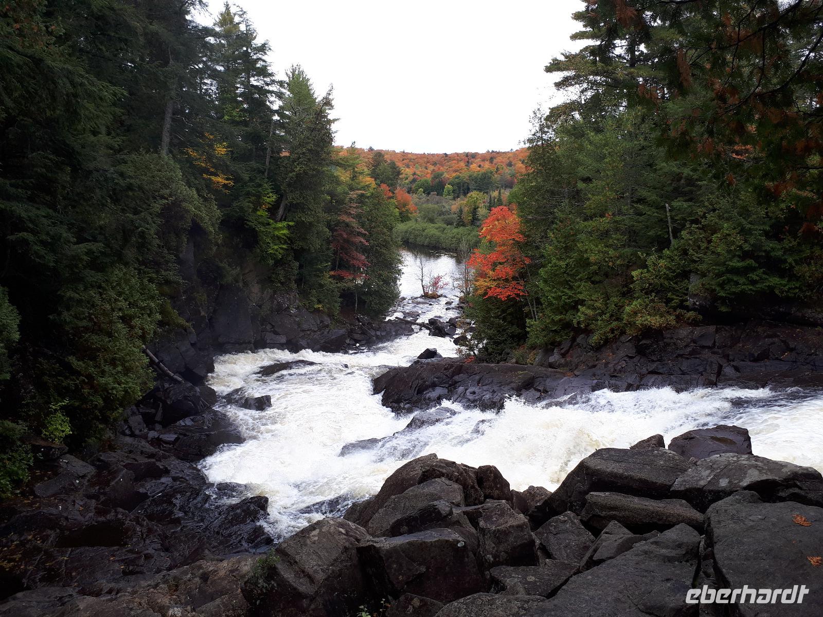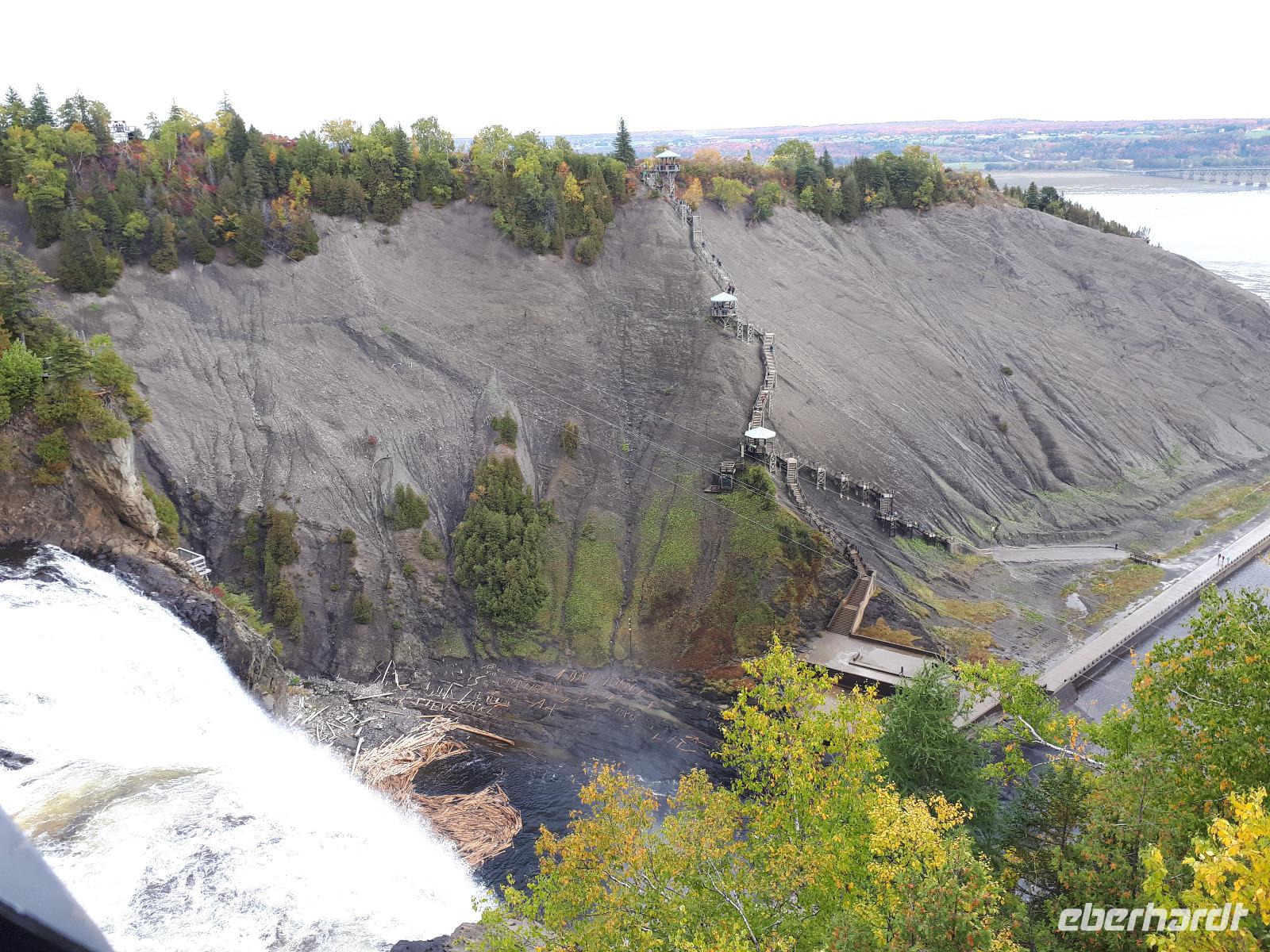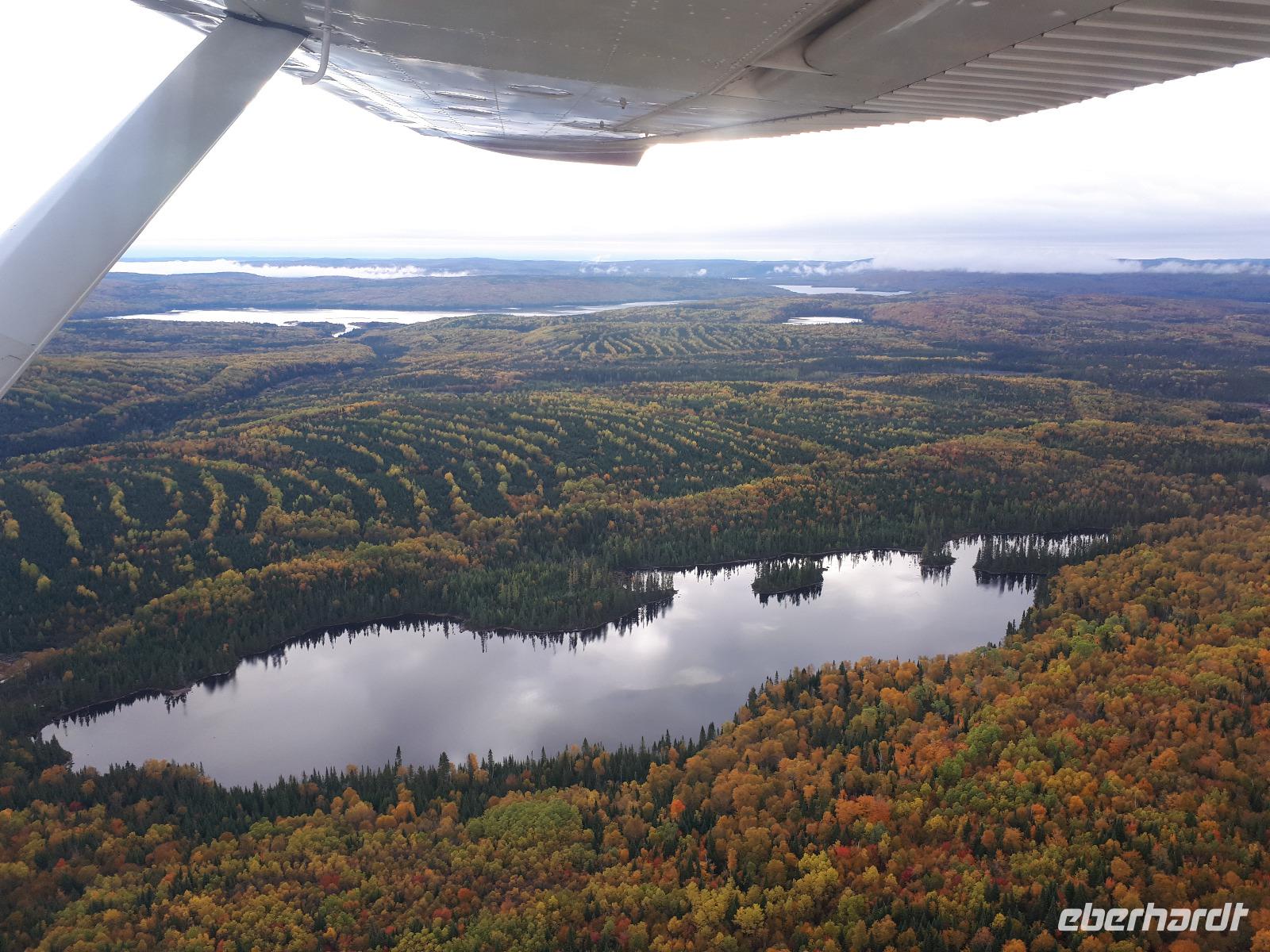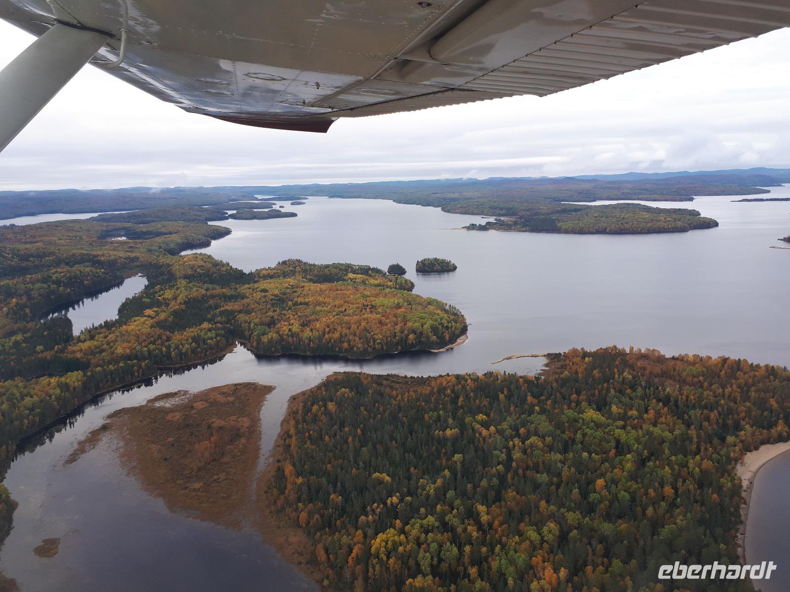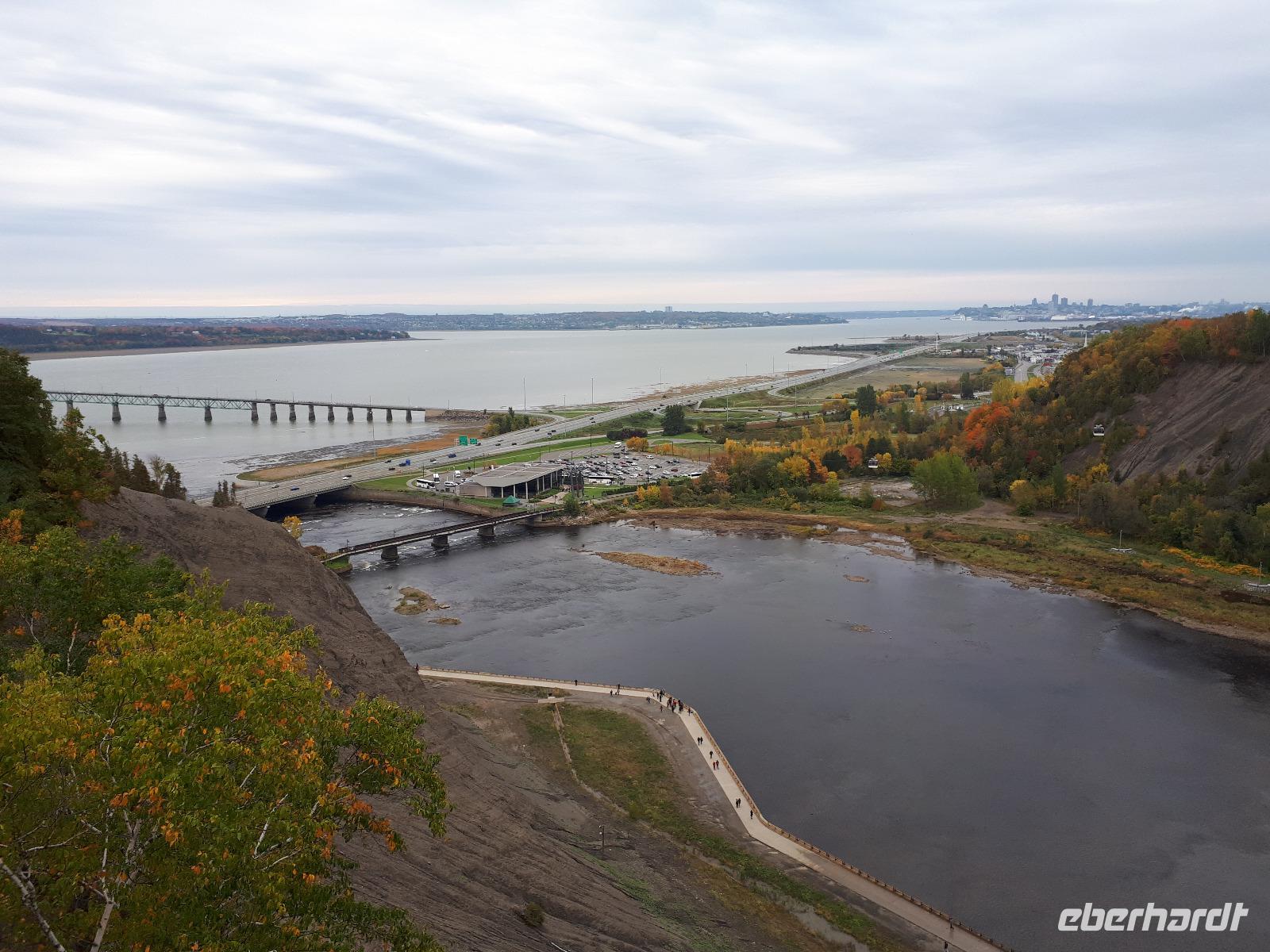 Der heutige Morgen begann für einige Gäste sehr spannend. Ein lange geplanter Flug mit einem Wasserflugzeug stand als erster Tagespunkt auf dem Programm. In drei Durchgängen flog uns der Pilot über die prächtige farbenfrohe Landschaft. Sprachlos von der Schönheit des Indian Summers stiegen alle mit einem breiten Lächeln auf dem Gesicht aus der kleinen Cessna. Nun noch schnell gefrühstückt und unsere Rundreise in den Norden Kanadas konnte fortgesetzt werden. Unser Tagesziel war La Malbaie am Nordufer des Sankt-Lorenz-Stroms. Um die lange Strecke etwas aufzulockern hielten wir unterwegs an der Basilika Notre-Dame-du-Cap am Cap-de-la-Madeleine, eine beeindruckende römisch-katholische Kirche und Nationalheiligtum, welches der Jungfrau Maria geweiht ist. Für uns war aber die alte Steinkirche interessant, welche neben der neu erbauten Basilika steht und der Königin des Allerheiligsten Rosenkranzes geweiht ist. Die Tränen der innen stehenden Marienfigur sollen besondere Kräfte haben, daher entwickelte sich die Kirche ab 1883 zur Wallfahrtskirche. Leider sahen wir keine der berühmten Tränen und so setzten wir unsere Fahrt entlang des Sankt-Lorenz-Stroms fort, passierten Quebec und hielten an den Montmorency-Wasserfällen, die sogar 30 Meter höher als die Niagara-Fälle sind. Wir spazierten zu den Wasserfällen und überquerten diese über eine Hängebrücke, auf der wir die gewaltigen Wassermassen in den tiefen Abgrund stürzen sahen. Um auf der anderen Seite das Flusstal zur erreichen, mussten wir 465 Stufen abwärts bewältigen. Aber das kam uns nur entgegen. Saßen wir doch bereits den ganzen Tag im Bus. Entlang des Chemin de Roy, des Königswegs, setzten wir unsere Fahrt auf einer landschaftlich beeindruckenden Küstenstraße fort und erreichten unser Hotel in La Malbaie. Den Abend ließen wir gemeinsam an der Hotelbar ausklingen.