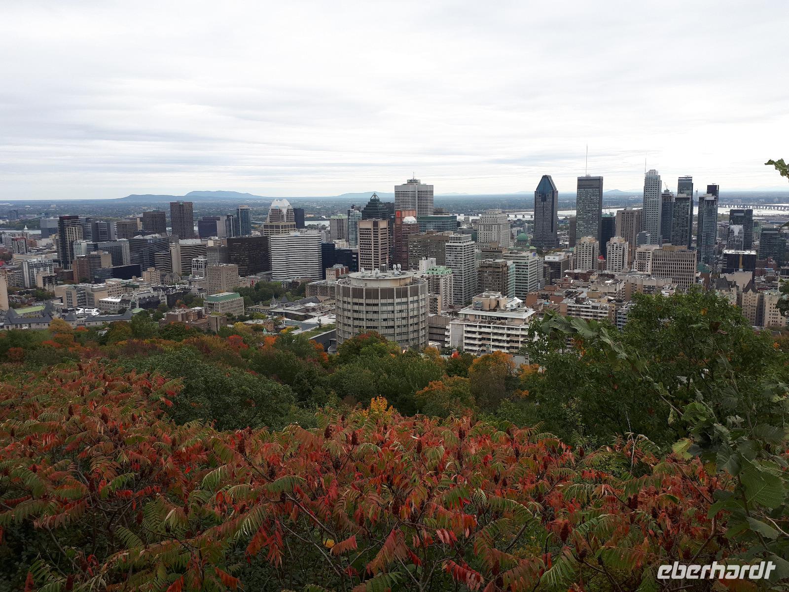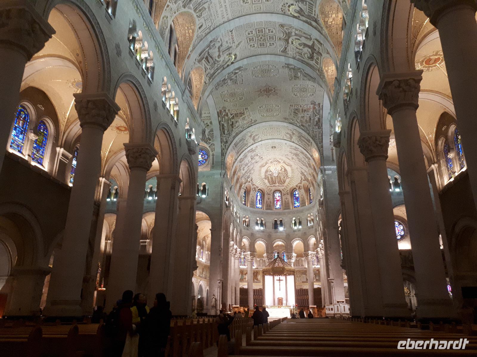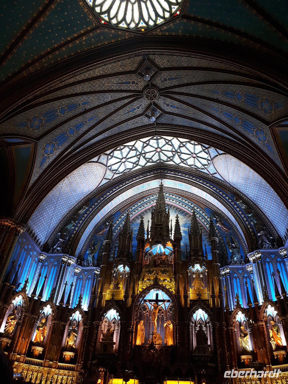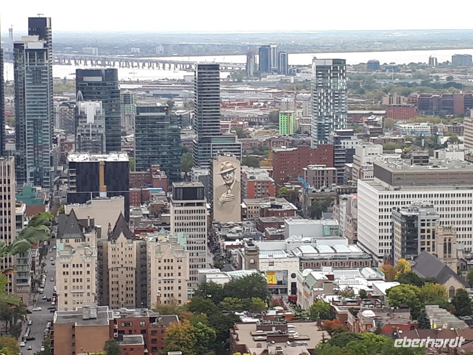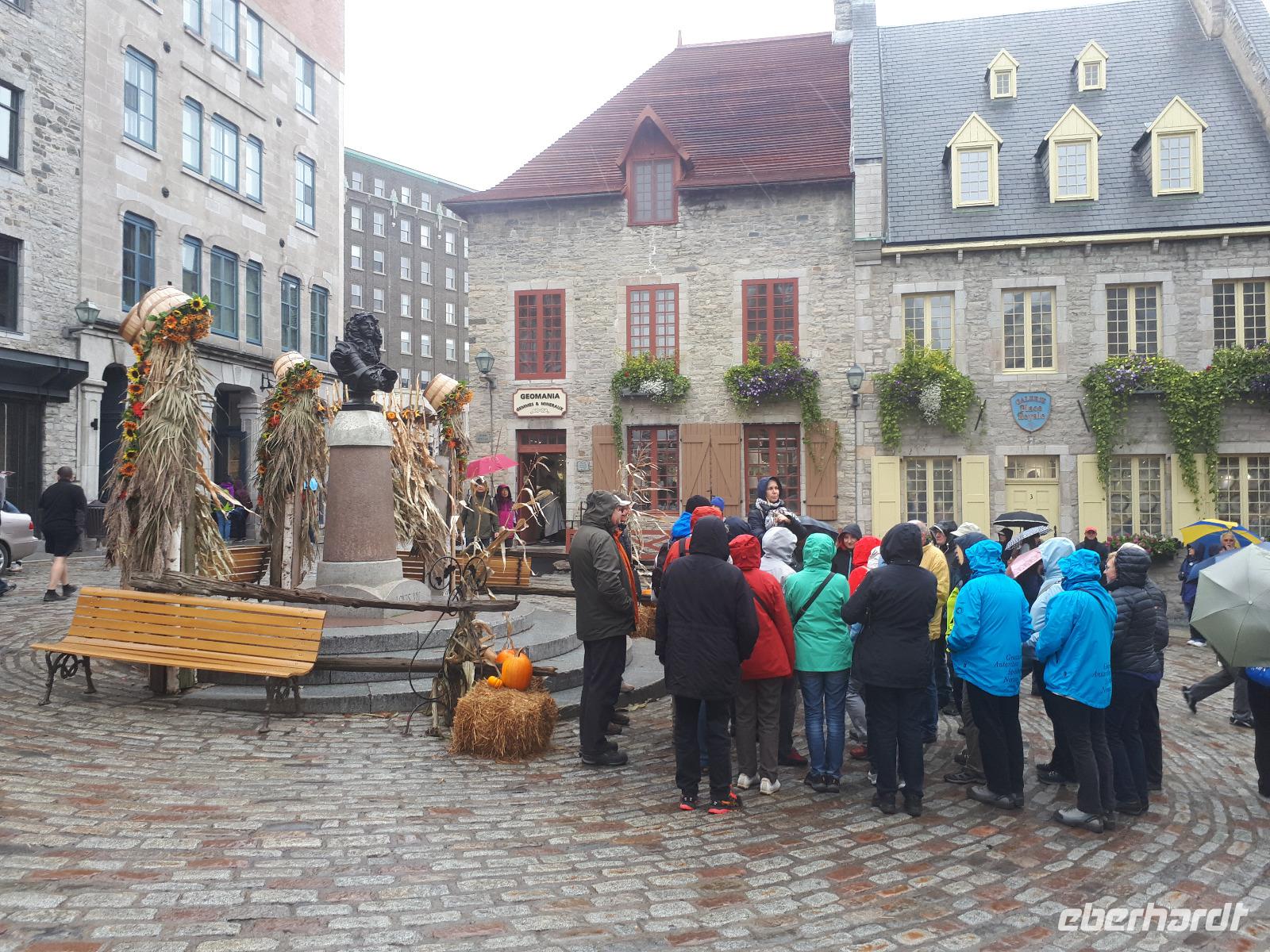 Am Morgen trafen wir auf unsere Stadtführerin Celine, welche seit 30 Jahren in Montreal lebt und uns heute ihre Stadt zeigen wollte. Unser erstes Ziel der Millionenstadt war der Parc Jean-Drapeau, welcher sich aus den Inseln Île Sainte-Hélène und Île Notre-Dame zusammensetzt und in der Mitte des Sankt-Lorenz-Stroms befindet. Nach der Weltausstellung von 1967 ist von den damals vorübergehend errichteten Bauwerken die berühmte Biosphäre erhalten geblieben, der einstige Länderpavillon der Vereinigten Staaten, welcher zu einem Museum umfunktioniert wurde. Nun kamen alle Sportfans auf ihre Kosten, denn wir fuhren ein Stück der berühmten Formel-1-Strecke „Circuit Gilles-Villeneuve" entlang. Gedanklich legten wir uns alle in die Kurven, als José mit gemächlichem Tempo die Kurven durch den Park fuhr. Wir verließen die Inseln wieder und hielten in der Altstadt um die besondere Basilika „Notre-Dame de Montréal" zu besichtigen. Neben der farbenprächtigen Beleuchtung beeindruckte uns der imposante Innenraum durch den ungewöhnlichen Aufbau, da die Kirche weder Seitengänge noch ein Querschiff hatte. Im Anschluss fuhren wir auf den 233 Meter hohen Hausberg Monte Royal hinauf und konnten einen guten Ausblick auf die gesamte Stadt erhalten. Nun war unsere halbtägige Stadtrundfahrt mit Celine leider schon beendet. Wir verabschiedeten uns und wünschten ihr alles Gute. Wieder in der Innenstadt angekommen hatten wir genügend freie Zeit, auf der Rue St.-Catherine die unterirdische Stadt mit ihren weit verzweigten Fußgängertunneln und unterirdischen Ladenpassagen zu erkunden. Den Abschluss in Montreal bildete der Besuch des Olympiaparks, welcher zu den Olympischen Sommerspielen von 1976 errichtet wurde und dessen Mittelpunkt das architektonisch besondere Olympiastadion bildet. Die besondere Form des Stadions verhalf ihm zu dem Beinamen "The Big O".