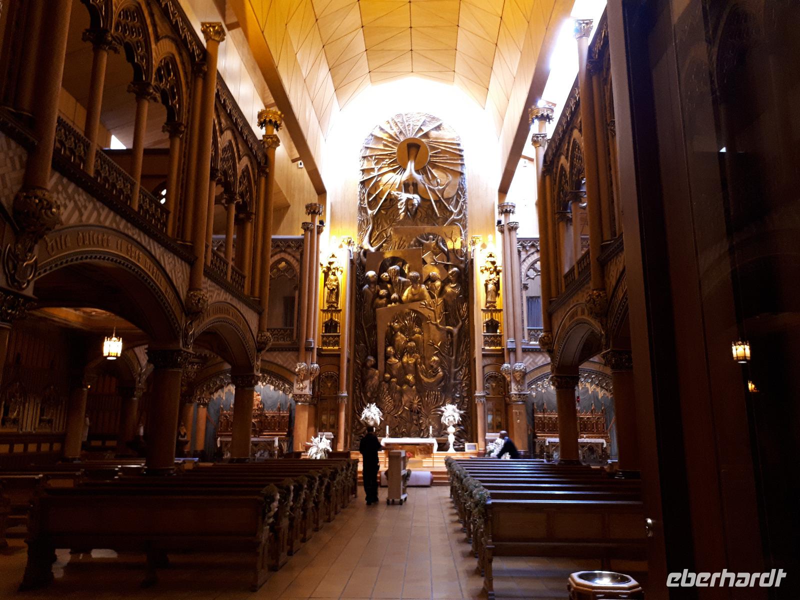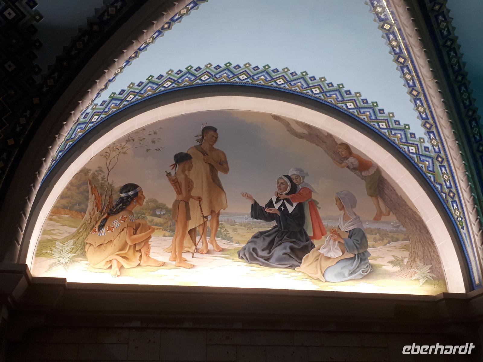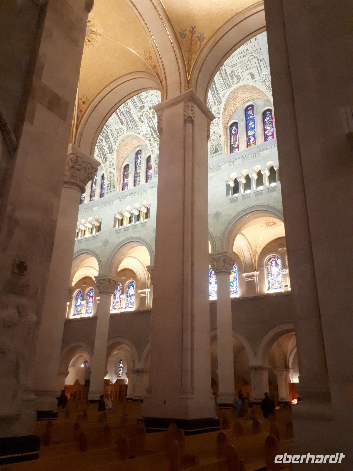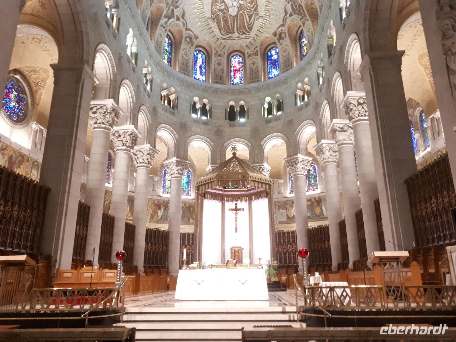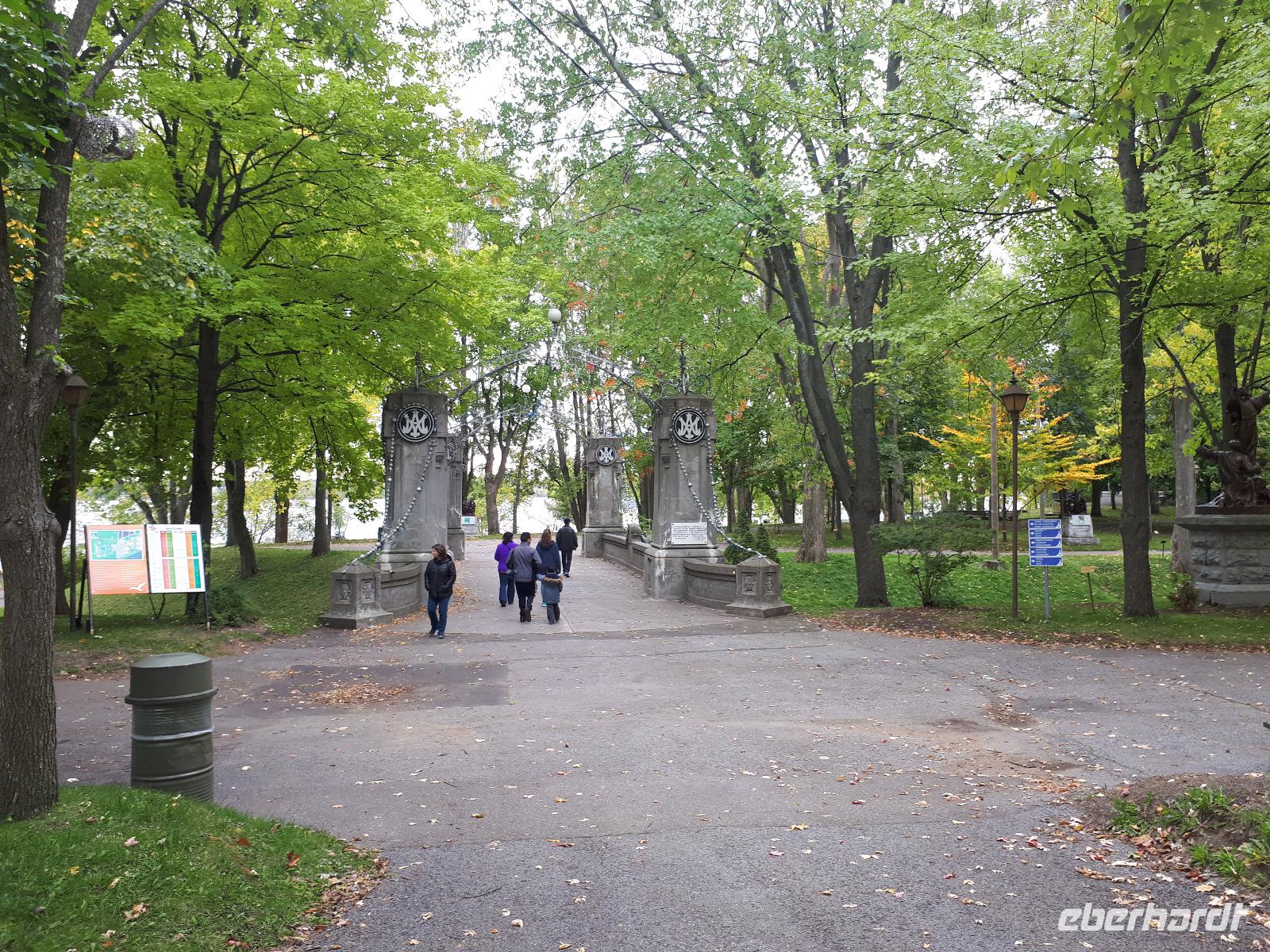 Am Morgen trafen wir auf unsere Stadtführerin Celine, welche seit 30 Jahren in Montreal lebt und uns heute ihre Stadt zeigen wollte. Unser erstes Ziel der Millionenstadt war der Parc Jean-Drapeau, welcher sich aus den Inseln Île Sainte-Hélène und Île Notre-Dame zusammensetzt und in der Mitte des Sankt-Lorenz-Stroms befindet. Nach der Weltausstellung von 1967 ist von den damals vorübergehend errichteten Bauwerken die berühmte Biosphäre erhalten geblieben, der einstige Länderpavillon der Vereinigten Staaten, welcher zu einem Museum umfunktioniert wurde. Nun kamen alle Sportfans auf ihre Kosten, denn wir fuhren ein Stück der berühmten Formel-1-Strecke „Circuit Gilles-Villeneuve" entlang. Gedanklich legten wir uns alle in die Kurven, als José mit gemächlichem Tempo die Kurven durch den Park fuhr. Wir verließen die Inseln wieder und hielten in der Altstadt um die besondere Basilika „Notre-Dame de Montréal" zu besichtigen. Neben der farbenprächtigen Beleuchtung beeindruckte uns der imposante Innenraum durch den ungewöhnlichen Aufbau, da die Kirche weder Seitengänge noch ein Querschiff hatte. Im Anschluss fuhren wir auf den 233 Meter hohen Hausberg Monte Royal hinauf und konnten einen guten Ausblick auf die gesamte Stadt erhalten. Nun war unsere halbtägige Stadtrundfahrt mit Celine leider schon beendet. Wir verabschiedeten uns und wünschten ihr alles Gute. Wieder in der Innenstadt angekommen hatten wir genügend freie Zeit, auf der Rue St.-Catherine die unterirdische Stadt mit ihren weit verzweigten Fußgängertunneln und unterirdischen Ladenpassagen zu erkunden. Den Abschluss in Montreal bildete der Besuch des Olympiaparks, welcher zu den Olympischen Sommerspielen von 1976 errichtet wurde und dessen Mittelpunkt das architektonisch besondere Olympiastadion bildet. Die besondere Form des Stadions verhalf ihm zu dem Beinamen "The Big O".