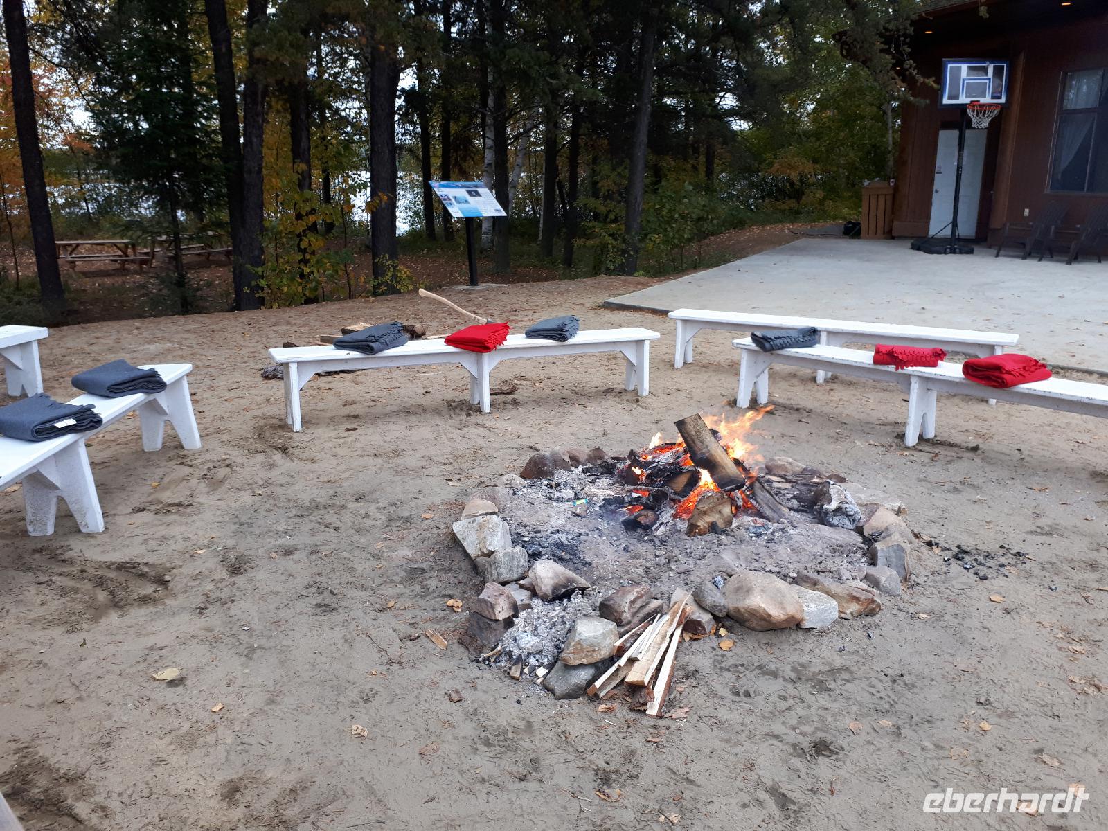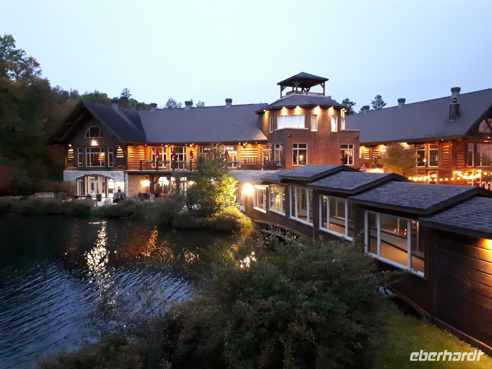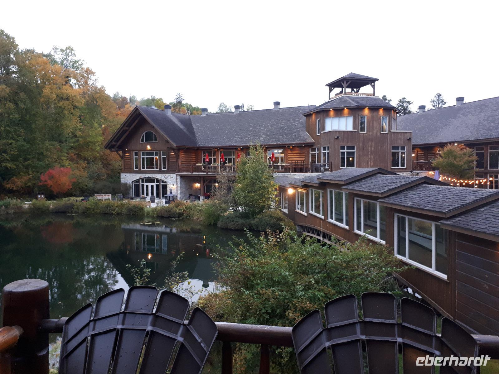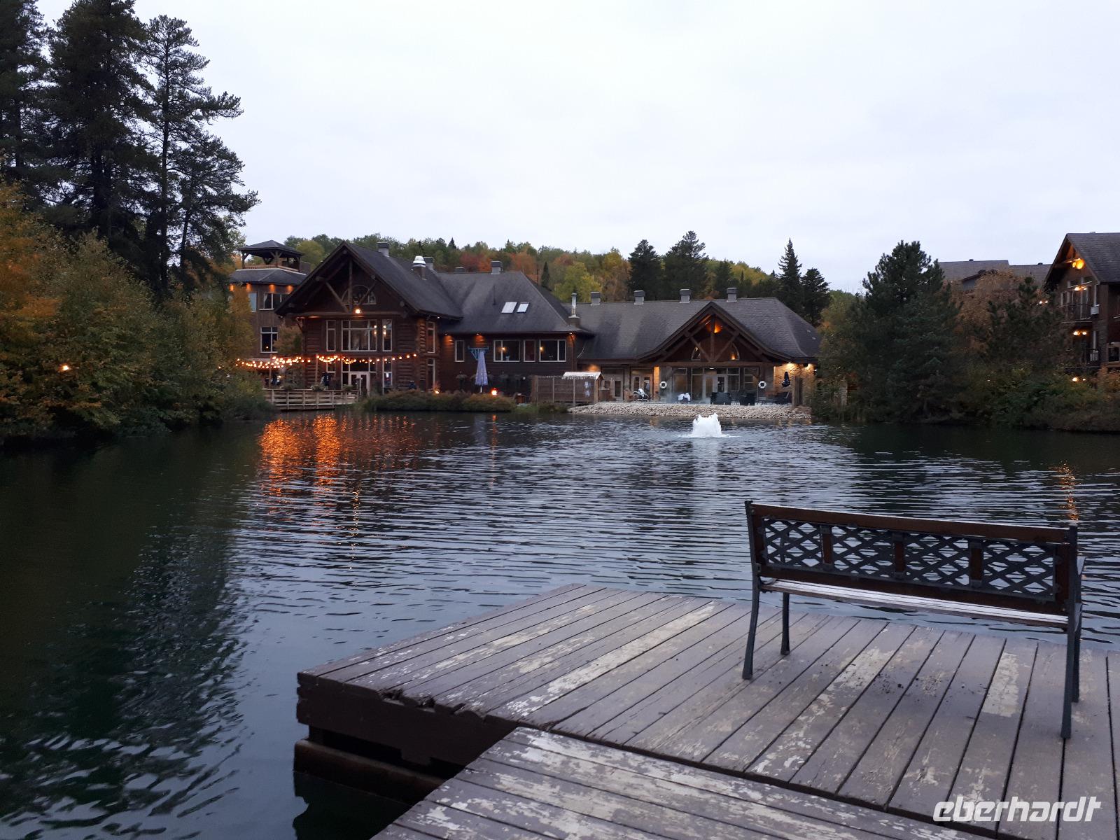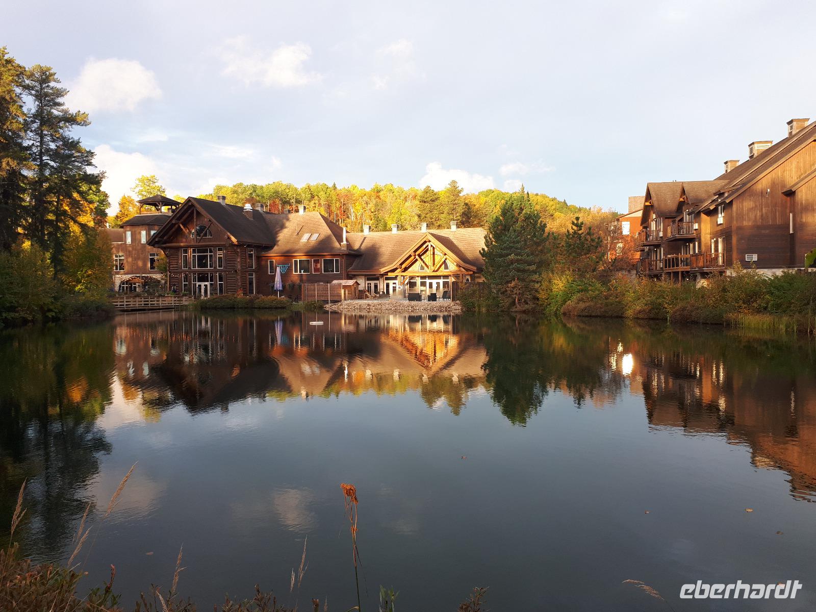 Den heutigen Tag konnten alle Gäste nach Lust und Laune verbringen. Einige nutzten das Wellnessangebot, andere kamen mit zu einer kleinen Wanderung durch den angrenzenden Wald. Neben den farbenfrohen Bäumen und kleinen Seen sahen wir auch einen riesigen Biberbau. Wir genossen die frische Luft in vollen Zügen, legten kleine Picknickpausen ein und zurück im Hotel verabredeten wir uns für den Nachmittag für ein rustikales Lagerfeuer mit Marshmallows und typisch kanadischen Getränken. Einige stimmten sogar lustige Lagerfeuerhits aus vergangenen Zeiten an und wir alle sangen mit...ob wir die Lieder nun kannten oder nicht. :-) Ein erholsamer Tag im wunderschönen Resort ging mit einem tollen gemeinsamen Essen zu Ende.