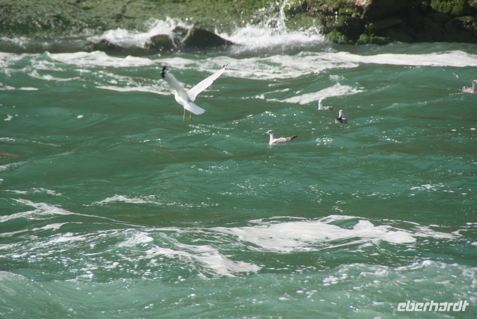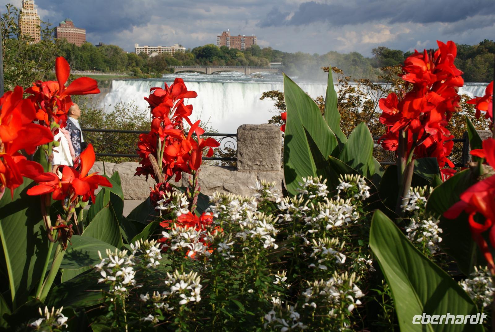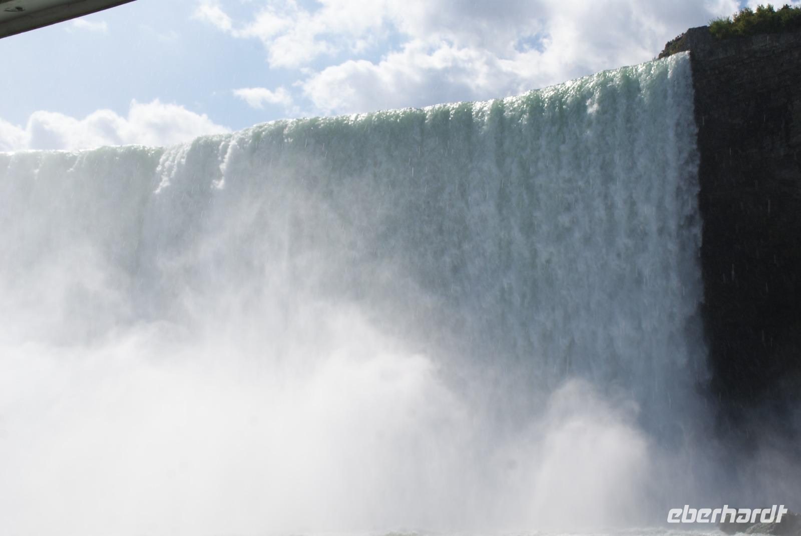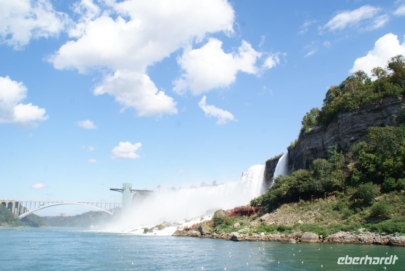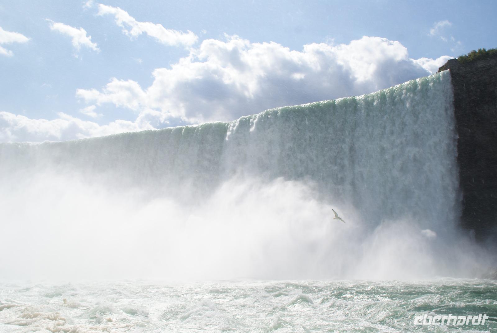 Bedingt durch die Zeitverschiebung von -6 Stunden sind wir alle schon wieder sehr früh wach und treffen uns zum ersten kanadischen Frühstück. Deftig in seiner Art, damit die einheimischen Holzfäller gut gestärkt den Tag beginnen können. So nun auch wir! Los geht unsere Reise mit dem Besuch des CN Towers, von dem wir in schwindelnder Höhe einen fantastischen Blick über ein noch wolkenloses Toronto haben und die unglaubliche Fernsicht genießen. Von dort aus starten wir zur City Tour durch die Hauptstadt der Provinz Ontario, welche übersetzt aus der indianischen Sprache „Treffpunkt" bedeutet. Auf dem Kennzeichen der Provinz steht geschrieben „Yours to discover" (Deins-um von dir entdeckt zu werden). Vorbei an der University Avenue fahren wir entlang des Queen Parks zum beeindruckenden Parlamentsgebäude. Von Dorle hören wir, dass in Toronto das Insulin erforscht und der erste Herzschrittmacher produziert wurde. Hier leben unzählige Nationen friedlich miteinander, es werden 140 Sprachen gesprochen und jeder 2. Bewohner wurde nicht in Kanada geboren... Weiter geht's durch China Town, wo mittlerweile 400.000 Chinesen wohnen. Wir passieren den Dundas Square, der mit dem New Yorker Time Square verglichen wird. Einen Fotostopp planen wir am Rathaus, von wo wir zum Eaton Center spazieren um uns einen Mittagssnack für die Weiterfahrt zu besorgen. Gegen Mittag setzen wir die Fahrt zu den Niagara Fällen fort. Wir fahren durch die Niagara Region und erfahren, dass diese für ihren guten Wein und als Obstkorb Ost Kanadas bekannt ist. Schon bald erreichen wir das „donnernde Wasser" welches Niagara übersetzt bedeutet. Wir sehen die Gischt der Fälle schon von weitem und steuern zunächst die Bootstour der Firma Hornblower an. Einheitlich verpackt im roten Regenschutz gehen wir an Bord und fahren ganz nah an die Fälle heran. Zunächst entlang der amerikanischen und danach zu den kanadischen Hufeisenfällen, den Horseshoe Falls. Beeindruckt kehren wir von dem feucht-fröhlichen Schauspiel zurück und ein Teil unserer Gruppe bricht zum Helikopterflug auf. Während die einen fliegen und die anderen spazieren, hat jeder auf seine Art einen tollen Nachmittag mit viel Zeit die Fälle mit all ihren Fassetten kennenzulernen. Das heutige Abendessen findet im 236m hohen Skylon Tower statt, welcher vom Aussichtsrestaurant nicht nur ein tolles Buffet sondern auch eine grandiose Aussicht auf die bald beleuchteten Fälle bietet. Ein einmaliges Erlebnis. Abschließend spazieren wir nochmals zu den angestrahlten Fällen, die mal blau, dann rot erleuchten...ein unvergessliches Erlebnis und ein toller erster Tag unserer Reise!