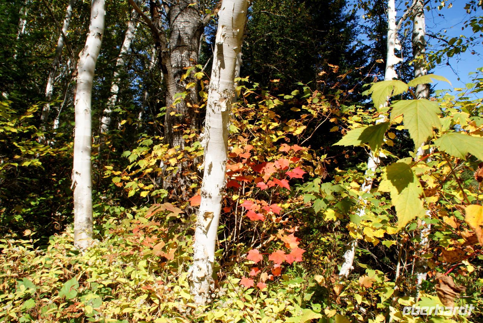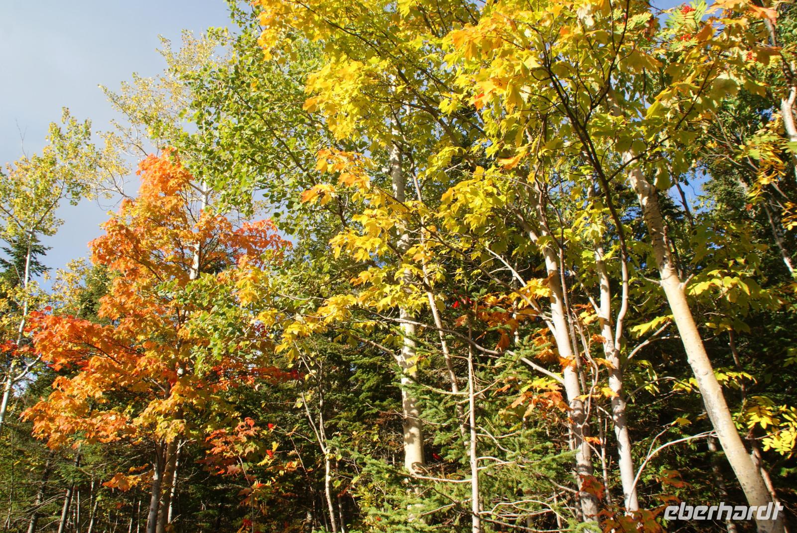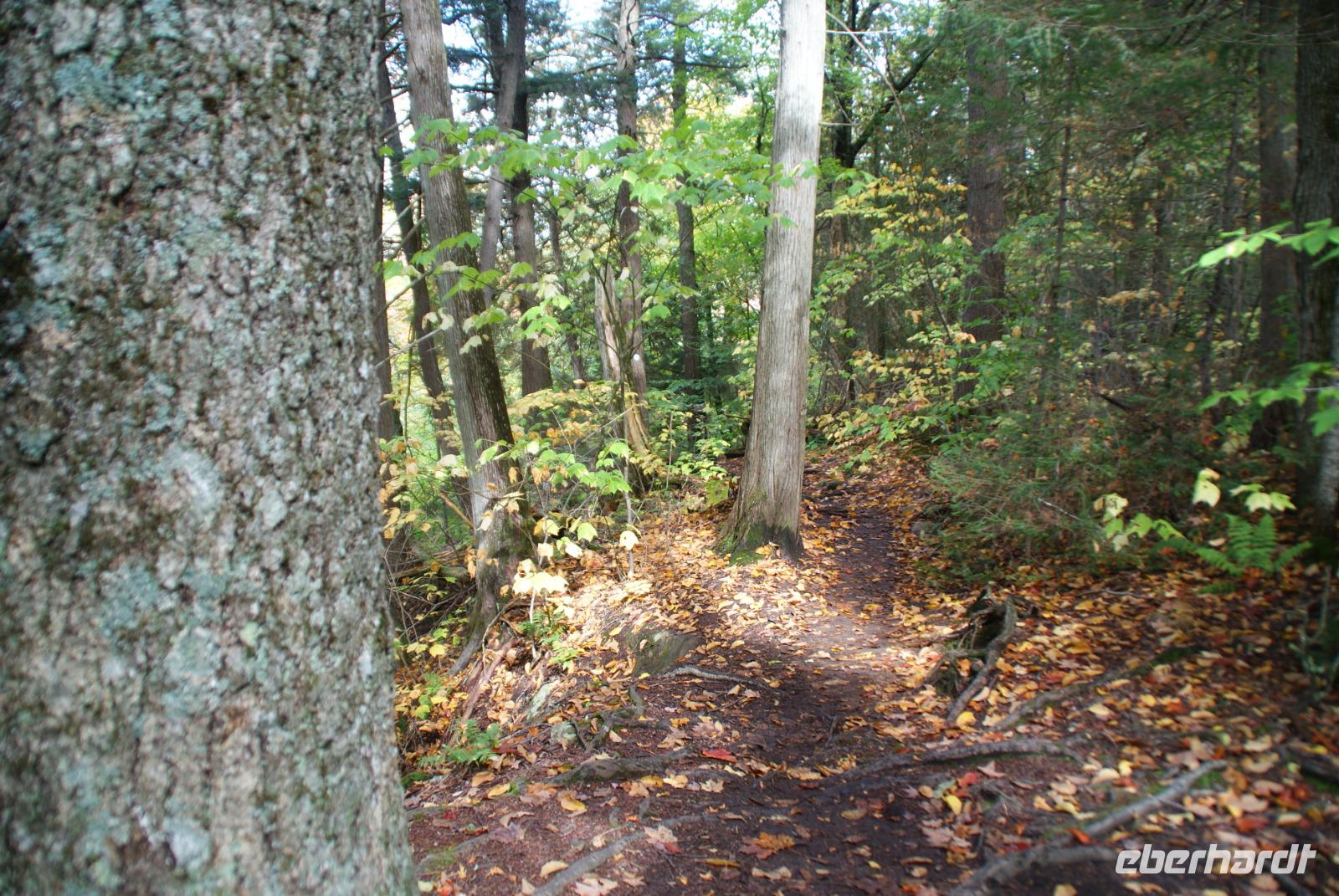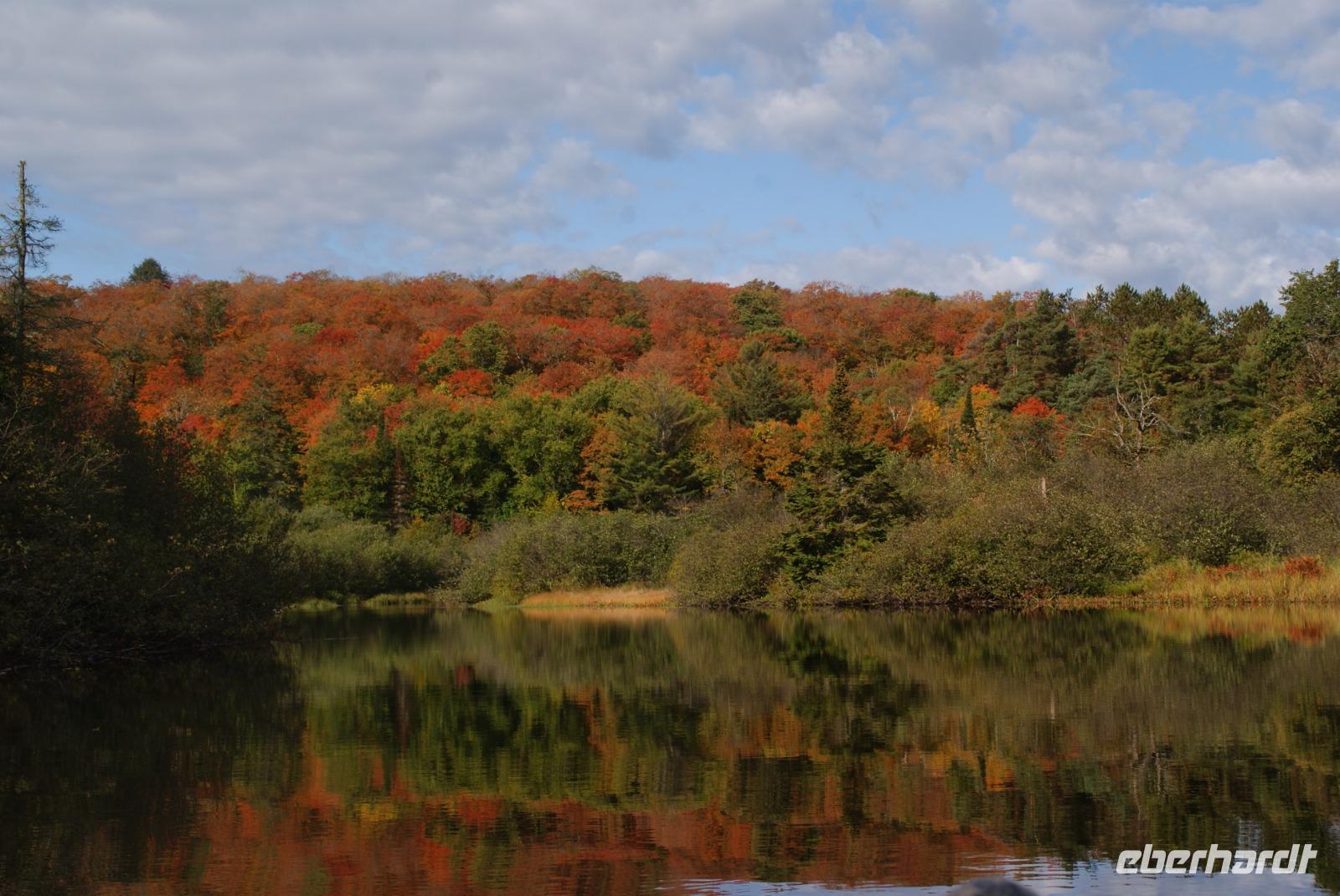 Der heutige Tag führt uns nach einem reichhaltigen Frühstück zum Oxtongue Lake, wo wir mit drei Kanus eine schöne Tour unternehmen. Die Guides Jeff, Mark und Chris begleiten je ein Kanu, sorgen dafür, dass wir in die richtige Richtung paddeln und erzählen uns viel Interessantes über die Umgebung. Trotz Regen in der Nacht und am Morgen, haben wir ein Riesenglück und während unserer Fahrt einfach nur Traumwetter. Der Indian Summer gibt sich die Ehre. Strahlend blauer Himmel, die bunten Bäume leuchten, die Natur spiegelt sich im See-wir sind verzückt. So ein Glück! Wenn Engel reisen...Ein buntes Gemisch aus Birken, Eichen, Zuckerahorn, Espen, Tannen umgibt uns und vor lauter staunen, vergessen wir schon mal zu paddeln. Nach unserer Rückkehr stoßen wir bei einem Glas Sekt auf den tollen Reiseverlauf und die besonders netten Gäste an, nehmen unser gemütliches Picknick ein. Am Nachmittag geht es zum Whisky Trail, einem ca. 2,5 Km langen Wanderweg, buchstäblich über Stock und Stein. Die Bewegung tut uns gut und wir genießen die Ruhe in der wunderschönen Natur. Im Resort zurückgekehrt, erlebt jeder den Nachmittag nach eigenem Gusto mit Wanderung, Sonnen oder einfach nur das Erlebte Revue passieren lassen.