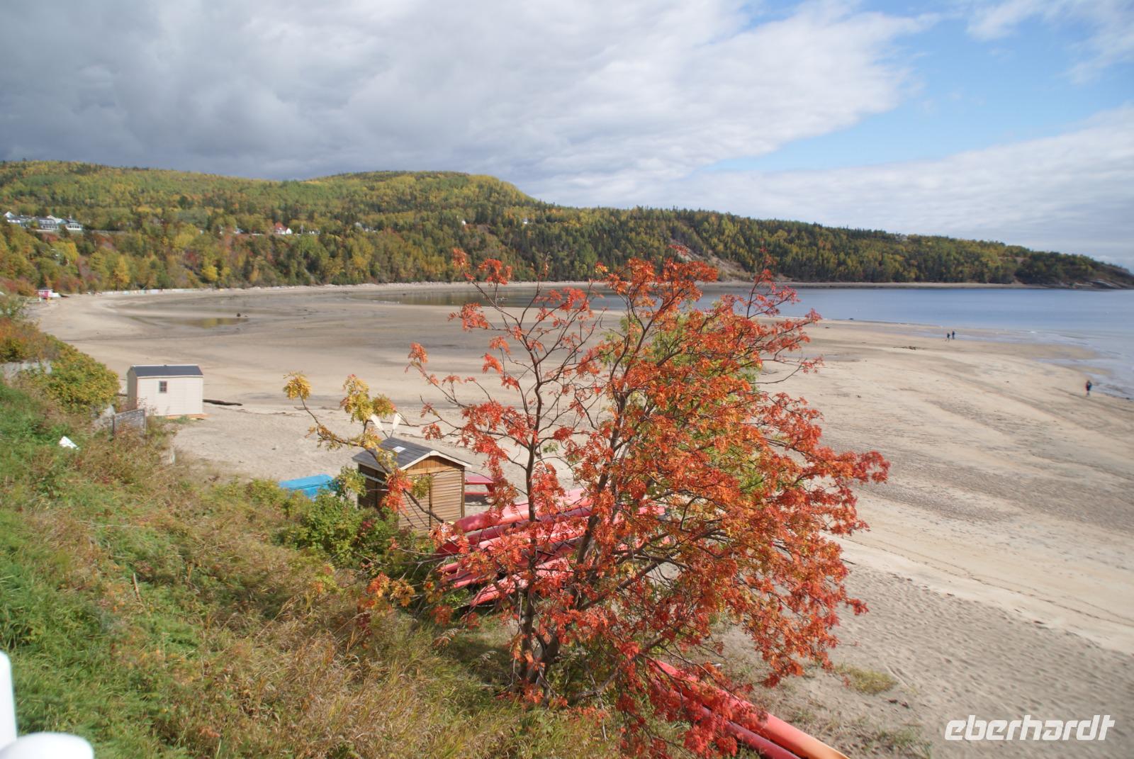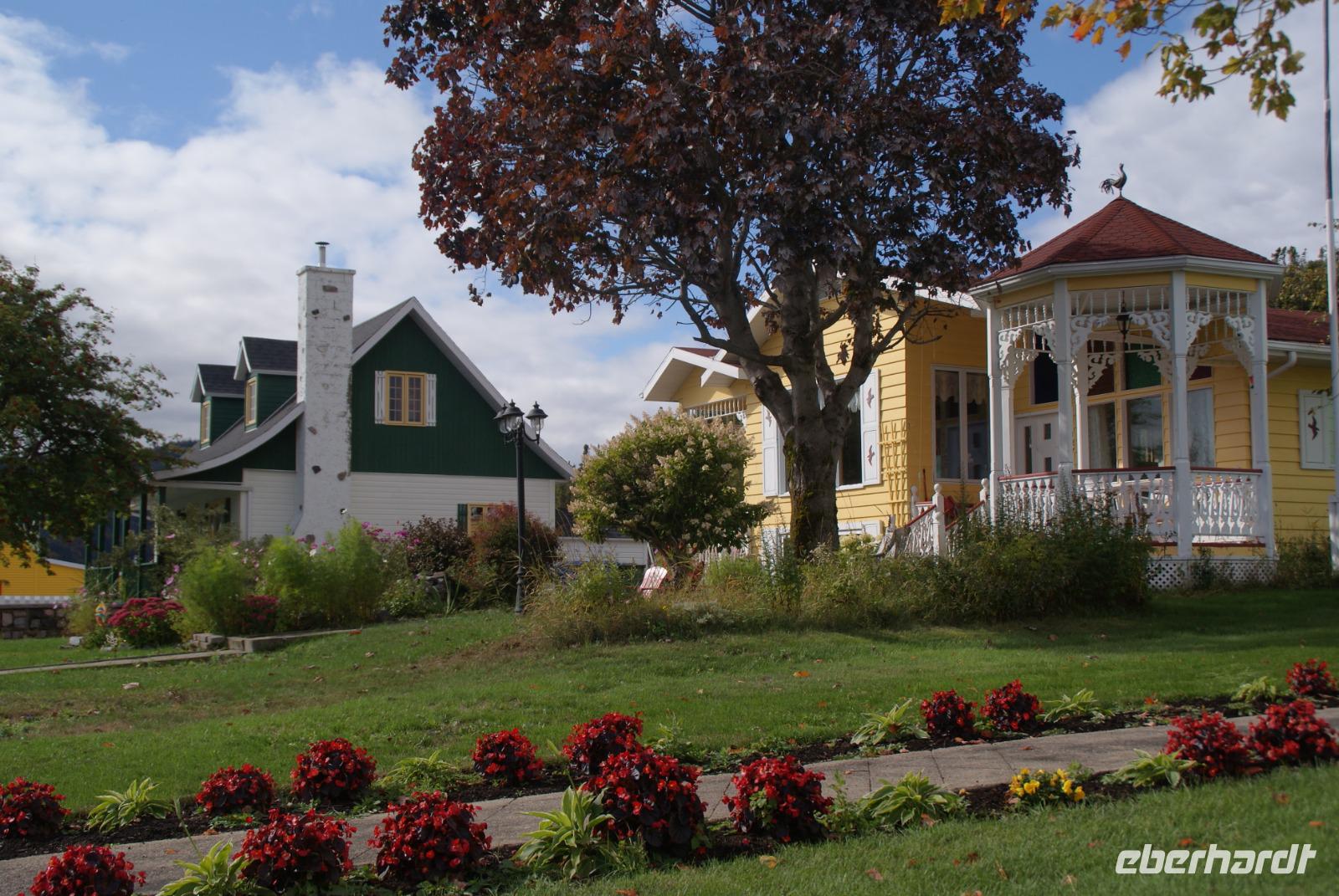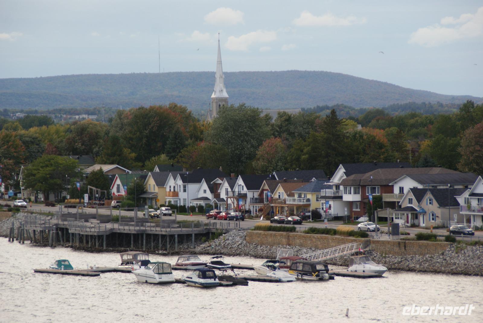 Der heutige Tag führt uns weiter Richtung Norden und wir besuchen zunächst die Basilika de Notre Dame du Cape, welche am St. Lorenz Strom gelegen ist. Hier sollen bereits Wunder geschehen sein und so geschieht unser Wunder des Tages, welches darin bestand, die Kirche bedingt durch zahlreiche Baustellen herum, überhaupt anfahren zu können. Dank den Fahrkünsten unseres fantastischen Fahrers Guy soll es doch gelingen und wir schauen uns den imposanten Bau von innen an. Da das Wetter heute fern vom Bilderbuch ist, entscheiden wir uns für einen Programmwechsel und verschieben den Besuch des Wasserfalls auf einen anderen Tag. Somit führt es uns als nächstes zur Wallfahrtskirche Saint Anne de Baupré, die zahlreiche Gläubige aus aller Welt anzieht. Auch uns zieht diese wunderbare Basilika in ihren Bann. Grandiose Innenarchitektur lässt uns staunen. Beeindruckend auch die hinterlassenen Gehhilfen so mancher vermeintlich geheilter Menschen, die hier augenscheinlich ein wahres Wunder erlebt haben. Am Nachmittag erreichen wir unser heutiges Tagesziel La Malbaie, welches übersetzt „die schlechte Bucht" bedeutet. Für uns sieht es trotz schlechten Wetters recht idyllisch aus und so sind wir schon voller Vorfreude auf den morgigen Tag bei dem eine drei-stündige Walbeobachtung auf dem Programm steht. Hierzu müssen wir uns jedoch vorab stärken und so kehren wir in die Auberge des 3 Canarads (die Herberge der drei Enten) zum köstlichen Abendessen in Form eines 3-Gang Menüs ein. In geselliger Runde genießen wir das schöne Ambiente und den entspannten Abend.