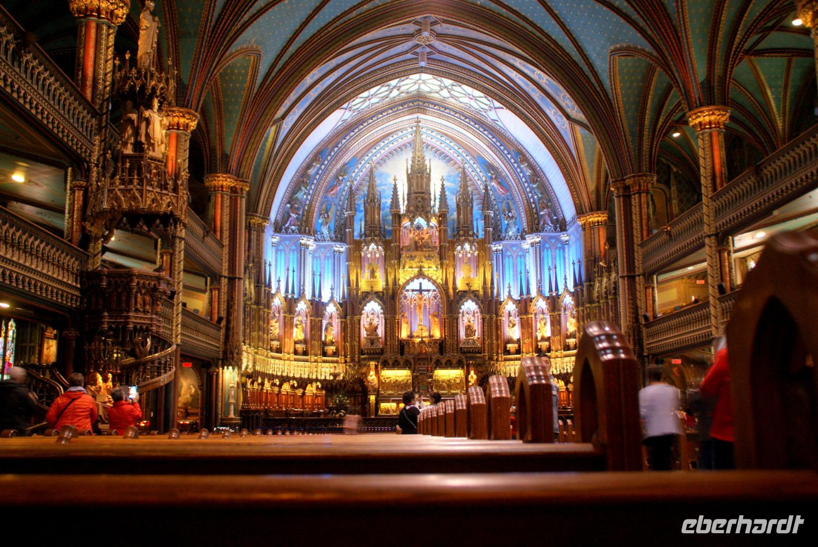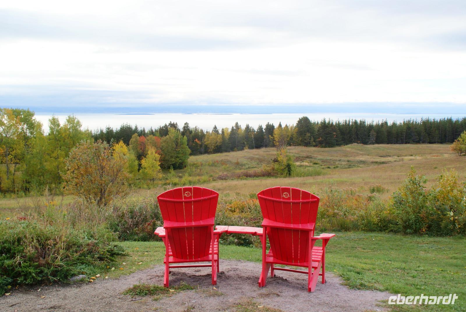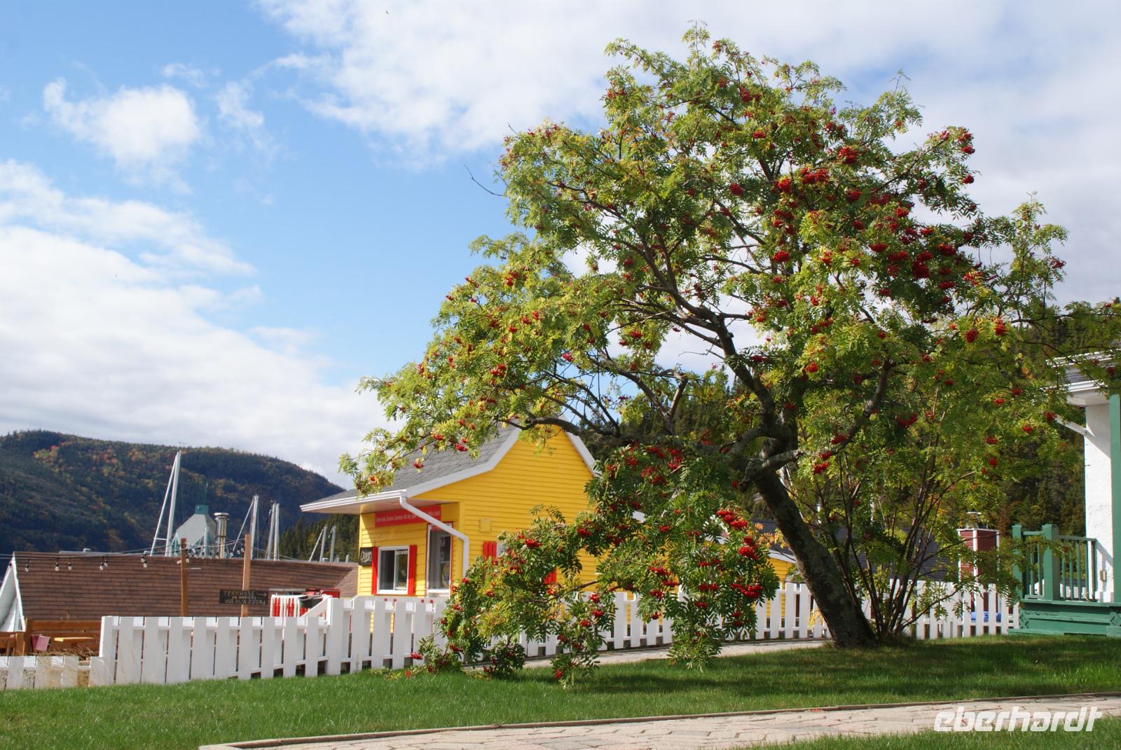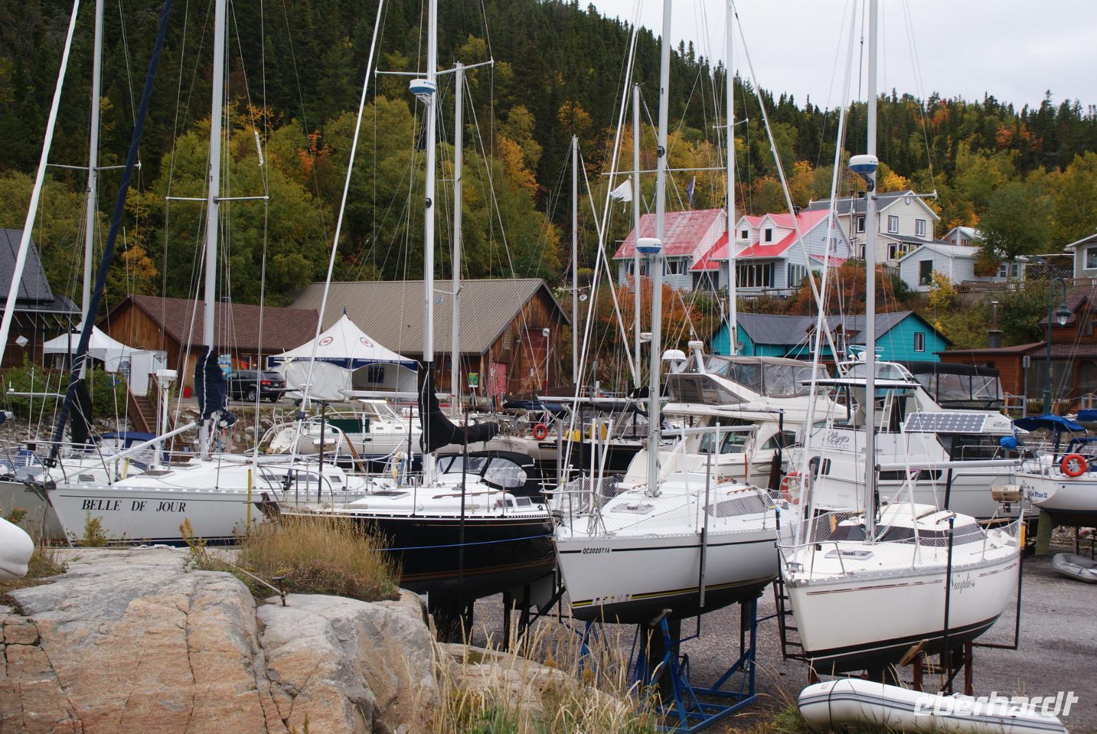 Der heutige Tag führt uns weiter Richtung Norden und wir besuchen zunächst die Basilika de Notre Dame du Cape, welche am St. Lorenz Strom gelegen ist. Hier sollen bereits Wunder geschehen sein und so geschieht unser Wunder des Tages, welches darin bestand, die Kirche bedingt durch zahlreiche Baustellen herum, überhaupt anfahren zu können. Dank den Fahrkünsten unseres fantastischen Fahrers Guy soll es doch gelingen und wir schauen uns den imposanten Bau von innen an. Da das Wetter heute fern vom Bilderbuch ist, entscheiden wir uns für einen Programmwechsel und verschieben den Besuch des Wasserfalls auf einen anderen Tag. Somit führt es uns als nächstes zur Wallfahrtskirche Saint Anne de Baupré, die zahlreiche Gläubige aus aller Welt anzieht. Auch uns zieht diese wunderbare Basilika in ihren Bann. Grandiose Innenarchitektur lässt uns staunen. Beeindruckend auch die hinterlassenen Gehhilfen so mancher vermeintlich geheilter Menschen, die hier augenscheinlich ein wahres Wunder erlebt haben. Am Nachmittag erreichen wir unser heutiges Tagesziel La Malbaie, welches übersetzt „die schlechte Bucht" bedeutet. Für uns sieht es trotz schlechten Wetters recht idyllisch aus und so sind wir schon voller Vorfreude auf den morgigen Tag bei dem eine drei-stündige Walbeobachtung auf dem Programm steht. Hierzu müssen wir uns jedoch vorab stärken und so kehren wir in die Auberge des 3 Canarads (die Herberge der drei Enten) zum köstlichen Abendessen in Form eines 3-Gang Menüs ein. In geselliger Runde genießen wir das schöne Ambiente und den entspannten Abend.
