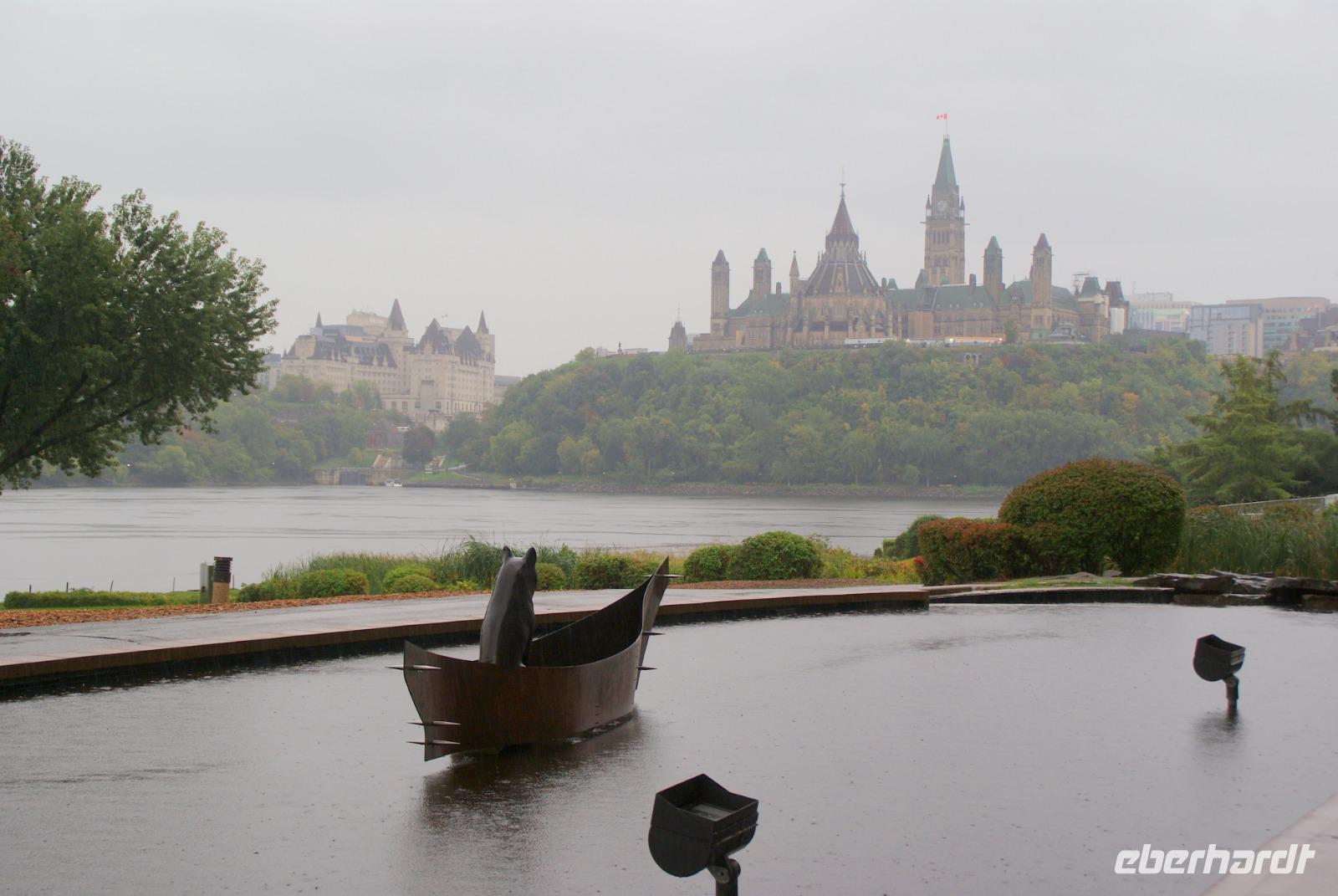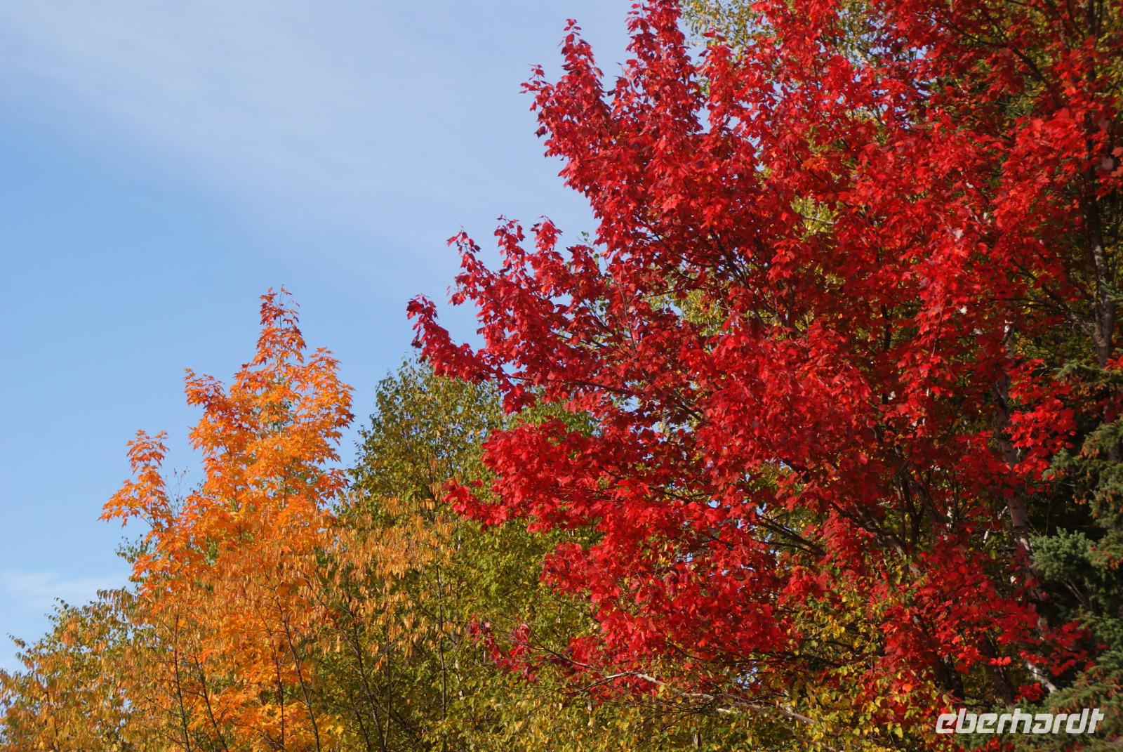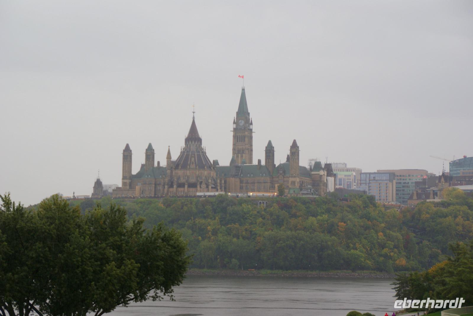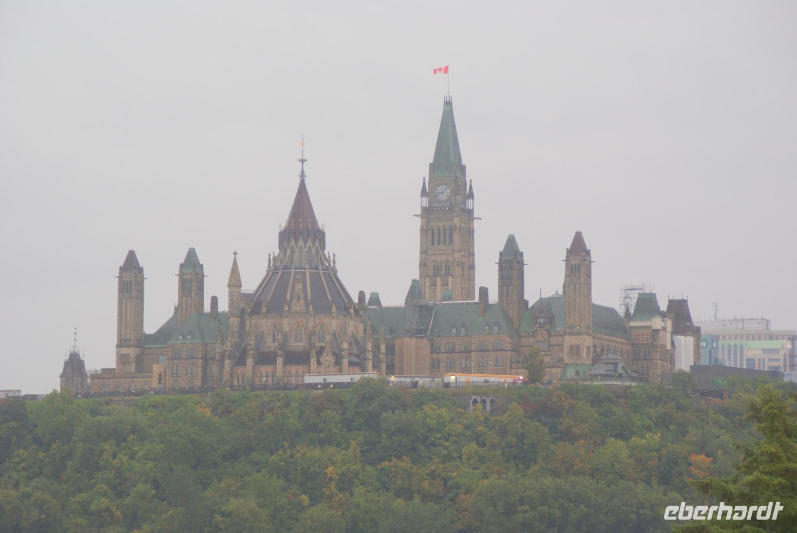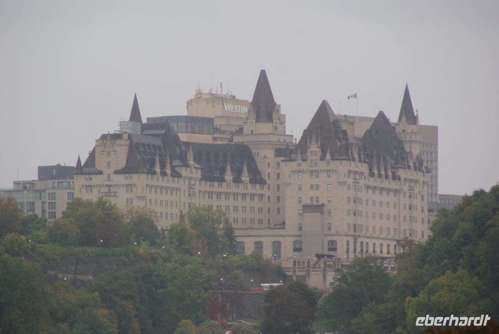 Nach unserer Abreise decken wir uns für ein heutiges Mittagspicknick in Huntsville ein und brechen auf zum Algonquin Park. Dieser ist der älteste und größte Provinzpark Ontarios, besitzt 2456 Seen und hat 1600 Km Kanurouten. In den Gewässern findet man Forellen und Barsche sowie im Park selbst 3200 Elche, 2000 Schwarzbären, 300 Wölfe und 30.000 Biber. Ich nehme es vorweg-wir haben vor Ort von diesen leider nichts gesehen. Dafür aber eine wunderbare Natur erlebt und insbesondere den Zuckerahorn in voller Pracht gesehen. Zunächst besichtigen wird das Besucherzentrum, sehen einen interessanten Film, haben Zeit um das Museum, den Feuerturm und die Umgebung anzuschauen. Danach führt uns Dorle durch das Logging Museum, wo sie uns sehr anschaulich vermittelt, die mühsam einst die Holzgewinnung von statten ging. Was für uns ein interessanter Spaziergang durch wunderschöne Natur war, war einst für die Holzfäller sehr hart verdientes Brot. Nach Verlassen des Parks nehmen wir ein schönes Picknick in Witney ein und fahren weiter zum Tagesendziel-Ottawa. 1867 zur Hauptstadt Kanadas von Queen Victoria ernannt, da diese einst als sicherste Stadt gegenüber Angreifern galt. Wir sehen den Rideau Kanal, auf dem im Winter die längste Schlittschuhlaufbahn der Welt entsteht und der bis zum Ottawa Fluss fließt. Weiter geht die Stadtrundfahrt durch das Botschaftsviertel, Chateau Laurier, Rathaus, Kriegsdenkmal, Opernhaus, dem alten Bahnhof, der US Botschaft, Kunstgalerie, Rockcliff Park und Sussex Drive. Am berühmten Byward Market unternehmen wir einen Marktbummel und schauen uns das bunte Treiben an. Vorbei am Parlamentshügel überqueren wir die Brücke nach Gatineau und befinden uns nun in der Provinz Quebec, wo von jetzt auf gleich nur noch französisch gesprochen. Im Hotel eingecheckt, erfolgt unser Abendessen der besonderen Art und so mancher erkundet Ottawa noch auf eigene Faust zu Fuß mit schönen Eindrücken auf das angestrahlte Parlament sowie den Rideau Kanal.