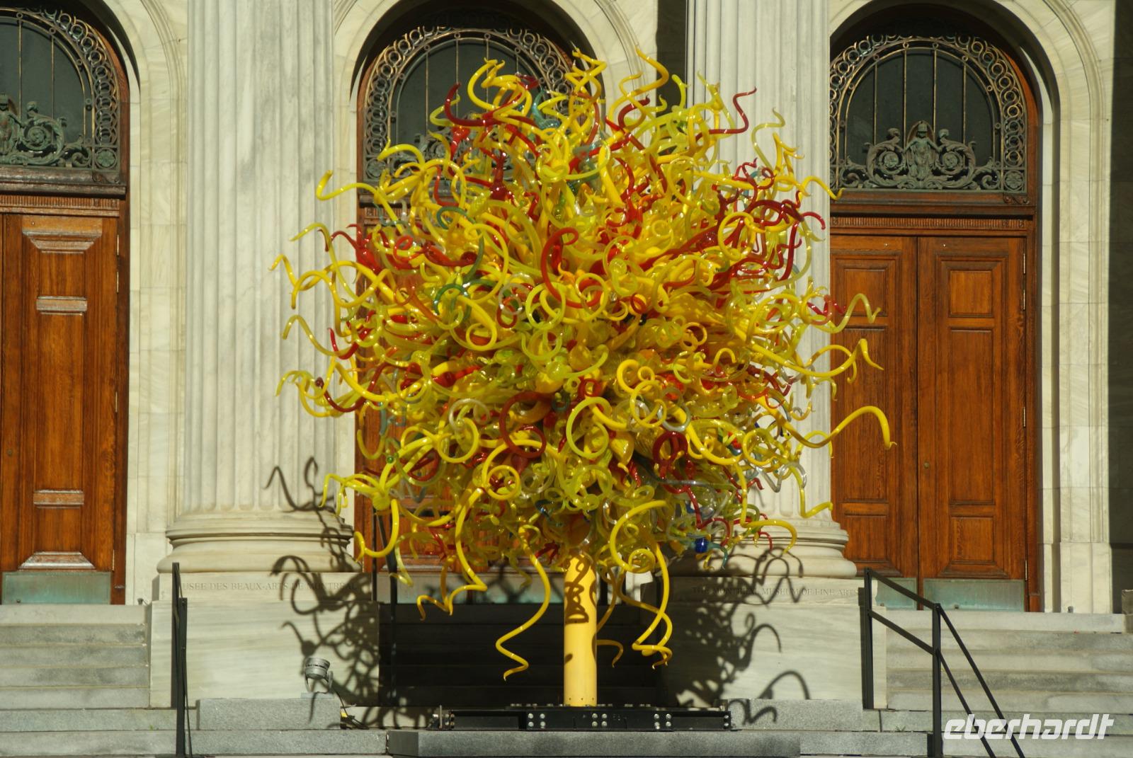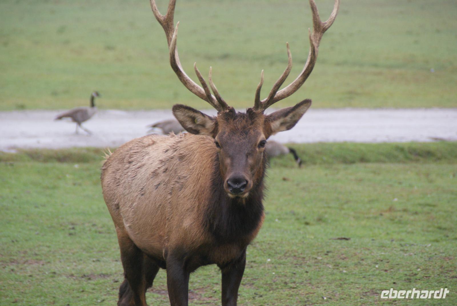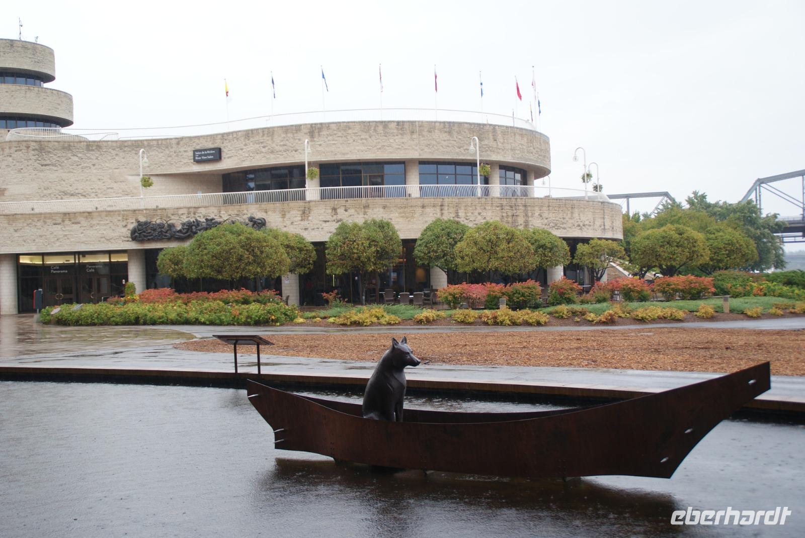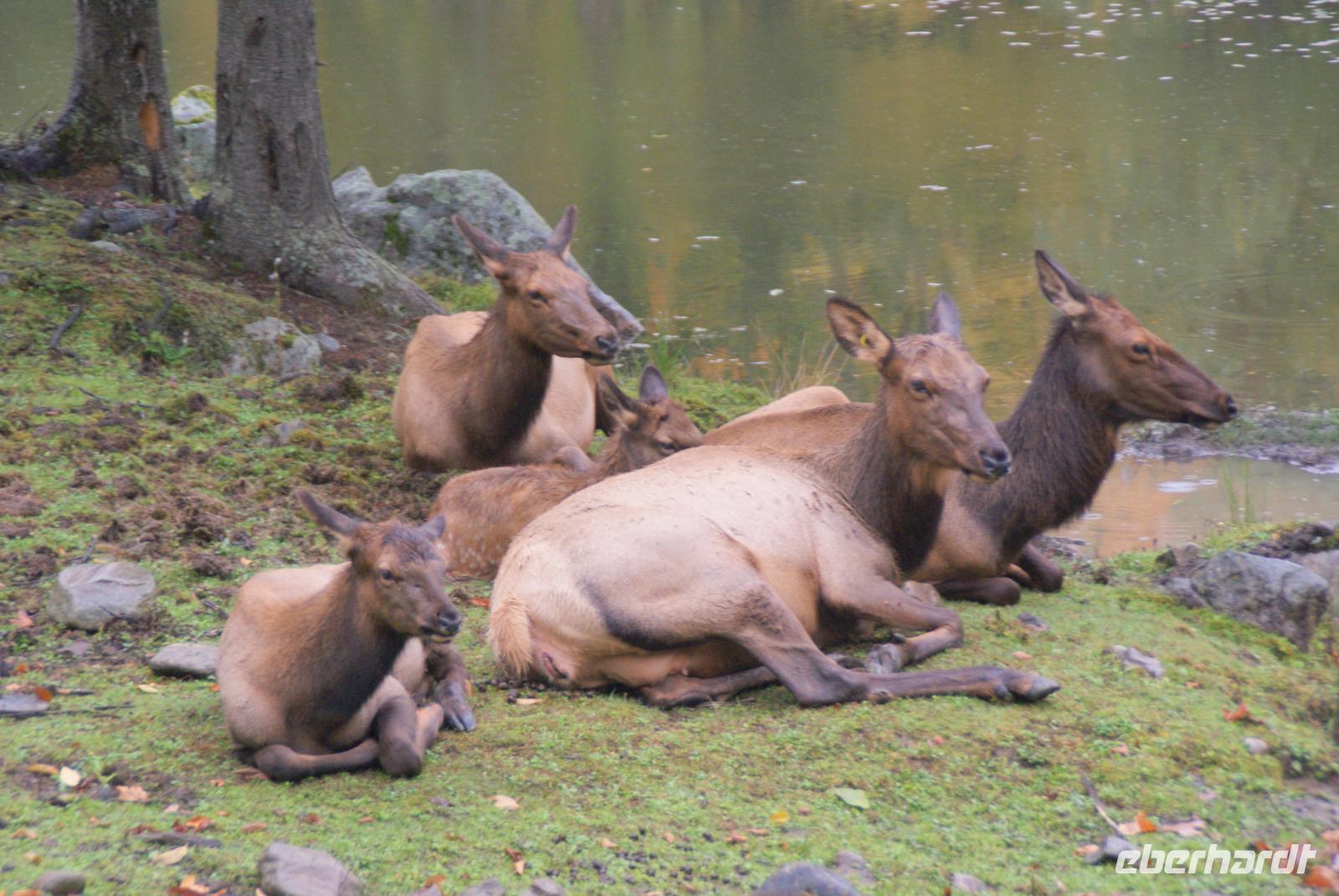Der heutige Morgen beginnt mit einem Frühstück der besonderen Art und Regen in Ottawa. Vor unserer Abreise erhaschen wir noch einen Blick auf die imposanten Totempfähle im wunderbaren Kanadischen Geschichtsmuseum, welches direkt gegenüber unseres Hotels liegt. Wir erfahren, dass Totempfähle nur von den Indianer Stämmen aus dem Westen gefertigt wurden und diese Geschichten über die jeweiligen Familien erzählen. Mit einem letzten schönen Blick auf das gegenüberliegende Ottawa verabschieden wir uns und fahren zum Omega Wildpark. Hier wechseln wir das Fahrzeug und fahren mit einem offenen Schulbus und Fahrer Gilles durch den Park. Zahlreiche Wapitis bilden bereits das Empfangskomitee, wohlwissend, dass wir frische Möhren im Gepäck haben. Somit füttern wir bereitwillig die zahmen Tiere und freuen uns, dass diese keineswegs scheu ganz nah an uns herantreten. Auf unserer 2-stündigen Fahrt sehen wir folgende Tiere: Polarfüchse, Karibus, Wölfe, Wildschweine, Bisons, einen Moschusochsen, einen Elch mit Ersatzmama (Ziege), Weisswedelhirsche, Kojoten, Arktische Wölfe sowie Bergziegen. Ein tolles Erlebnis, diese Tiere hautnah zu erleben. So viel Abenteuer macht hungrig und so kehren wir in das gediegene Chateau Montebello zum Mittagessen ein. Beeindruckt vom phantastischen Ambiente lassen wir es uns schmecken und erfreuen uns über das reichhaltige Buffet. Am Nachmittag erreichen wir Montréal, welches 1642 von Paul de Chomedey, sieur de Maisonneuve gegründet wurde. Den Namen erhielt es vom königlichen Berg, dem Mont Royal, den wir als erstes zu Fuß erwandern. Normalerweise hat man von hier einen gigantischen Blick über die Skyline der Stadt, die heute leider im Nebel liegt. So haben wir zumindest einen schönen Spaziergang erlebt und fahren in unser heutiges Hotel Gouverneur Place Dupuis, welches zentral gelegen einlädt, den restlichen Abend die Stadt zu erkunden.