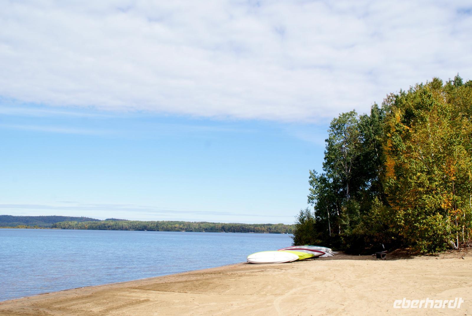 Heute lassen wir es sehr gemütlich angehen. Wir schlafen aus und jeder geht nach Lust und Laune zum tollen Frühstücksbuffet. Anschließend treffen wir uns zu einer gemeinsamen 8 Km langen Wanderung entlang des Lac Taureau und genießen den herrlichen Sonnenschein und die Ruhe der Umgebung. Am frühen Nachmittag kehren wir zurück und so mancher von uns fährt Kanu oder Tretboot auf dem See. Die ganz Mutigen tauchen für ein kurzes Bad in die 17 Grad warmen Fluten ein. In jedem Fall genießt jeder auf seine Art den Aufenthalt in dieser schönen, in die Natur eingebetteten Anlage und könnte es hier durchaus noch ein paar Tage aushalten. Abends treffen wir uns alle im Restaurant um hier nochmals ein leckeres Mahl zu uns zu nehmen.