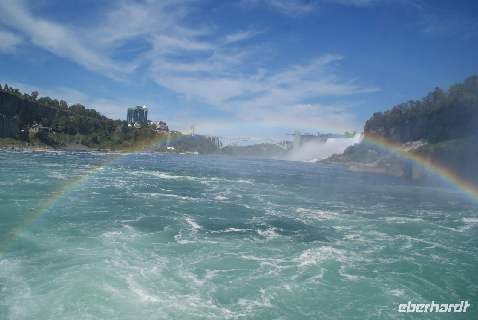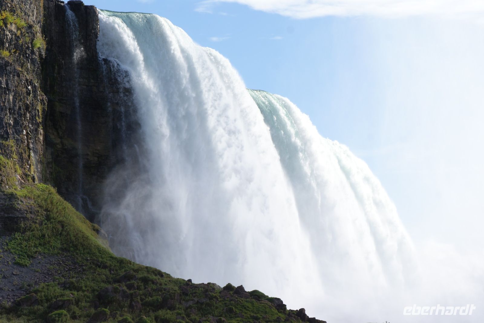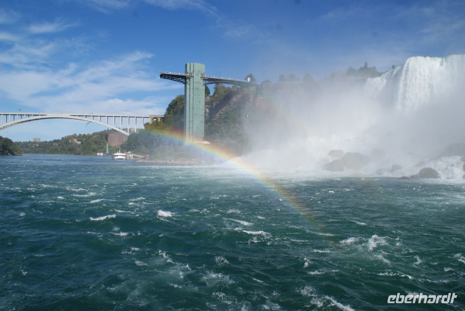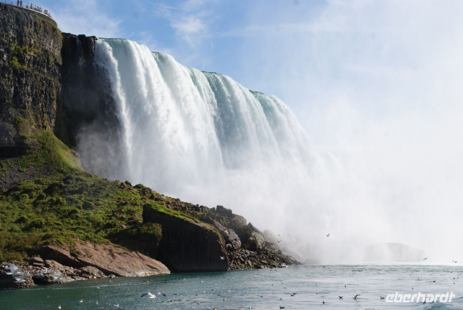 Nach einer erwartungsgemäß kurzen Nacht treffen wir uns Jetlag bedingt alle schon früh zum Frühstück und genießen erste kanadische Köstlichkeiten. Anschließend beginnt unsere Citytour Toronto. Zunächst geht es vorbei am Regierungsgebäude, welches in früheren Zeiten als Psychiatrie genutzt wurde, von dort zum Finanzcenter der Stadt, Richtung Universität und zum Royal York Hotel. Dies wurde einst von der kanadischen Eisenbahngesellschaft „Canadian Pacific“ gebaut und galt 48 Jahre lang als das höchste Gebäude Torontos. Ein Halt erfolgt in China Town und wir spazieren durch interessante Straßenzüge, deren Häuser einst von Iren gebaut und später von den Chinesen genutzt wurden. Hieraus entstand ein szeniges Viertel, wo es viel zu bestaunen und noch mehr zu fotografieren gibt. Wir nutzen die frühen Morgenstunden und fahren als eine der ersten Gäste zum CN Tower, dem heutigen Wahrzeichen der Stadt, hinauf. Dieser ist 553 m hoch und in weniger als 1 Minute gelangen wir über den gläsernen Aufzug zur Aussichtsplattform. Welch ein Blick über die Stadt. 360° Toronto lassen uns staunen. Bestes Wetter und klare Sicht, sodass wir endlos weit schauen können. Ein wunderbarer Einstieg in diese jetzt schon tolle Reise. Nachdem wir ausreichend fotografiert und die Sicht genossen haben, verlassen wir die Stadt und ziehen weiter Richtung der 130 Km entfernt gelegenen Niagara-Fällen. Niagara bedeutet in der Sprache der indigenen Bevölkerung „donnerndes Wasser“, die Bezeichnung wird sich uns bald noch eindrücklich erschließen. Am heutigen Zielort angekommen, geht es für die meisten unserer Gäste zum Helikopterflug. Beste Wetterbedingungen und wenig Wind zeigen die Wasserfälle und Umgebung von ihrer Schokoladenseite-aus luftiger Höhe. Ein tolles Erlebnis, welches keiner der Teilnehmer hätte missen wollen. Nun folgt eine andere Betrachtungsweise-wir fahren per Schiff ganz nah an die US und die kanadischen „Hufeisen“ Wasserfälle heran. Gut verpackt in einheitlich roten Regencapes geht es auf dem Niagara Fluss bis an die Gischt der Fälle. Eine große Gaudi und natürlich ein gewaltiger Blick auf die Wassermassen, die vor uns herabstürzen. So verbringen wir herrliche 45 Minuten an Bord und danach bleibt für alle noch genug Zeit, um die Attraktion jetzt von der schönen Promenade aus auf uns wirken zu lassen. Das heutige Abendessen erfolgt im Drehrestaurant des 1964 erbauten und 160 m hohen Skylon Tower. Mit tollem Panorama und Blick auf die Niagara Fälle und der umliegenden Umgebung, speisen wir genüsslich und lassen den Abend in Ruhe ausklingen. Abschließend fahren wir nochmals mit unserem Fahrer Michelle an die Fälle heran, die jetzt wunderbar mit wechselnden Farben beleuchtet sind. Welch ein erster Reisetag in Kanada. Gefühlt sind wir mit so vielen Erlebnissen bereits viel länger hier.