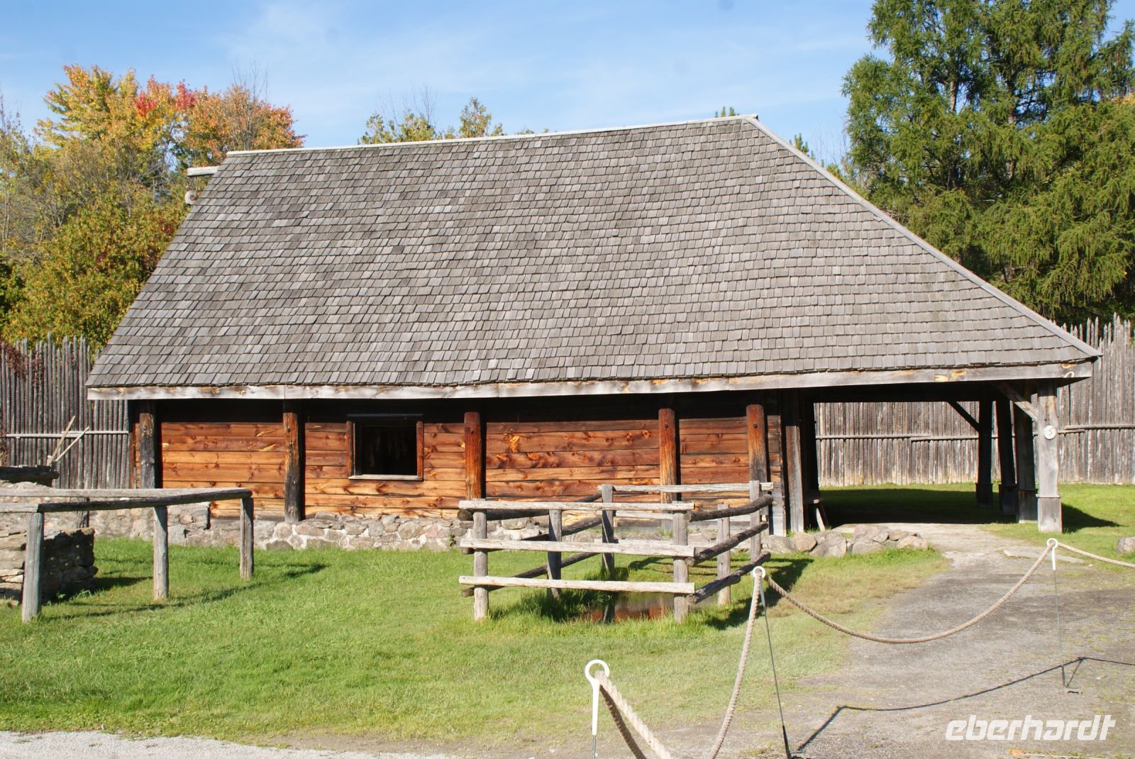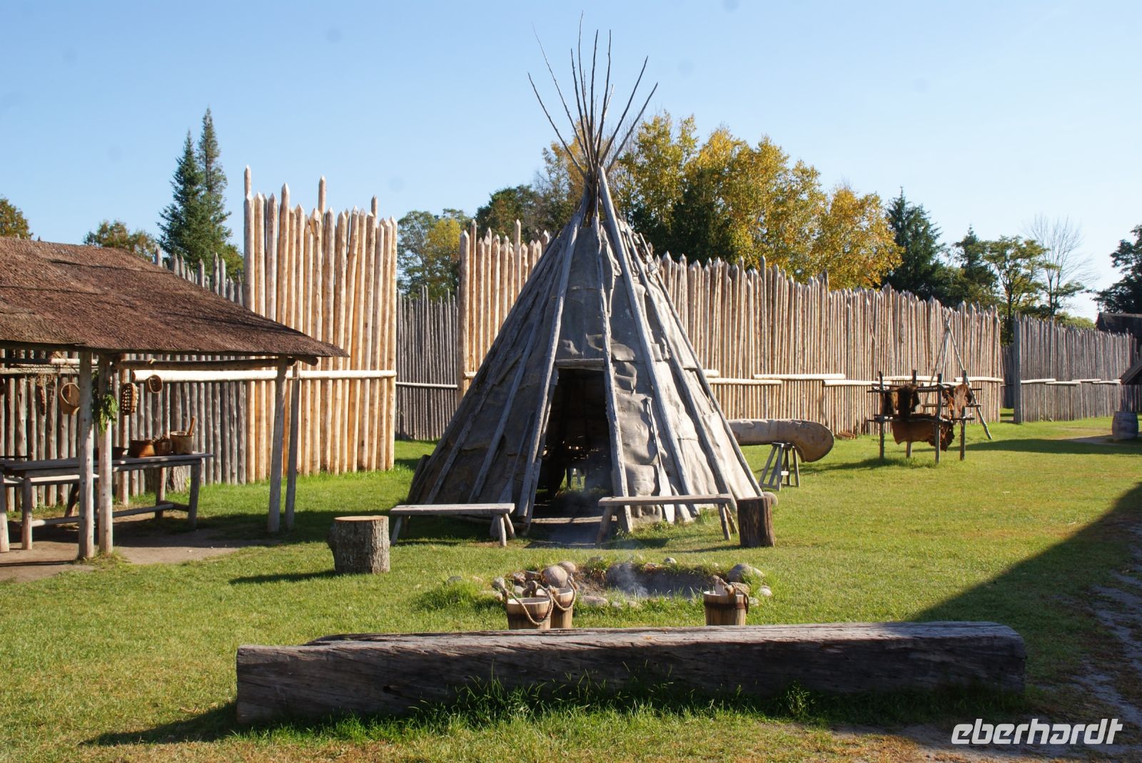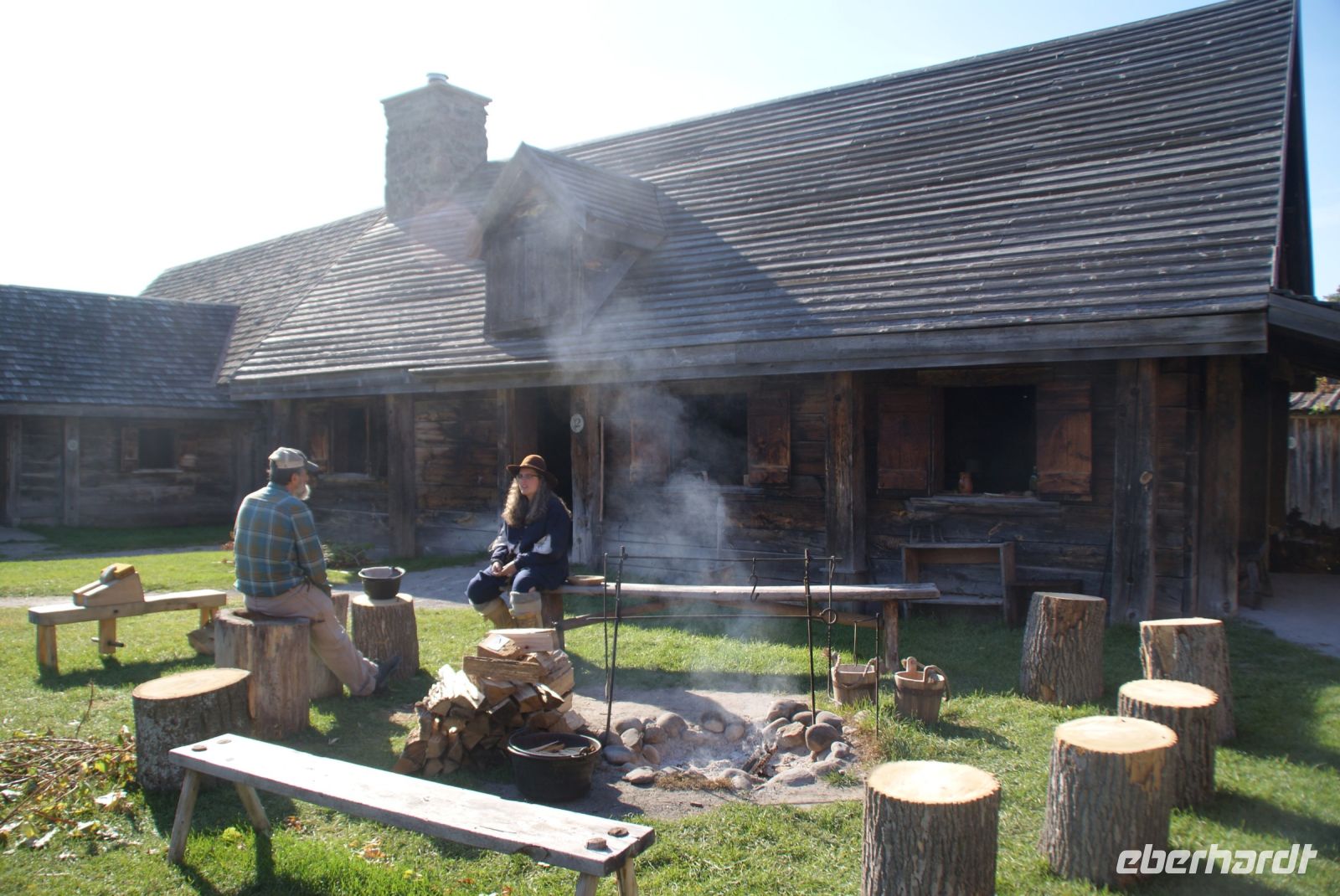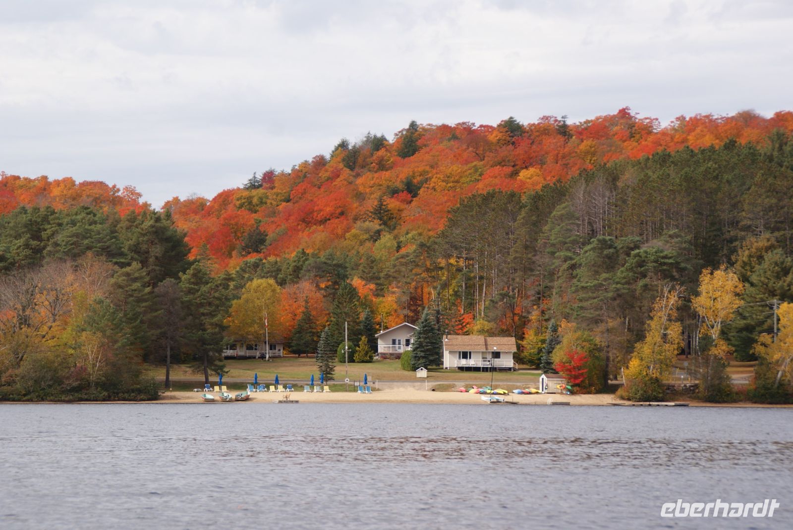 Nach einem tollen Frühstück in unserem Hotel verlassen wir die Niagara Fälle und fahren zum besonders anmutig gelegenen Ort Niagara on the lake. Auf dem Weg dorthin bestaunen wir die gepflegten Anwesen der Region und sind überzeugt, dass es sich hier bestens leben lässt. Viele Weingüter liegen an unserer Strecke und nicht umsonst gilt die Niagara Region als der Obstkorb und die Weinregion Kanadas. Es erfolgt ein schöner Spaziergang durch Niagara on the lake, mit wunderschöner Blumendekoration an allen Ecken. Wir erfahren von Paul, dass es in der Nähe eine Gartenbauschule gibt und die Schüler als Abschlussprüfung den Ortskern gestalten müssen. Wie wir finden, ist dies einfach toll gelungen. Weiter geht die Reise zum unaussprechlichen Ort namens Penetanguishene, was vermutlich irischen Ursprungs ist. In einer urigen Gaststätte nehmen wir unser Mittagessen ein und entscheiden uns für einen Kaffee und Gebäck zum Ufer des anliegenden Huronen Sees zu fahren. Hier genießen wir bei wunderbarem spätsommerlichen Wetter die Kulisse, den See und die herbstliche Natur. Am Nachmittag erreichen wir den historischen Ort St. Marie among the Hurons, welcher von 1639 bis 1649 bewohnt war. Dieser Ort gilt als erste Besiedlung Kanadas und man sieht die vielen historischen Gebäude, die original getreu wieder aufgebaut wurden und erhalten so einen beeindruckenden Einblick auf welche Weise hier einst gelebt wurde. Dies alles bei milden Temperaturen und strahlendem Sonnenschein, womit die Kulisse nochmals so besonders wirkt. Abends erreichen wir unsere Herberge für die kommenden zwei Nächte, das Hidden Valley Resort, wo wir nun mitten in der Natur mit Blick auf den See und nahe des Algonquin Parks wohnen. Der Indian Summer ist hier bereits in voller Pracht zu sehen und so genießen wir den Anblick der bunten, herbstlichen Laubfärbung und die Ruhe in der Natur.