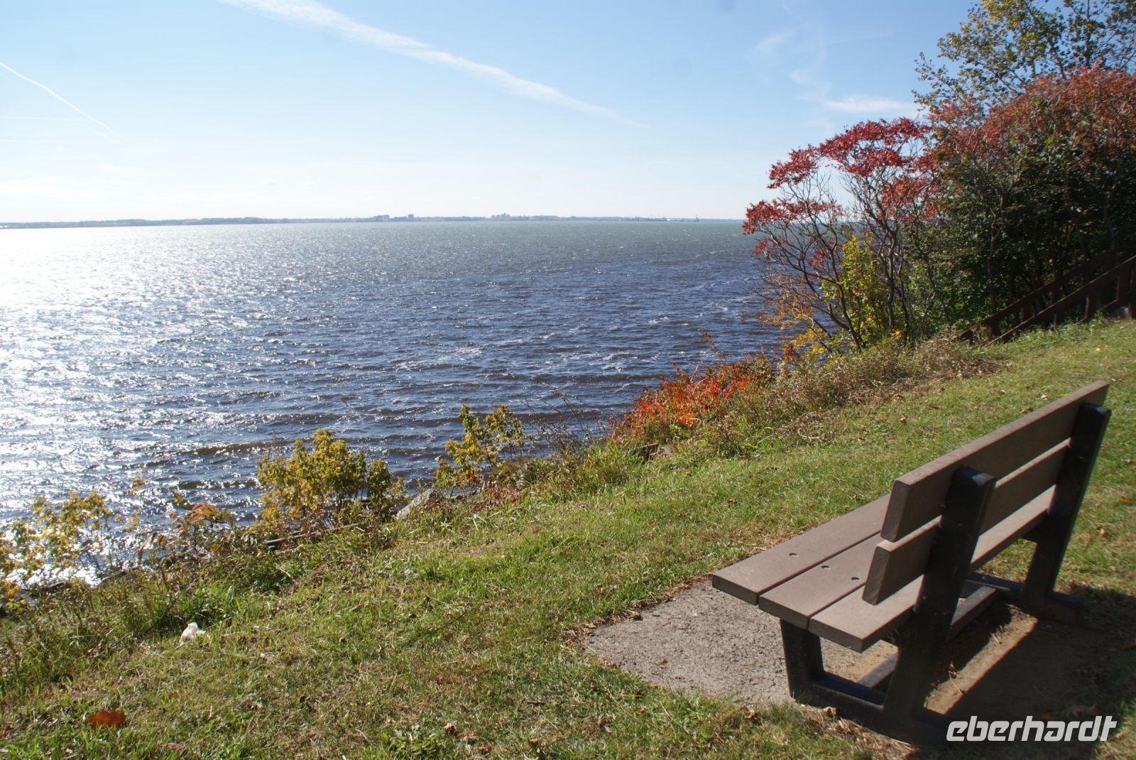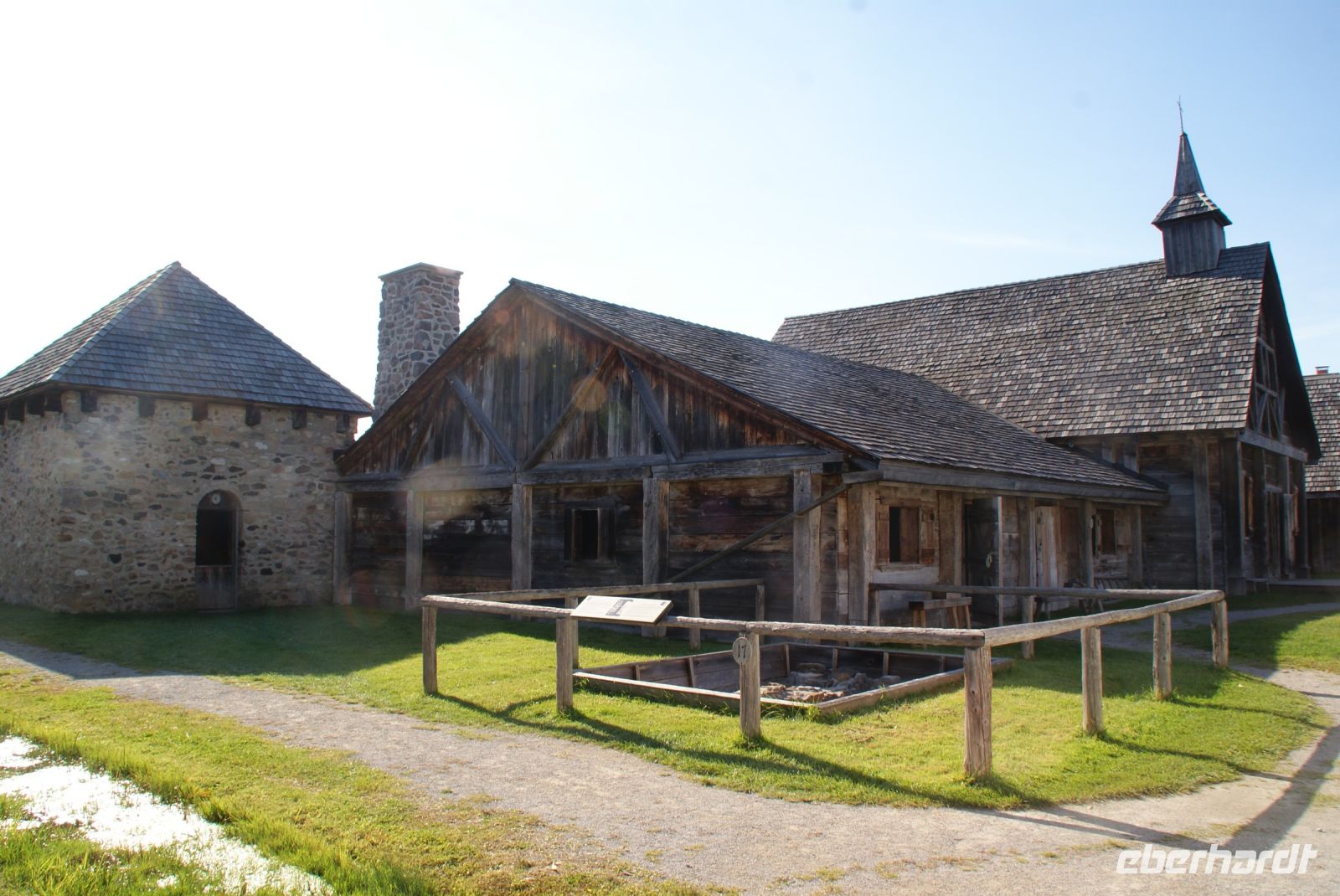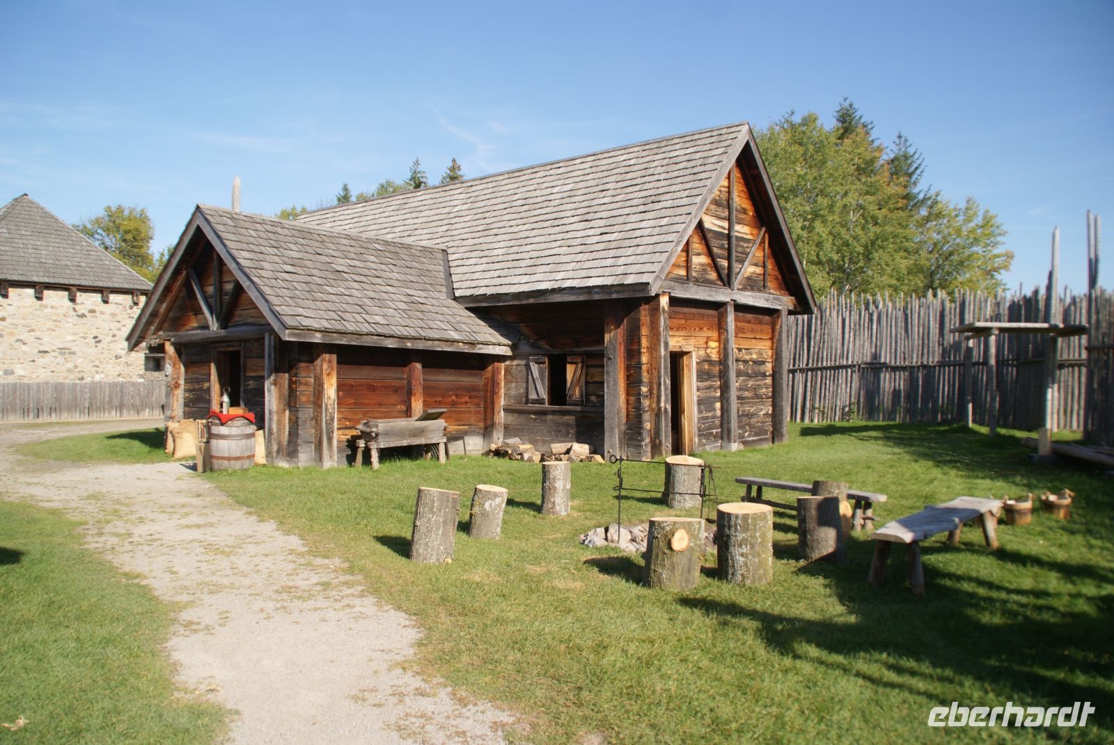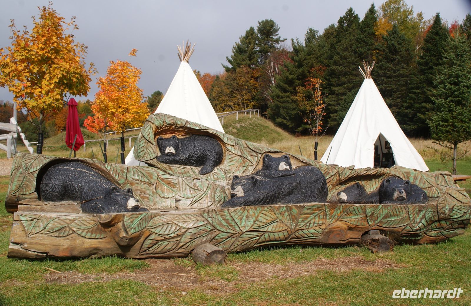 Nach einem tollen Frühstück in unserem Hotel verlassen wir die Niagara Fälle und fahren zum besonders anmutig gelegenen Ort Niagara on the lake. Auf dem Weg dorthin bestaunen wir die gepflegten Anwesen der Region und sind überzeugt, dass es sich hier bestens leben lässt. Viele Weingüter liegen an unserer Strecke und nicht umsonst gilt die Niagara Region als der Obstkorb und die Weinregion Kanadas. Es erfolgt ein schöner Spaziergang durch Niagara on the lake, mit wunderschöner Blumendekoration an allen Ecken. Wir erfahren von Paul, dass es in der Nähe eine Gartenbauschule gibt und die Schüler als Abschlussprüfung den Ortskern gestalten müssen. Wie wir finden, ist dies einfach toll gelungen. Weiter geht die Reise zum unaussprechlichen Ort namens Penetanguishene, was vermutlich irischen Ursprungs ist. In einer urigen Gaststätte nehmen wir unser Mittagessen ein und entscheiden uns für einen Kaffee und Gebäck zum Ufer des anliegenden Huronen Sees zu fahren. Hier genießen wir bei wunderbarem spätsommerlichen Wetter die Kulisse, den See und die herbstliche Natur. Am Nachmittag erreichen wir den historischen Ort St. Marie among the Hurons, welcher von 1639 bis 1649 bewohnt war. Dieser Ort gilt als erste Besiedlung Kanadas und man sieht die vielen historischen Gebäude, die original getreu wieder aufgebaut wurden und erhalten so einen beeindruckenden Einblick auf welche Weise hier einst gelebt wurde. Dies alles bei milden Temperaturen und strahlendem Sonnenschein, womit die Kulisse nochmals so besonders wirkt. Abends erreichen wir unsere Herberge für die kommenden zwei Nächte, das Hidden Valley Resort, wo wir nun mitten in der Natur mit Blick auf den See und nahe des Algonquin Parks wohnen. Der Indian Summer ist hier bereits in voller Pracht zu sehen und so genießen wir den Anblick der bunten, herbstlichen Laubfärbung und die Ruhe in der Natur.