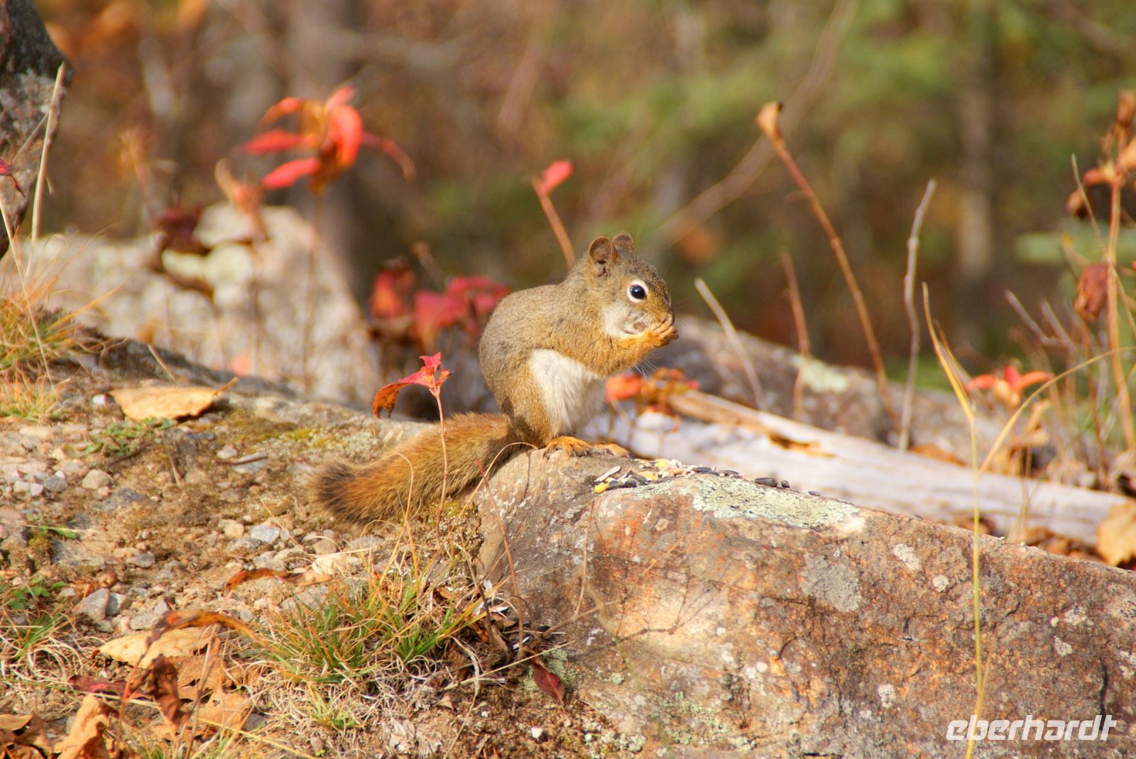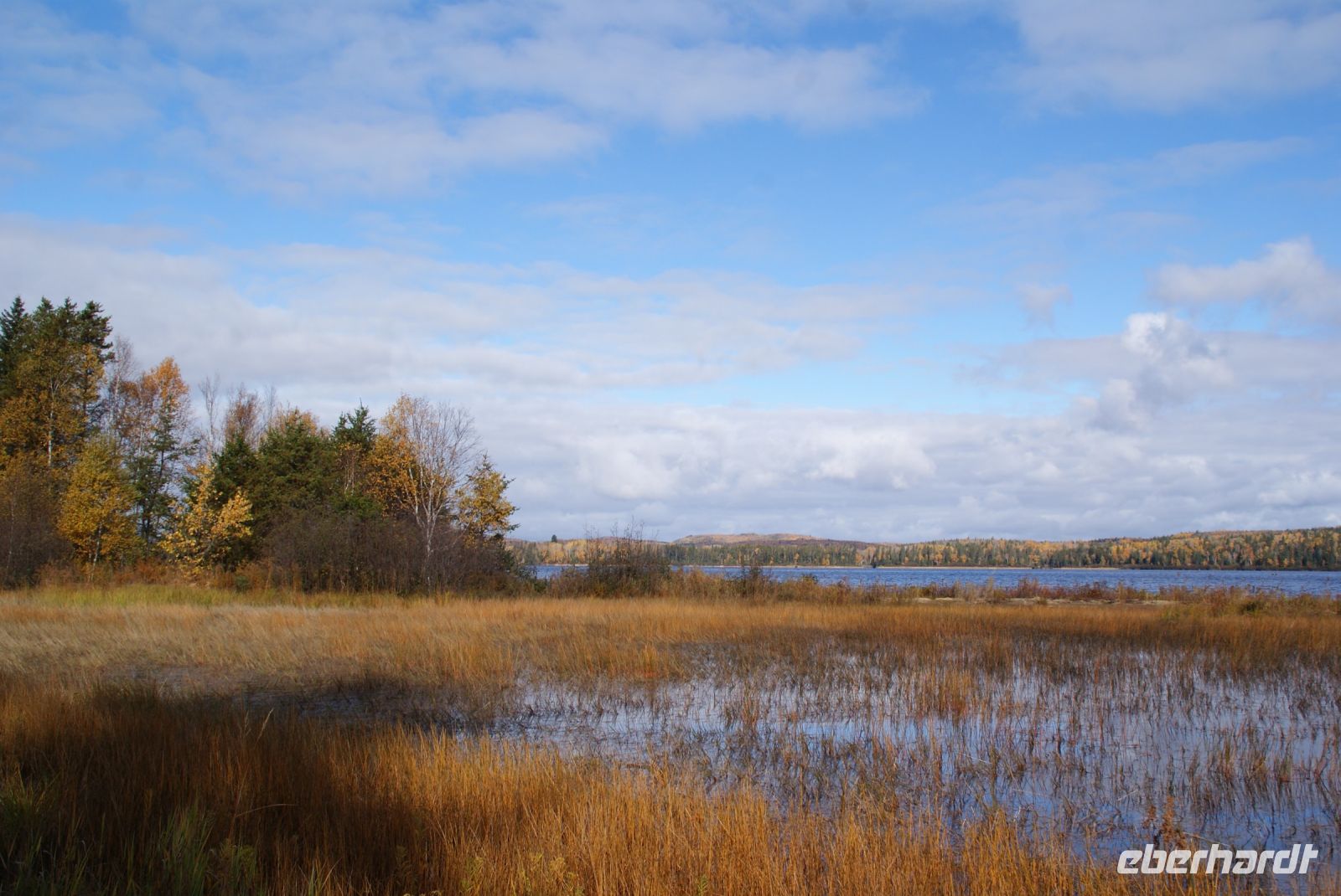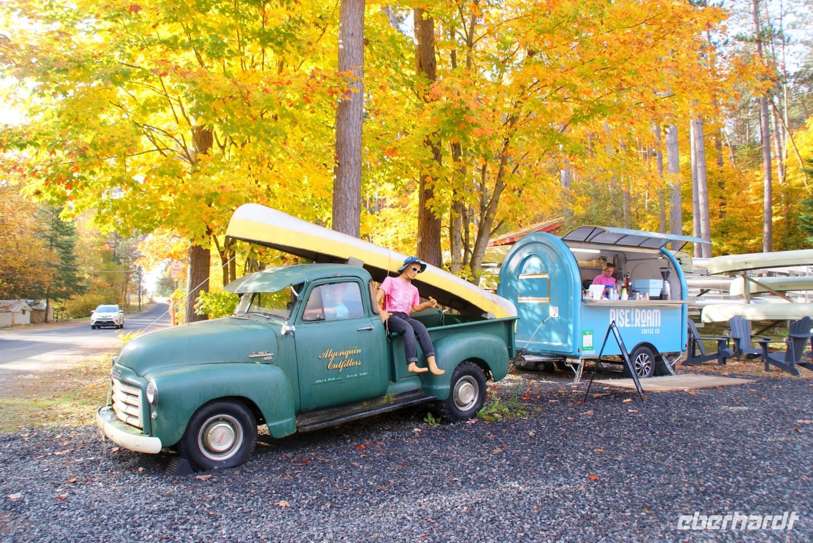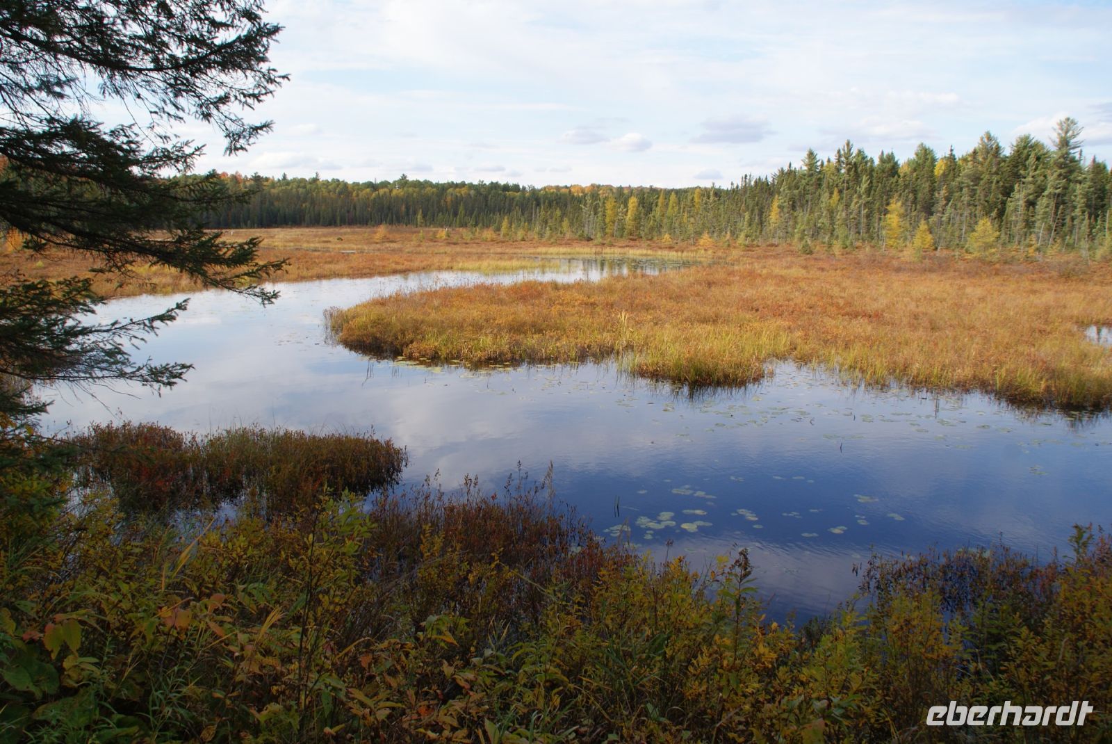 Der heutige Morgen führt uns zum Oxtongue Lake, auf dem wir eine Kanufahrt unternehmen. Aufgeteilt auf drei Boote und drei örtliche Guides paddeln wir um die Wette zunächst am See entlang und biegen später in einen Fluss ab, der uns zu einem Wasserfall führt. Uns umgibt erneut eine herrliche Herbstkulisse, es herrschen milde Temperaturen, die Sonne scheint und wir erleben einen wunderbar sportlichen Vormittag. So viel körperliche Bewegung macht uns hungrig, sodass wir nach Rückkehr unsere Lunchboxen am See genießen, Paul dazu noch einen mitgebrachten Gasgrill anwirft und zusätzlich noch Würstchen für uns brät. Welch ein Luxus, dazu die tolle Kulisse am See, schöne Sitzgelegenheiten und ein toller Mittagssnack umgeben von grandioser Natur, die wir uns nun bunter nicht mehr vorstellen können. Anschließend fahren wir in den Algonquin Park hinein, halten für diverse Fotostopps mit Prachtaufnahmen und unternehmen abschließend eine schöne Wanderung entlang des Spruce bog Boardwalk. Dies ist ein schöner 1,5 Km langer Rundweg, der uns am See entlang und durch den Wald führt. Wir begegnen handzahmen Meisen, die sich auf unsern Händen niederlassen, genauso wie etliche Streifenhörnchen, die ebenfalls recht zutraulich sind. Auf dem Rückweg halten wir nochmals am Canoe Lake, wo wir erneut eine tolle Fotokulisse vorfinden. Auch heute haben wir wieder einen Indian Summer Tag vom Feinsten erlebt, die Natur in vollen Zügen genossen, das alles bei milden Temperaturen und Sonnenschein-Petrus hat es sehr gut mit uns gemeint.