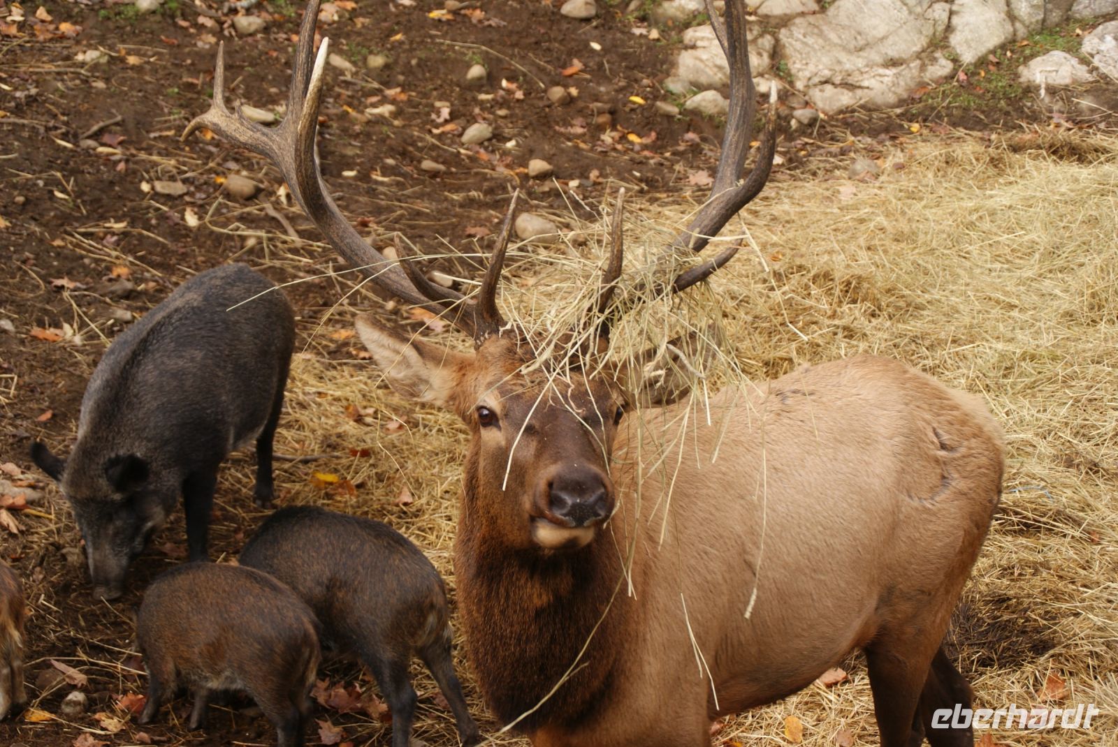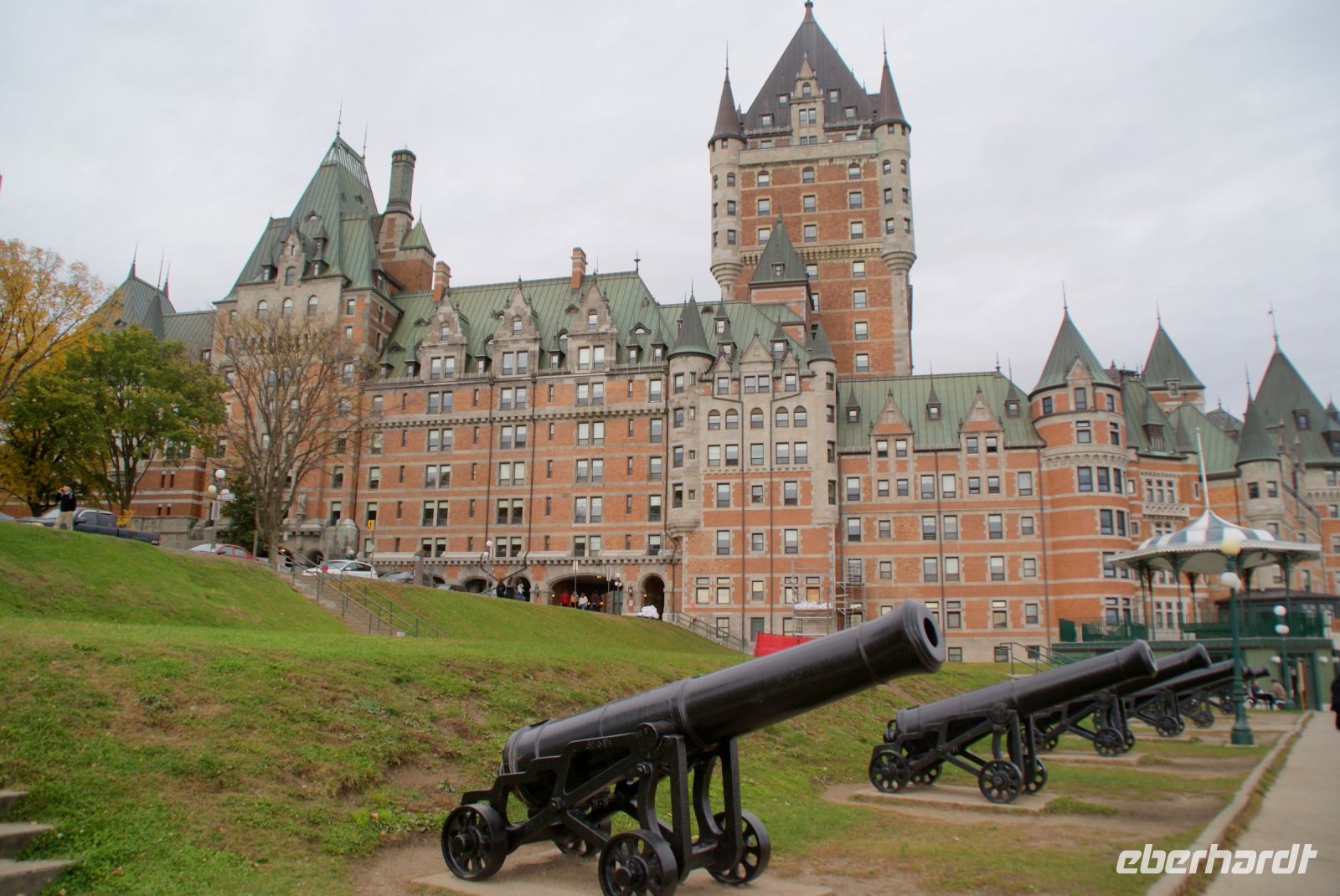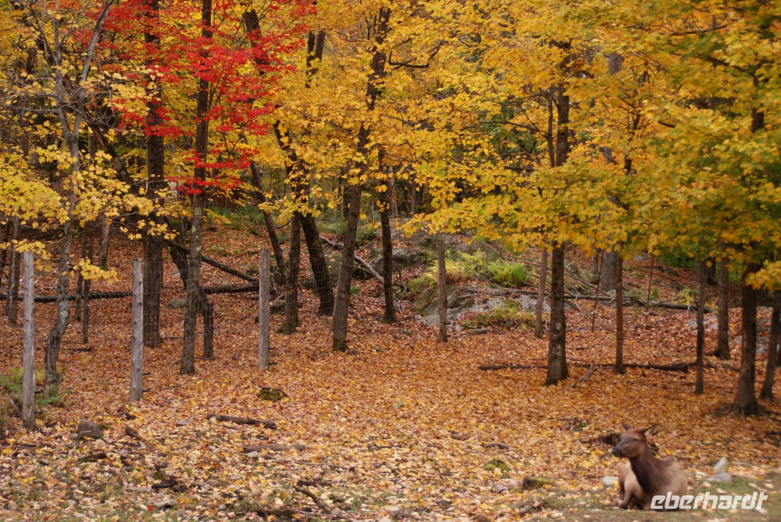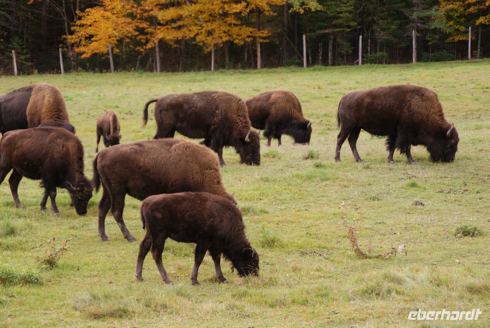 Ottawa verlassend, geht es auf die andere Seite des Ottawa Flusses nach Gatineau, wo wir vom kanadischen Geschichtsmuseum aus, einen herrlichen Blick auf den gegenüberliegenden Parlamentshügel haben. Wir befinden uns nun in der Provinz Quebec, dessen Motto auf den Kennzeichen „Je me souviens“ (ich erinnere mich) bedeutet und auf die französische Herkunft verweisen will. Von nun an wird es Französisch, das „Stopp-Schild“ heißt hier „Arret“, ein Hot Dog wird nun zum „chien chaud“ und so gibt es noch viele Beispiele, dass wir nun im französischen Teil Kanadas angekommen sind. Die Reise führt uns weiter zum Omega Wildpark, wo wir in einem ehemaligen Schulbus inklusive hiesigem Chauffeur durch den Park gefahren werden. Zunächst begrüßen und bereits die Wapiti Hirsche und freuen sich über unsere mitgebrachten Möhren. Auf unserer Strecke sehen wir noch Karibus, die an Weihnachten und Schlitten erinnern, einige Elche, Polarfüchse, arktische Wölfe, weiße Bergziegen, Bisons, Wildschweine und natürlich Schwarzbären. Viele Tiere Kanadas, die hier beheimatet und deren Unterkünfte herrlich in die Natur eingebettet sind. Mittags speisen wir fürstlich im Chateau Montebello, wieder eins der stattlich gebauten Anwesen mit toller Außenanlage und beeindruckendem Interieur. Nachmittags erreichen wir unser heutiges Tagesziel Montreal, die 2.größte Stadt Kanadas mit 1,2 Mio. Einwohnern und welche auf der Insel „Ile de Montreal“ gelegen ist. Diese umfasst eine Länge von 51 km und 16 km Breite. Unser erstes Ziel der Stadt ist der königliche Berg, der „Mont Royal“, von wo wir auf 233 m Höhe einen grandiosen Blick über die gesamte Stadt umrahmt von herbstlichem Laub haben. Eine schönere Kulisse kann es gar nicht geben und wir stoßen hier erst mal auf unseren tollen Reiseverlauf und die schöne Zeit miteinander an. Auf der Fahrt ins Tal sehen wir das 1973 erbaute Olympiastadion, welches 1976 für die Olympischen Sommerspiele geschaffen wurde. Als letzte Runde des Tages fährt uns unser Chauffeur Michel durch die Altstadt und den Hafen, sodass wir vor unserer morgigen Stadtführung bereits einen schönen ersten Eindruck gewinnen können. Leider verlässt uns Michel heute und wir erwarten am nächsten Tag einen neuen Fahrer mit neuem Bus.