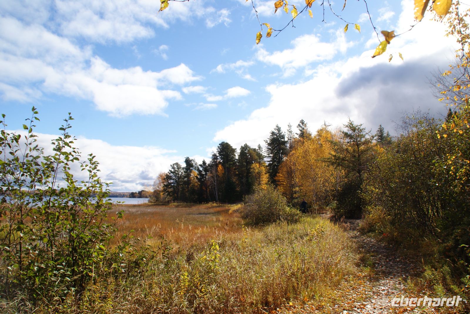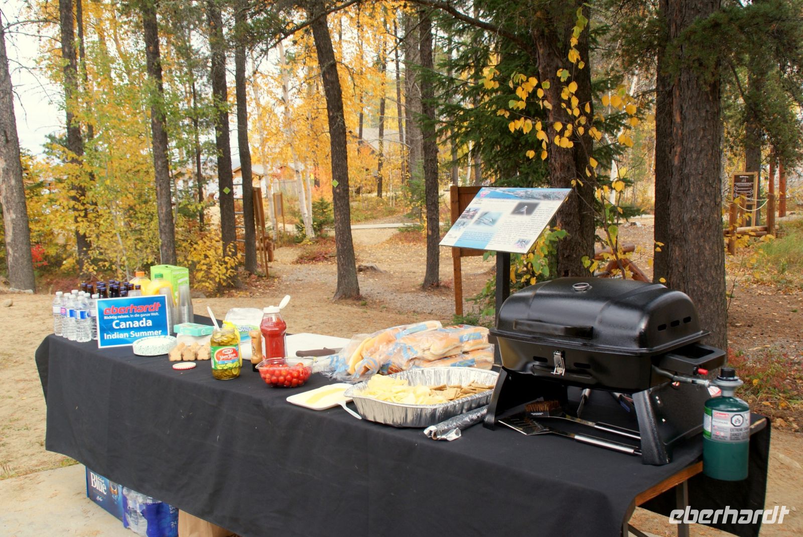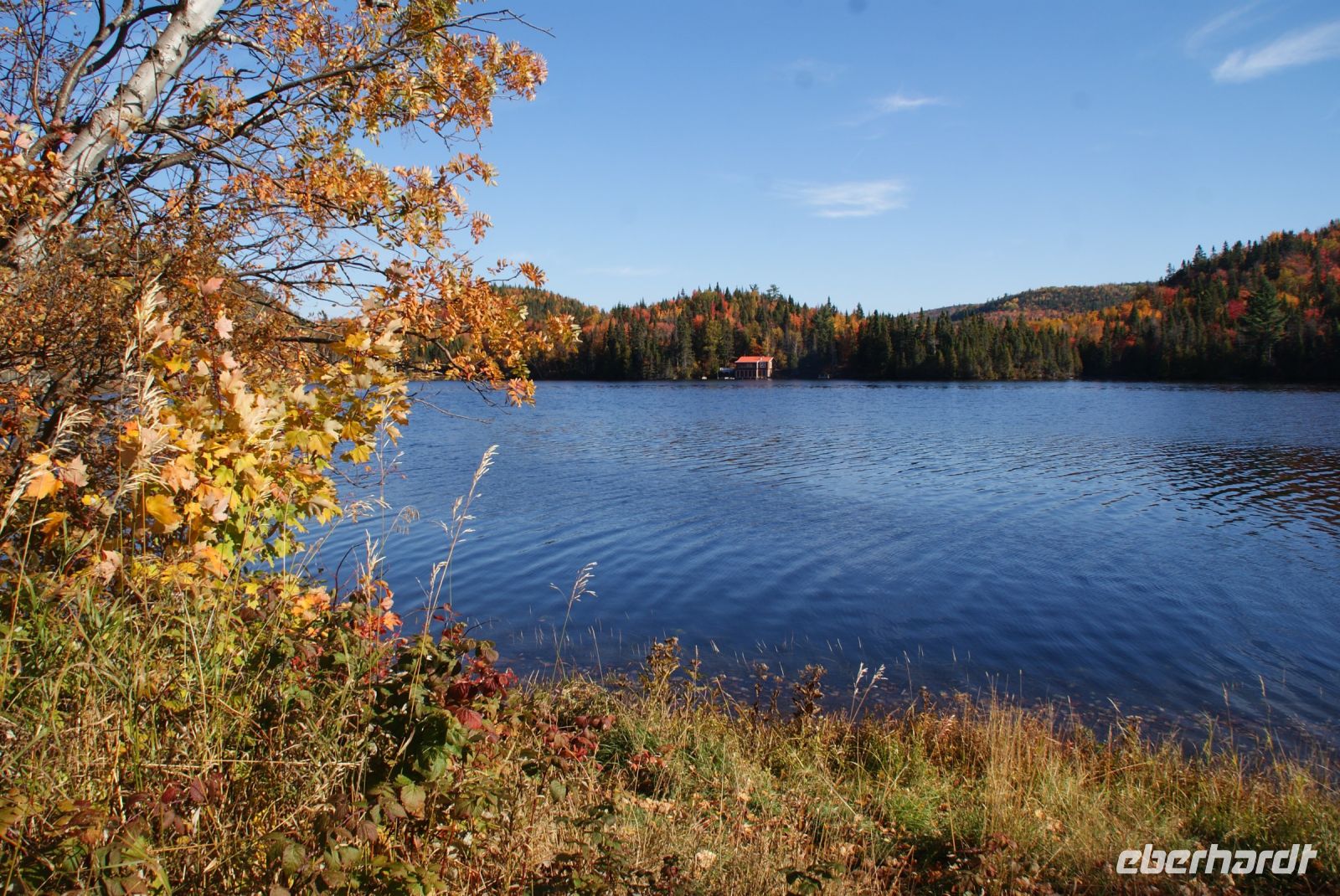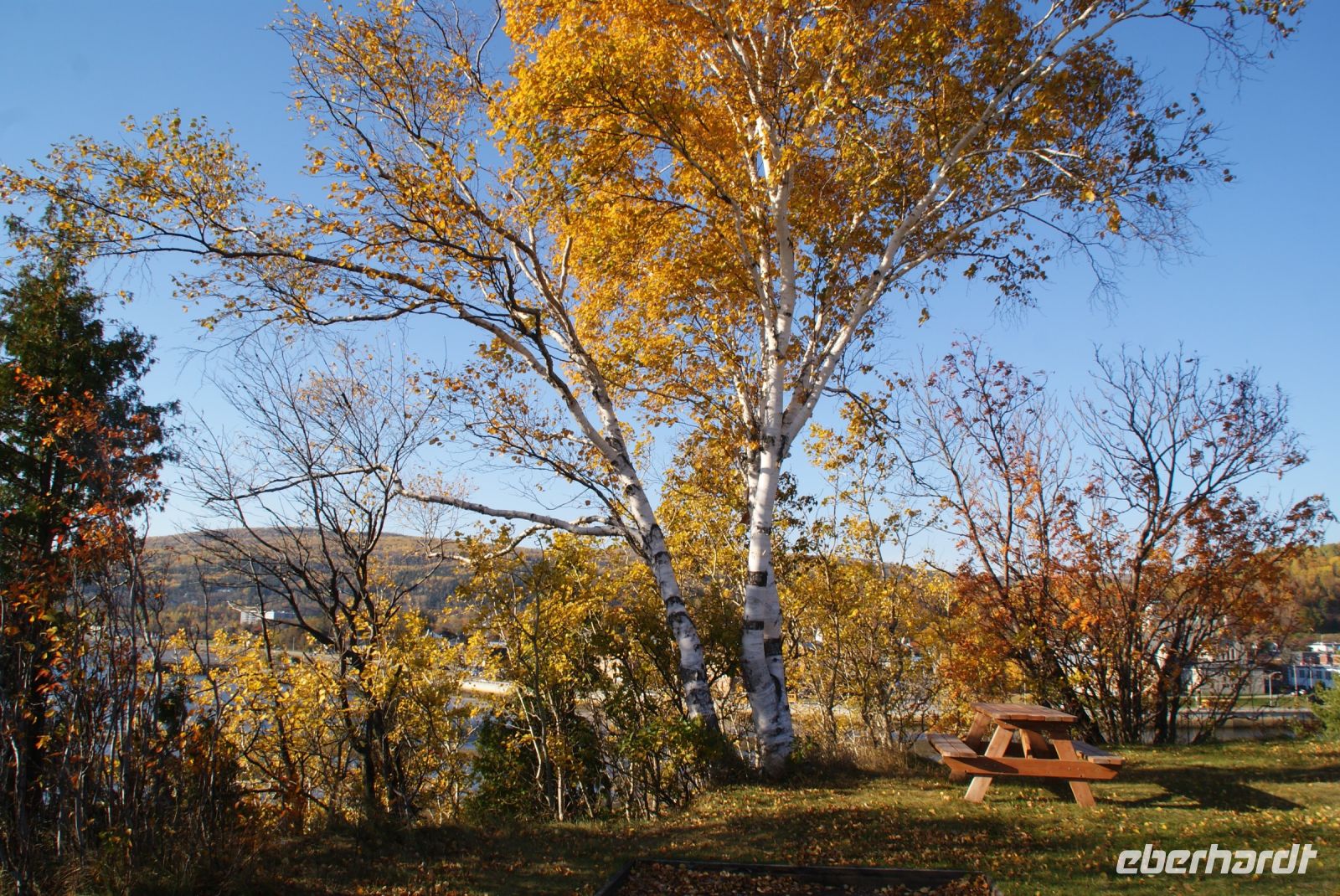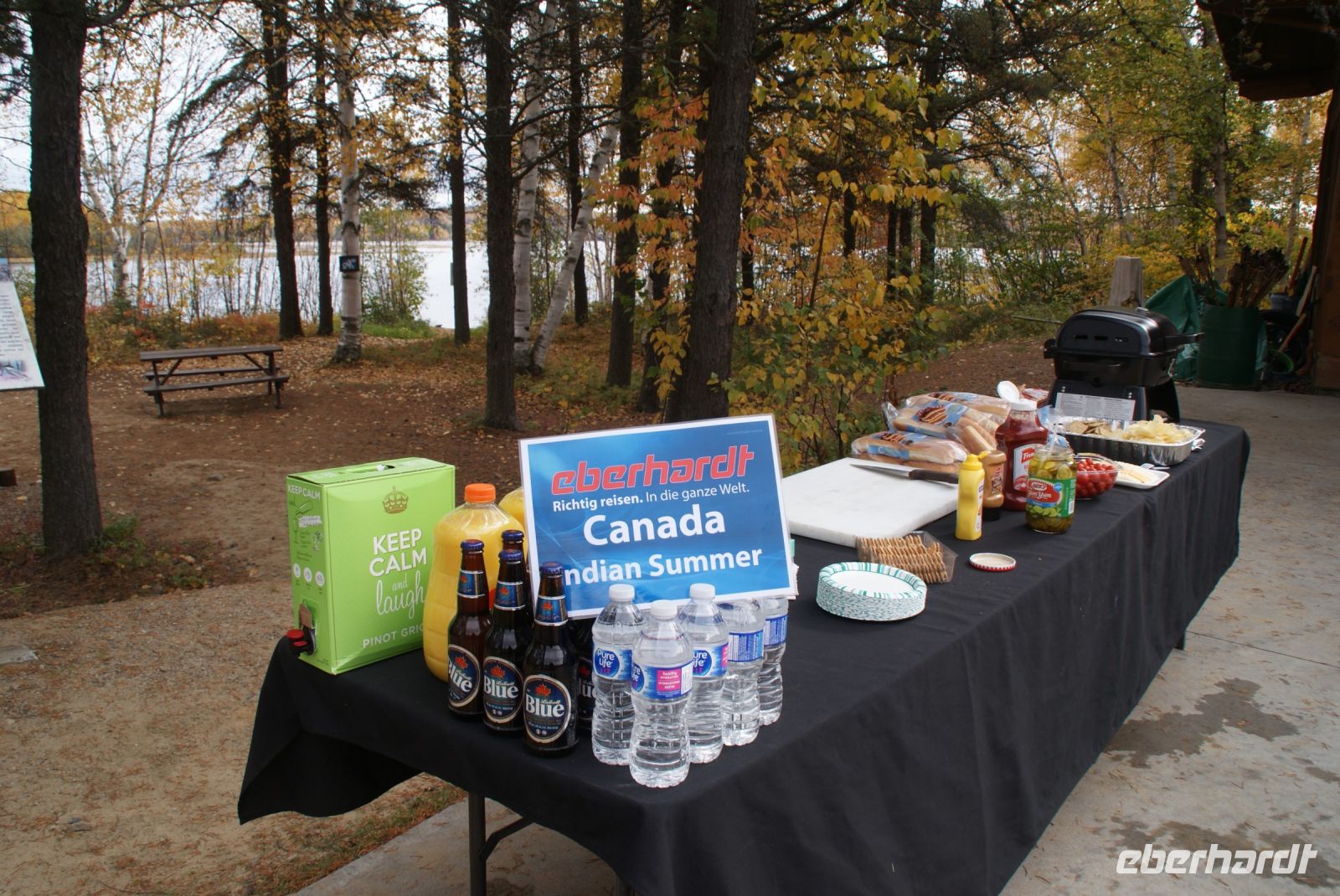 Heute ist ein großer Feiertag in Kanada-Thanksgiving-Erntedankfest! So haben auch wir uns vorgenommen, den Tag gebührend zu feiern. Zunächst schlafen wir aus, frühstücken ausgiebig und begeben uns anschließend auf eine wunderschöne, 7 Km lange Wanderung am See entlang und durch den Wald zurück. Wir passieren wieder viele schöne Kulissen und unzählige Birken säumen unseren Weg. Zurück in unserer schönen Auberge de Lac Taureau gibt es eine kleine Überraschungsparty für unsere Eberhardt Gäste und so genießen wir am Lagerfeuer Hot Dogs und Co. und ein kühler Tropfen darf hier auch nicht fehlen! Schließlich feiern wir ja mit den Kanadiern und uns selbst, für diese schöne, gelungene Reise durch den Osten Kanadas. Am Abend sind wir dann die einzigen Gäste im Haus, für die ein schönes Menü gekocht wurde. Alle anderen verbringen offensichtlich den Thanksgiving Abend im Kreise ihrer Familien. So speisen wir trotzdem in gemütlicher Runde und erfreuen uns an den leckeren Speisen und den guten Service im Haus.