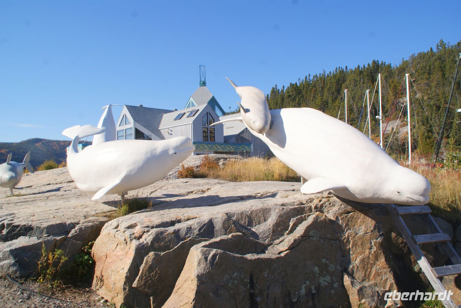 Der nördlichste Punkt unserer Kanada Reise führt uns heute nach Tadoussac und ist den Walbeobachtungen auf dem St. Lorenz Strom gewidmet. So starten wir nach einem deftigen Holzfällerfrühstück auf einer Panoramaroute Richtung Norden. Zunächst halten wir an einem wunderschönen Ort, Porte de Persil, wo sich ein idyllischer Wasserfall und somit erneut eine schöne Fotokulisse bietet. In Tadoussac angekommen besuchen wir zunächst das Marine-Informationscenter, wo wir durch Guide Michel interessante Informationen über die hier zu findenden Wale erhalten. Etliche Exponate hängen unter der Decke und man erhält so einen ersten Eindruck der Dimensionen dieser stattlichen Meeressäuger. Danach haben wir noch Gelegenheit in Ruhe unseren Mittagssnack in der Bucht mit traumhaften Ausblicken zu genießen. An Bord angekommen, verteilen wir uns je nach Gusto, die einen bleiben gut verpackt draußen an Deck, andere ziehen die Innenbereiche vor. Traumwetter und milde Temperaturen verheißen wunderbare Stunden auf dem offenen Wasser. Wir sehen einige Minkwale, die bis zu 8 m lang werden, dazu etliche Seehunde und eine große Anzahl an weissen Beluga Walen. Diese werden mit viel Da-Da-Da und Wo-Wo-Wo bestaunt und bejubelt. Zugegebenermaßen sind es deutlich weniger Wale als die Jahre zuvor, da sich hier aktuell leider weniger Nahrung für die Tiere finden lässt. Trotzdem hatten wir eine herrliche Kulisse mit Sonnenschein, ruhigem Seegang und ausreichend Gelegenheit, die Zeit an Bord zu genießen. Zurück an Land führt uns die Reise zurück nach La Malbaie, wo wir nochmals übernachten und einen schönen kulinarischen Abend erleben.