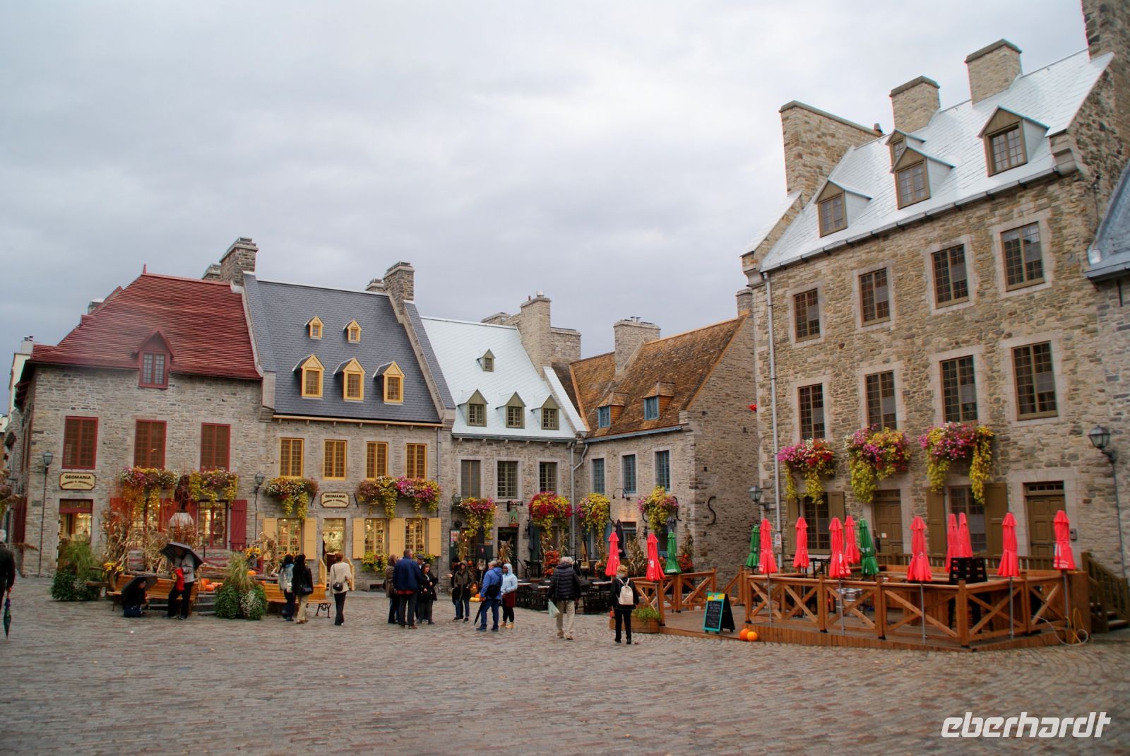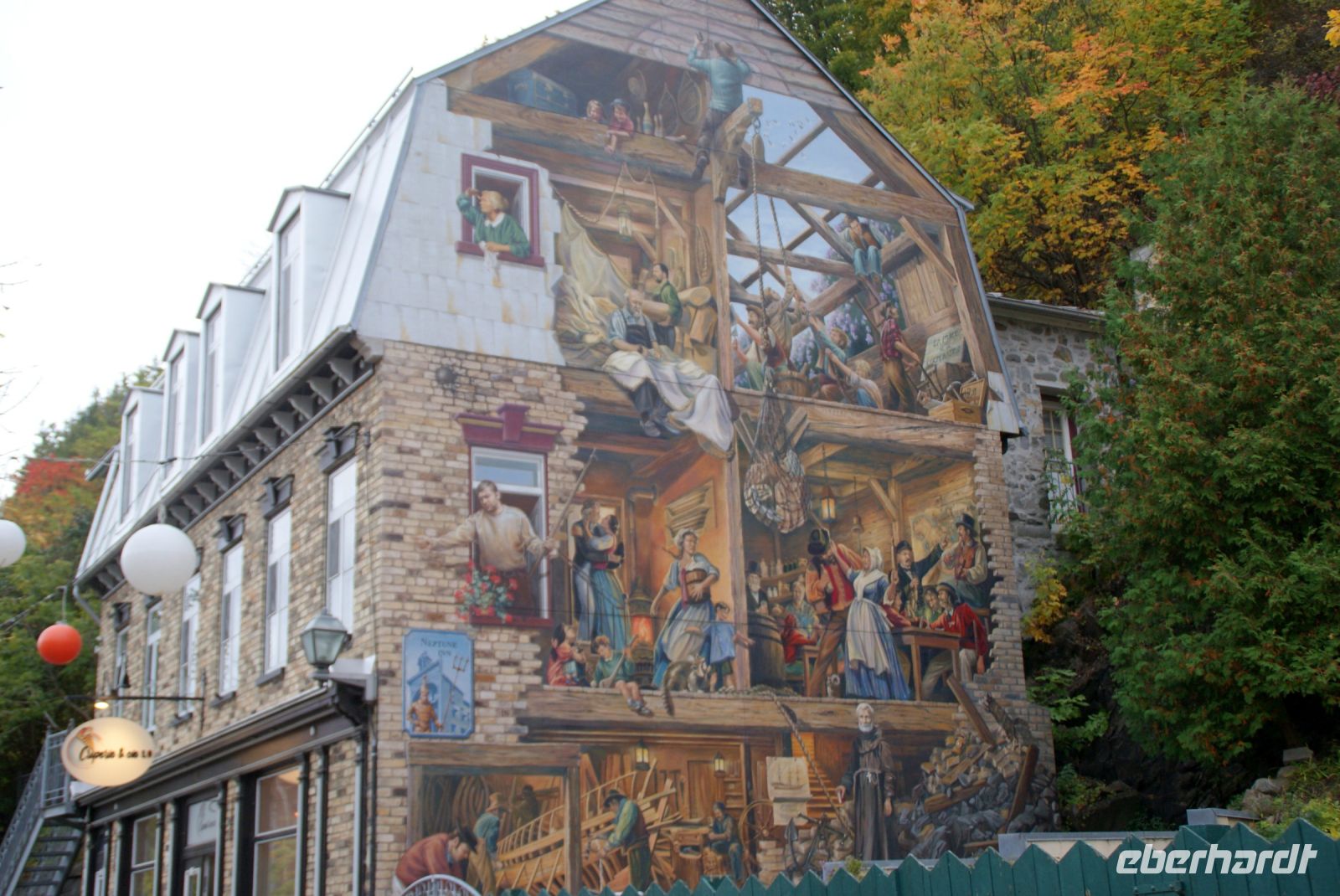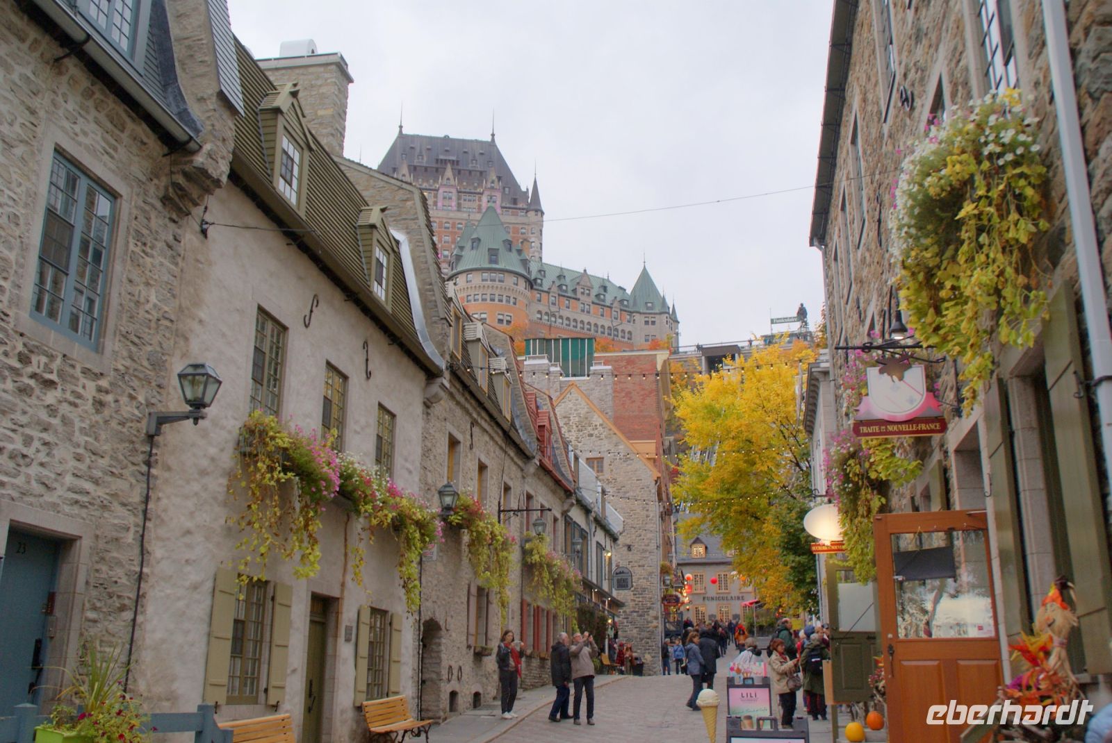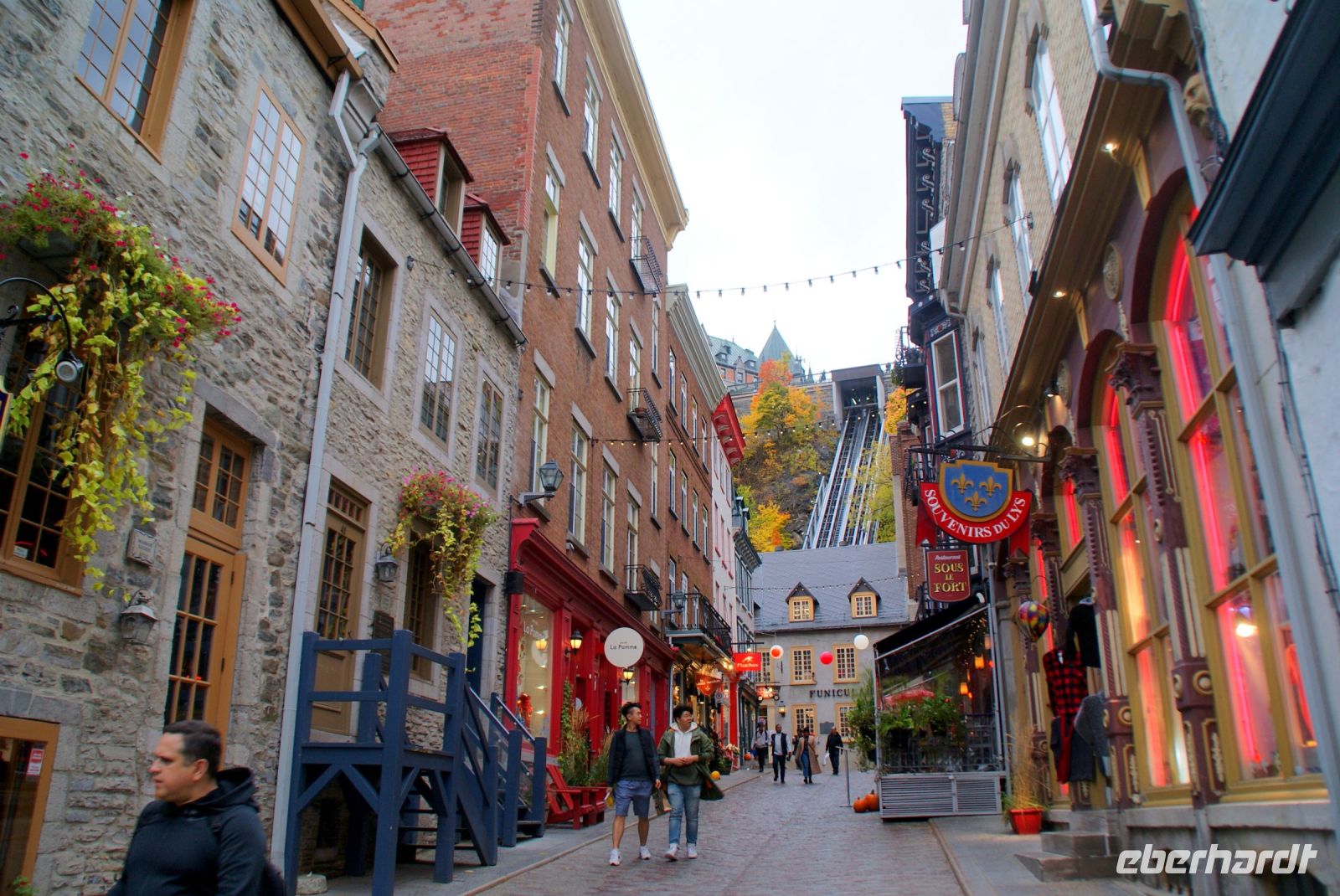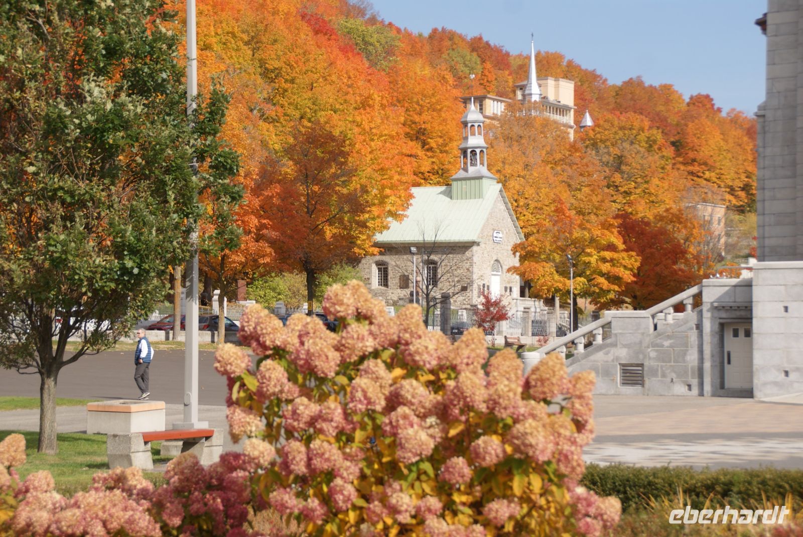 Unsere Fahrt zum Tagesziel Quebec führt uns heute zunächst durch den malerischen Ort Baie St. Paul, mit wunderschönen kleinen Straßen, vielen Häusern im kanadischen Landhausstil, kleinen Geschäftchen-hier könnten wir gerne noch bleiben. Am Canyon St. Anne angekommen, wagen sich manche von uns auf den „Speed-Sessellift“ und mit rauschender Geschwindigkeit geht es zunächst rückwärts, dann vorwärts über den in der Tiefe gelegenen Canyon. Eine riesen Gaudi für die im Lift und auch für die Zuschauer. Der anschließende Spaziergang bringt uns über insgesamt drei Hängebrücken über den Canyon und durch die herbstliche Natur, die nun bunter nicht mehr sein kann. Dazu Sonne pur, beinahe 20 Grad, wir haben unfassbares Glück all dies so erleben zu dürfen. Der nächste Halt erfolgt an der bedeutendsten Wallfahrtskirche Nordamerikas-St. Anne de Beaupré, die von außen und besonders auch von innen sehr beeindruckend ist. Hier sollen bereits so manche Wunder geschehen sein und etliche hinterlassene Gehhilfen, etc. sind deren stille Zeugen, die wir im Eingangsbereich vorfinden. Die Kirche umrahmt von gelb-roten Bäumen, dazu blauer Himmel, ein unbeschreibliches Farbspiel. Mittags erreichen wir Quebec, welche die Hauptstadt der gleichnamigen Provinz ist. Quebec bedeutet in der Sprache der indigenen Bevölkerung „da wo der Fluss enger wird“ und wir sehen, dass der St. Lorenz Strom hier nur 800 m breit ist. Wir erhalten eine zweistündige Führung durch die örtliche Reiseleiterin Marina, die uns engagiert durch die Stadt begleitet. Zunächst fahren wir zu den sogenannten „Feldern Abrahams“ wo sich die einstige, kurze 25-minütige Schlacht der Engländer und Franzosen zugetragen hat. Heute dient dieser historische Ort als Freizeittreffpunkt der Quebecer, die hier im Sommer picknicken, Fußball spielen und sich im Winter zum Langlauf verabreden. Zu Fuß spazieren wir entlang des Wahrzeichen Quebecs -das Chateau Frontenac, ein heutiges schlossartiges Luxushotel, welches 1893 entstand und man für 30 Jahre daran baute. Heute fasst es 620 Zimmer und thront beeindruckend auf einem Hügel in der sogenannten Oberstadt. Entlang der Kathedrale, des Rathauses und der Basilika de Notre Dame fahren wir weiter in die Unterstadt (hier entstand der Begriff „Downtown“), sehen viele malerische Gebäude aus vergangener Zeit und fühlen uns in den engen Gässchen wie mitten in Frankreich. Nach unserer interessanten Führung haben wir noch Freizeit, die Atmosphäre auf uns wirken zu lassen und noch das ein oder andere Souvenir zu ergattern. Am Abend rundet ein Besuch in der Zuckerhütte mit deftigen Quebecer Speisen unseren schönen Aufenthalt ab und allmählich neigt sich unsere schöne Tour durch den Osten Kanadas dem Ende zu. Zurück im Hotel nutzen wir die Gelegenheit, um uns bei unserem freundlichen Busfahrer Michel der 2. zu bedanken, der uns stets fröhlich und sicher durch den letzten Teil unserer Rundreise gefahren hat. Natürlich ebenso bei unserem Reiseleiter und Unikum Paul-ihn zu beschreiben-zwecklos, man muss ihn einfach erleben. Viel Wissen, gepaart mit Witz und so manchem Augenzwinkern hat er uns eine wunderbare Zeit im Osten Kanadas bereitet. Seine etlichen Geschichten werden sicherlich unvergesslich bleiben und sollten wir je ein „romantisches Wochenende im Algonquin Park“ buchen wollen, so wissen wir, auf was wir uns einlassen werden…grins.