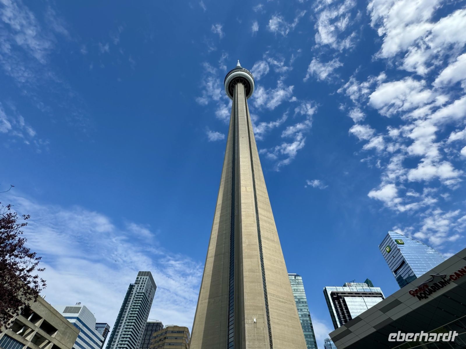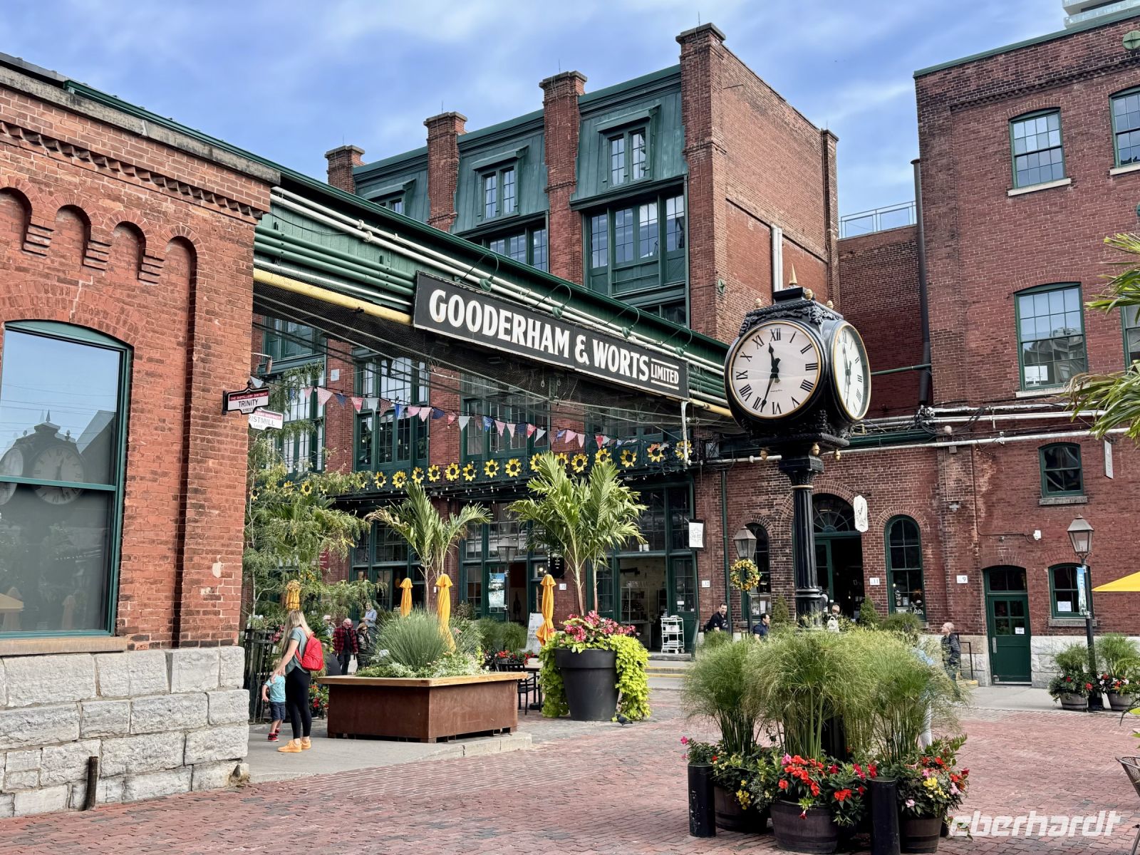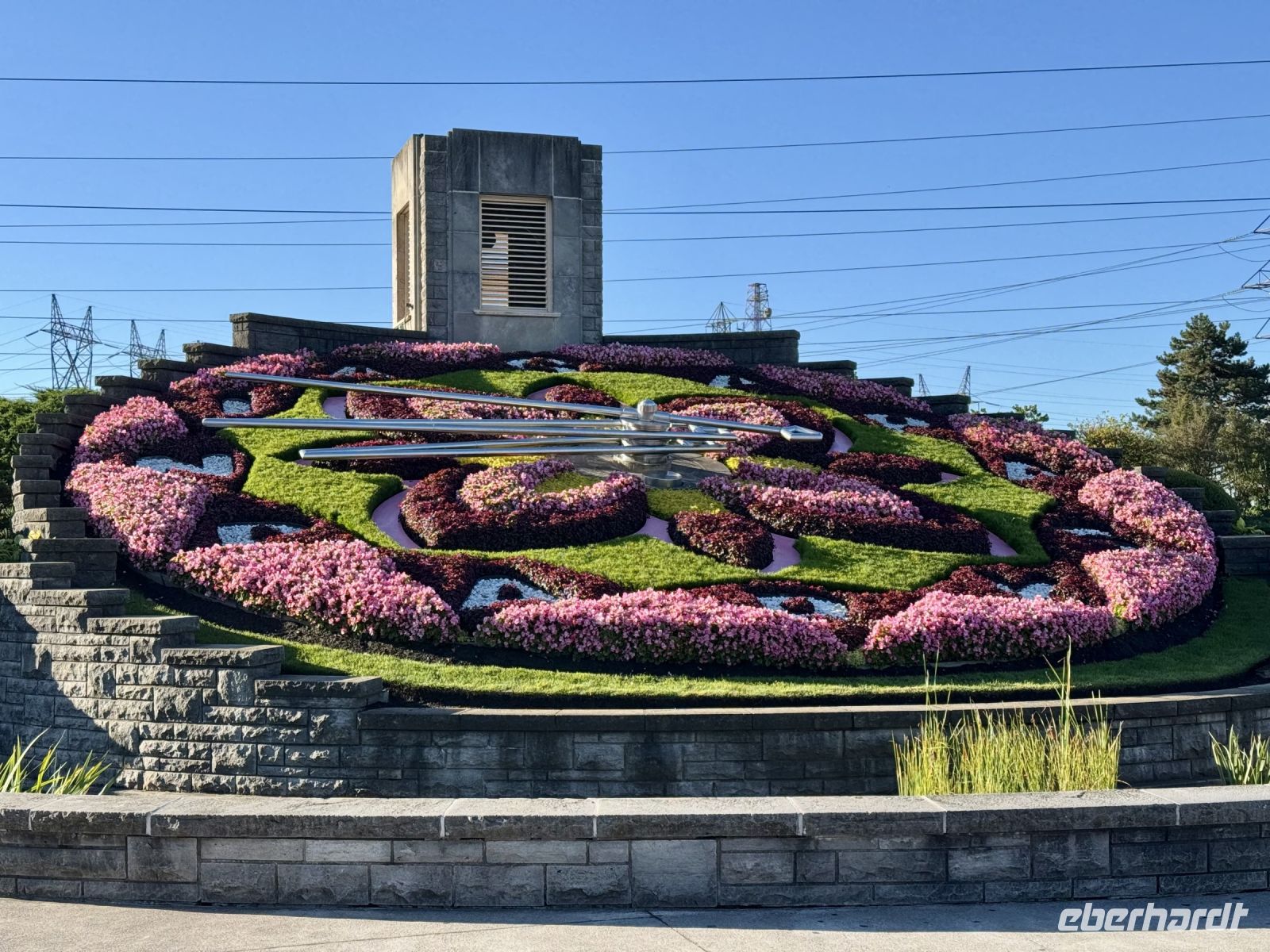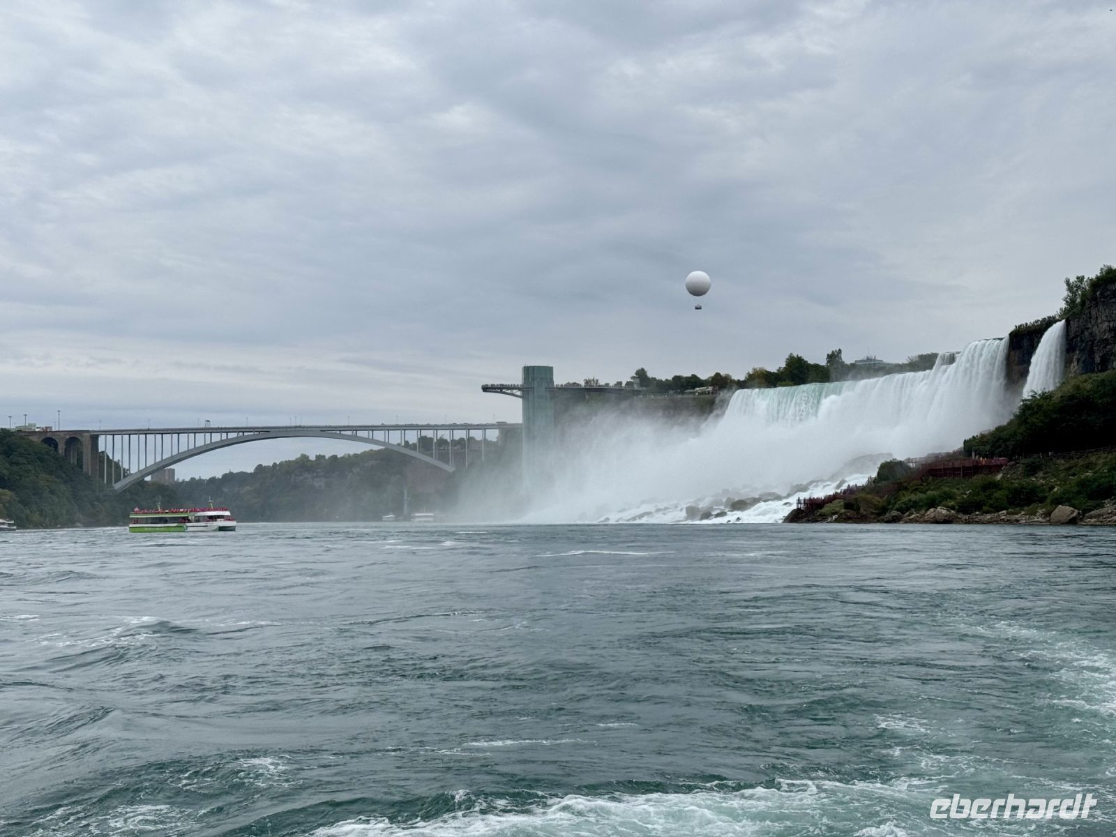 Die erste Nacht in Kanada liegt hinter uns, das erste Frühstück überzeugt mit einer großen Auswahl. Ausgeruht und gestärkt starten wir zur Stadtrundfahrt durch Toronto, was, ähnlich wie später in Montréal, auch immer eine Baustellenrundfahrt ist. Unglaublich, wie schnell sich in Nordamerika eine Stadt verändert, ja regelrecht umgekrempelt wird. Wir werfen nochmals bei Tageslicht einen Blick auf das Rathaus, fahren dann an der Konzerthalle vorbei und durchqueren Chinatown. Um das Parlament von Ontario drehen wir eine Ehrenrunde und steuern nun den CN Tower an. Meine Wetterengel sorgen für perfekte Bedingungen bei der raschen Auffahrt zu beiden Aussichtsplattformen. Im Süden die Toronto Islands und der Ontariosee, im Norden das Stadtzentrum – ein toller Blick in jede Richtung. Wir saugen alles auf und treffen uns begeistert wieder bei Jason am Bus. Er fährt uns erneut ein Stück durch Chinatown, bevor wir zum Dundas Square abbiegen und zum Distillery District weiterfahren. Hier machen wir nochmals eine längere Pause, kaufen uns eine Kleinigkeit zum Mittagessen und stürmen fast geschlossen die Schokoladenfabrik. Warme Temperaturen, blauer Himmel und köstliches Eis — da kommt sofort Urlaubsfeeling auf. Wir kehren zum Bus zurück und nehmen nun langsam Abschied von Toronto. Während Jason den Bus aus der Stadt hinausschlängelt, passieren wir den St Lawrence Market und das Gooderham Building sowie mit dem Fort York den Ursprung der heutigen Metropole. Die anschließende Fahrt in die Niagara-Region führt durch das Goldene Hufeisen in landwirtschaftlich geprägte Gegenden, in denen der Obst- und Weinanbau dominiert. Am sog. Whirlpool treffen wir erstmals auf den Niagara River und folgen ihm flussaufwärts zu den berühmten Wasserfällen. Beim Fotostopp am Table Rock bekommen wir einen guten ersten Eindruck und werden von der aufspritzenden Gischt auch schon ein bisschen nass. Noch feucht-fröhlicher geht es anschließend bei unserer Bootsfahrt zu den Niagarafällen zu. Unsere roten Regencapes schützen wenigstens den Oberkörper, als das Schiff ganz dicht an die Horseshoe Falls heranfährt, bis sich außer weißer Gischt eigentlich nichts mehr ringsum erkennen lässt. Da wird die Kraft der Wassermassen wirklich spürbar. Das war aufregend! Und bis hierhin auch schon ein ereignisreicher zweiter Tag in Kanada. Der Jetlag holt uns langsam ein, weshalb wir das Hotel ansteuern, um uns für ein Weilchen zurückzuziehen. Jason hat freundlicherweise schon die Zimmerkarten und Begrüßungskekse besorgt. Nach der Erholungspause treffen wir uns in der Lobby wieder und begeben uns zu unserem Abendessen auf dem Skylon Tower. Tatsächlich hat überraschenderweise ein leichter Regen eingesetzt, der jedoch im Laufe des Abends wieder endet. Die Aussicht vom Turm auf die Wasserfälle ist natürlich toll. Wir sind auch pünktlich zum Sonnenuntergang eingetroffen. Nach dem leckeren Essen ist vor dem nächsten Höhepunkt: Später am Abend gibt es nämlich noch ein kleines Feuerwerk über den Niagarafällen.