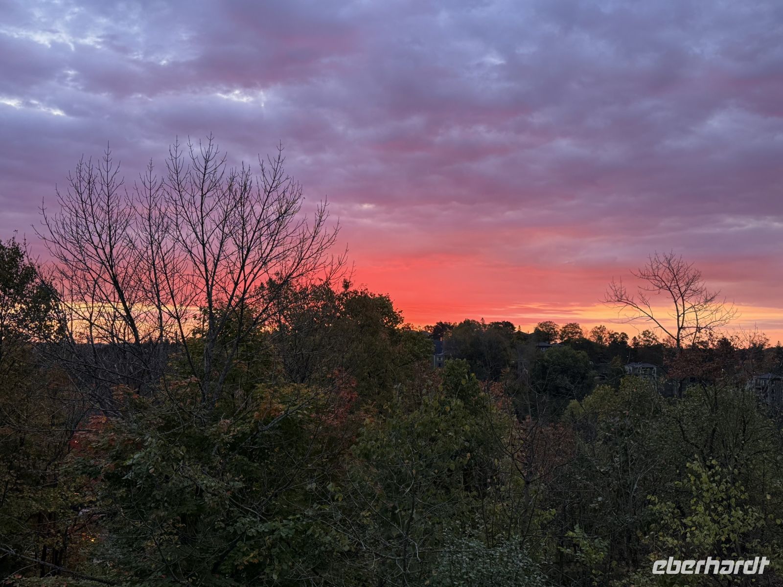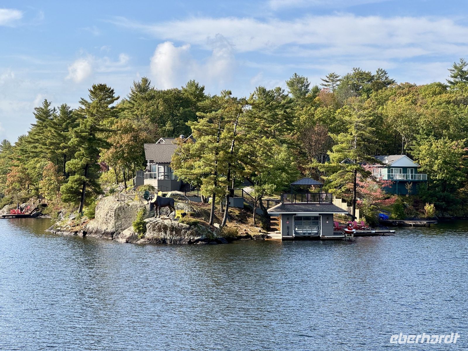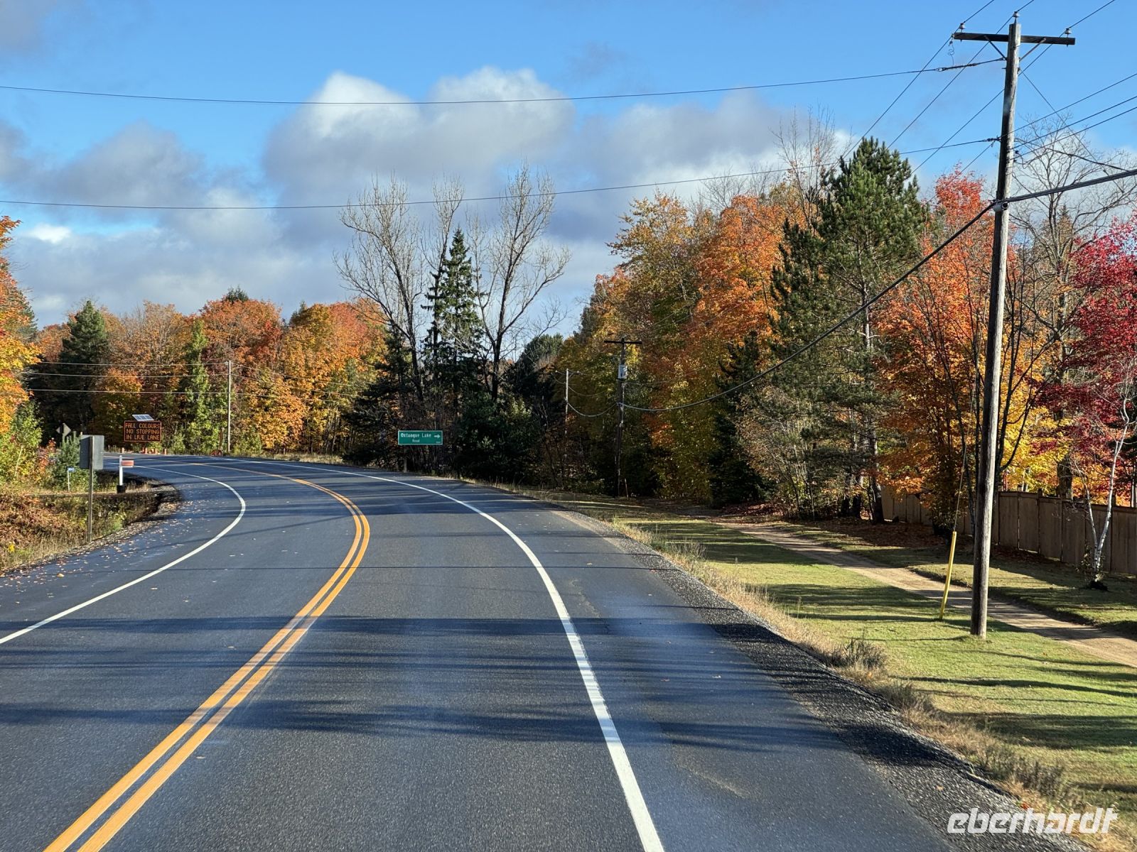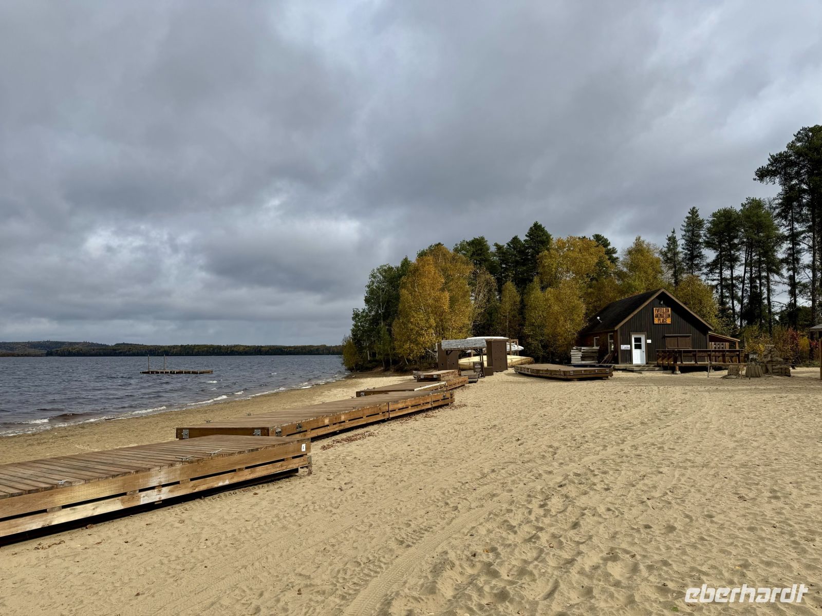 Auch der heutige Tag beginnt mit einem herrlichen Sonnenaufgang mit wunderschönen Rot- und Violetttönen — und mit einem ausgiebigen späten Frühstück, denn ich lasse meine Gäste freundlicherweise fast ausschlafen. Ist ja auch Sonntag! Das Tagesprogramm ziehen wir heute von hinten auf, d. h. wir beginnen mit einer kleinen herbstlichen Rundfahrt durch die Muskoka-Region. Hier ist der Indian Summer bereits in vollem Gange. Das Herbstlaub leuchtet trotz Wolkendecke wunderschön in Gelb, Orange und Rot. Herrlich! In Dorset an der Lake of Bays machen wir eine Pause am berühmten Robinson’s General Store und setzen dann unsere Fahrt in Richtung Gravenhurst fort. Nach einer Weile setzt dann doch der angekündigte Regen ein. Es entwickelt sich sogar ein richtiges Gewitter mit Platzregen. Da hilft nur eines: Wir müssen uns das Wetter schöntrinken! Rein zufällig habe ich als Überraschung sowieso einen Stopp an der Muskoka Brewery eingeplant. Hier können wir lokales Craft Beer verkosten und den schlimmsten Teil des Regens aussitzen. Als wir Gravenhurst erreichen, ist das Unwetter nämlich schon fast vorbei. Und während unserer Bootstour auf dem Lake Muskoka mit dem „Dampfschiff“ wird das Wetter immer besser und besser, bis am Ende tatsächlich wieder die Sonne vom blauen Himmel lacht. Da können wir auf dem Deck sitzen und Vitamin D tanken, während die vielen kleinen Inseln mit einigen hübschen Sommerhäuschen an uns vorüberziehen. Das ist fast schon wie Urlaub! Auf der Rückfahrt nach Huntsville genießen wir wieder die schöne Laubfärbung, die nun im Licht der Sonne noch viel besser zur Geltung kommt. Zum krönenden Abschluss des Tages werden wir im Resort mit Suppe oder Salat, leckerem Lachs und noch leckererer Crème Brûlée verwöhnt.