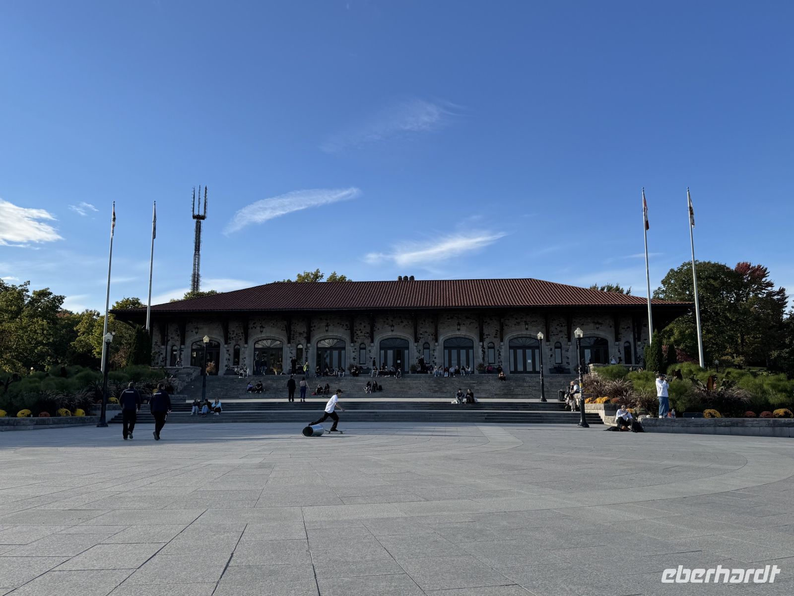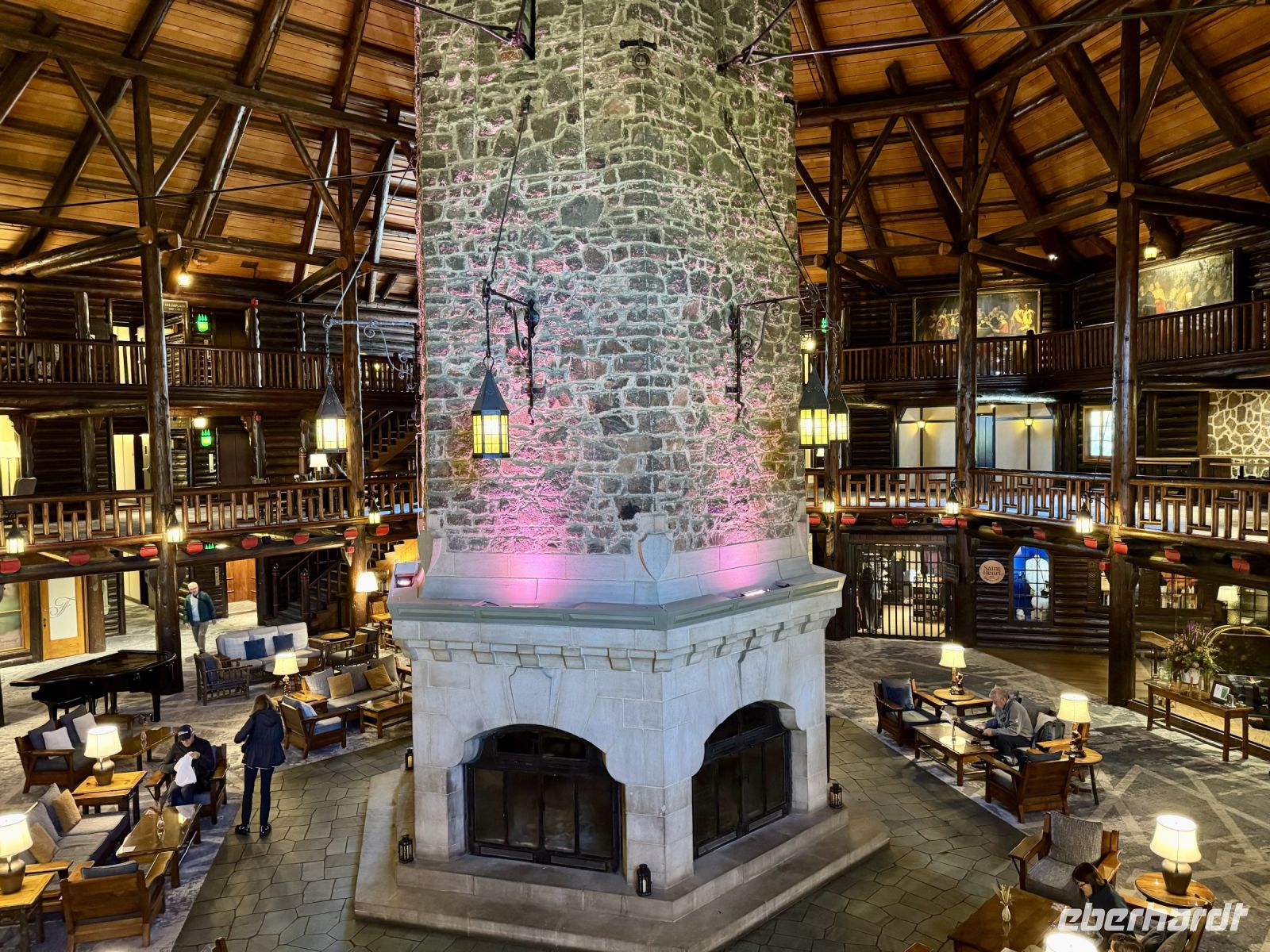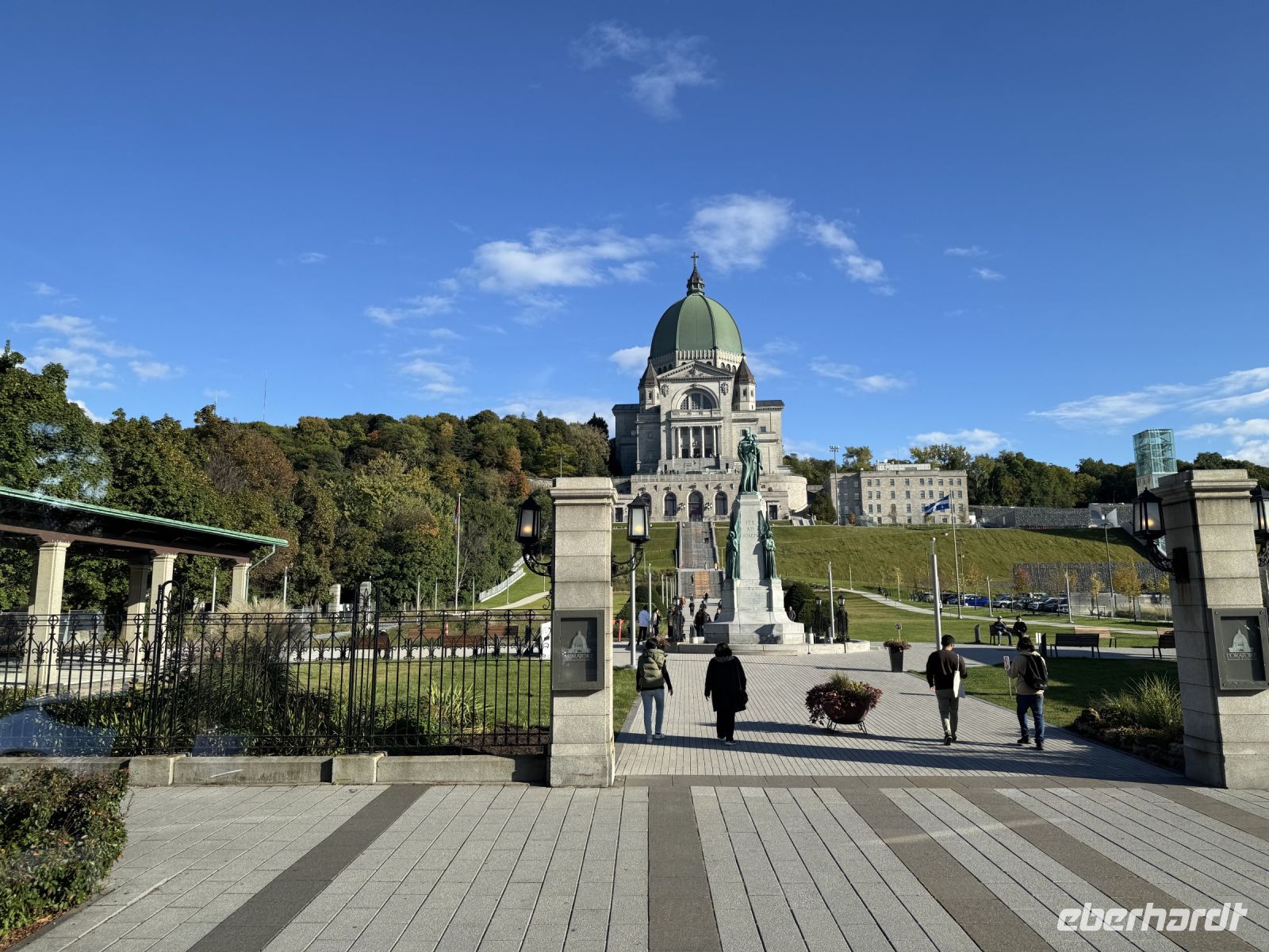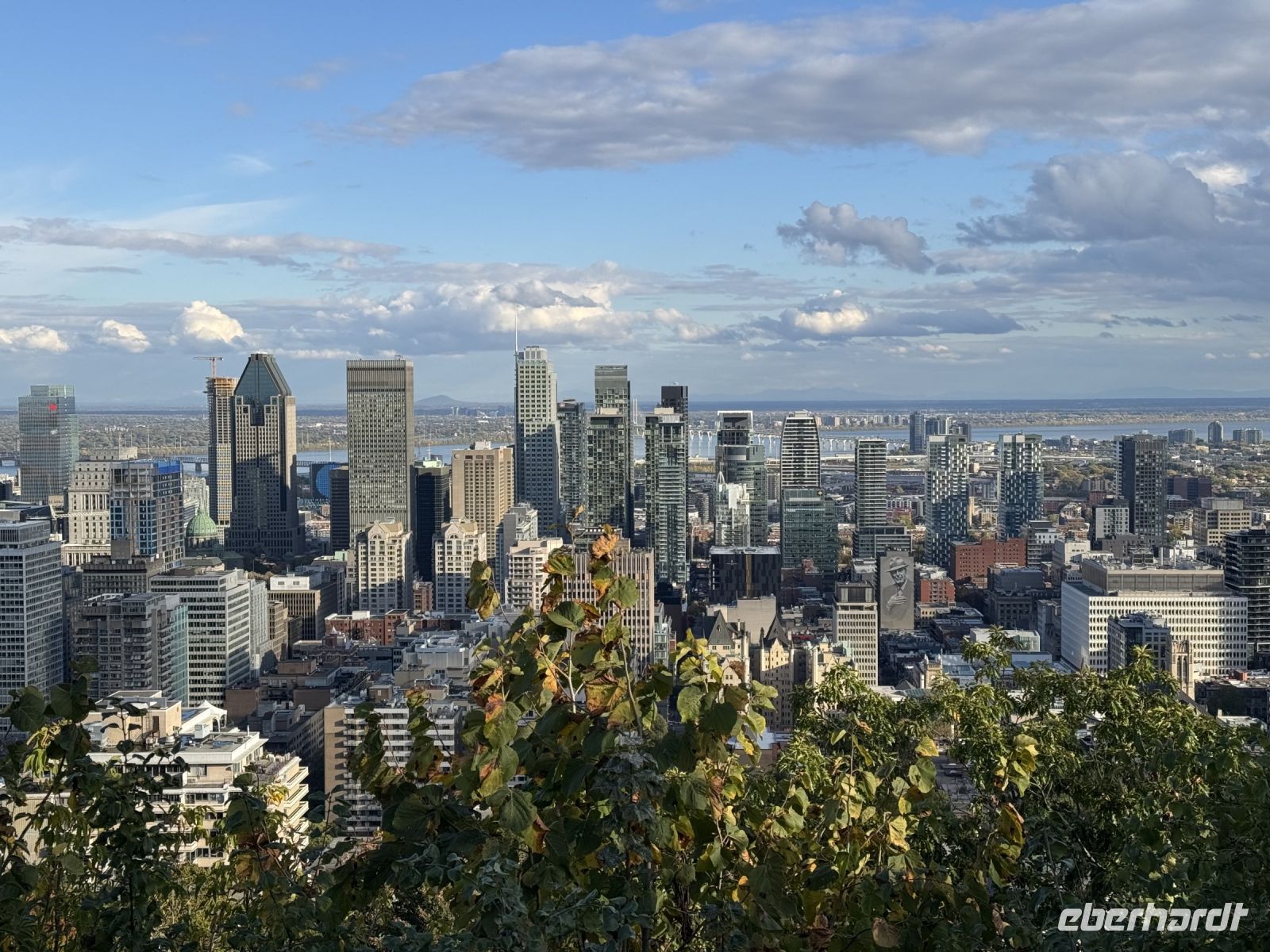 Ein letztes Mal „Good morning“, bevor ich für den Rest der Reise meine morgendliche Begrüßung auf Französisch halten muss. Denn: Wir verlassen an diesem Morgen endgültig die Provinz Ontario und wechseln nach Québec. Eine sehr schöne Provinz, gar keine Frage, tolle Landschaft, hübsche kleine Dörfer, aber eben historisch und kulturell etwas … vorbelastet. Ein politisches Minenfeld. Deshalb widmen wir uns auch zuerst den tierischen Bewohnern und besuchen den Omega-Wildpark. Das Wapiti-Empfangskomitee wartet schon gefräßig am Eingang auf uns. Wir sind in einen umgebauten Schulbus gewechselt, können die Fensterscheiben herunterlassen und Hirsche, Rehe und Wildschweine mit Karotten füttern. Die Waldwölfe liegen faul im Schatten der Bäume und machen sich nicht viel aus der vegetarischen Kost. Den Bisons kommen wir diesmal ganz nah — da haben meine Gäste mal wieder großes Glück. Die kleinen Polarfüchse sind besonders süß, trauen sich jedoch nicht in den Bus und in meine Tasche, sonst hätte ich sie heimlich mitgenommen. Ganz am Ende der Rundfahrt warten natürlich die Schwarzbären und Zimtbären auf uns und liefern auch eine tolle Show ab. Was für ein Erlebnis! Nachdem wir die Tiere im Wildpark gefüttert haben, sind nun wir zur Abwechslung zum Mittagessen im Château Montebello geladen. Erst einmal bestaunen wir jedoch das prächtige Bauwerk aus 10.000 Rotzedern. Besonders die gewaltige Lobby mit dem riesigen Kamin hat es uns angetan. Drei Gänge werden uns im Speisesaal serviert, während wir schon nach draußen auf den Ottawa River blicken. Derweil löst sich die Wolkendecke immer mehr auf, weshalb es uns nach dem Dessert sofort hinaus und an den Fluss zieht. Das Château Montebello ist schon ein besonderer Ort. Hier am Ottawa River ein kurzer Wellnessurlaub — das würde der Seele sicher guttun. Auf uns wartet jedoch erst einmal die Weiterfahrt nach Montréal. Da das Wetter nun so schön geworden ist, fahren wir spontan zum namensgebenden Hü … äh Berg, dem majestätischen Mont Royal, und spazieren zur Aussichtsplattform. Das Stadtzentrum liegt uns von hier oben regelrecht zu Füßen. So kann es gern weitergehen, liebes Montréal! Den guten ersten Eindruck macht die größte Stadt Québecs jedoch gleich wieder mit dem schlimmsten Verkehrschaos in ganz Kanada zunichte. Quälend langsam nähern wir uns dem Olympiastadion. Passenderweise wird auch hier (mal wieder) überall gebaut. Dem UFO-Stadion fehlt sogar das Dach. Zwischen den ehemaligen Sportstätten erinnern Plaketten an Sieger und Teilnehmer der Sommerspiele von 1976. Zum Hotel kommen wir nach diesem Abstecher über die unterirdische „Autobahn“ deutlich schneller voran. Nachdem wir die Tücken der beiden Fahrstühle überwunden haben, lassen wir den Abend individuell ausklingen und freuen uns auf die morgige Stadtrundfahrt.