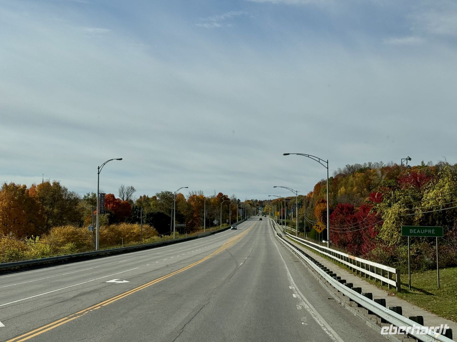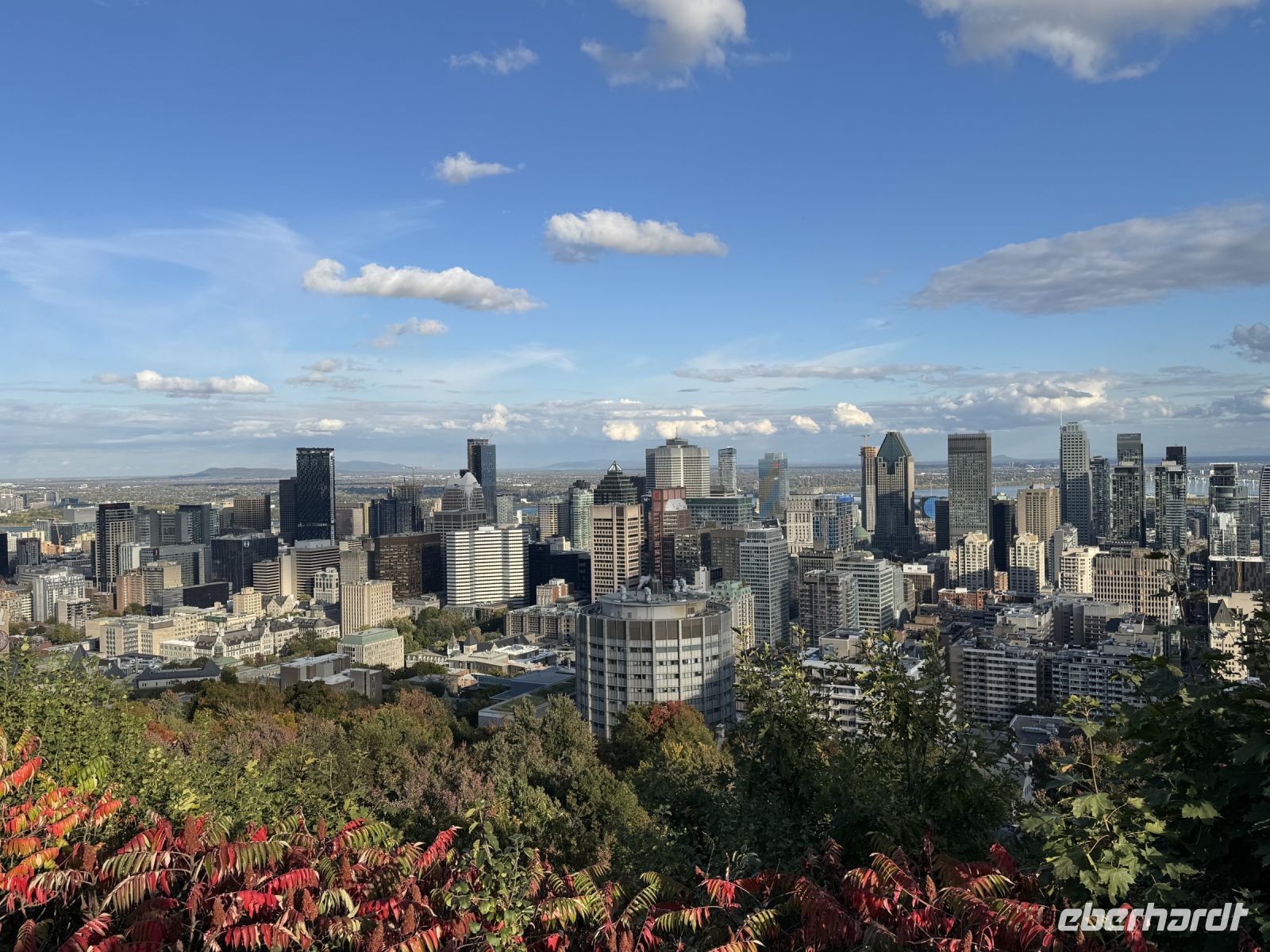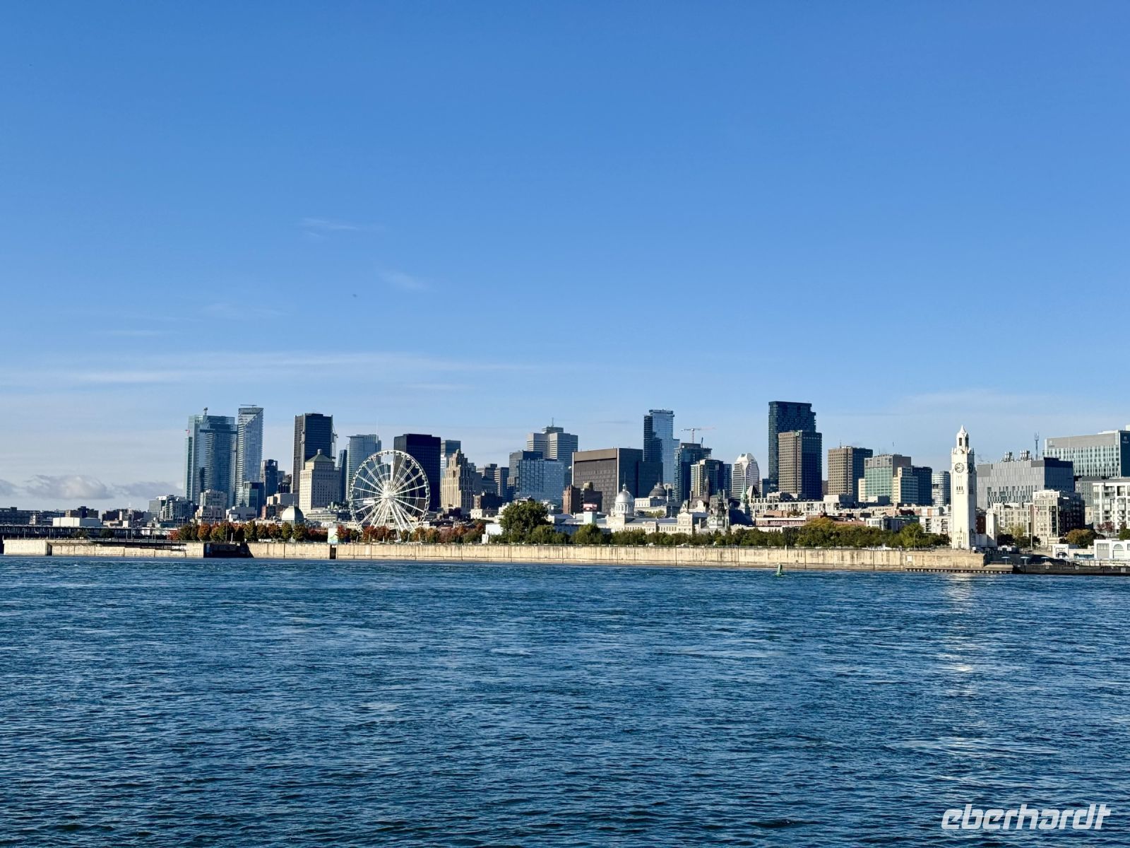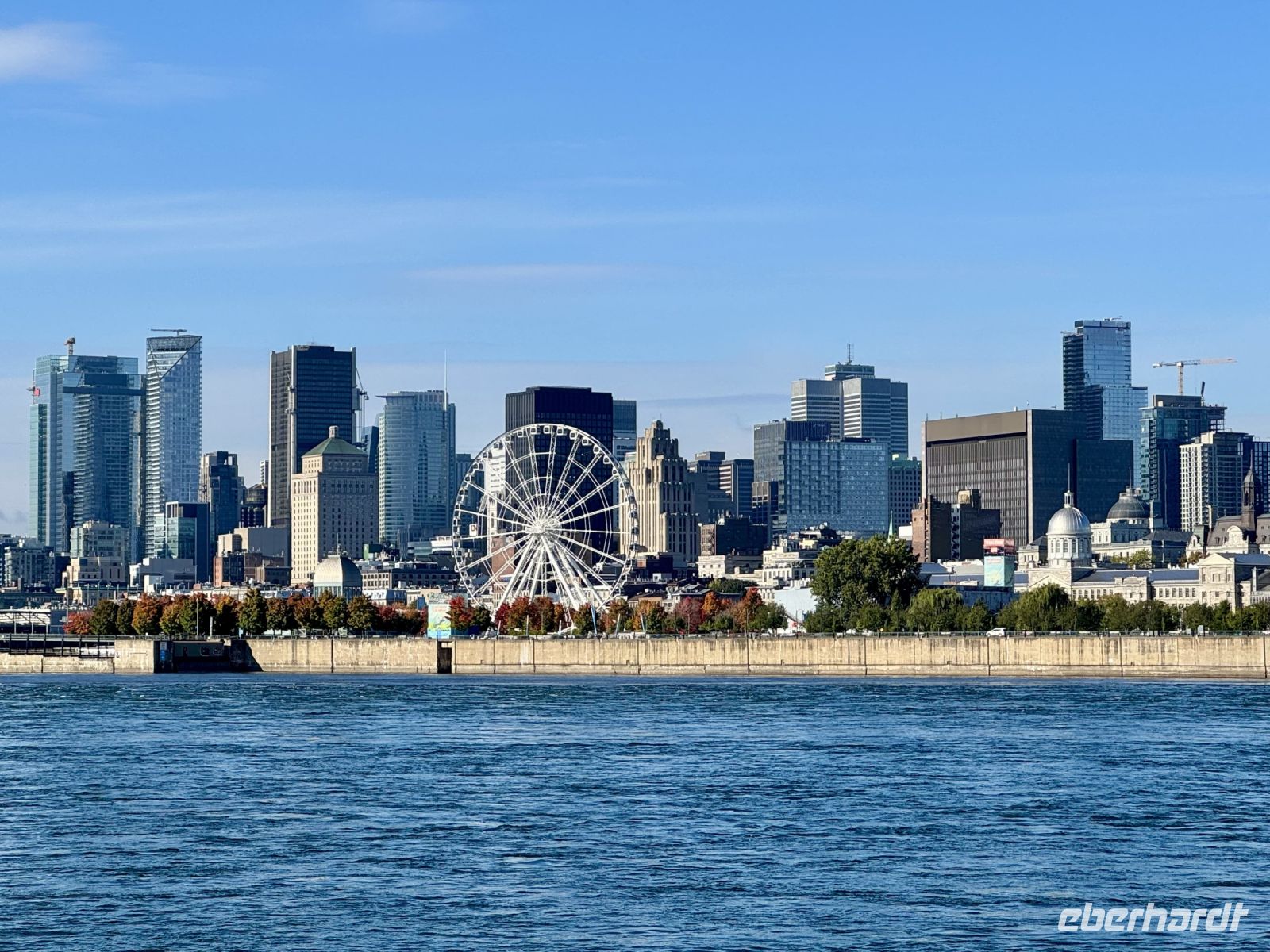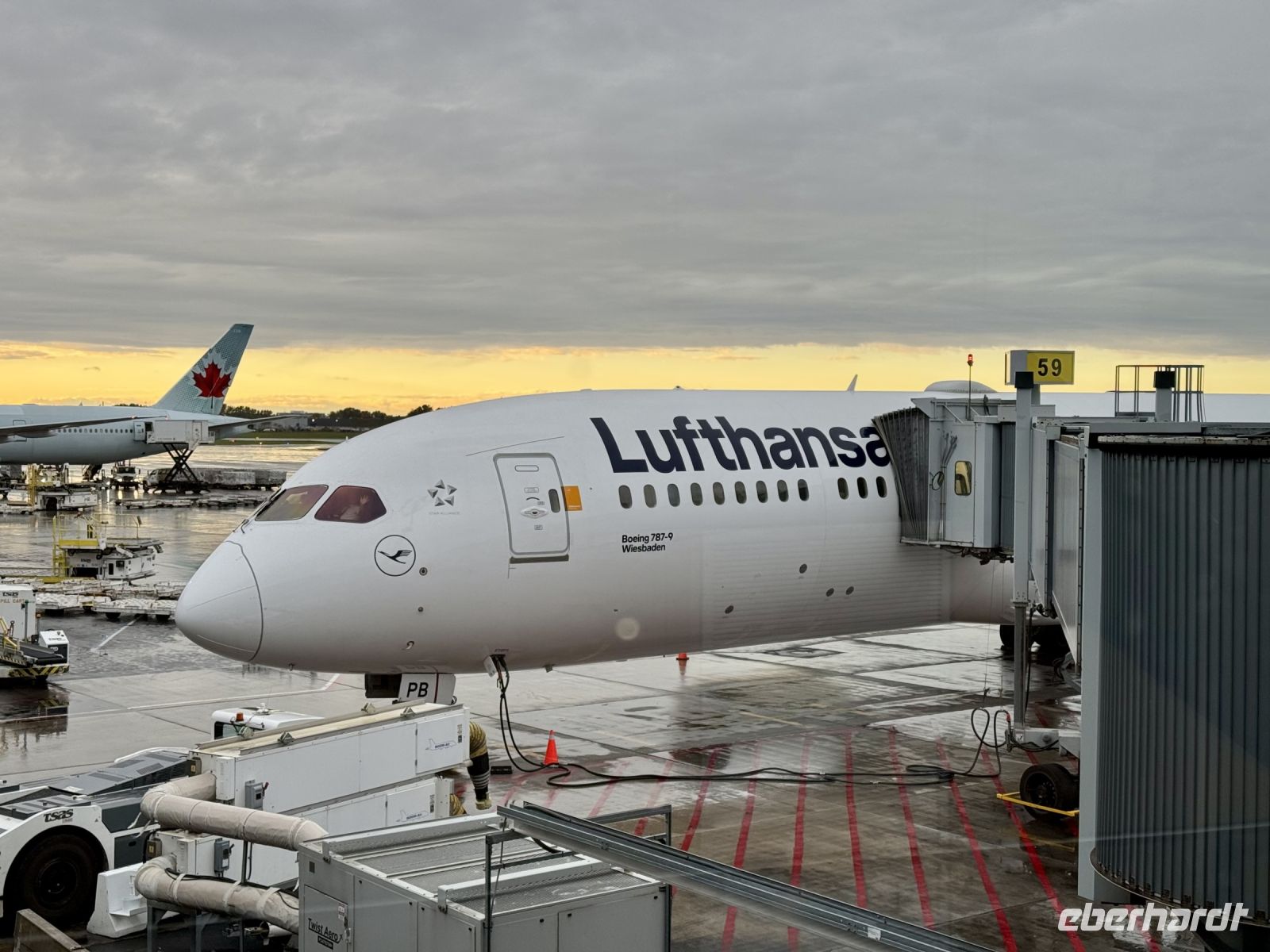 Was hatten wir gestern nochmal für ein Glück mit dem Wetter! Québec scheint richtig traurig zu sein, dass wir heute abreisen müssen, denn es regnet immer wieder dicke Tränen vom Himmel. Da frühstücken wir doch spontan ein bisschen länger, zumal das Buffet im Hilton Hotel eine große Auswahl hergibt und wir am liebsten alles durchprobieren möchten! Wer mag, kann die letzten Stunden Freizeit in Québec natürlich trotz Nässe von oben mit einem Bummel durch die historische Altstadt verbringen. Kurz nach 11 Uhr sind wir im Bus versammelt — die Koffer wurden aus den Hotelzimmern abgeholt und bereits in den Bus verladen. Auch Jason hat in seinem Hotel gut geschlafen und ist wie immer guter Laune. Auf der Grande Allée verlassen wir die Innenstadt, überqueren den Sankt-Lorenz-Strom und beginnen dann auf dem Trans-Canada Highway die Fahrt nach Montréal. Bis zur Mittagspause liegen wir auch noch sehr gut im Zeitplan, obwohl der leichte Regen zu einem richtigen Wolkenbruch eskaliert ist. Ab Drummondville hangeln wir uns jedoch leider von Stau zu Stau, verlieren wetterbedingt und aufgrund von Unfällen kostbare Minuten um Minuten. Erst kurz vor Montréal kommt die rettende Busspur und Schnellstrecke zum Flughafen in Sicht. Rechts von uns erblicken wir mit dem Olympiastadion, der Biosphère, dem Casino und natürlich dem markanten Berg uns gut bekannte Punkte. Kurz vor dem Ziel staut sich der Verkehr abermals. Wir erreichen den Flughafen Pierre-Elliott Trudeau schließlich mit einer Verspätung von 75 Minuten gegenüber dem ursprünglichen Zeitplan, obwohl Jason am Ende noch seine letzten Tricks aus dem Ärmel schüttelt. So bleibt uns für die Verabschiedung von ihm leider kaum Zeit. Bis zum Flug nach Frankfurt ist noch ausreichend Zeit, meine beiden Schweizer Gäste werden für den Flug nach Zürich jedoch leider nicht mehr angenommen. Ein paar Telefonate mit Eberhardt TRAVEL später und sie sind auf den Flug nach Frankfurt umgebucht, sodass wir am Ende alle gemeinsam mit Lufthansa nach Europa zurückfliegen. Nach dem Boarding fallen wir alle glücklich in unseren jeweiligen Sitz und freuen uns auf einen angenehm kurzen Sprung mit dem Dreamliner über den Atlantik.