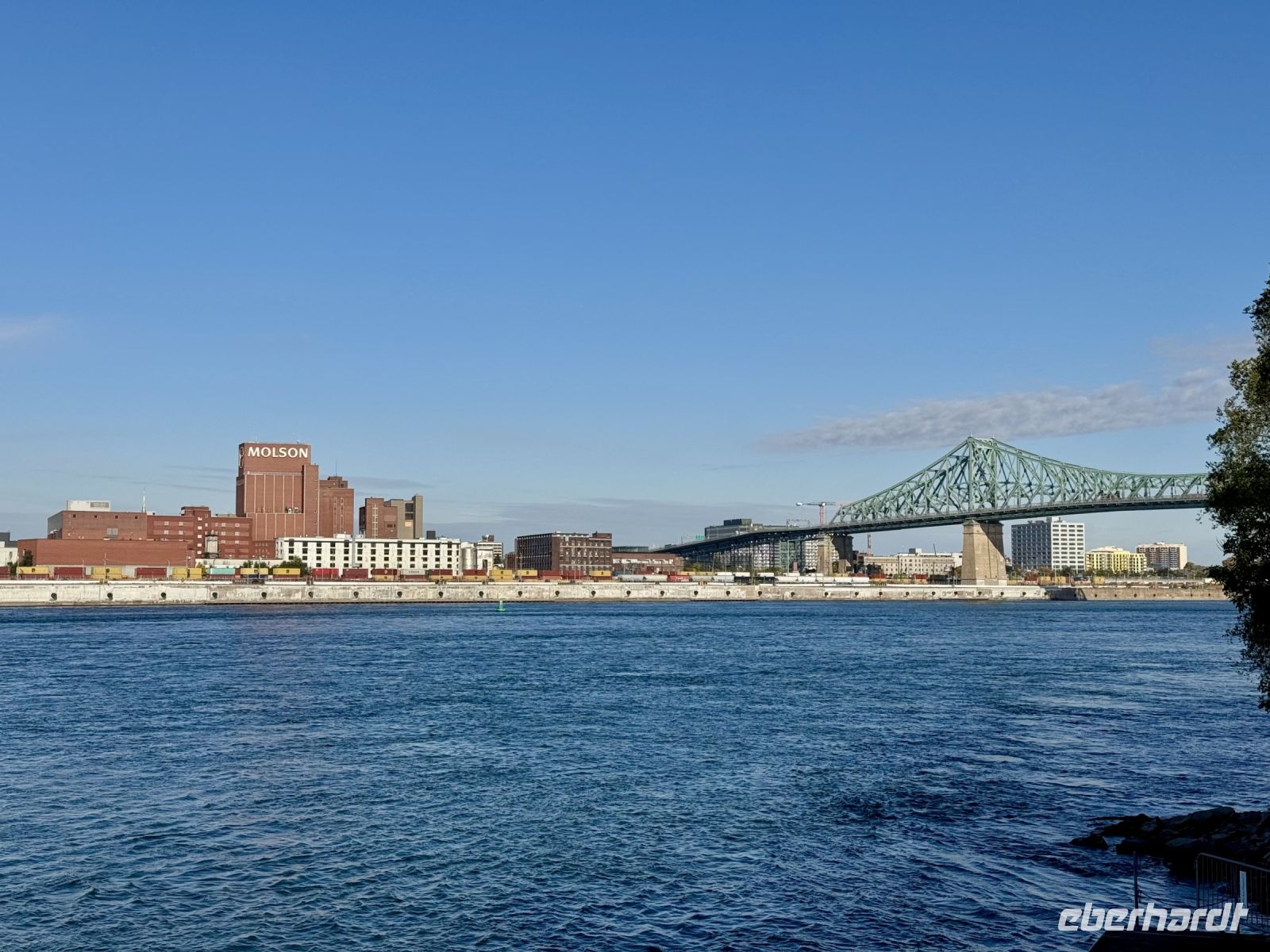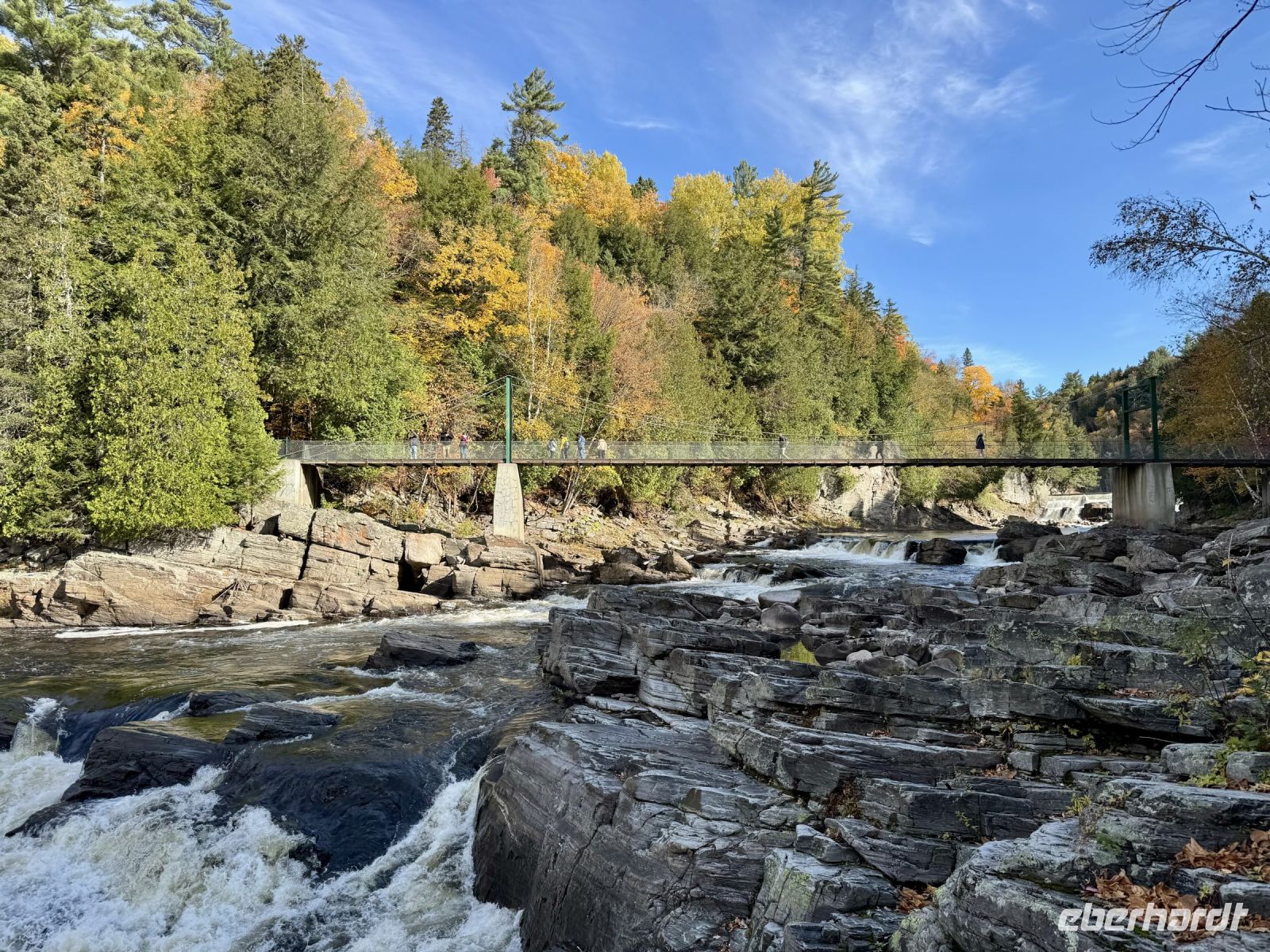 Entgegen der Wetterprognose beginnt der heutige Tag sehr sonnig. Liegt es an der guten Laune unserer Stadtführerin Bettina? Oder reise ich wirklich mit Wetterengeln? Das lange Warten auf die Fahrstühle nehmen wir mit unserem üblichen Humor, nachdem wir schon mit einer Schulklasse ums Buffet „gekämpft“ haben. Bettina entführt uns zu Beginn der Stadtrundfahrt auf die beiden vorgelagerten Inseln im Sankt-Lorenz-Strom, die Île Sainte-Hélène und die Île Notre-Dame. Beide sind eng verbunden mit der Weltausstellung und den Olympischen Spielen. Bei einem Fotostopp am Wasser blicken wir über den Fluss zurück in Richtung Altstadt. Wenig später parken wir an der Biosphère und werfen auch einen Blick auf die interessante Fotoausstellung im Eingangsbereich. Nun darf Jason sein Können unter Beweis stellen: Es geht auf die Formel-1-Rennstrecke! Leider, leider werden wir durch die Stadtreinigung ausgebremst. Ein Besuch der berühmten unterirdischen Stadt darf natürlich auch nicht fehlen. Bettina wählt dafür den Abschnitt unter der Christ Church Cathedral mit Einstieg über das Eaton Centre. Das gibt uns auch die Möglichkeit für einen Abstecher zu einer der vielen individuell gestalteten U-Bahn-Stationen Montréals. Letzter Programmpunkt der Stadtrundfahrt ist die Altstadt mit einem Besuch der herrlichen Basilika Notre-Dame. Bettina freut sich immer über die staunenden Gesichter meiner Gäste, wenn sie den wunderschönen Innenraum zum ersten Mal erblicken. Obwohl die drei Stunden eigentlich schon abgelaufen sind, macht sie mit uns sogar noch einen Spaziergang bis zur Place Jacques Cartier. Großzügig wie ich ab und zu mal bin, dürfen meine Gäste nun noch mehr als 1,5 Stunden lang die Altstadt auf eigene Faust erkunden, zum Mittagessen einkehren und/oder auf Souvenirjagd gehen. Zuverlässig wie er ist, wartet Jason um 14 Uhr mit dem Bus unter der silbernen Kuppel des Marché Bonsecours auf uns. Damit wir uns nun ein bisschen von den beiden Großstädten Ottawa und Montréal erholen können, fahren wir über Joliette in die Natur zum Lac Taureau. Auf dem Weg nach Norden durchqueren wir malerische Schluchten und pittoreske Dörfer. Zwischendurch wird Jason zu einer Raucherpause „verdonnert“, damit wir mit kanadischem Zaubertrank unser Bergfest feiern können.