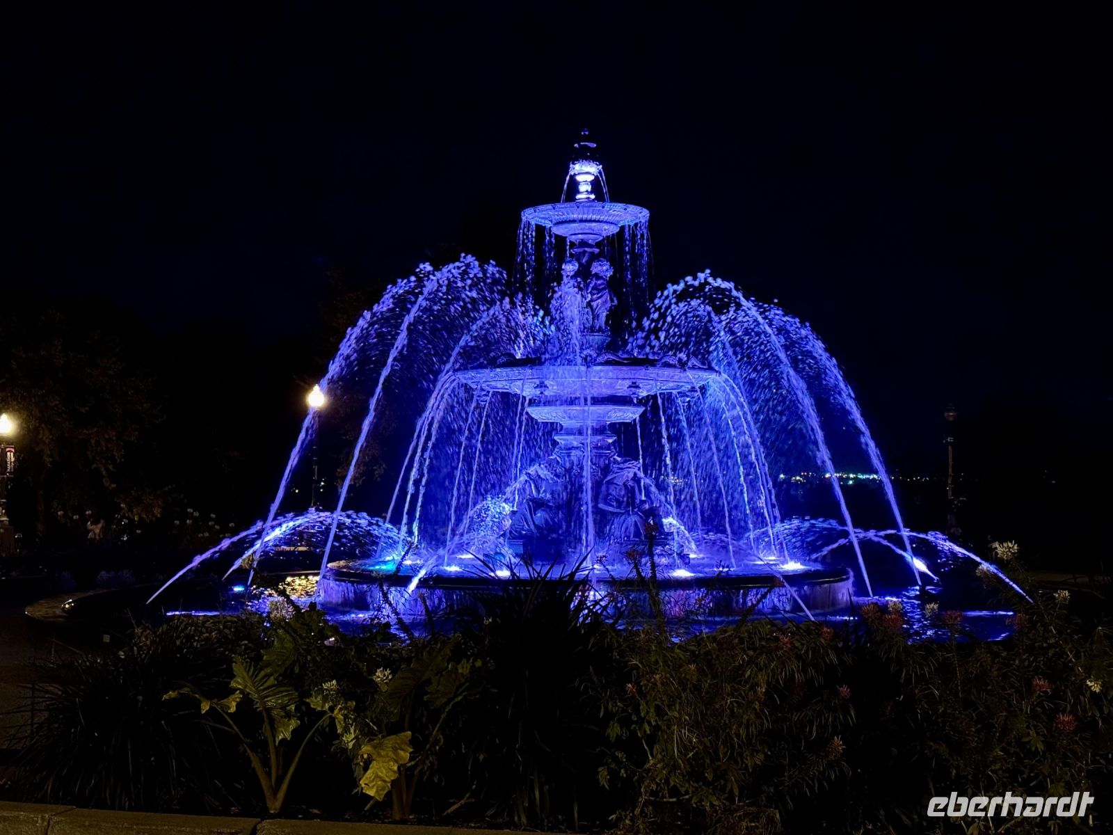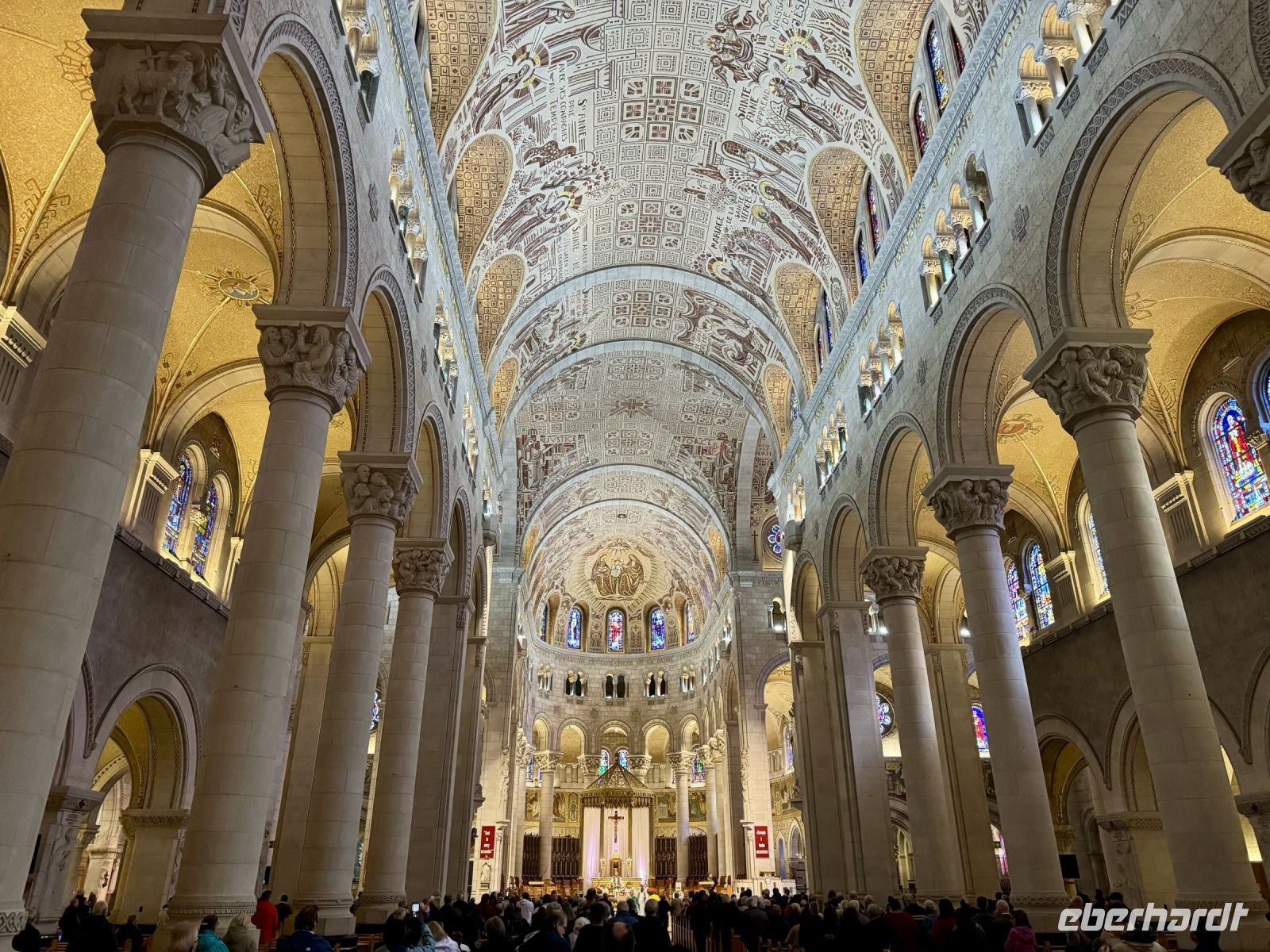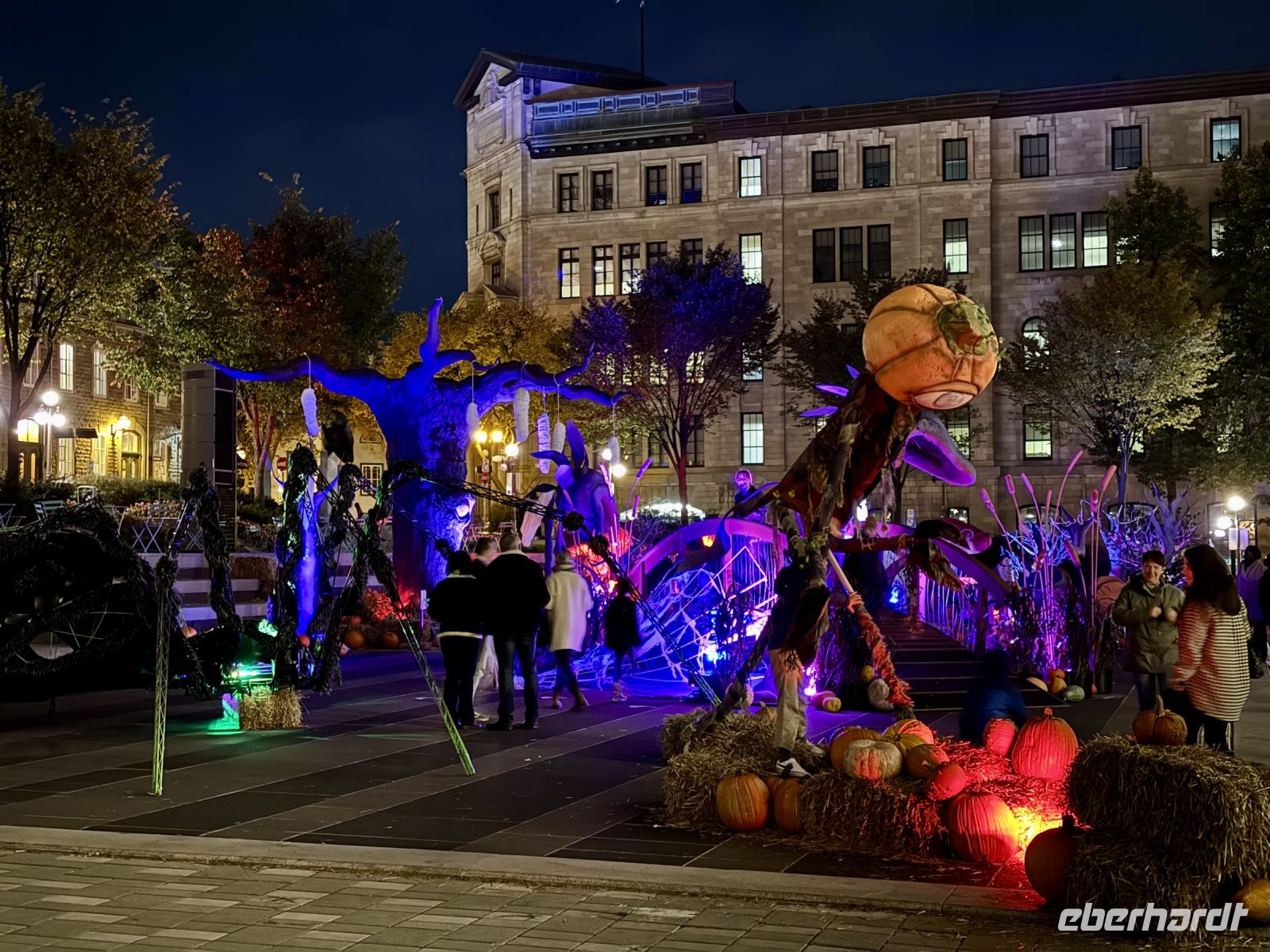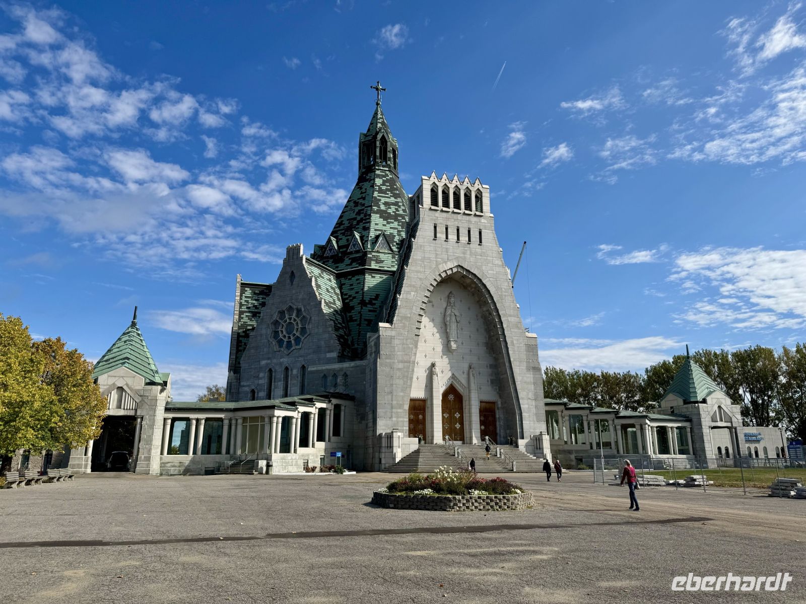 Der heutige Sonnenaufgang und Morgen entschädigt ein bisschen für den gestrigen stürmischen Tag. Auch hier wieder schade, dass wir weiterziehen müssen. Beim Frühstück genießen wir ein letztes Mal die Aussicht auf die Bucht von La Malbaie und sinnieren beim Toasten unseres Brotes im Kamin über die großen Fragen des Urlaubs. Die Rückfahrt nach Québec gestaltet sich als eine Fahrt durch den Indian Summer par excellence. Eine Symphonie an Farben zieht an uns vorbei. Beim Spaziergang durch den Canyon Sainte-Anne können wir den kanadischen Herbst (und natürlich auch den Canyon) aus der Wanderperspektive bewundern. Fast am schönsten ist die Farbenpracht jedoch vor und hinter der gewaltigen Basilique Sainte-Anne de Beaupré, unserem zweiten Etappenziel. Drinnen findet gerade die Sonntagsmesse statt und wir kommen damit sogar in den Genuss einer Darbietung franko-katholischer Kirchenmusik. Pünktlich zur Mittagszeit setzt uns Jason schließlich in der unteren Altstadt von Québec ab. Das ist es, unser letztes Reiseziel. An die vielen anderen Touristen müssen wir uns erst wieder gewöhnen — zwei oder drei Kreuzfahrtschiffe sind gerade in der Stadt. Wir schwärmen also erstmal aus, stürzen uns ins Getümmel und treffen uns pünktlich um 14 Uhr mit unserer Stadtführerin Nadia an der Batterie Royale. Sie führt uns zunächst durch den unteren Teil der UNESCO-geschützten Altstadt, zeigt uns die Place Royale, das berühmte Wandgemälde, die Halsbrechertreppe und die Einkaufsgasse Rue du Petit-Champlain. Für die zweite Hälfte der Erkundungstour rufen wir Jason herbei und wechseln in den Bus. Es stehen noch das Parlamentsgebäude, eine Fahrt über die Plains of Abraham mit Fotostopp am Fluss sowie ein Abstecher zum Château Frontenac auf Nadias Programm. Allerdings kommen wir dann in der oberen Altstadt nur quälend langsam voran, weshalb ein Ausstieg am berühmtesten Eisenbahnhotel entfallen muss. Stattdessen wird unser eigenes Hotel zum nächsten Ziel. Das Hilton Hotel liegt gleich neben dem Parlament und knapp außerhalb der Stadtmauer. Die Panoramafenster in unseren Zimmern bieten uns allen eine tolle Aussicht. Zeit für einen kurzen Bummel bleibt uns ebenfalls. Unser Abschiedsabendessen findet dann in der oberen Altstadt statt. Hier ist immer noch viel los, an mehreren Stellen zeigen Tänzer und Artisten ihr Können. Für das letzte gemeinsame Abendessen stehen sogar vier Gänge auf dem Programm! Verhungert ist mir jedenfalls auf dieser Reise niemand! Mit einigen Gästen gehe ich anschließend noch spontan bis zum Château Frontenac spazieren. Es ist nun merklich ruhiger als noch am Tage — und auch wir kommen langsam zur Ruhe, nachdem wir auf dem Rückweg auch noch einen Abstecher zum schön beleuchteten Parlament gemacht haben und einige der angefutterten Kalorien (hoffentlich) wieder verbrannt haben.