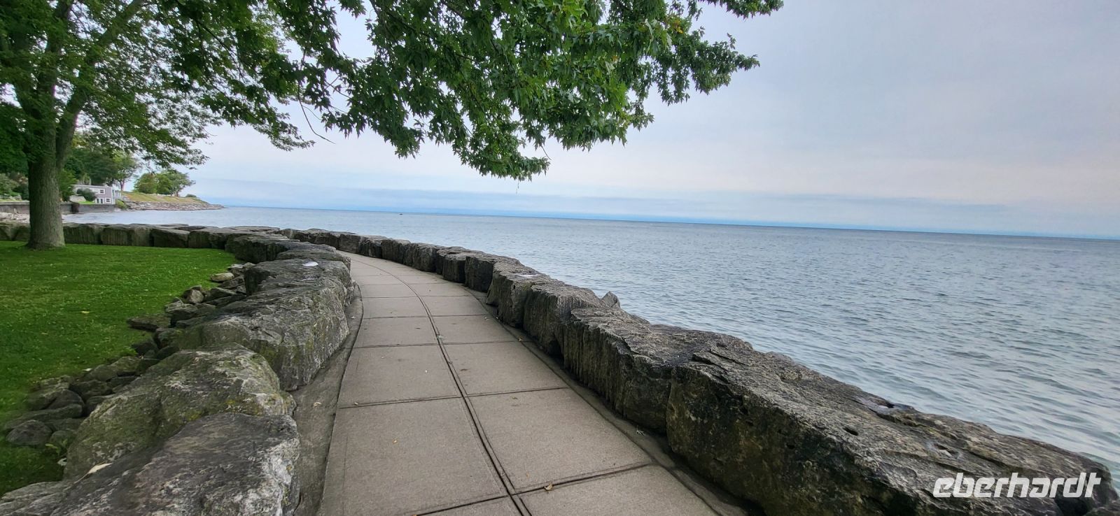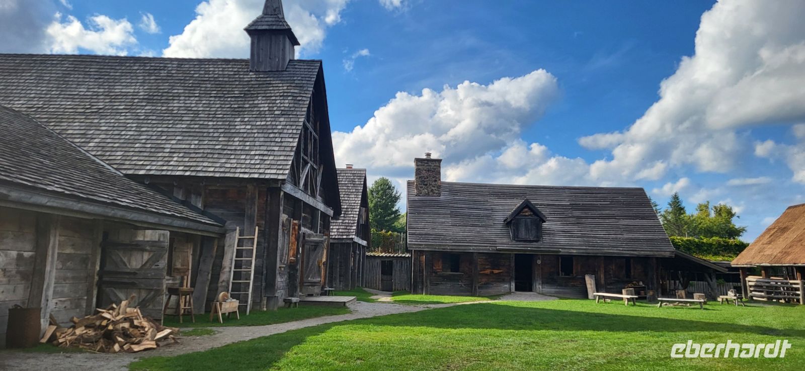 Heute geht es weiter durch die Niagara Region. Mit Blick auf den Skylon Tower und die aufsteigende Gischt der Niagara Fälle startet unser Abreisetag. Vom schmackhaften Frühstücksbuffet des Doubletree Fallsview Hotel gut gestärkt, ziehen wir weiter entlang der sogenannten Weinroute. Mit Blick auf den Fluss staunen wir über unzählige gepflegte Anwesen, die sich wie eine Perlenkette aneinander reihen. Wir sind nun im sogenannten „Obstkorb“ Kanadas unterwegs und halten zunächst bei Walkers, einem sehr schönen Geschäft, wo u.a. frisches Obst wunderbar präsentiert und verkauft wird. Hier befindet sich auch die kleinste Kapelle Kanadas, die maximal acht Personen fasst. Unsere Route führt uns an Niagara on the lake vorbei, einem herrlich gepflegten Ort, den wir zu Fuß erkunden. Zunächst unternehmen wir jedoch einen Abstecher zum Ontariosee, von wo aus in der Ferne die Skyline von Toronto zu sehen ist und Fort Henry auf der Seite der USA genau gegenüberliegt. Auch hier am See in bester Lage wieder etliche gepflegte Häuser mit schönen Vorgärten. Der Rückweg erfolgt über die Hauptstraße der charmanten Kleinstadt mit zahlreichen Souvenirläden, Boutiquen, Restaurants und herrlicher Blumendekoration, so weit das Auge reicht. Weiter geht die Reise zum unaussprechlichen Ort namens Penetanguishene, dessen Name indigenen Ursprungs und somit aus der Algonquin-Sprache stammt. Im urigen Pub „Pier 21“ nehmen wir unser Mittagessen und spazieren anschließend zum Ufer des anliegenden Huronen Sees. Hier genießen wir das gute Wetter, die Kulisse und den See, bevor es wieder weiter geht. Am Nachmittag erreichen wir den historischen Ort St. Marie among the Hurons, welcher von 1639 bis 1649 bewohnt war. Dieser Ort gilt als erste Besiedlung Kanadas und man sieht die vielen historischen Gebäude, die original getreu wieder aufgebaut wurden und erhalten so einen beeindruckenden Einblick auf welche Weise hier einst gelebt wurde. Dies alles bei milden Temperaturen und mittlerweile strahlendem Sonnenschein, womit die Kulisse nochmals so besonders wirkt, zumal wir so gut wie alleine dort unterwegs sind. Abends erreichen wir unsere Unterkunft für die kommenden zwei Nächte, das Residence Inn by Mariott Gravenhurst, wo wir nun direkt mit Blick auf den See wohnen und den Abend individuell ausklingen lassen.