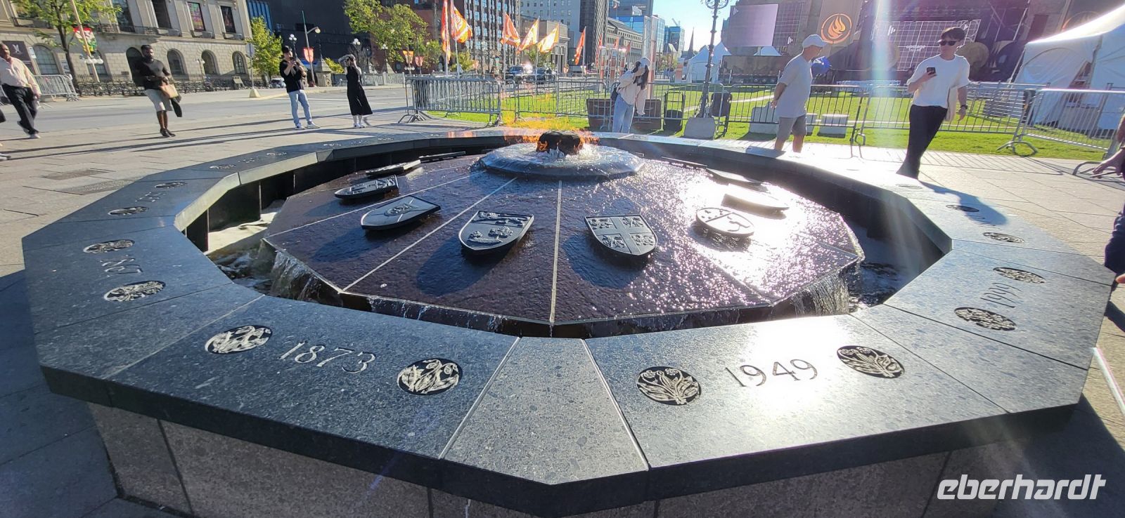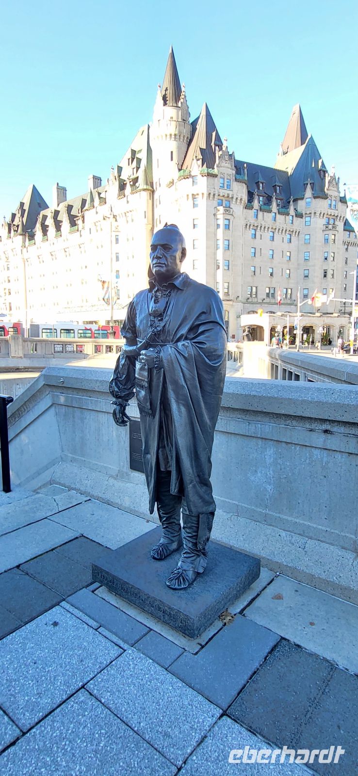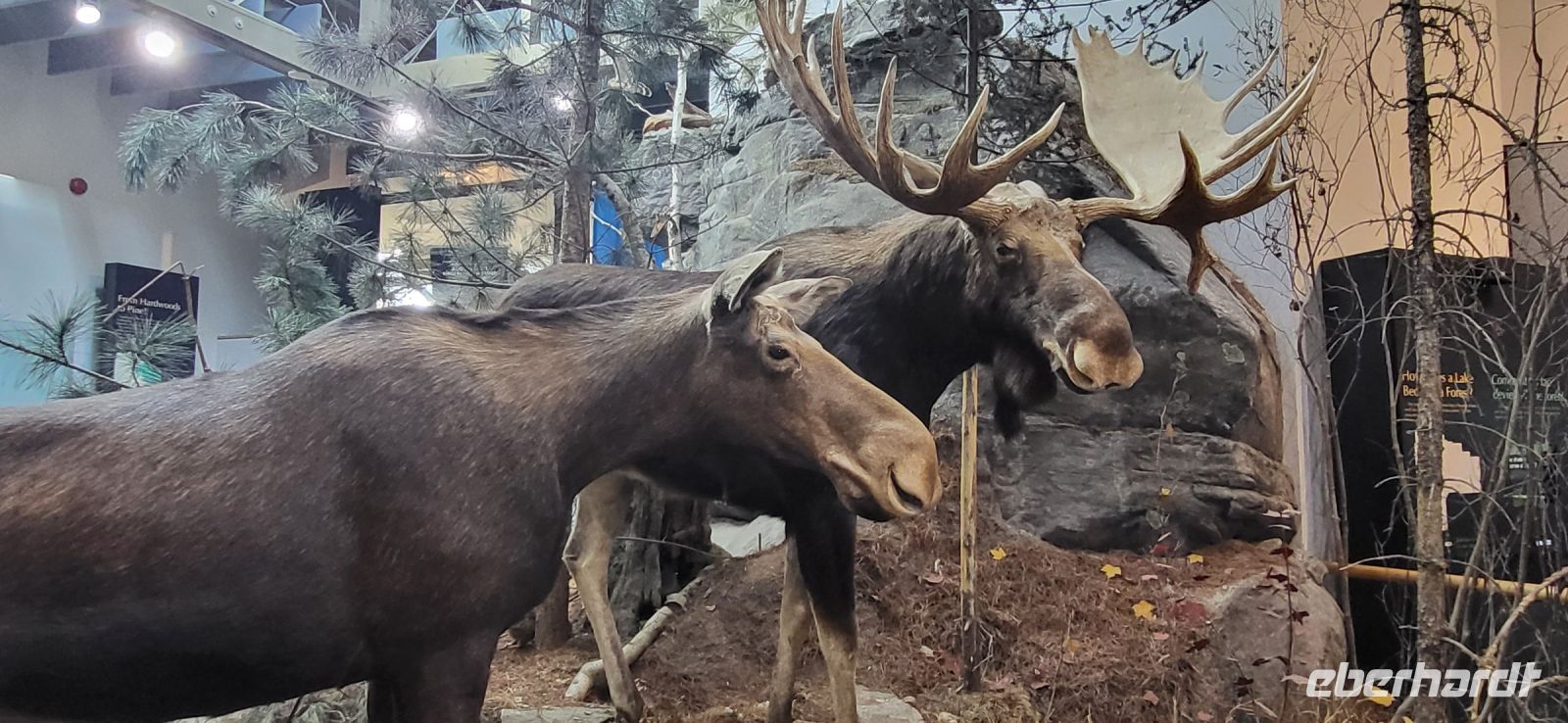 Wir verlassen die Region um Gravenhurst im Nebel und begeben uns in den Algonquin Park, wo zum Glück nach wenigen Fahrminuten eine Wetteränderung eintritt und es herrlich sonnig wird. Somit erfolgt eine schöne Panoramafahrt durch den schon herbstlich geprägten Park. Dieser wurde 1893 gegründet und ist der größte Park der Provinz Ontario. Mit 7.700 Km² misst er so viel wie ein Drittel Belgiens, hier findet man 2400 Seen und an die 1200 Flüsse. Im Algonquin Park sind noch 30-40 m hohe Kiefern anzutreffen, die zum Teil zwischen 200 und 400 Jahre alt sind. Im Algonquin Visitor Center angekommen, schauen wir uns die verschiedenen Exponate sowie Tierpräparate, darunter auch Elche, Wölfe, Greifvögel, etc. an. Unglaubliche Dimensionen, mal mit einem solchen Elch auf Tuchfühlung zu gehen. Auf der Aussichtsterrasse erhalten wir einen guten Eindruck, wie riesig und dicht bewachsen der Park ist. Im sogenannten Logging Museum unternehmen wir einen herrlichen Spaziergang durch den Wald und erfahren an zwanzig verschiedenen Stellen viel Interessantes, wie hier die Holzproduktion, bzw. Abholzung einst ihren Lauf nahm. Bei wunderbarem, mildem Wetter, einfach ein herrlicher Programmpunkt, zumal wir im Grunde alleine unterwegs sind. Am frühen Nachmittag erreichen wir Bytown- heute Ottawa genannt und die Hauptstadt Kanadas. Mittlerweile 1 Mio. Einwohner zählend, wirkt sie auf uns doch eher wie eine Kleinstadt, die wir mit Guide Marina nun zu Fuß erkunden. Zunächst spazieren wir zum Parlamentshügel mit dessen Gebäuden, die im Neogotischen Stil erbaut wurden. Marina erklärt uns die umliegenden Parlamentsgebäude aus Sandstein und berichtet vom verheerenden Feuer von 1916, bei dem ein Großteil abbrannte. Von 1917 bis 1920 wurden die zerstörten Gebäude wieder mit mehr Abstand aufgebaut und mit Kupferdächern versehen. Einen Augenblick verharren wir noch an der Jahrhundertflamme, die anlässlich der Jahrhundertfeier (1867-1967) errichtet wurde und alle Provinzen und Territorien Kanadas umringt von einer Flamme vereint. Von dort geht es weiter zunächst zum Kriegsdenkmal, wo an die verschiedenen Kriege erinnert wird, in die kanadische Soldaten mit hineingezogen wurden. Kurz darauf bestaunen wir den Rideau Kanal mit seinen vielen Schleusen. Dieser verbindet die Hauptstadt Ottawa am Ottawa-Fluss mit der Stadt Kingston am Ontariosee. Der 202 km lange und nach dem Rideau River benannte Kanal wurde 1832 eröffnet und ist die älteste ununterbrochen benutzte künstliche Wasserstraße in Nordamerika. 2007 erklärte die UNESCO den Rideau Kanal zum Weltkulturerbe. Am Chateau Laurier Hotel, welches ebenfalls zur Fairmont Kette dazu gehört und sich auch hier schlossartig anmutet, spazieren wir hinunter Richtung Kunstmuseum und Basilika Notre Dame. Wir haben großes Glück, dass diese geöffnet ist und können einen Blick in das herrliche Interieur werfen. Unser Rundgang endet am Byward Market, wo wir das herrliche Treiben verfolgen können. Schöne Geschäfte in der alten Markthalle, Restaurants, Kneipen, laden zum Verweilen ein. Nachdem wir im Hotel eingecheckt haben, genießt jeder den Abend für sich und so geht ein Teil der Gäste mit Marina und mir ins Baton Rouge zu einem köstlichen Abendessen.