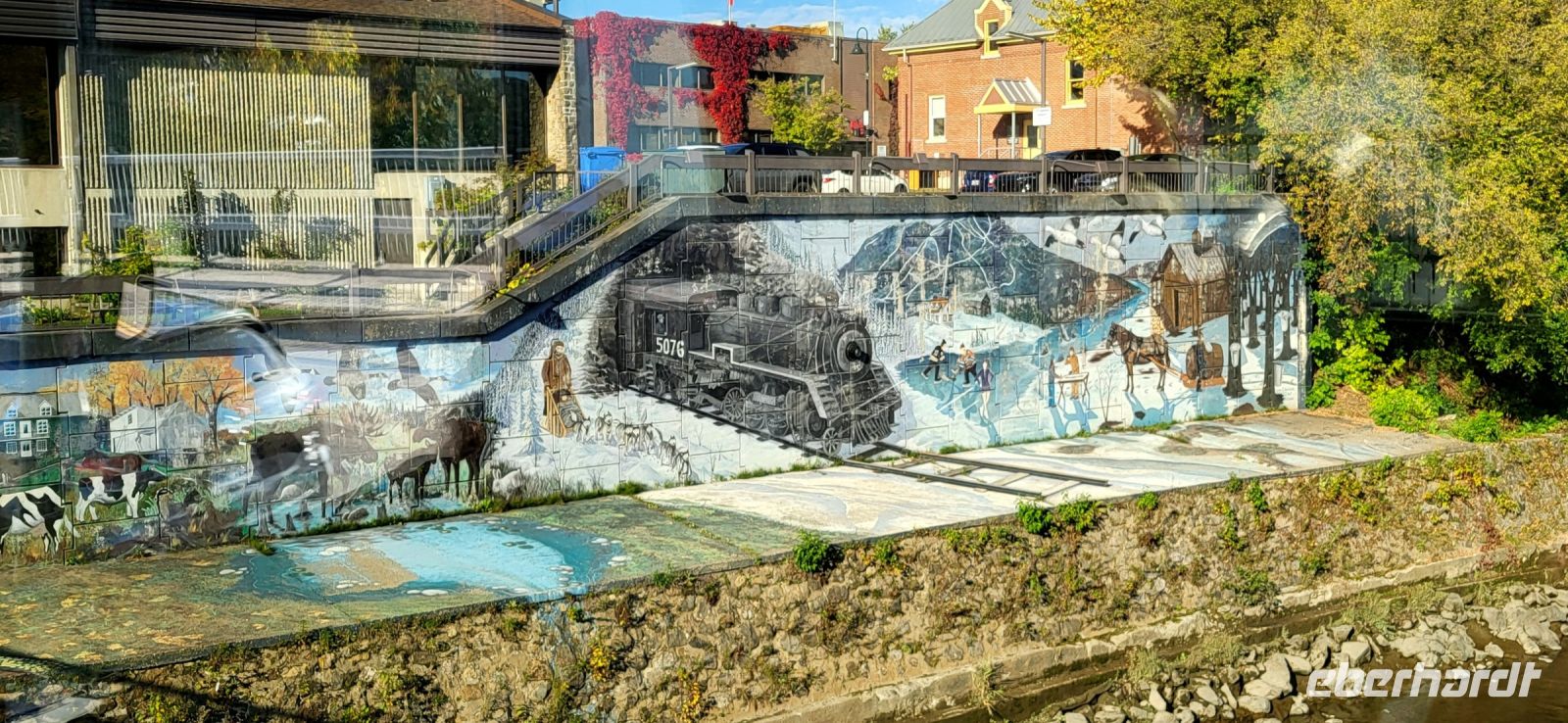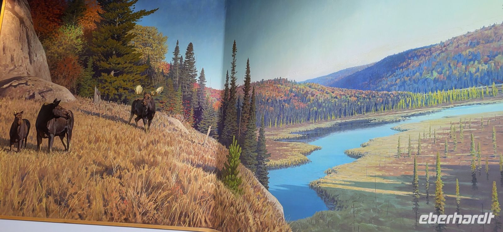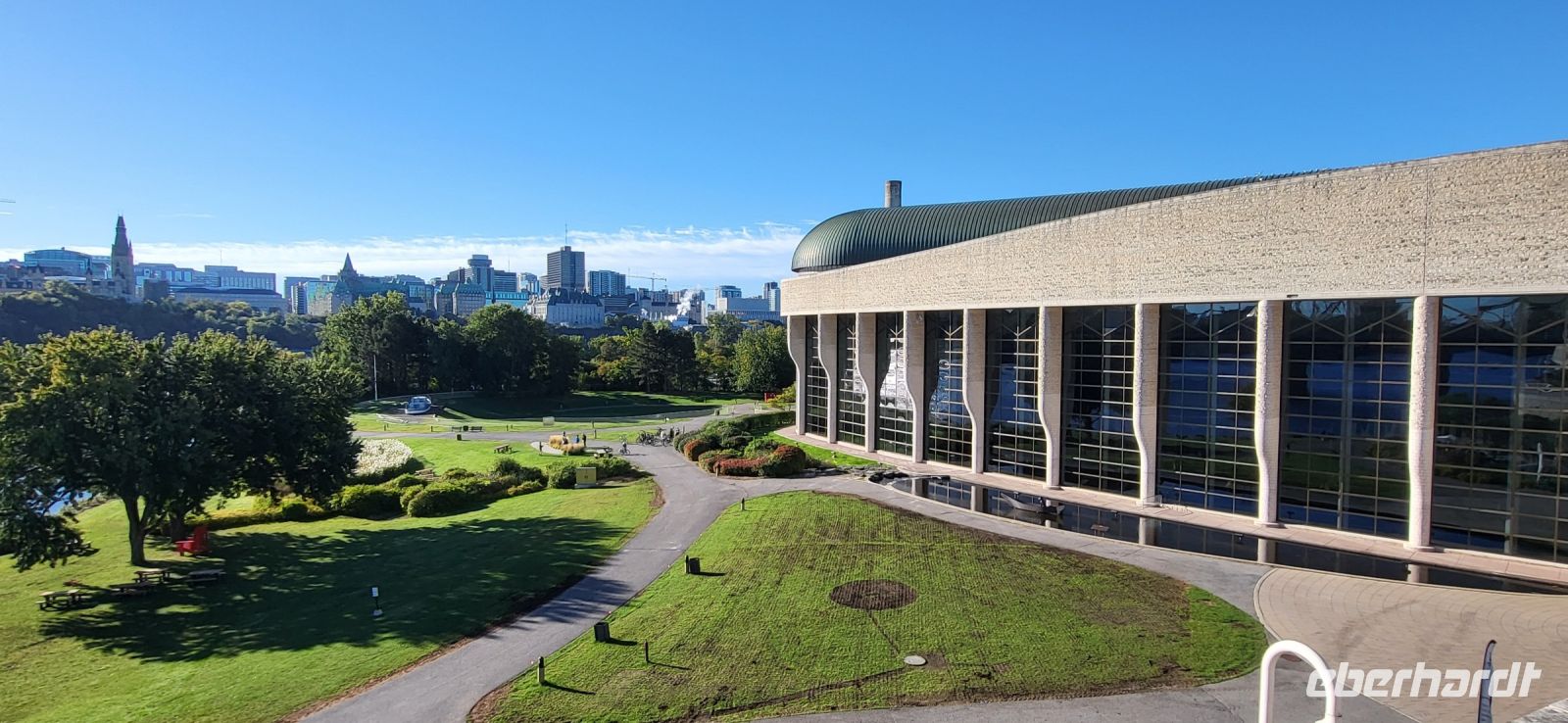 Nach einem tollen Frühstück im zentral gelegenen Lord Elgin Hotel verlassen wir Ottawa über eine der zahlreichen Brücken und den Ottawa Fluss. Auf der anderen Seite angekommen, befinden wir uns nun in Gatineau und somit der Provinz Quebec. Quebec ist die größte Provinz Kanadas und 3,5x so groß wie Deutschland. Mit nur 9 Mio. Einwohnern ist sie der französische Teil Kanadas. Um noch eine letzte schöne Aufnahme der Skyline von Ottwawa aufzunehmen, halten wir in Höhe des kanadischen Geschichtsmuseums. Da dieses bereits geöffnet hat, dürfen wir einen kurzen Blick in die Halle mit den vielen aufgereihten Totempfähle verschiedener indigener Stämme werfen. Ein sehr beeindruckendes Museum, welches mit vier Etagen ein durchaus tagefüllendes Programm wäre. Wir verlassen die Region und weiter geht es zum Omega Tierpark. Das Fahrzeug wechselnd und nun im amerikanischen/kanadischen Schulbus sitzend, fahren wir mit Fahrer/Guide Alain die kommenden zwei Stunden über das 730 Hektar und 15 km lange Areal. Zunächst begrüßen uns bereits die Wapiti Hirsche und freuen sich über unsere mitgebrachten Möhren. Auf unserer Strecke sehen wir noch Karibus, die an Weihnachten und Schlitten erinnern, einige Elche, Polarfüchse, arktische Wölfe, weiße Bergziegen, Bisons, Wildschweine und natürlich Schwarzbären. Viele Tiere Kanadas, die hier beheimatet und deren Unterkünfte herrlich in die Natur eingebettet sind. Mittags speisen wir im malerischen Chateau Montebello, wieder eins der stattlich gebauten Anwesen der Fairmont Hotelkette mit toller Außenanlage und beeindruckendem Interieur. Nachmittags erreichen wir unser heutiges Tagesziel Montreal, die 2.größte Stadt Kanadas mit 1,2 Mio. Einwohnern, welche auf der Insel „Ile de Montreal“ gelegen ist. Diese umfasst eine Länge von 50 Km und 16 km Breite. Unser erstes Ziel der Stadt ist der königliche Berg, der „Mont Royal“, von wo wir auf 233 m Höhe einen grandiosen Blick über die gesamte Stadt umrahmt von herbstlichem Laub haben. Auf der Fahrt ins Tal sehen wir das 1973 erbaute Olympiastadion, welches für die olympischen Sommerspiele 1976 geschaffen wurde. Beeindruckend auch die Friedhöfe, die, wie Marina es so schön nannte, „ohne Gehege“ einfach so platziert sind. Noch eine kurze Orientierung unserer Hotelumgebung, danach checken wir in unser Le Novel Hotel Montreal ein. Von hier aus kann heute jeder den freien Abend nach Lust und Laune genießen. So manche von uns zieht es noch vielleicht noch zum Oktoberfest hinaus oder auch Burger und Co. mit Blick auf das riesige Gemälde von Leonard Cohen (einst Bürger der Stadt Montreal) lassen wir uns gut schmecken. Wir lassen den Tag Revue passieren und schmunzeln über so manche Anekdote, wie beispielsweise das „Rendezvous“ mit der Werkstatt.
