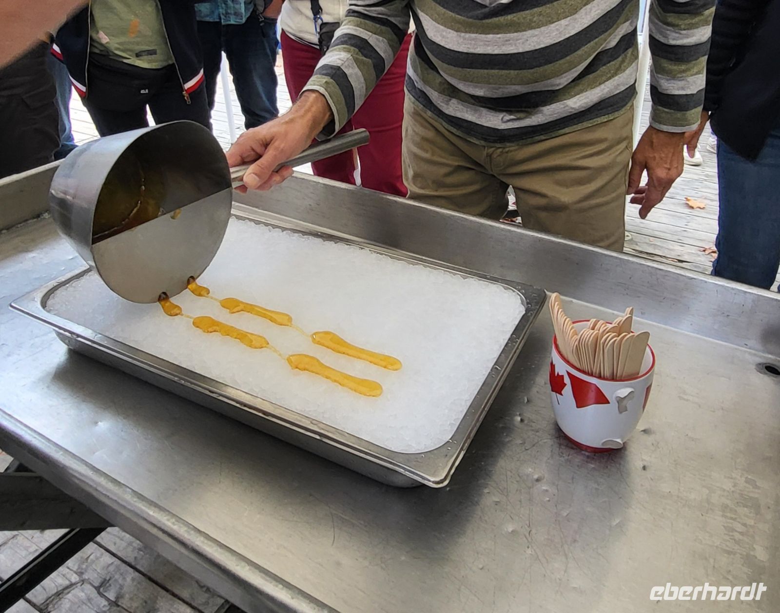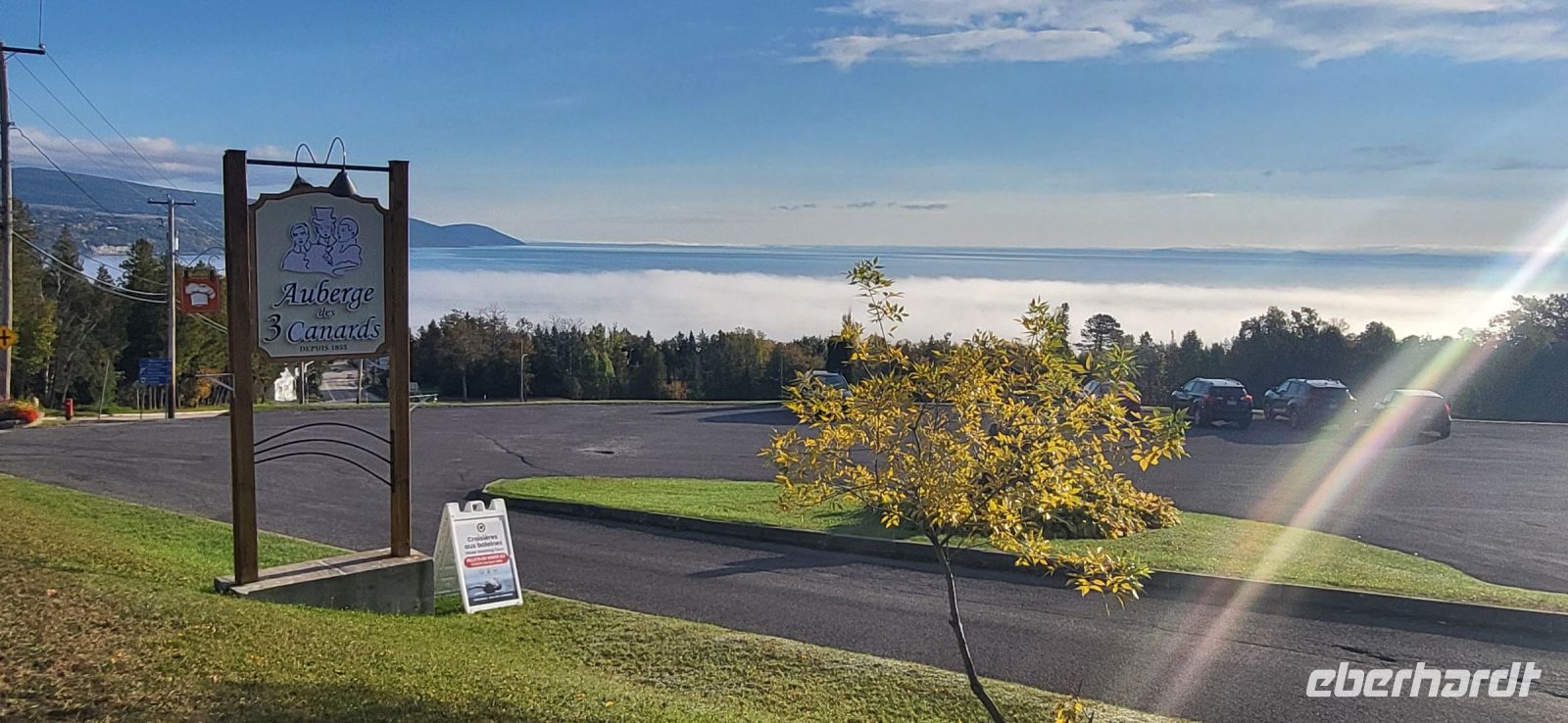 Noch etwas Frühnebel über dem See, doch bereits zum Frühstück können wir uns erneut auf einen traumhaften Tag freuen. Blauer Himmel, Sonnenschein und so wirklich abreisen möchte eigentlich niemand. Wir könnten wohl noch Tage hier am schönen und im Übrigen 300 m tiefen „Stiersee“ (Lac Taureau) verbringen. Wieso eigentlich dieser Name? Der See sieht weder so aus, noch grasen hier Stiere. Reiseleiterin Marina fand heraus, dass er den Namen eines in der Nähe gelegenen Staudammes erhielt, der wohl stierähnliche Geräusche von sich gab. Nun gut … Wir fahren nun am 3200 Km langen St. Lorenz Strom weiter Richtung Norden und erleben diesen zunächst bei Ebbe. Diese kann hier eine Differenz von 4-7 m erlangen. Bald sehen wir die Stadt Quebec auf dem anderen Ufer, lassen diese jedoch zunächst links liegen, da unser heutiges Ziel ein anderes ist. Am frühen Nachmittag folgt das nächste Highlight. Wir lernen die Wasserfälle von Montmorency kennen. So spazieren wir über die Hängebrücke der 84 m hohen Wasserfälle und haben von hier einen beeindruckenden Blick, der sogar bis Quebec in der Ferne reicht. Neben der Brücke hat man dazu noch einen anderen und noch imposanteren Blick auf die Wassermassen des Montmorency Flusses, die sich hier ins Tal stürzen. Alles in allem ein schöner Spaziergang mit schöner Aussicht und grandioser Natur um uns herum. Neu im Programm haben wir auf dieser Reise den Besuch einer sogenannten Zuckerhütte, wo wir etwas über die Ahornsirup-Produktion erfahren wollen. Dazu überqueren wir eine imposante Brücke, die uns über den St. Lorenz Strom führt und erreichen die Insel Ile d’Orleans. Diese ist 35 Km lang und misst an der breitesten Stelle 8 Km. An der La Relais de Pins Cabane de Sucre angekommen, sehen wir zunächst einen Film über die Produktion des Ahornsirups und die Geschichte der Familie, die Betreiber der Anlage sind. Unzählige Bäume sehen wir draußen im Umfeld, die mit blauen Schläuchen behangen sind und an welches Ahornwasser abgezapft wird. Eine aufwändige Prozedur erfolgt, bis man schließlich das Endprodukt genießen kann. Viele von uns nutzen die Gelegenheit und kaufen Ahornsirup hier direkt vom Erzeuger. Weiter geht es zurück über die Brücke, wo wir nochmals einen tollen Blick auf die Montmorency Wasserfälle haben. Den malerischen Ort Baie St. Paul durchfahren wir und gemeinsam mit Busfahrer Fred staunen wir über die Berg-und Talfahrt Richtung La Malbaie. Hier werden wir am frühen Abend bereits von der wunderschön gelegenen Auberge de trois canards erwartet. Es erfolgt das Einchecken für 2 Nächte mit Blick auf den St. Lorenz Strom. Den Tag beenden wir mit einem herrlichen Gourmet-Dinner und den verschiedensten Köstlichkeiten des hauseigenen Restaurants. Da es allen so gut schmeckt, freuen wir uns direkt auf den nächsten Abend hier.