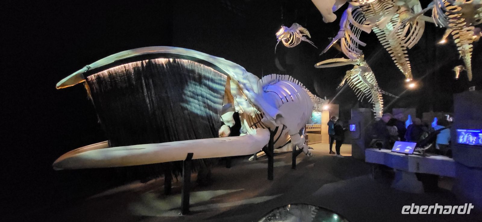 Es erfolgt ein herrlicher Sonnenaufgang über dem St. Lorenz Strom, welchen wir von unseren schönen Zimmern aus beobachten können. Nach einem schmackhaften Frühstücksbuffet brechen wir auf, um nach Tadoussac zu gelangen, von wo aus wir zur Walbeobachtung starten. Eine schöne Fahrt entlang viel herbstlicher Natur führt uns an Seen und kleineren Ortschaften vorbei, in denen es so manche pittoreske Häuser zu sehen gibt. Bereits vor der Überfahrt sehen wir die ersten Beluga und Minkwale in unmittelbarer Nähe vom Bus aus-welch ein Einstieg! Eine Autofähre bringt uns mangels Brücke nach Tadoussac, wo wir zunächst das Wahlforschung-Zentrum besuchen. Nach einem wunderschönen Film über die Belugawale gibt uns Guide Michel viele Informationen rund um die Meeressäugetiere und es sind etliche Skelette der Walarten wie dem sogenannten „Right Whale“, Minkwale, Belugas und sogar der Kiefer eines mittelgroßen Blauwales entlang des Eingangs zu sehen. Eine sehr interessante Erfahrung, diese imposanten Lebewesen einmal aus dieser Perspektive anzuschauen. Erstaunlich auch der Aspekt, dass die Nahrung der riesigen Meeresbewohner eher kleinerer Natur wie Plankton oder kleinere Fischarten ist. Erleichtert hören wir, dass es im Grunde unmöglich ist, dass ein Mensch von einem Wal verschluckt wird, da wir zum einen weder Beuteschema sind, noch durch dessen im Verhältnis kleine Kehle passen. Nach diesem beeindruckenden Besuch, genießen wir die Freizeit bei herrlichem Wetter in der Bucht, bevor es dann um 13.00 Uhr hinaus auf den St. Lorenz Strom geht. Obwohl unser Boot heute gut gefüllt ist, ist für alle ausreichend Platz vorhanden. Je nach Walsichtung flitzen wir von links nach rechts und sehen auf unserer Tour so einige Minkwale und vor allem die weißen Belugas, die mit großem oh und ah beim Abtauchen beobachtet werden. Diese, die markant mit strahlendem Weiß schon von weitem leuchten, sind zuverlässige Bewohner der hiesigen Bucht, obwohl eigentlich eher die Arktis als ihr Lebensraum bekannt ist. So vergehen drei schöne Stunden auf dem St. Lorenz Strom und in Baie St. Catherine verlassen wir das Boot, wo wir dann schon wieder von unserem Chauffeur Fred erwartet werden. Dieser bringt uns wieder sicher zurück in unsere schöne Auberge de trois Canards. Nochmals ein herrliches Abendessen in geselliger Runde, in der wir die heutigen Beobachtungen austauschen und uns viel zu erzählen haben.