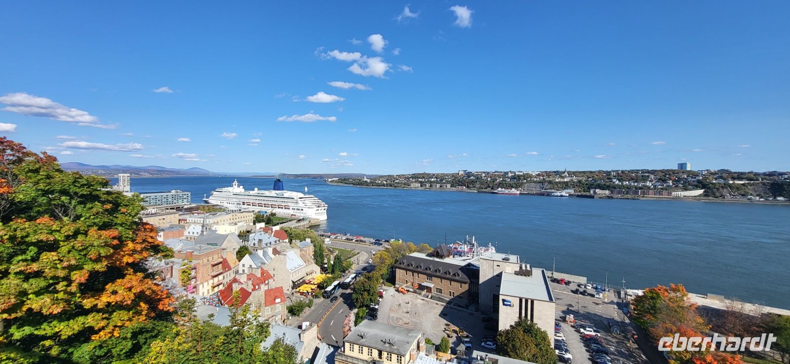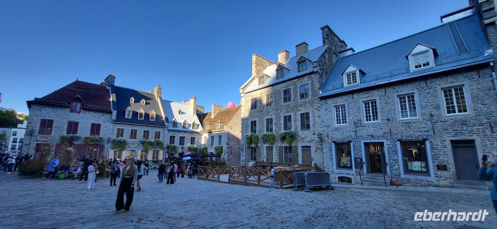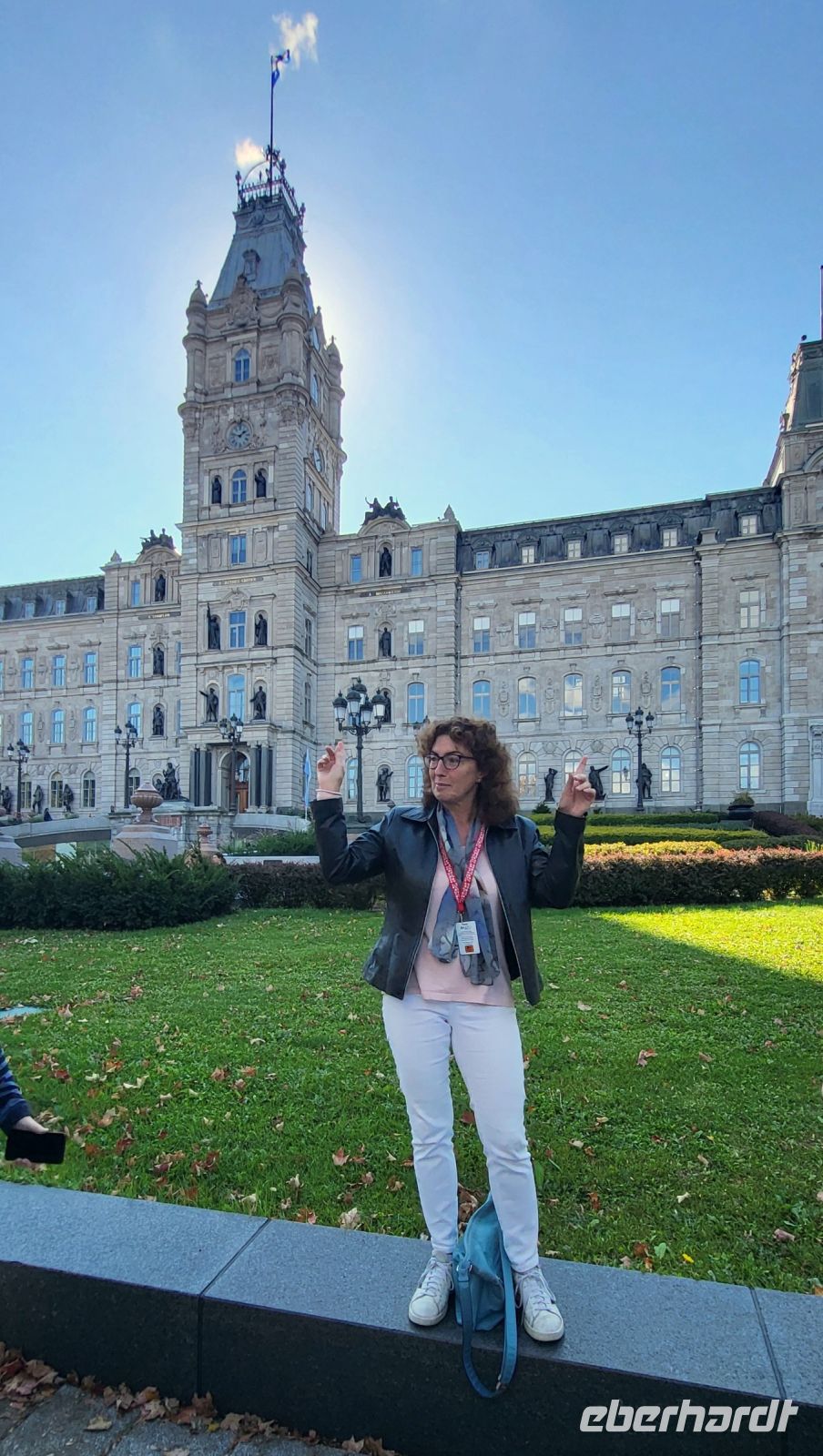 Nochmals frühstücken wir köstlich in unserer Auberge de trois Canards und rösten unsere hausgemachten Toasts am gemütlichen Kamin am St. Lorenz Strom. Eines unserer heutigen Tageshighlights ist der gewaltige Canyon St. Anne, den wir bei herrlichstem Wetter spazieren dürfen. Wer will saust mit einer Art Speed-Sessellift über den Canyon, zunächst rückwärts mit unglaublichem Blick auf die darunterliegenden Wassermassen und vorwärts wieder zurück zum Ausgangsort. Eine große Gaudi für die Fahrenden im Lift und die Beobachter am Boden. Danach geht es über diverse Hängebrücken am Canyon entlang und darüber. Das alles bei milden Temperaturen und purem Sonnenschein-welch ein Vergnügen. Weiter geht’s zur berühmtesten und bedeutendsten Wallfahrtskirche Nordamerikas- der Basilika St. Anne de Beaupré. Auch hier sollen bereits Wunder geschehen und Menschen geheilt worden sein. Ein sehr beeindruckendes Interieur gilt es zu bestaunen und den interessanten Ausführungen von Guide Marina zu lauschen. Wir erreichen die wohl schönste Stadt Kanadas, die übersetzt aus der Indigenen Sprache so viel bedeutet wie: „Wo der Fluss enger wird“-Quebec! Der sonst so gewaltige St. Lorenz Strom ist hier nur 800 m breit, sodass man die Stadt Levis am anderen Ufer gut entdecken kann. Hier verabschiedet sich Guide Christine, die uns mit viel Engagement die letzten drei Tage geführt und unterhalten hat. Ein kurzer Halt erfolgt am Parlament und wir staunen nicht schlecht, dass jeder Willkommen ist, mit den Parlamentatiern in der Kantine zu speisen, ein Geheimtipp laut Marina! Heute haben wir dafür leider keine Zeit und so fahren wir zum Plains of Abraham, das berühmte Schlachtfeld der Engländer und Franzosen, welches heute als großes Freizeitareal der Quebecer gilt. Hier finden u.a. Konzerte statt, man picknickt oder betreibt im Winter Ski-Langlauf. Eine herrlich grüne Fläche inmitten der Stadt und unweit unseres Hotels Chateau Laurier. Mit Marina geht es nun zu Fuß durch die malerische Altstadt, die in Ober-und Unterstadt aufgeteilt ist. Wir erkunden das Rathaus mit imposantem Springbrunnen davor, danach das Wahrzeichen Quebecs, das Hotel Chateau Frontenac mit 622 Zimmern, dessen Backsteine einst aus England per Schiff nach Kanada transportiert wurden. Weiter geht es durch die Oberstadt am Ursulinen Kloster vorbei und durch wunderschöne Gassen hinunter in die Unterstadt. Hier tummeln sich viele Touristen, denn die schönen kleinen Geschäfte laden zum Bummeln ein. Am Place Royal, dem königlichen Platz sehen wir noch so manche Häuser aus der Gründerzeit, die förmlich aneinander kleben. Nachdem wir uns alle bestens und Dank Marinas schöner Führung, orientiert haben, geht es zum Hotel Manoir Victoria, in der Altstadt gelegen, in welches wir für unsere letzte Nacht in Kanada einchecken. Danach gibt es für die Gäste bis zum Abendessen nochmals die Möglichkeit, die Stadt auf eigene Faust zu erkunden. Genüsslich speisen wir im Restaurant in der Altstadt „Entrecote de Saint-Jean“, zu welchem wir zu Fuß laufen. Danach lauscht so mancher noch schöner Live-Musik oder spaziert durch das nun wunderschön beleuchtete Quebec. Einfach herrlich, den Abend hier noch in Ruhe verbringen zu können und eine tolle Gelegenheit Quebec nochmals mit einer nun ganz anderen Stimmung erleben zu dürfen.