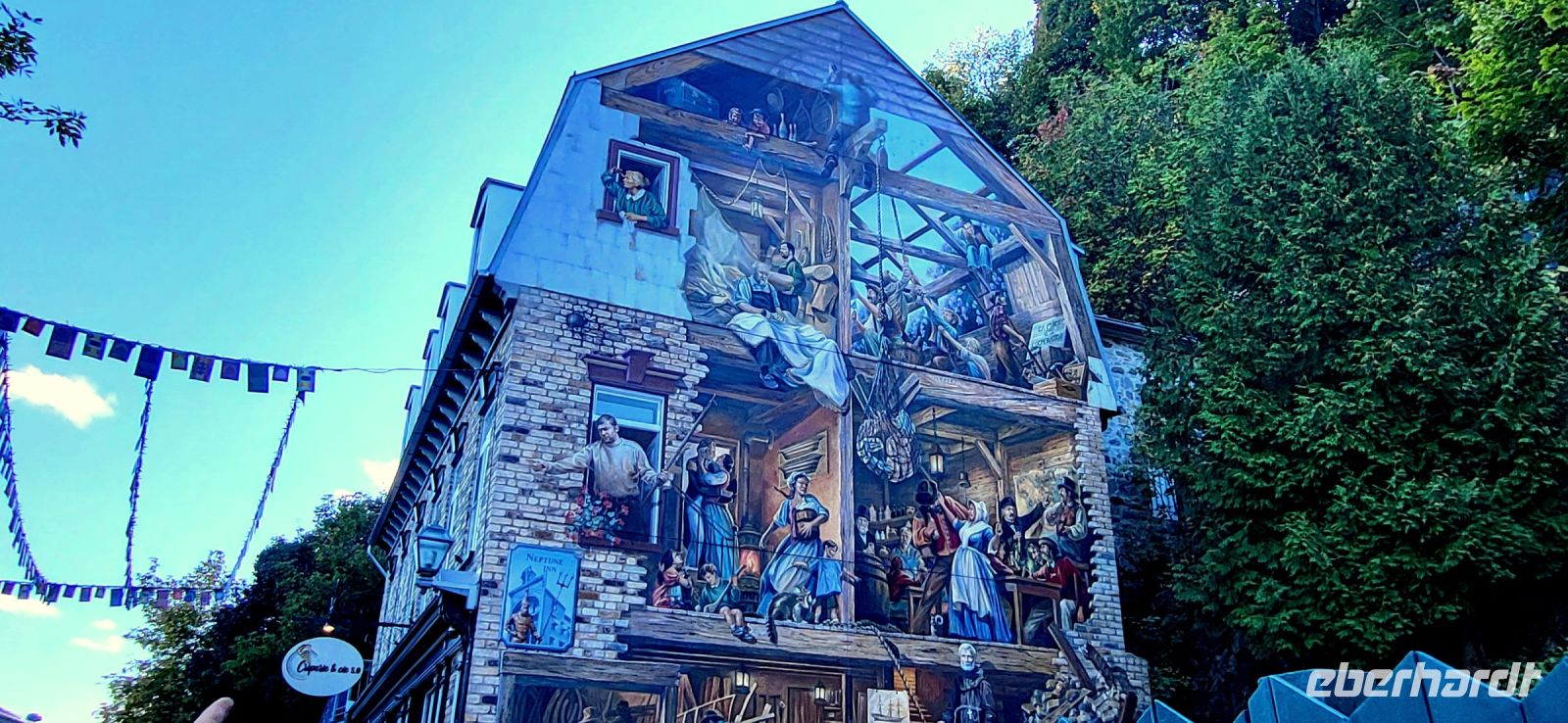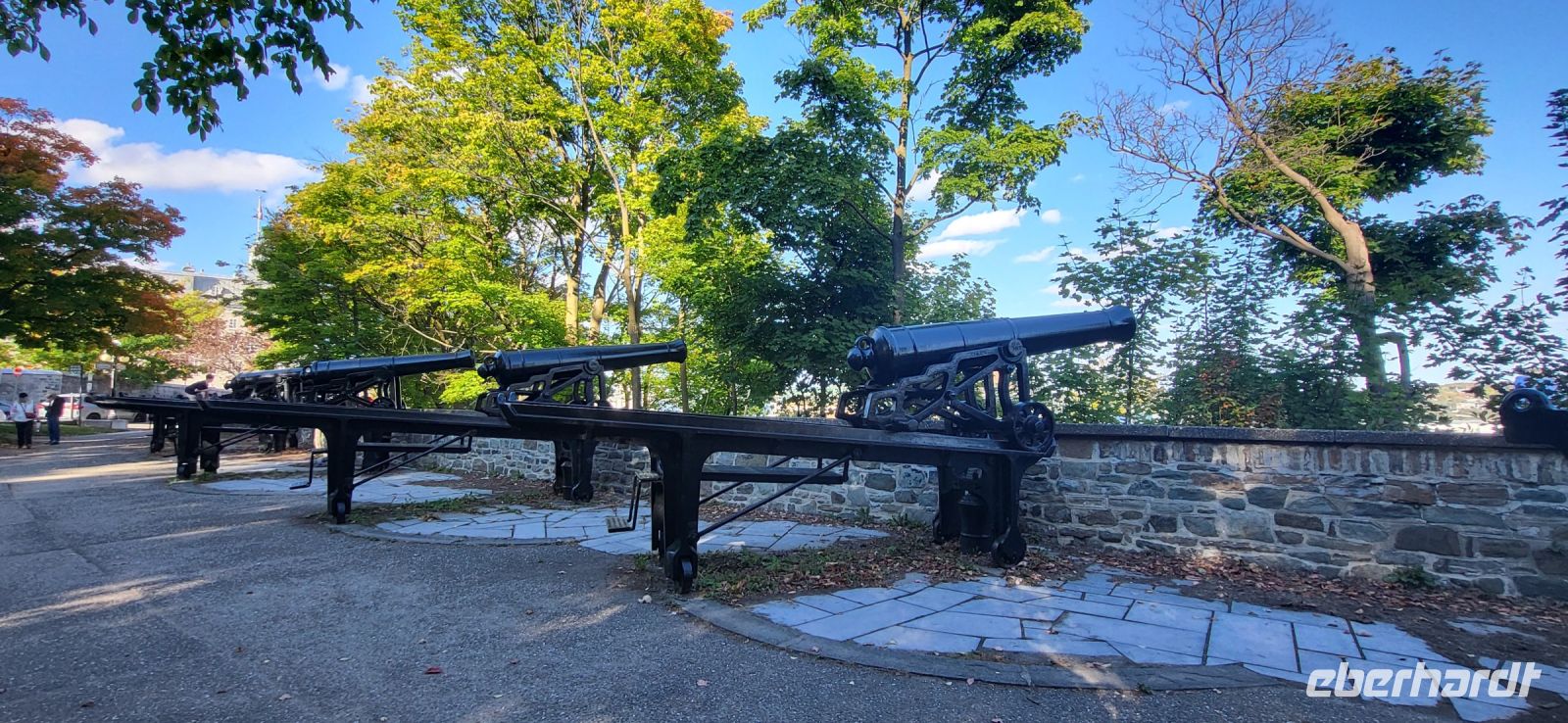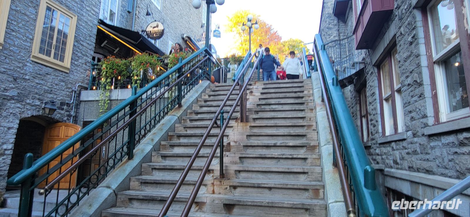 Nochmals frühstücken wir köstlich in unserer Auberge de trois Canards und rösten unsere hausgemachten Toasts am gemütlichen Kamin am St. Lorenz Strom. Eines unserer heutigen Tageshighlights ist der gewaltige Canyon St. Anne, den wir bei herrlichstem Wetter spazieren dürfen. Wer will saust mit einer Art Speed-Sessellift über den Canyon, zunächst rückwärts mit unglaublichem Blick auf die darunterliegenden Wassermassen und vorwärts wieder zurück zum Ausgangsort. Eine große Gaudi für die Fahrenden im Lift und die Beobachter am Boden. Danach geht es über diverse Hängebrücken am Canyon entlang und darüber. Das alles bei milden Temperaturen und purem Sonnenschein-welch ein Vergnügen. Weiter geht’s zur berühmtesten und bedeutendsten Wallfahrtskirche Nordamerikas- der Basilika St. Anne de Beaupré. Auch hier sollen bereits Wunder geschehen und Menschen geheilt worden sein. Ein sehr beeindruckendes Interieur gilt es zu bestaunen und den interessanten Ausführungen von Guide Marina zu lauschen. Wir erreichen die wohl schönste Stadt Kanadas, die übersetzt aus der Indigenen Sprache so viel bedeutet wie: „Wo der Fluss enger wird“-Quebec! Der sonst so gewaltige St. Lorenz Strom ist hier nur 800 m breit, sodass man die Stadt Levis am anderen Ufer gut entdecken kann. Hier verabschiedet sich Guide Christine, die uns mit viel Engagement die letzten drei Tage geführt und unterhalten hat. Ein kurzer Halt erfolgt am Parlament und wir staunen nicht schlecht, dass jeder Willkommen ist, mit den Parlamentatiern in der Kantine zu speisen, ein Geheimtipp laut Marina! Heute haben wir dafür leider keine Zeit und so fahren wir zum Plains of Abraham, das berühmte Schlachtfeld der Engländer und Franzosen, welches heute als großes Freizeitareal der Quebecer gilt. Hier finden u.a. Konzerte statt, man picknickt oder betreibt im Winter Ski-Langlauf. Eine herrlich grüne Fläche inmitten der Stadt und unweit unseres Hotels Chateau Laurier. Mit Marina geht es nun zu Fuß durch die malerische Altstadt, die in Ober-und Unterstadt aufgeteilt ist. Wir erkunden das Rathaus mit imposantem Springbrunnen davor, danach das Wahrzeichen Quebecs, das Hotel Chateau Frontenac mit 622 Zimmern, dessen Backsteine einst aus England per Schiff nach Kanada transportiert wurden. Weiter geht es durch die Oberstadt am Ursulinen Kloster vorbei und durch wunderschöne Gassen hinunter in die Unterstadt. Hier tummeln sich viele Touristen, denn die schönen kleinen Geschäfte laden zum Bummeln ein. Am Place Royal, dem königlichen Platz sehen wir noch so manche Häuser aus der Gründerzeit, die förmlich aneinander kleben. Nachdem wir uns alle bestens und Dank Marinas schöner Führung, orientiert haben, geht es zum Hotel Manoir Victoria, in der Altstadt gelegen, in welches wir für unsere letzte Nacht in Kanada einchecken. Danach gibt es für die Gäste bis zum Abendessen nochmals die Möglichkeit, die Stadt auf eigene Faust zu erkunden. Genüsslich speisen wir im Restaurant in der Altstadt „Entrecote de Saint-Jean“, zu welchem wir zu Fuß laufen. Danach lauscht so mancher noch schöner Live-Musik oder spaziert durch das nun wunderschön beleuchtete Quebec. Einfach herrlich, den Abend hier noch in Ruhe verbringen zu können und eine tolle Gelegenheit Quebec nochmals mit einer nun ganz anderen Stimmung erleben zu dürfen.