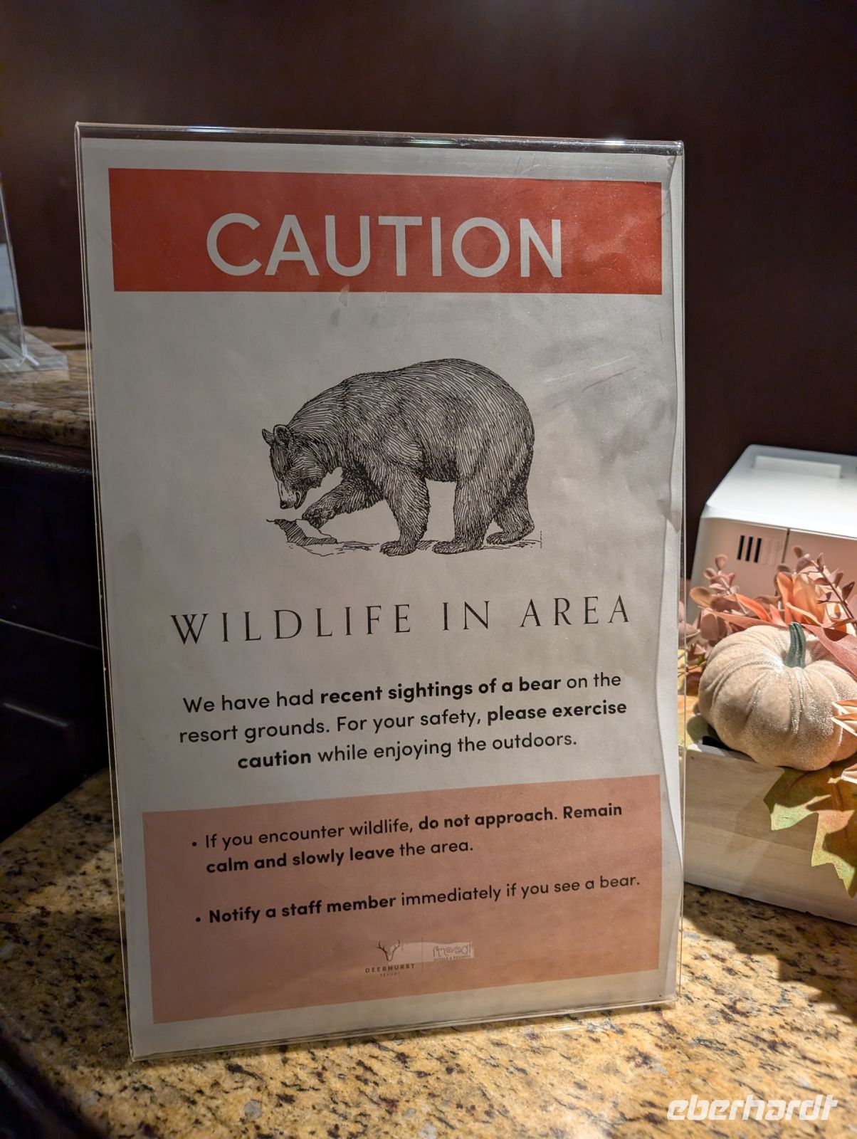 Zum Abschluss des Tages entdeckten wir noch ein Schild, das uns vor Bären warnte – ein unvergesslicher Moment, der dem Tag eine humorvolle Note verlieh, bevor wir uns alle müde, aber glücklich ins Bett fallen ließen.